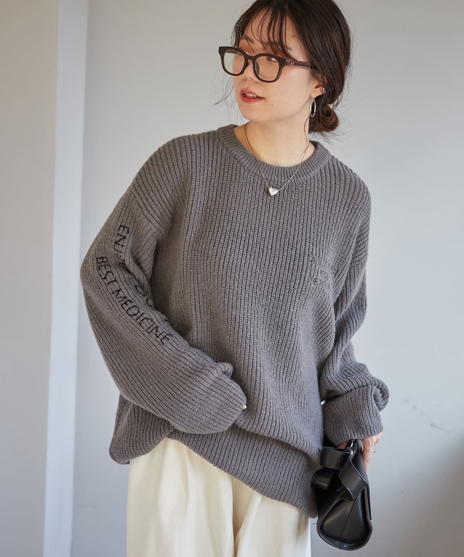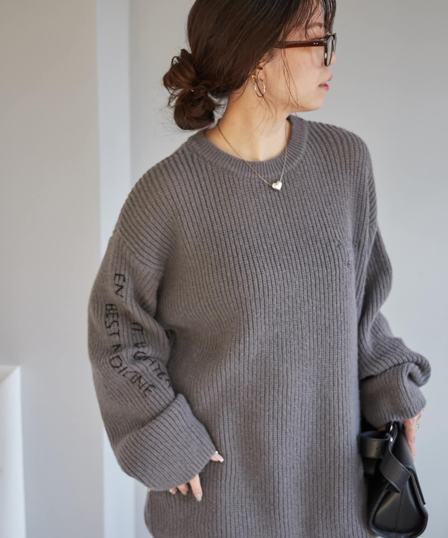 2025SS【NUNIFE】袖ロゴニットプルオーバー