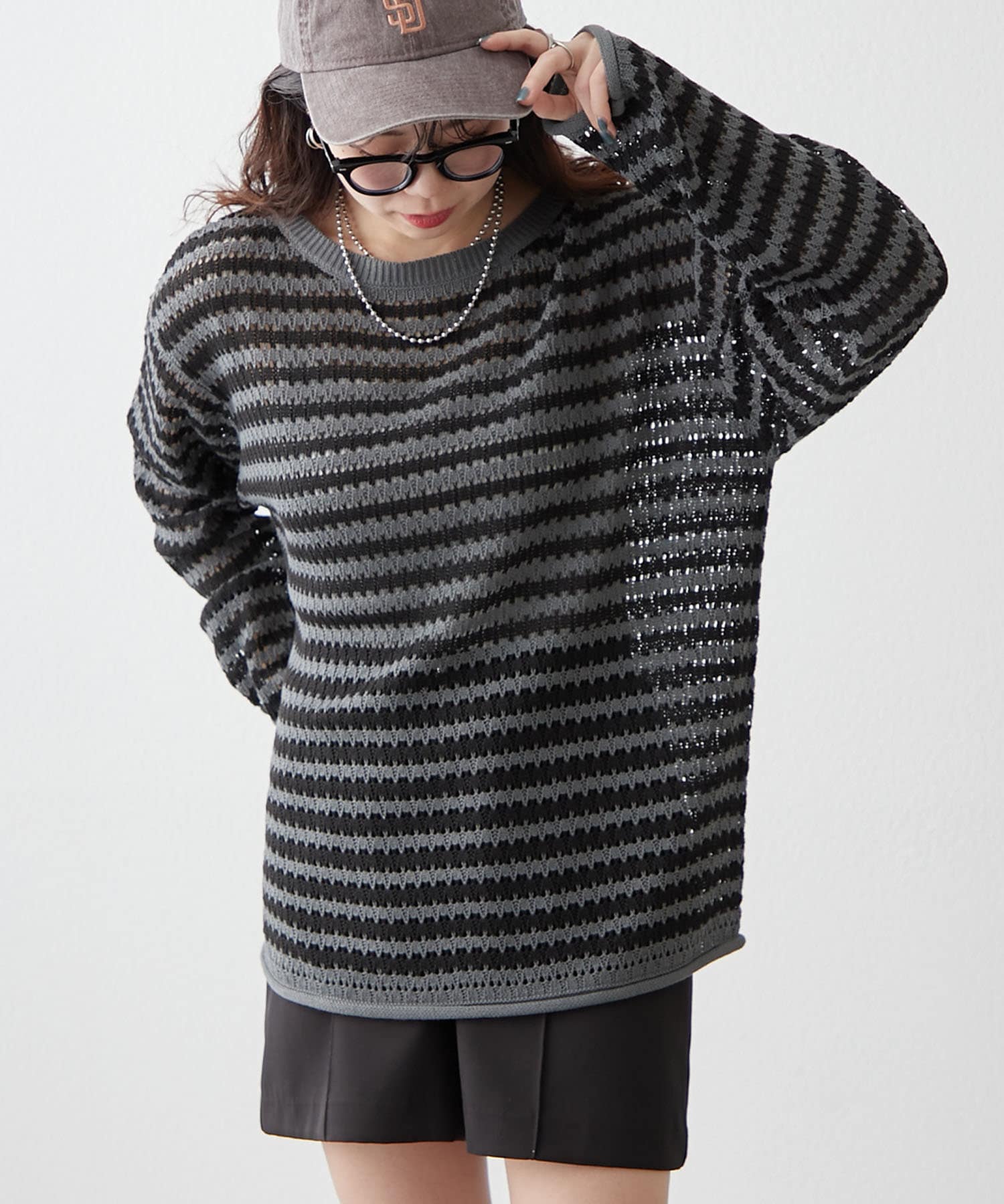 透かし編みのニュアンスがコーデをこなれた印象にしてくれます。