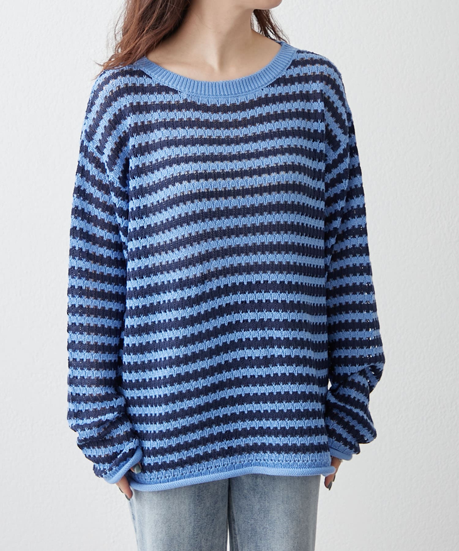 ゆるっとシルエットのボーダーニット。