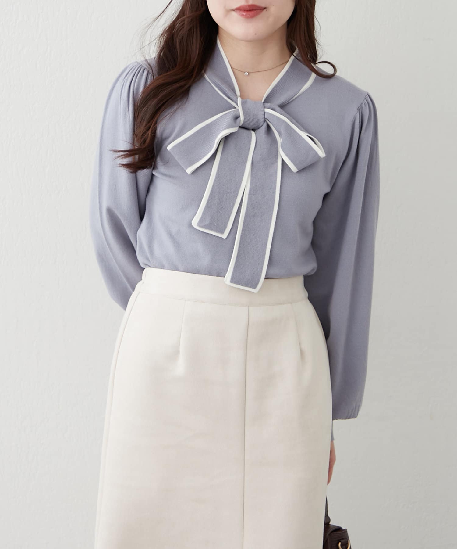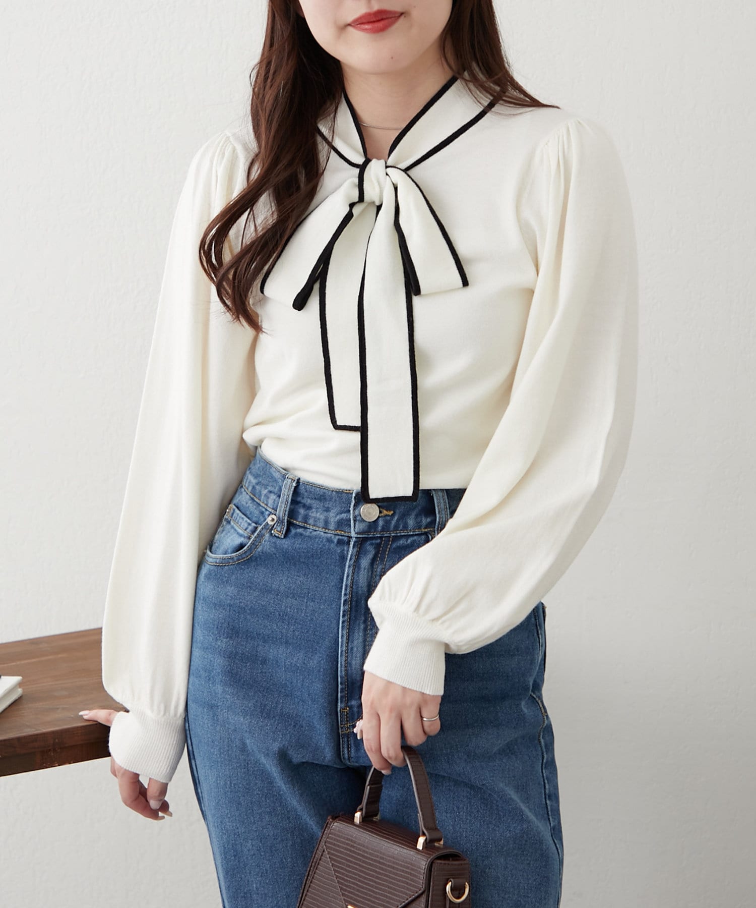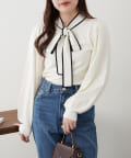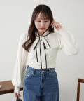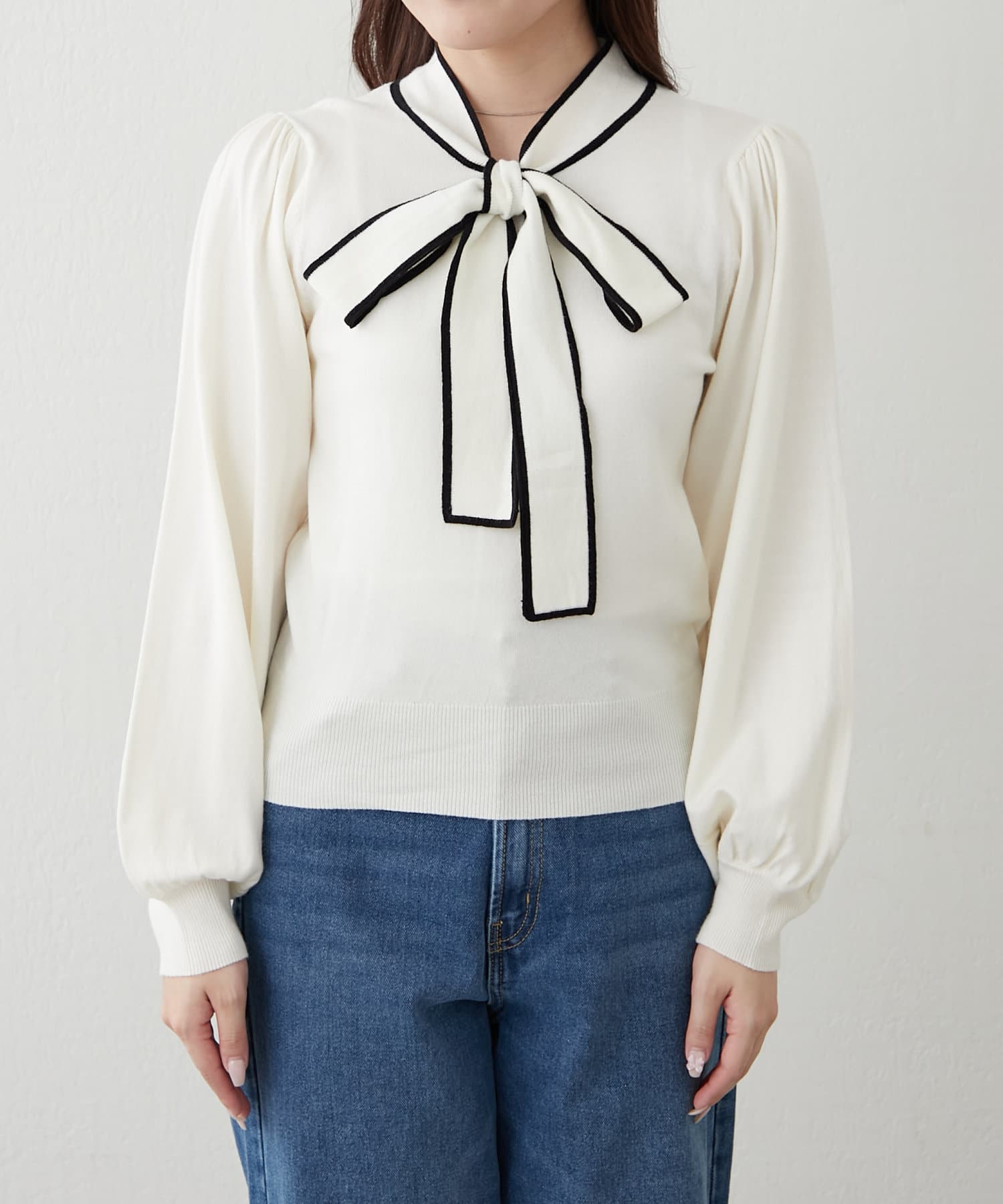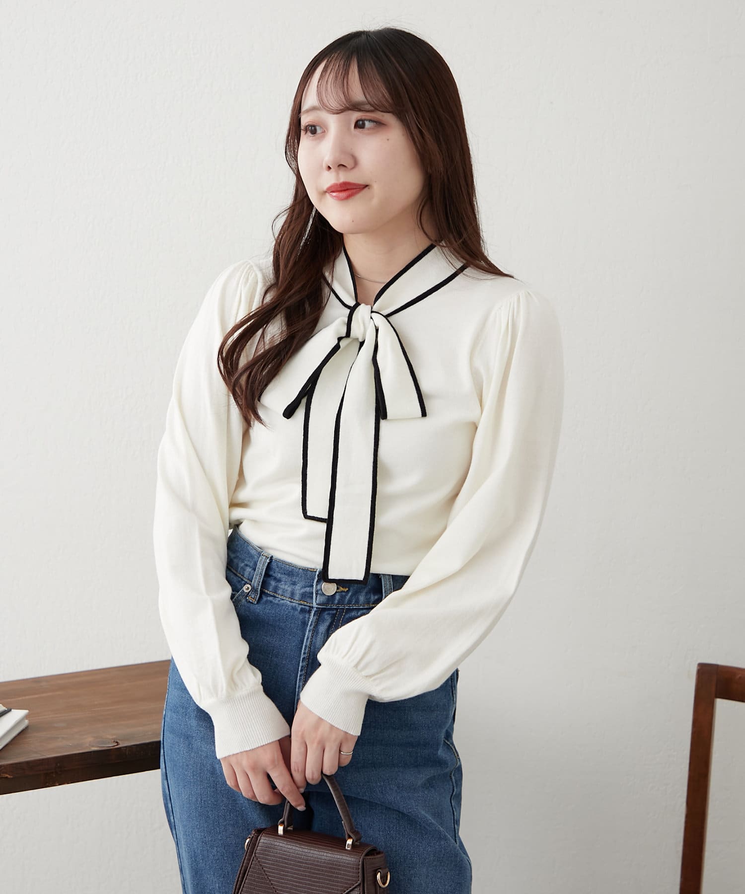 【春の新作】【OUTLET限定】リボンタイ付ニットプルオーバー