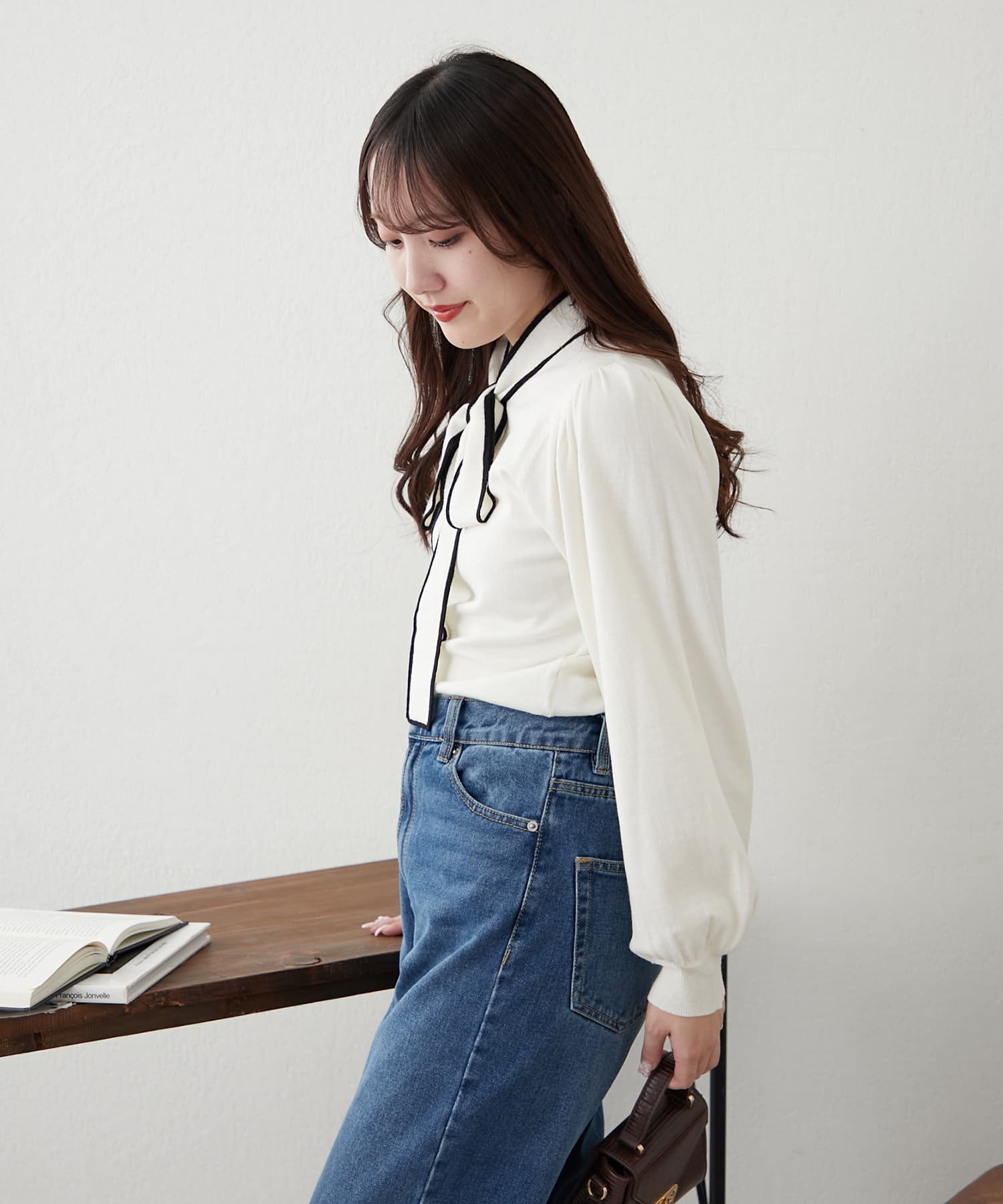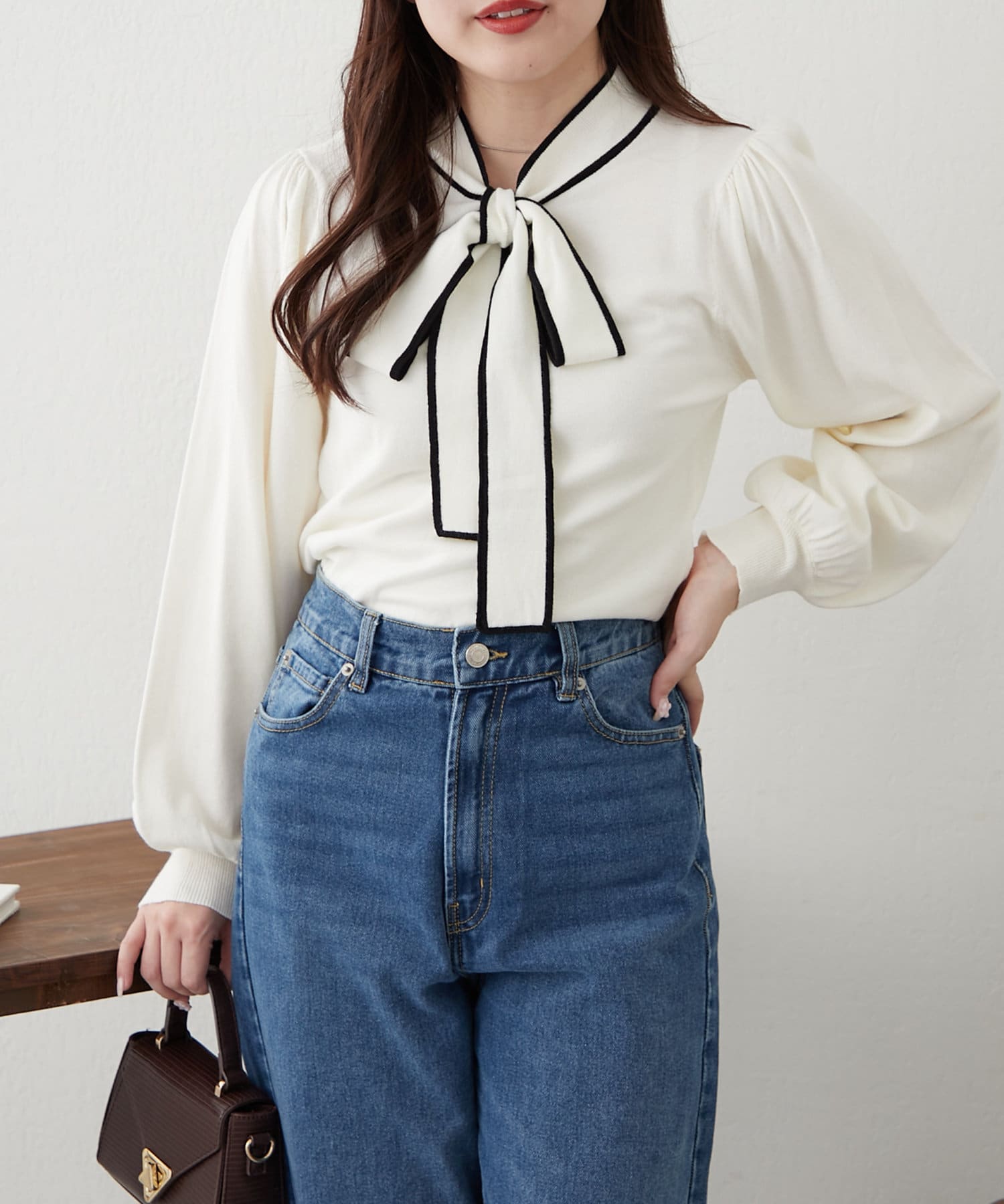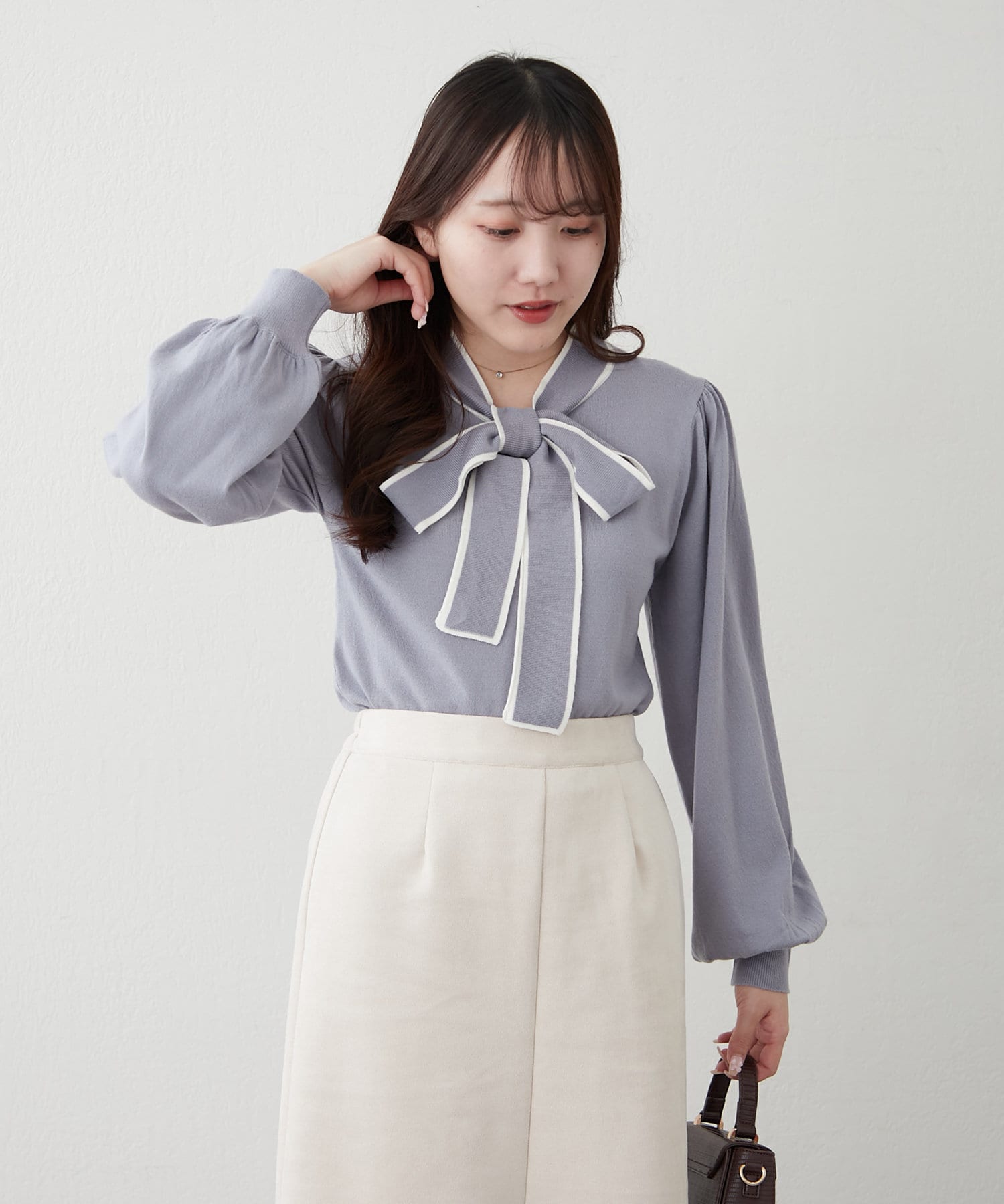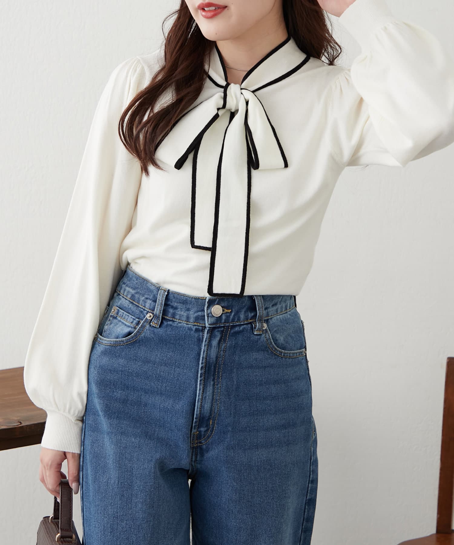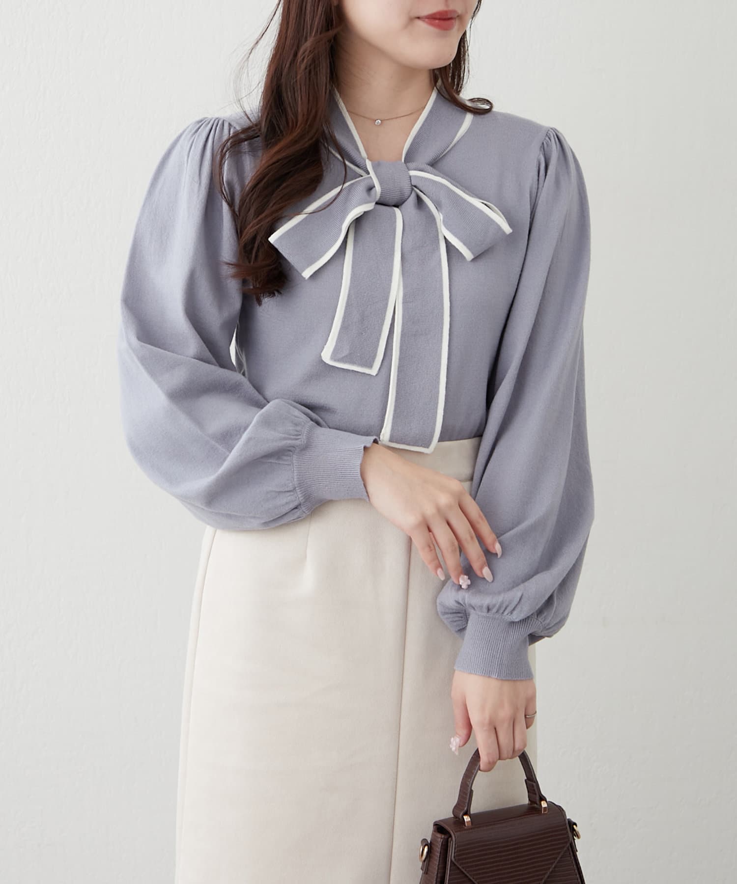 【春の新作】【OUTLET限定】リボンタイ付ニットプルオーバー