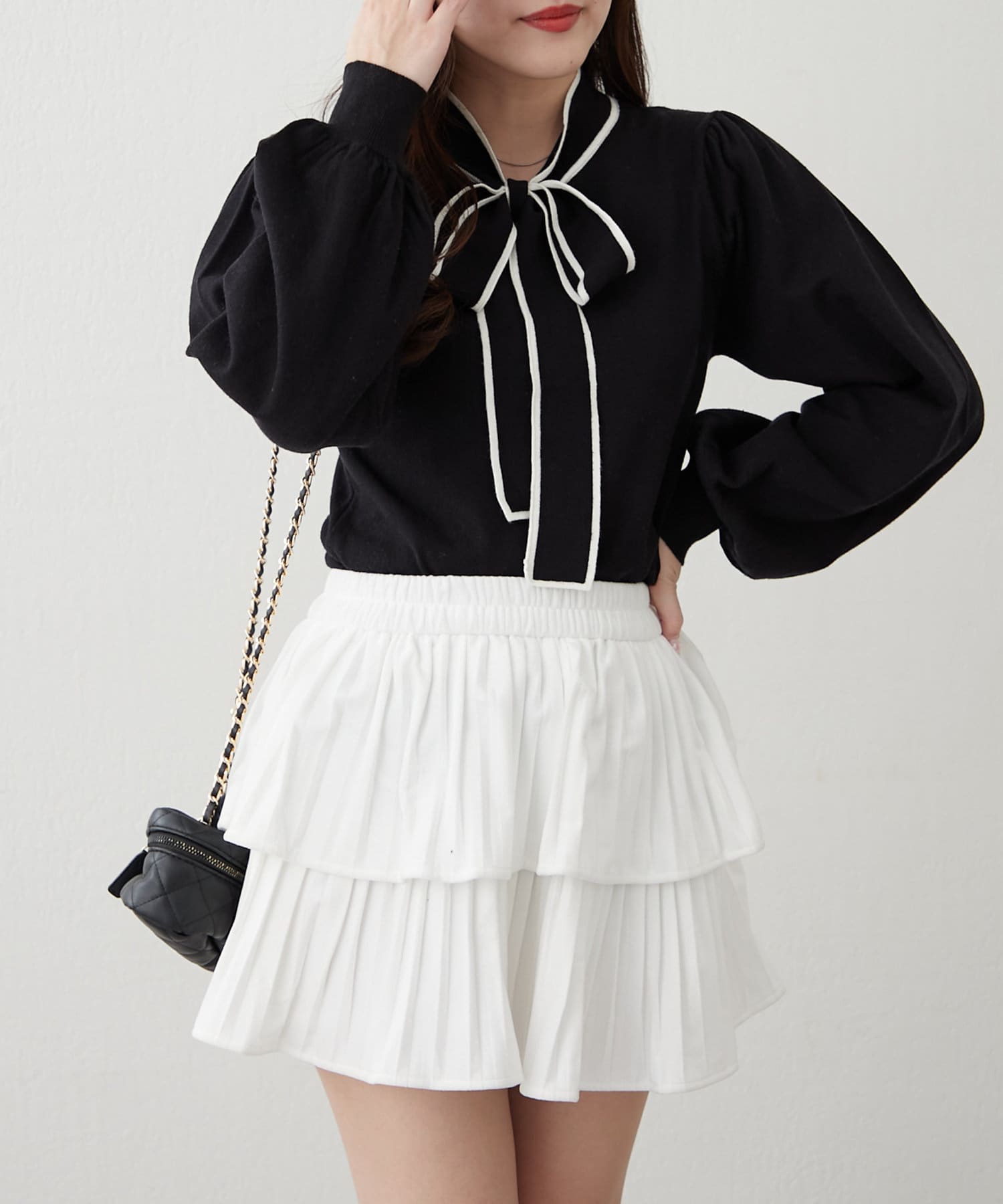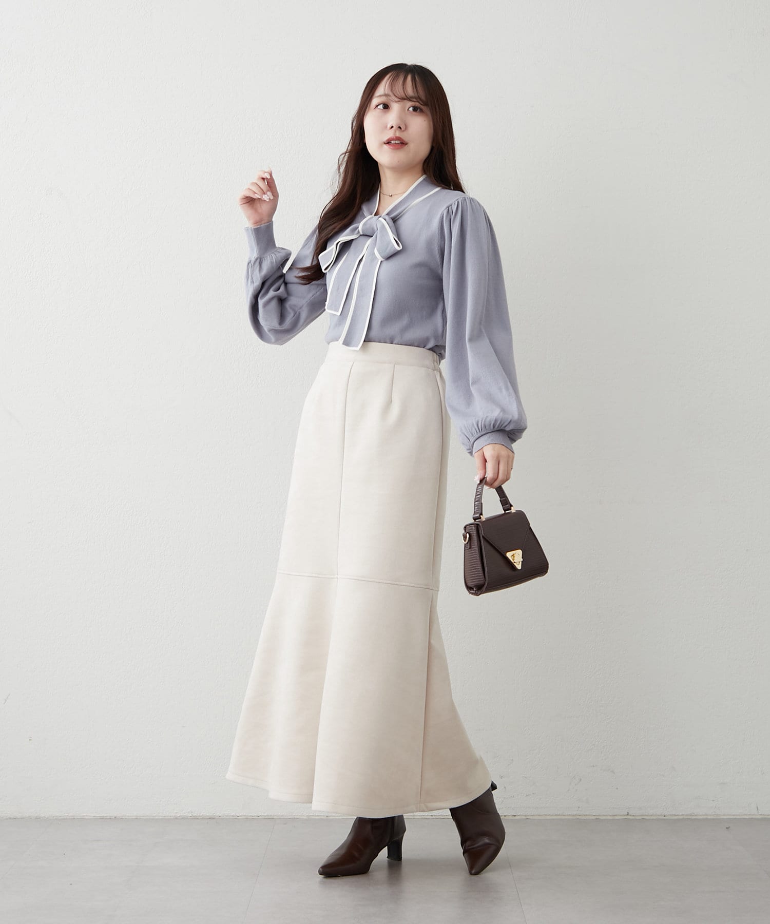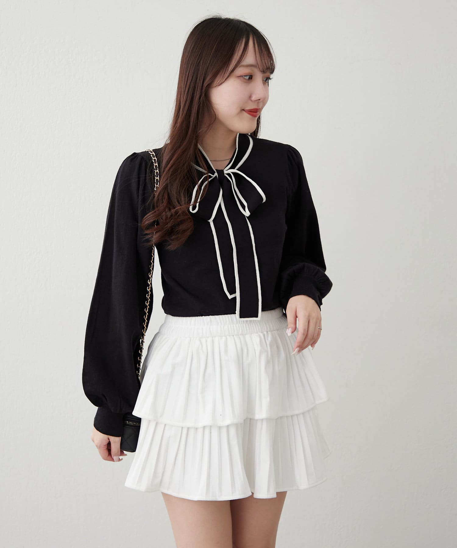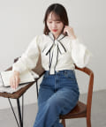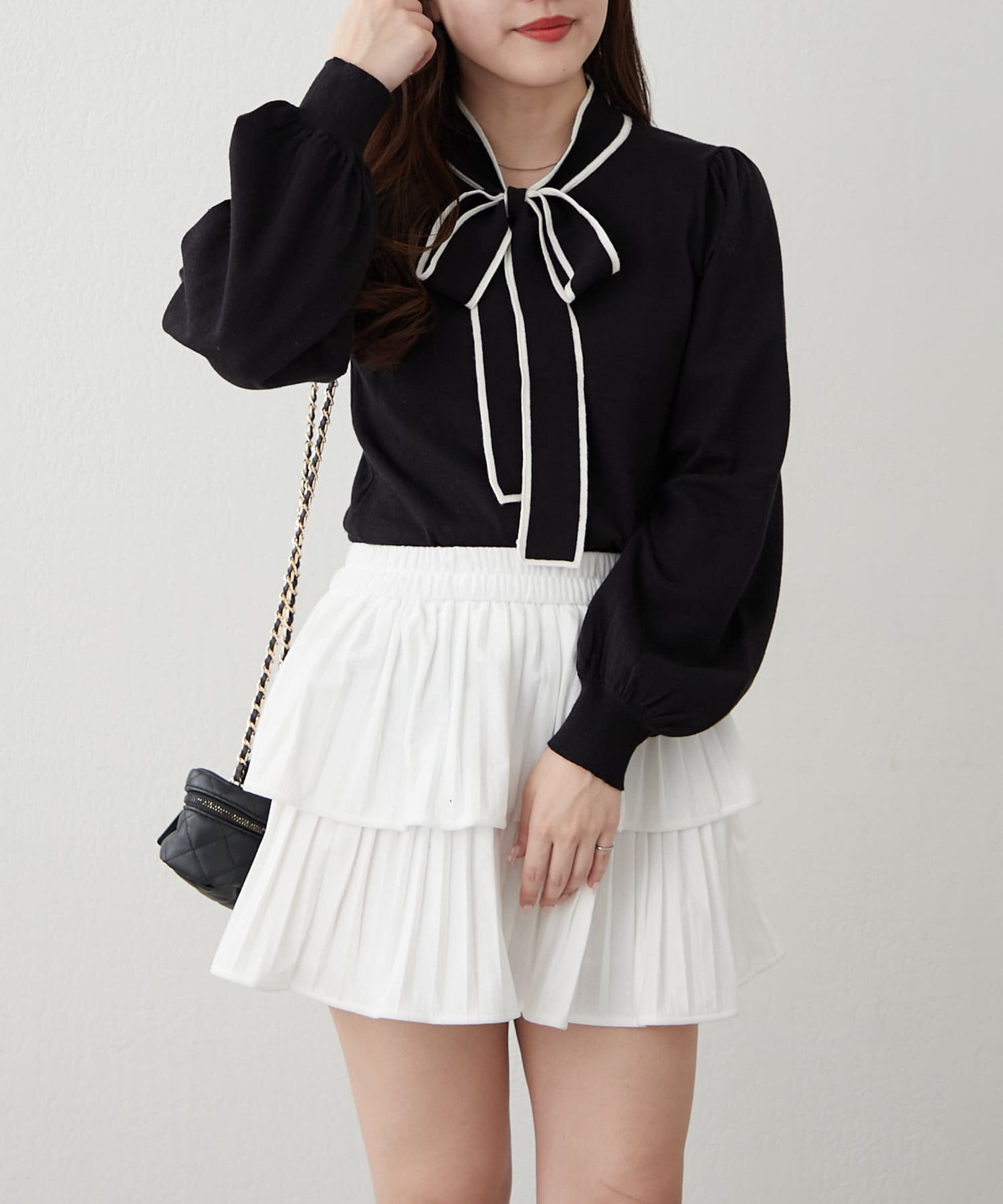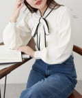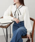 【春の新作】【OUTLET限定】リボンタイ付ニットプルオーバー