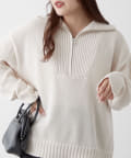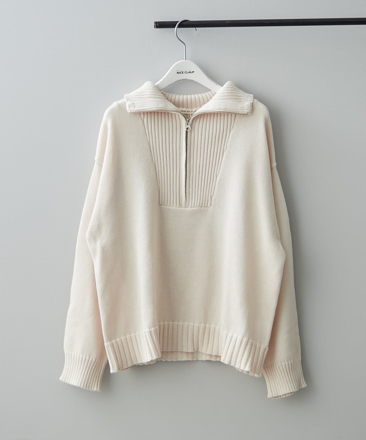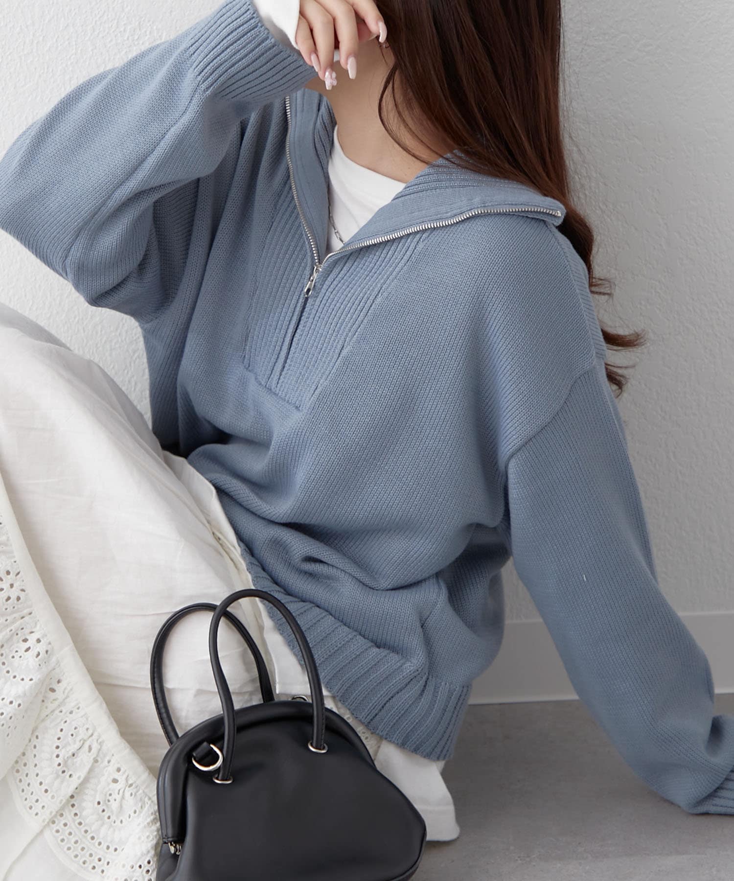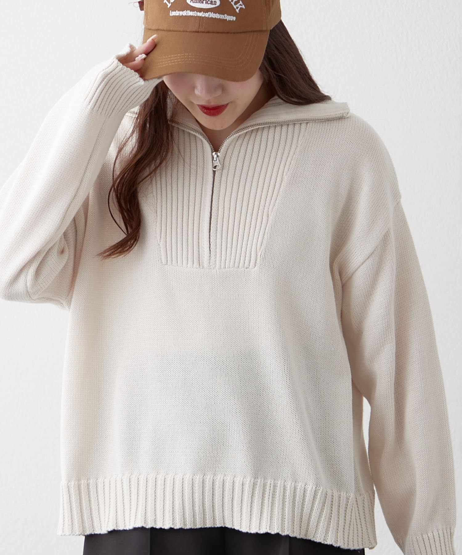 ・人気のハーフジップデザインのニットが春に着やすい素材感で登場!
