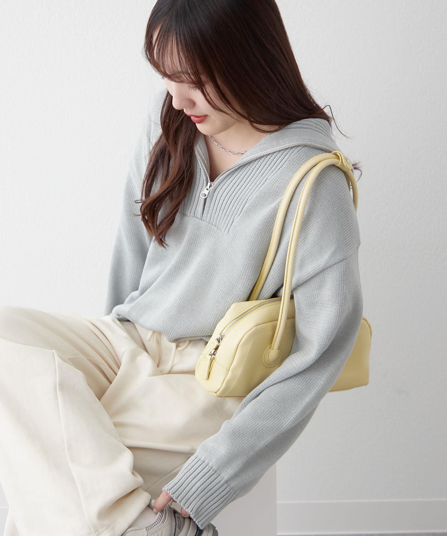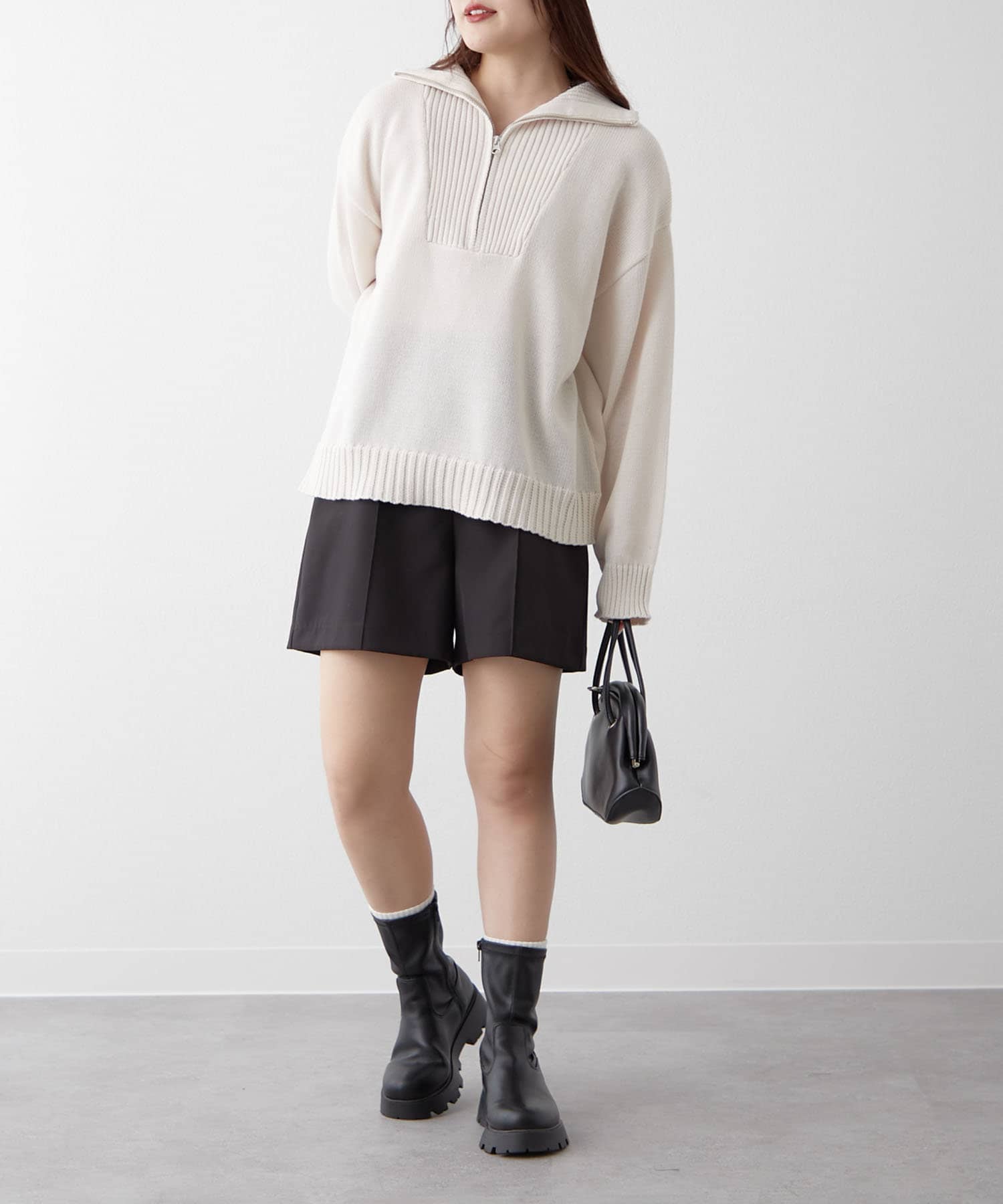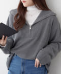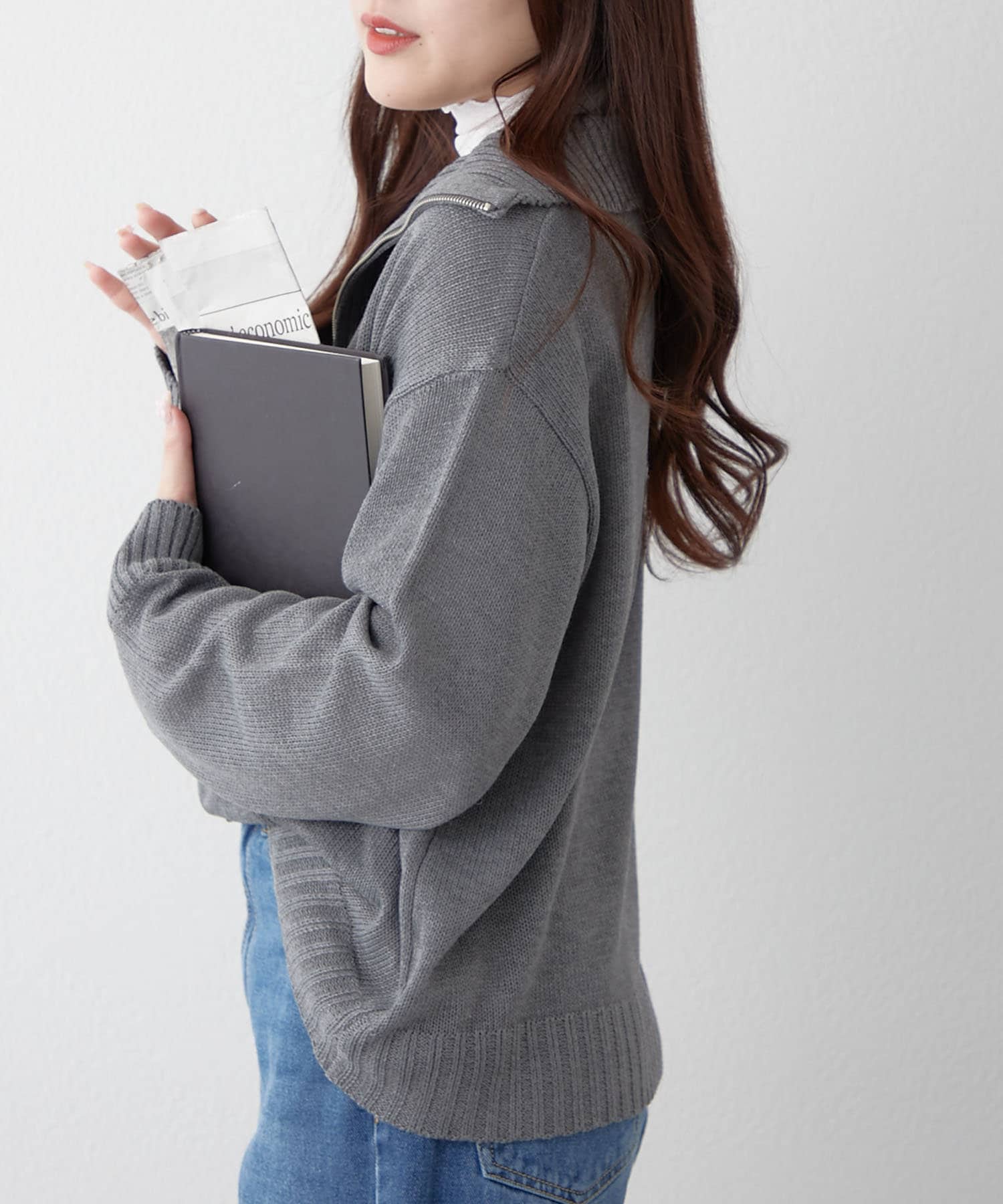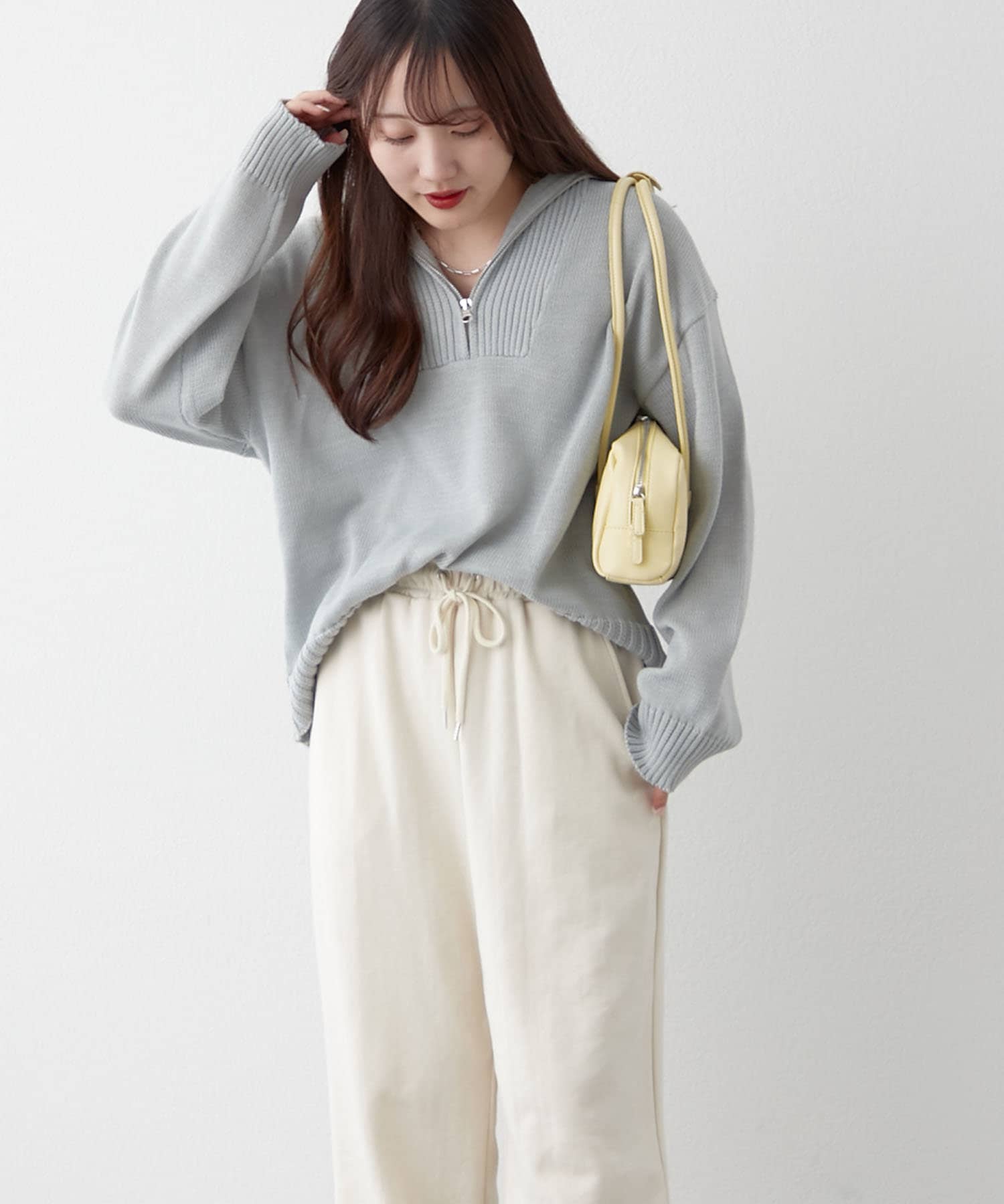 ・人気のハーフジップデザインのニットが春に着やすい素材感で登場!