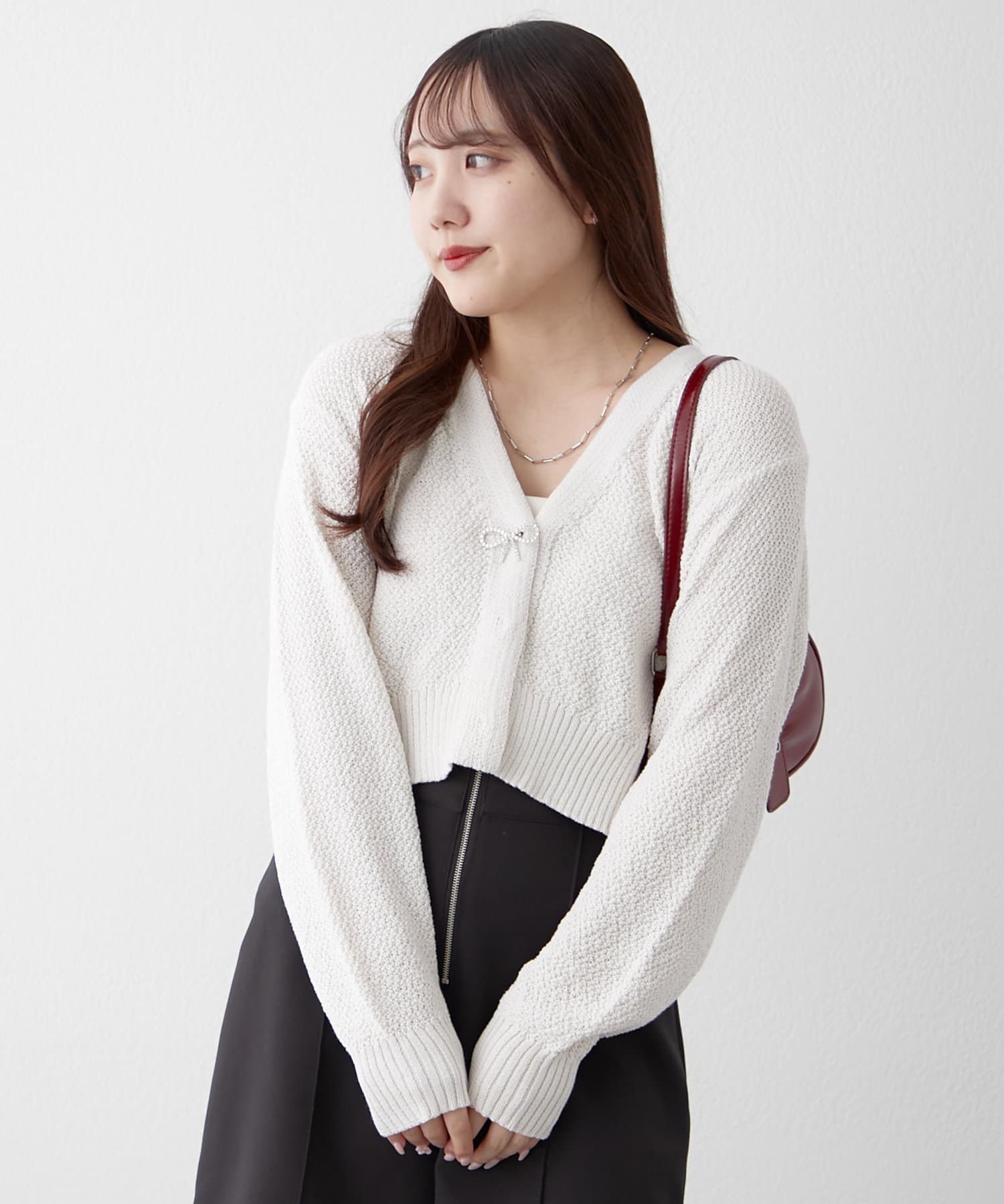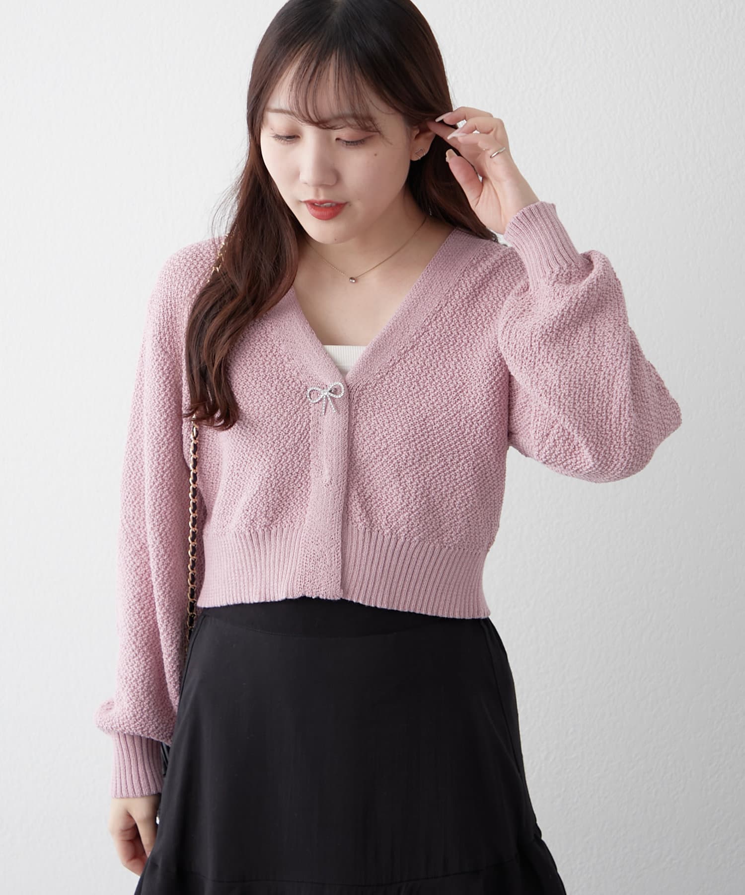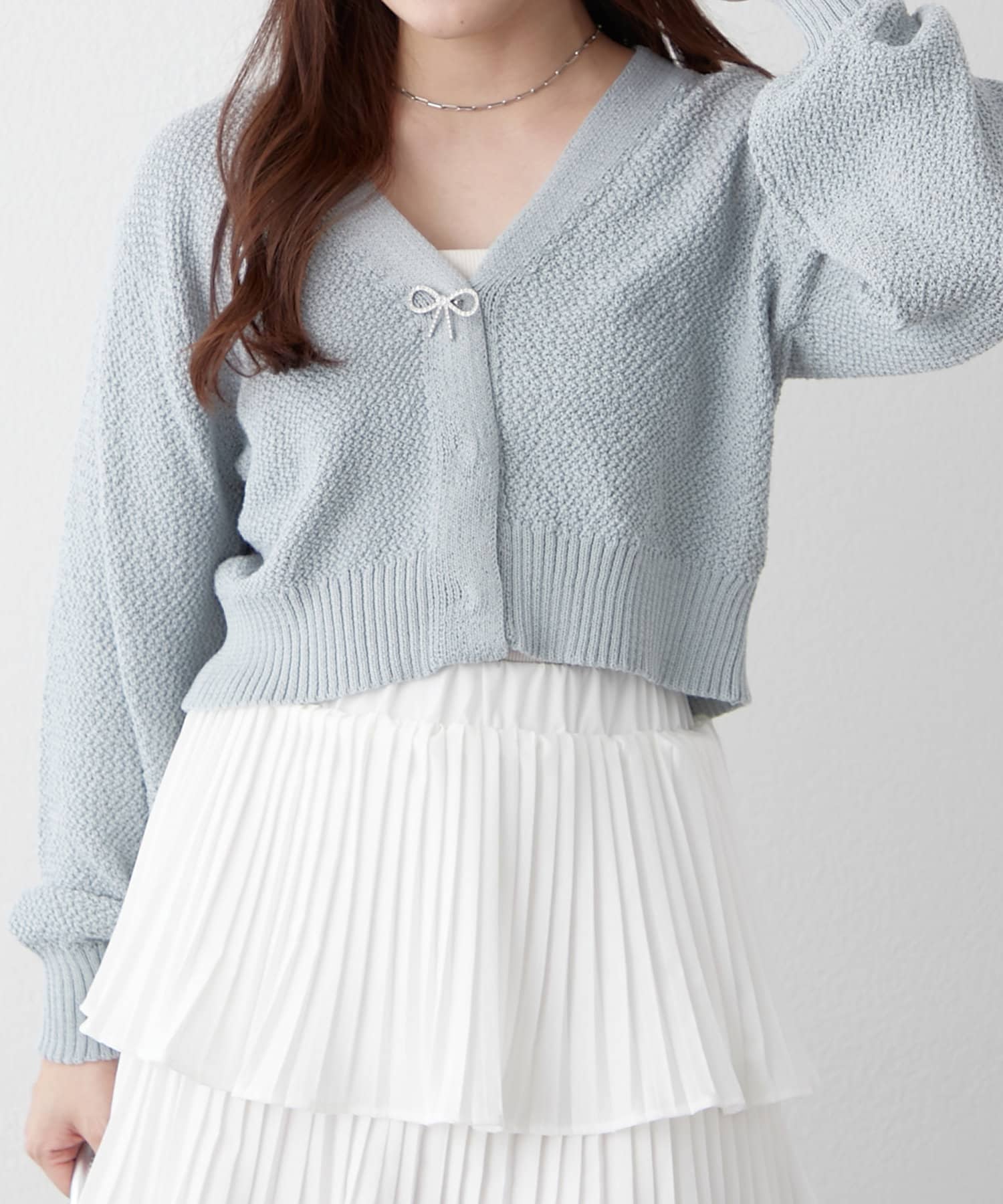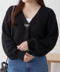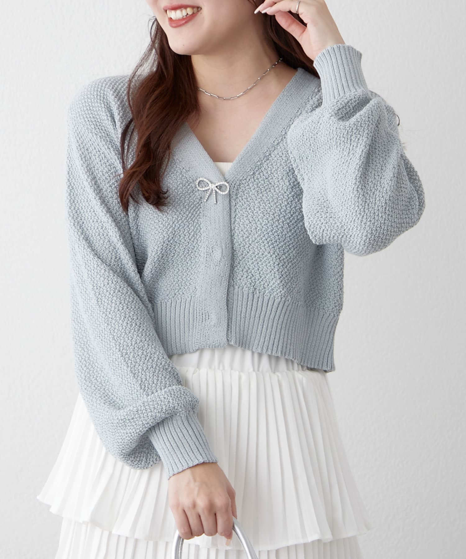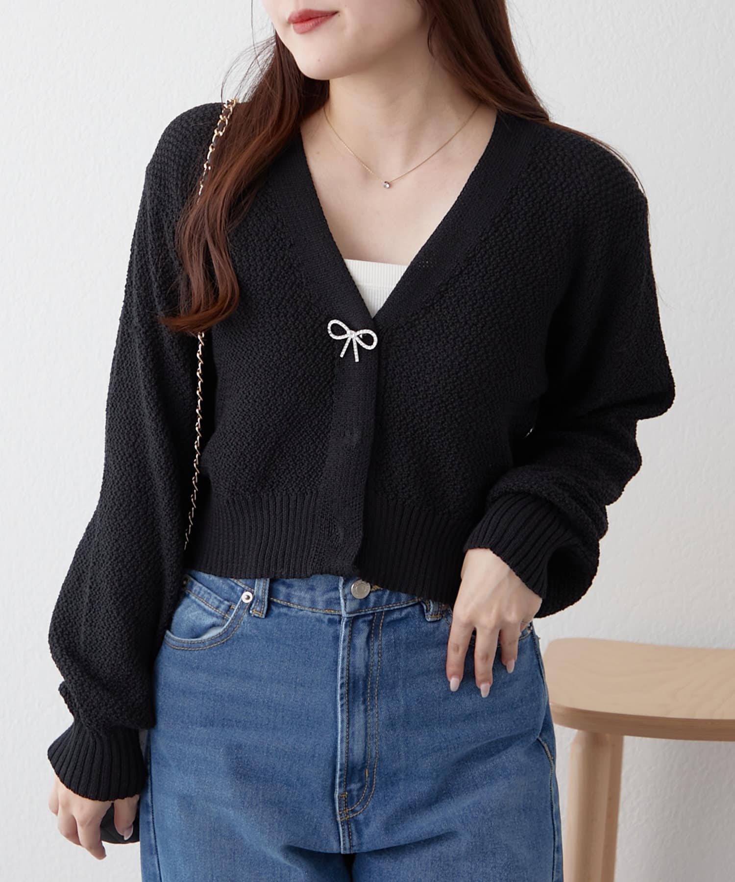 【春の新作】【OUTLET限定】リボンブローチショートカーディガン
