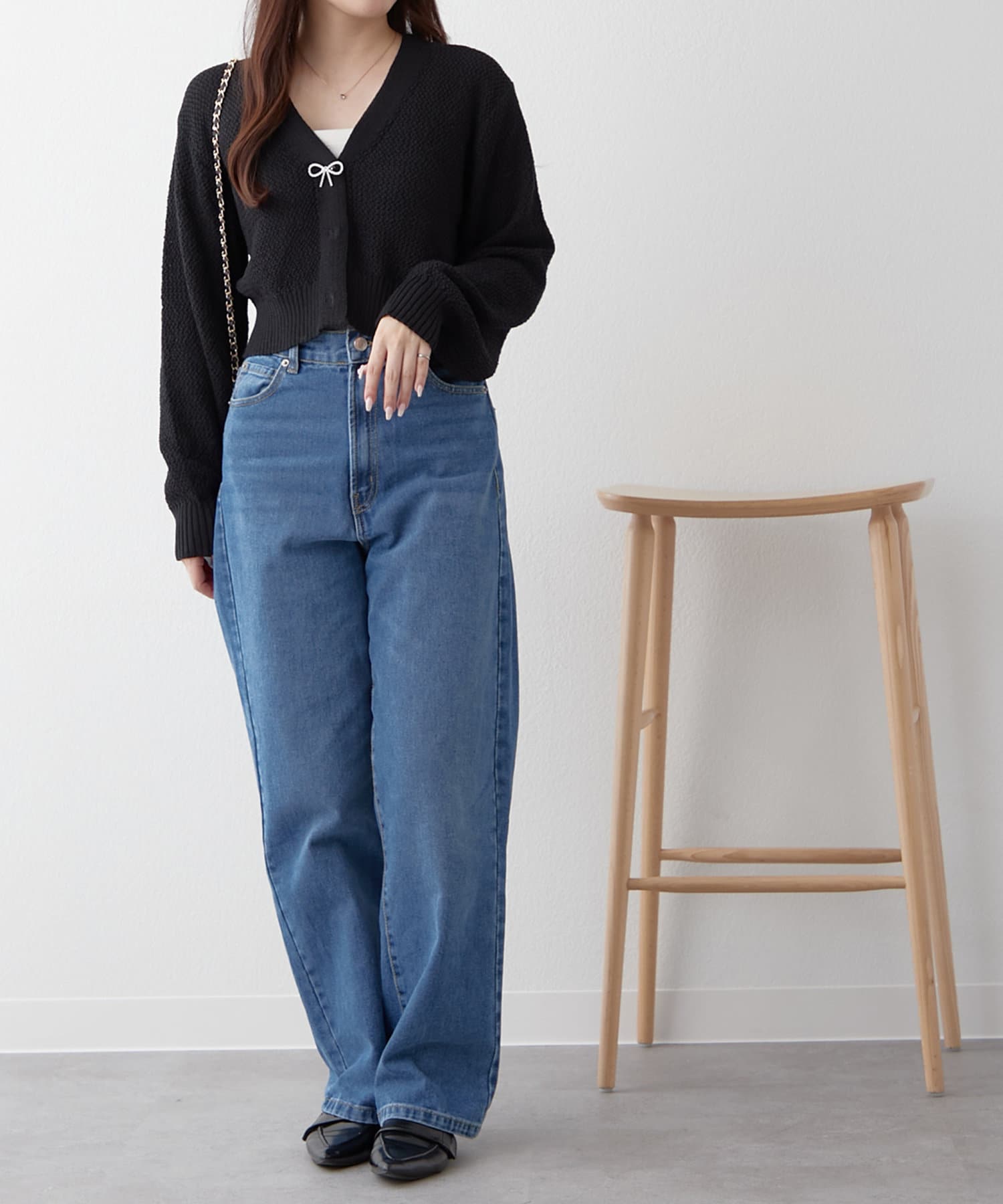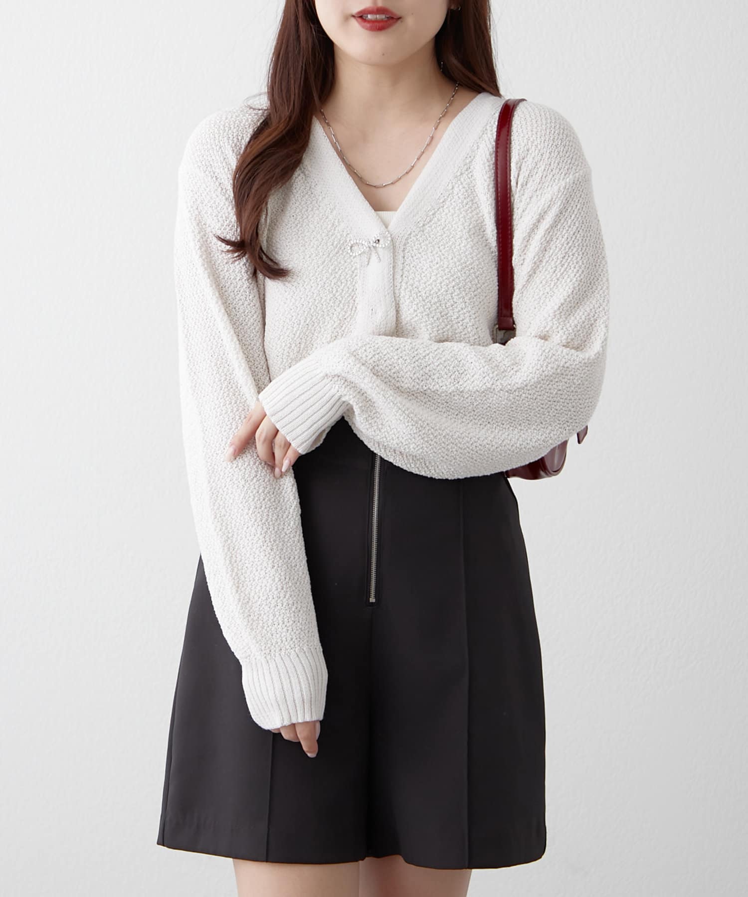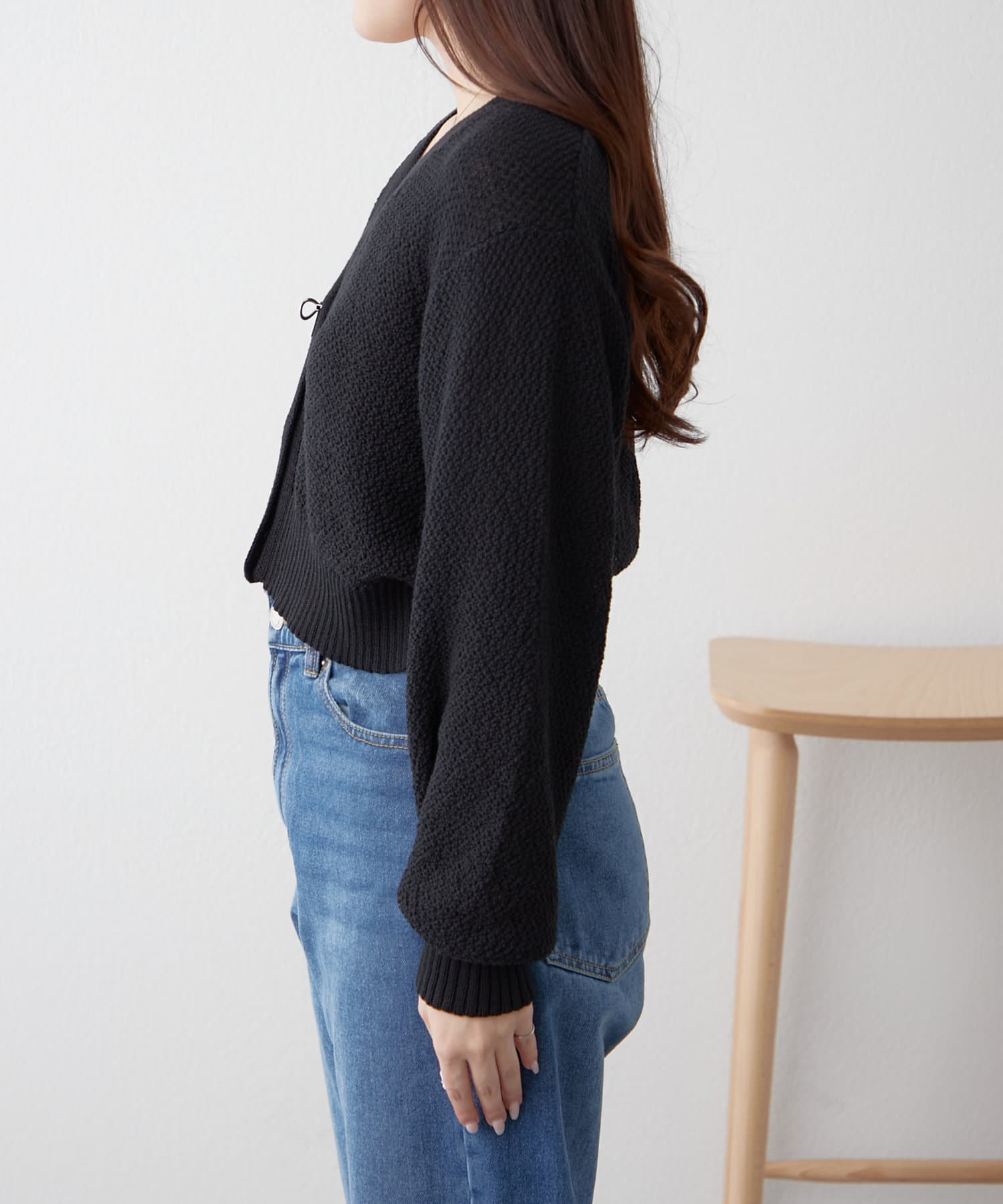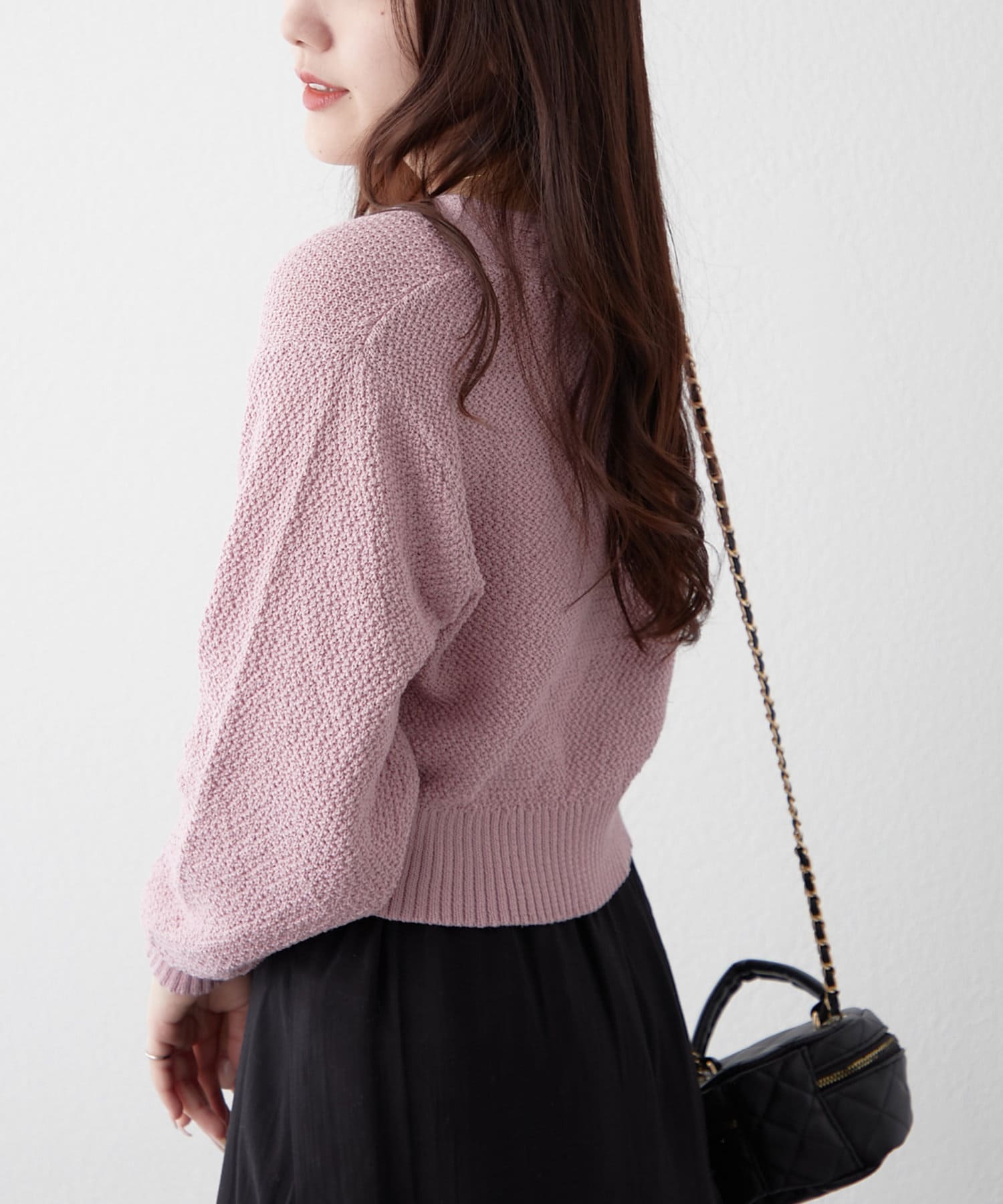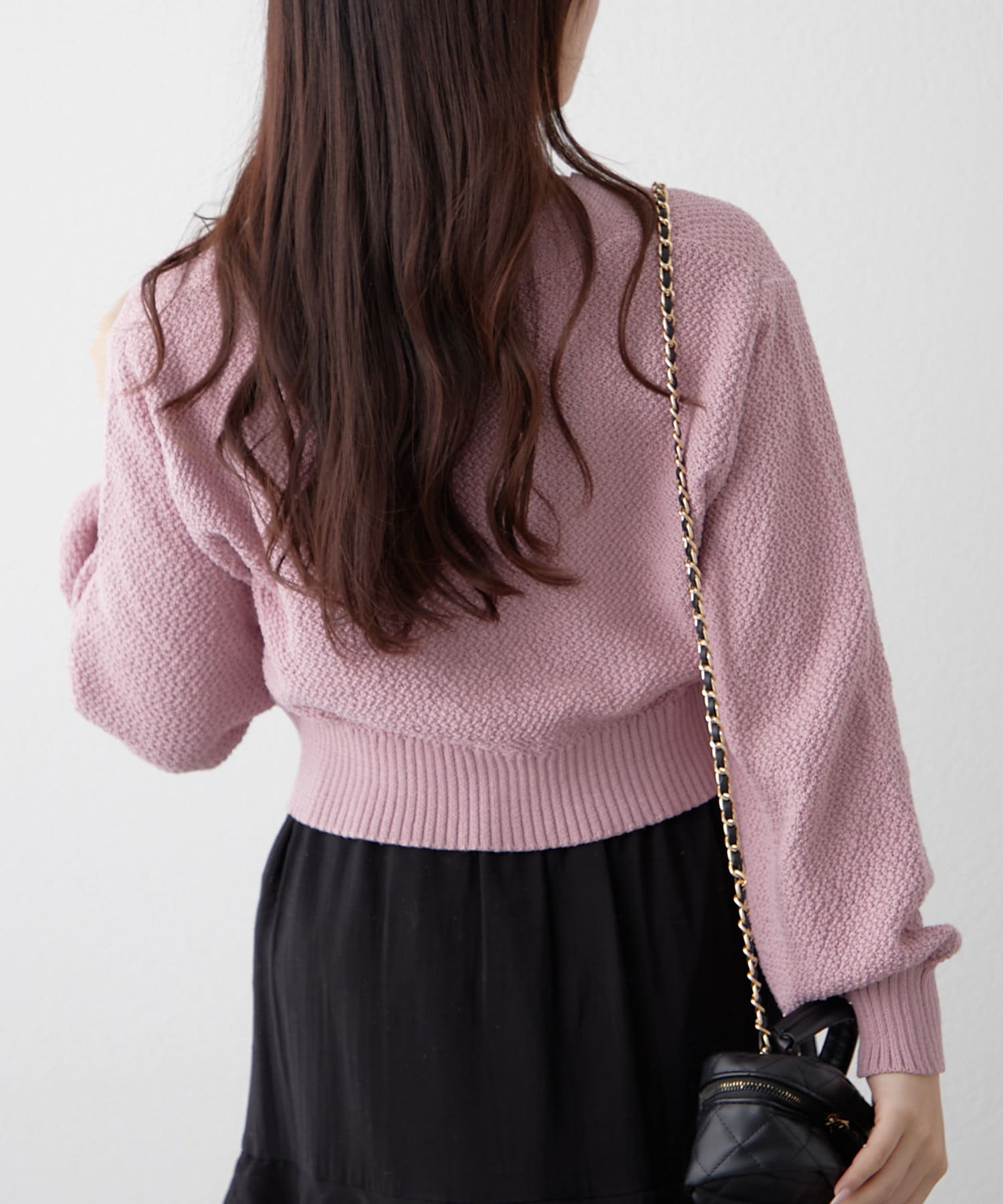 【春の新作】【OUTLET限定】リボンブローチショートカーディガン