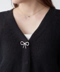 ・リボンブローチもビジューデザインで、キラキラと華やかな印象にコーデを演出。