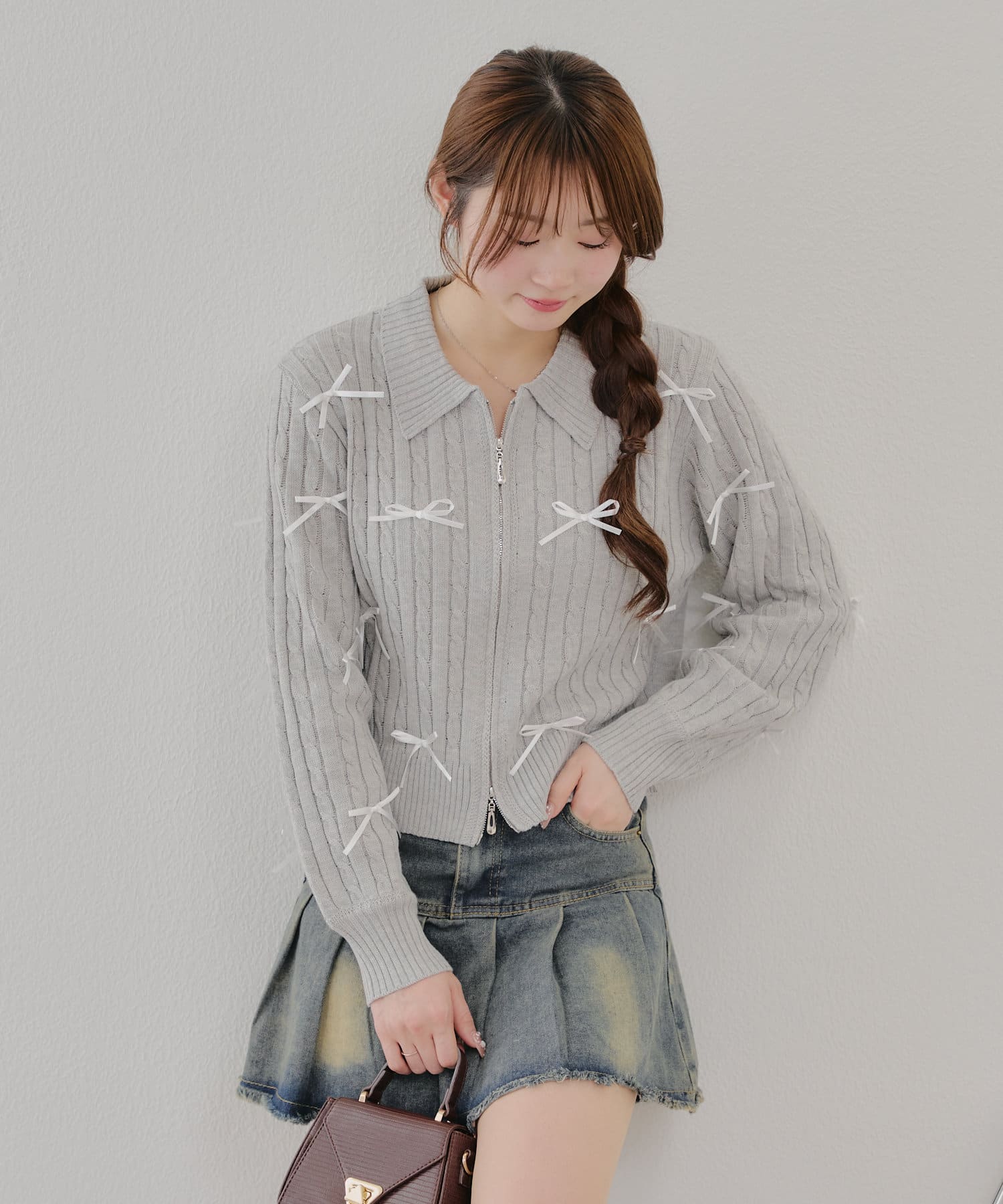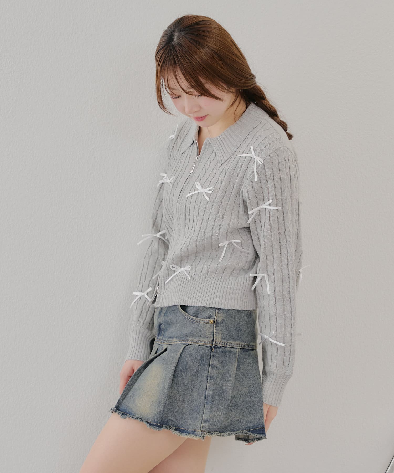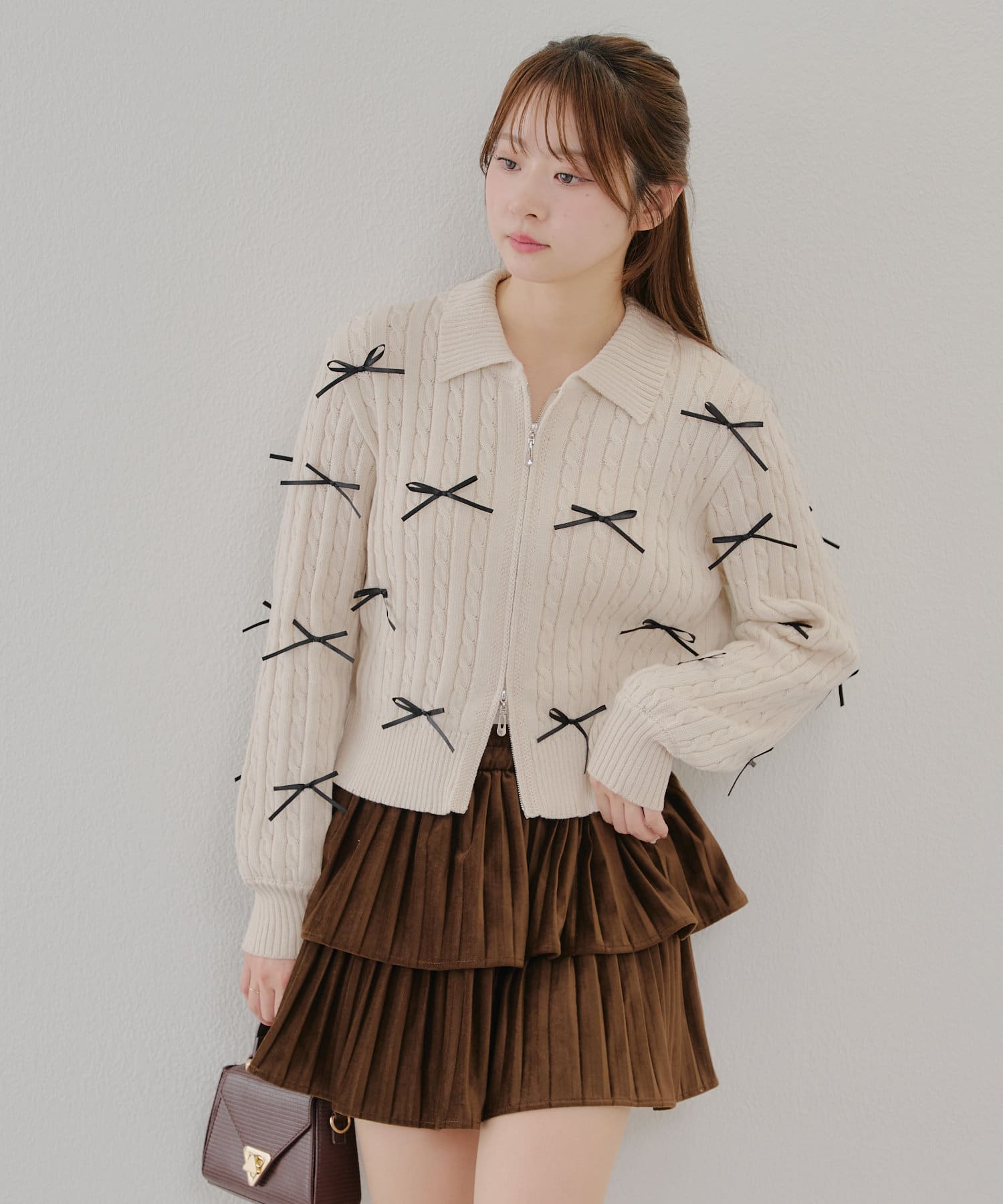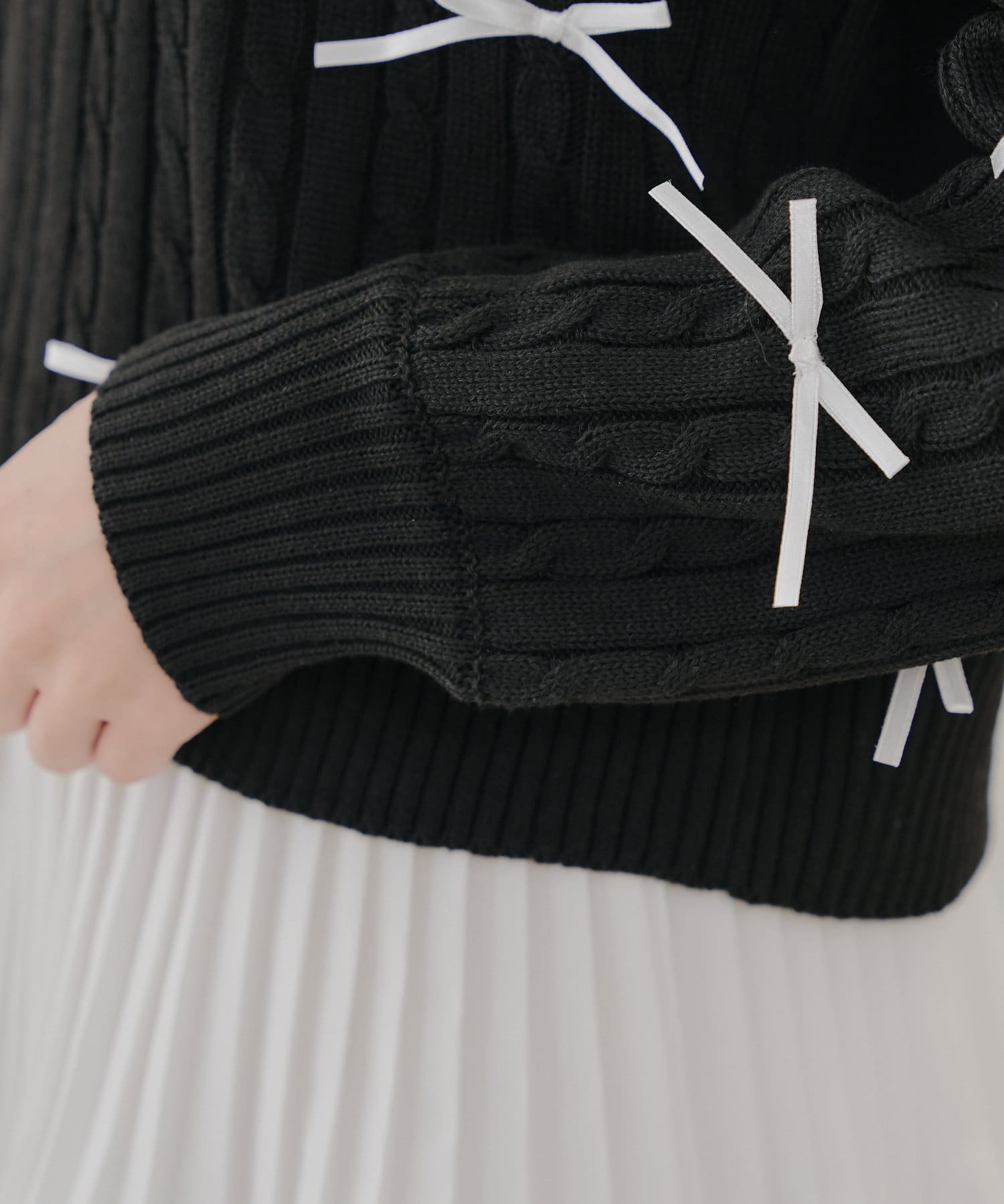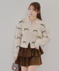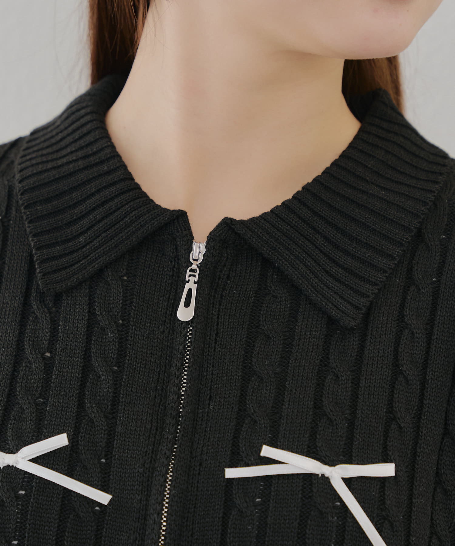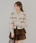 【春の新作】【MARCHES】リボン付ZIPUPニット