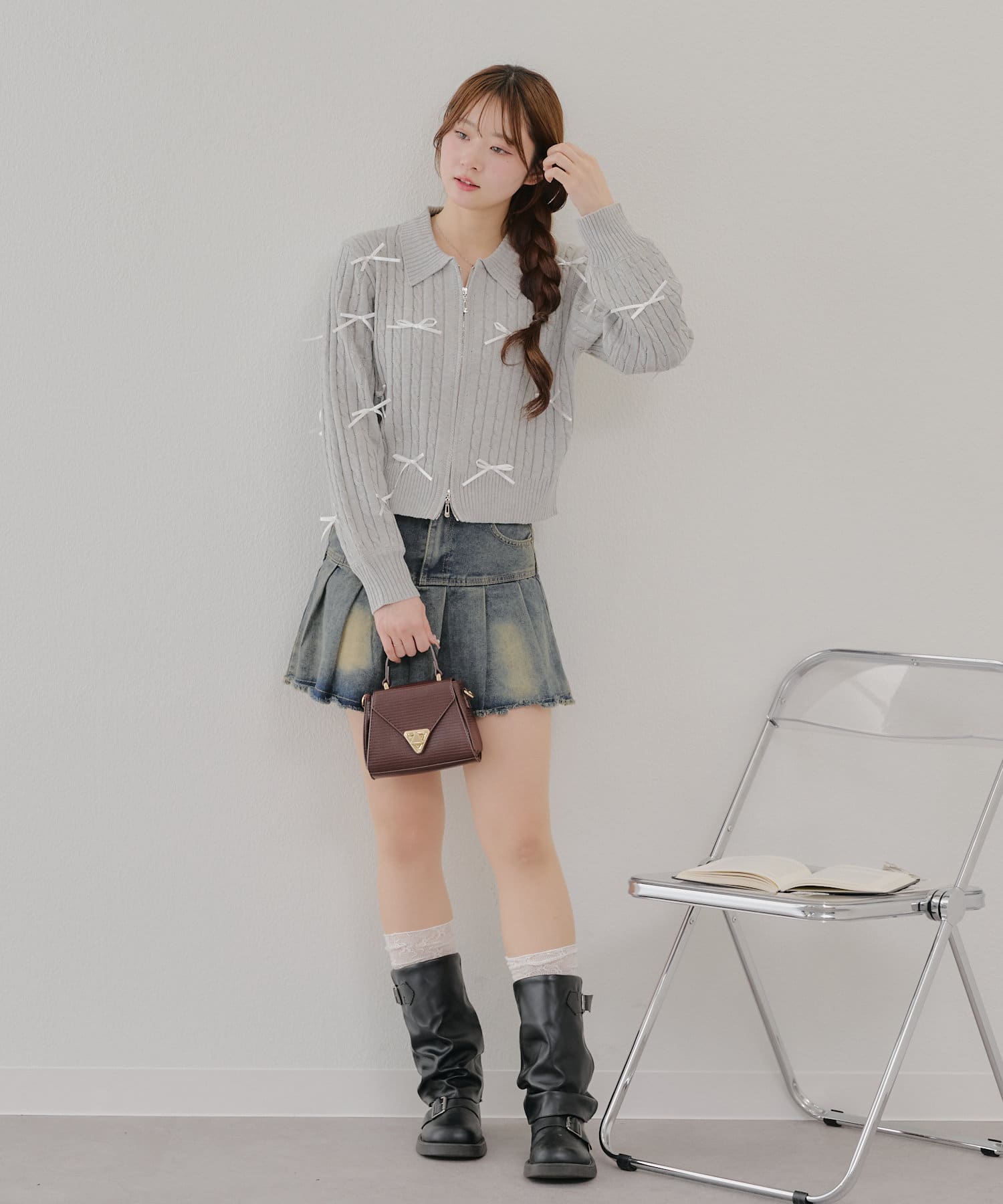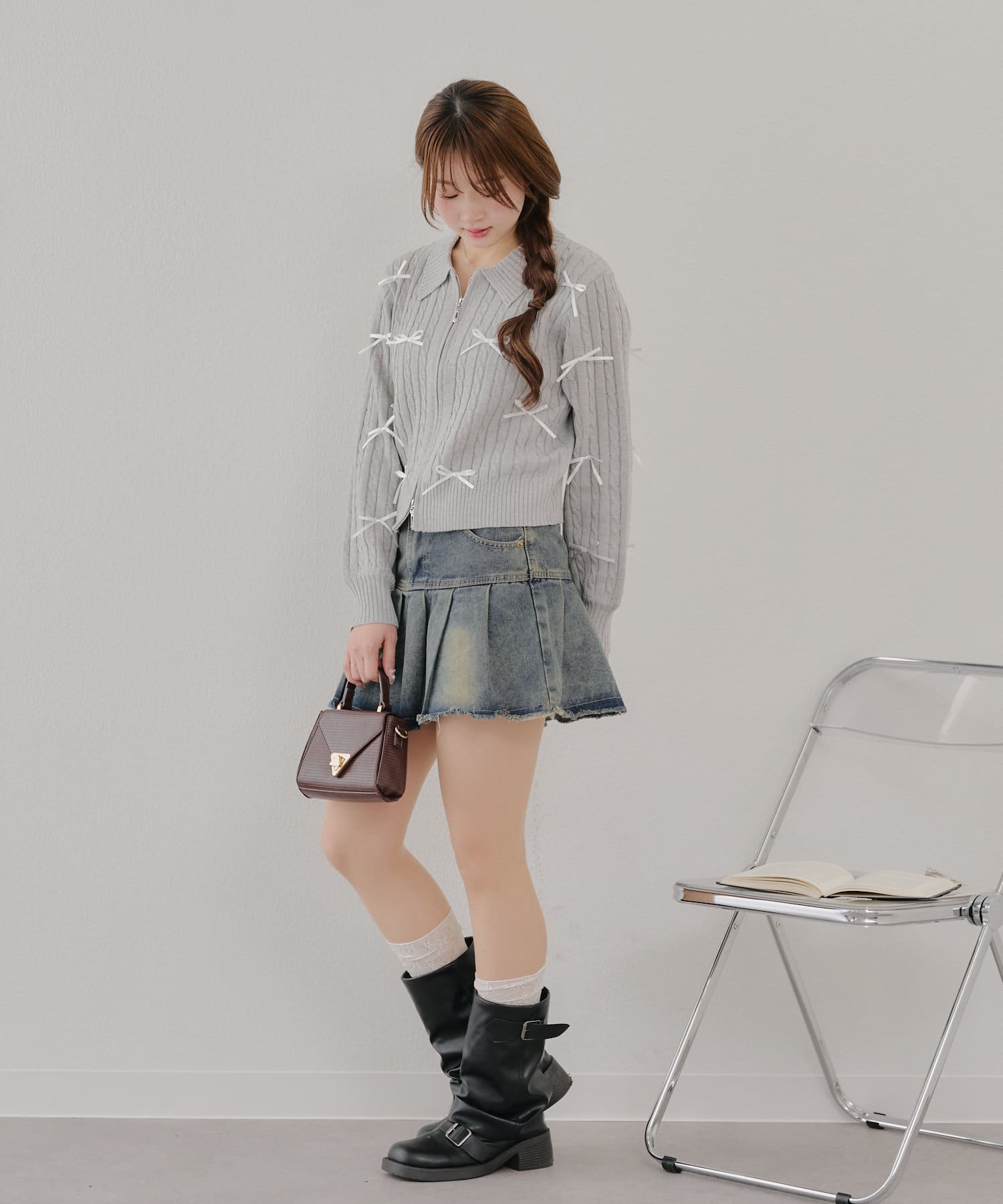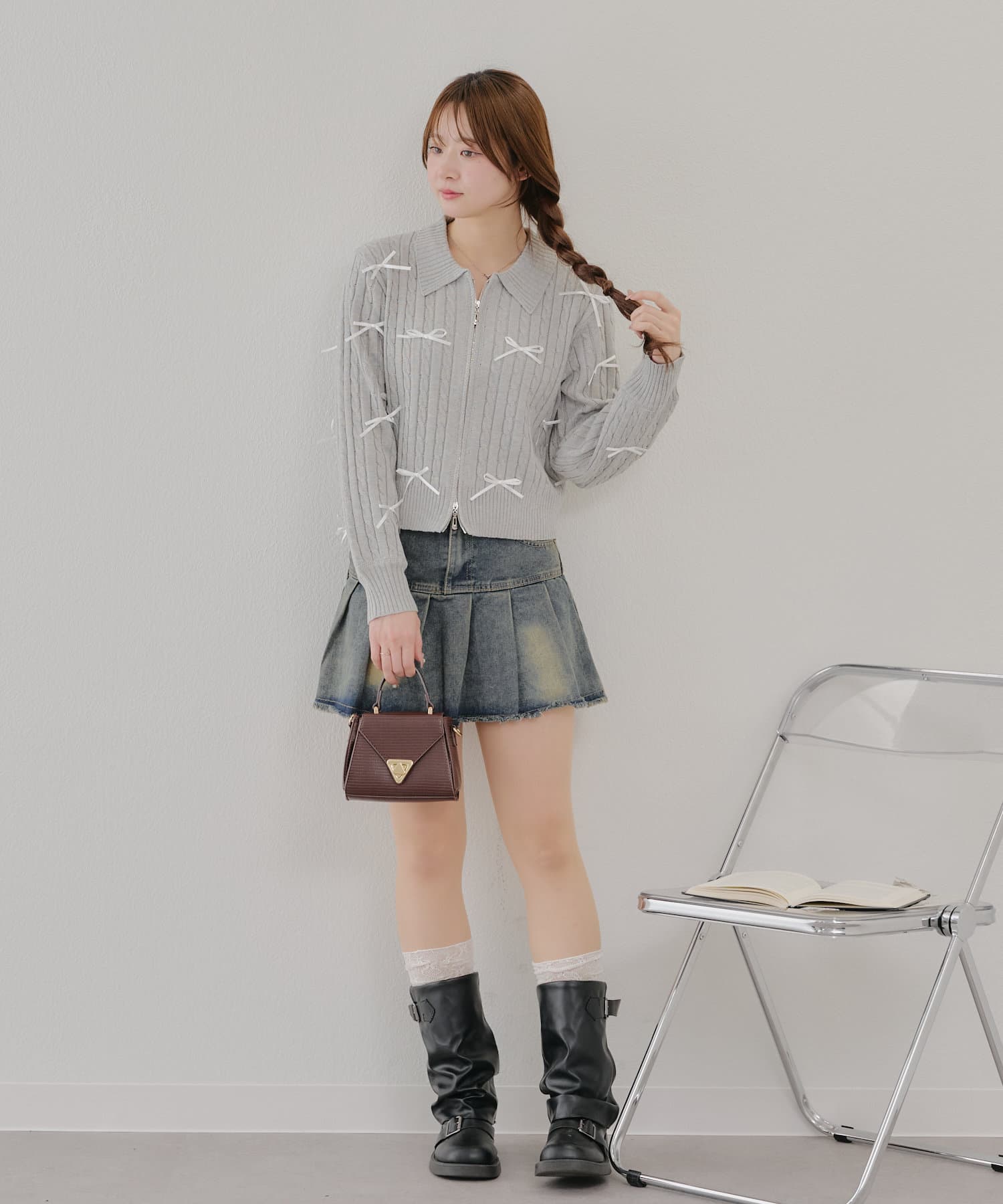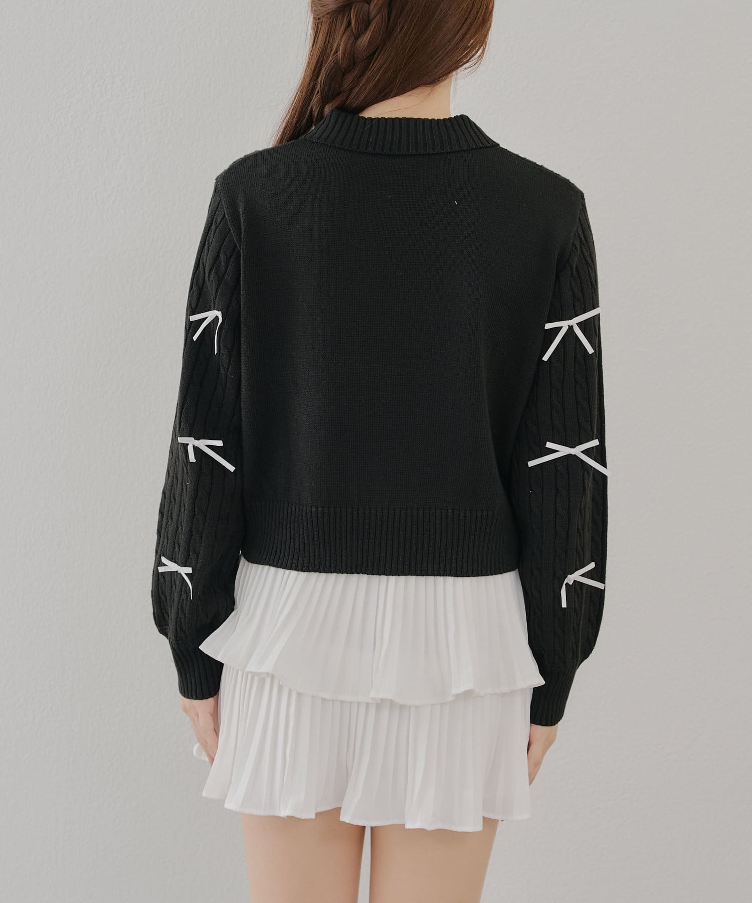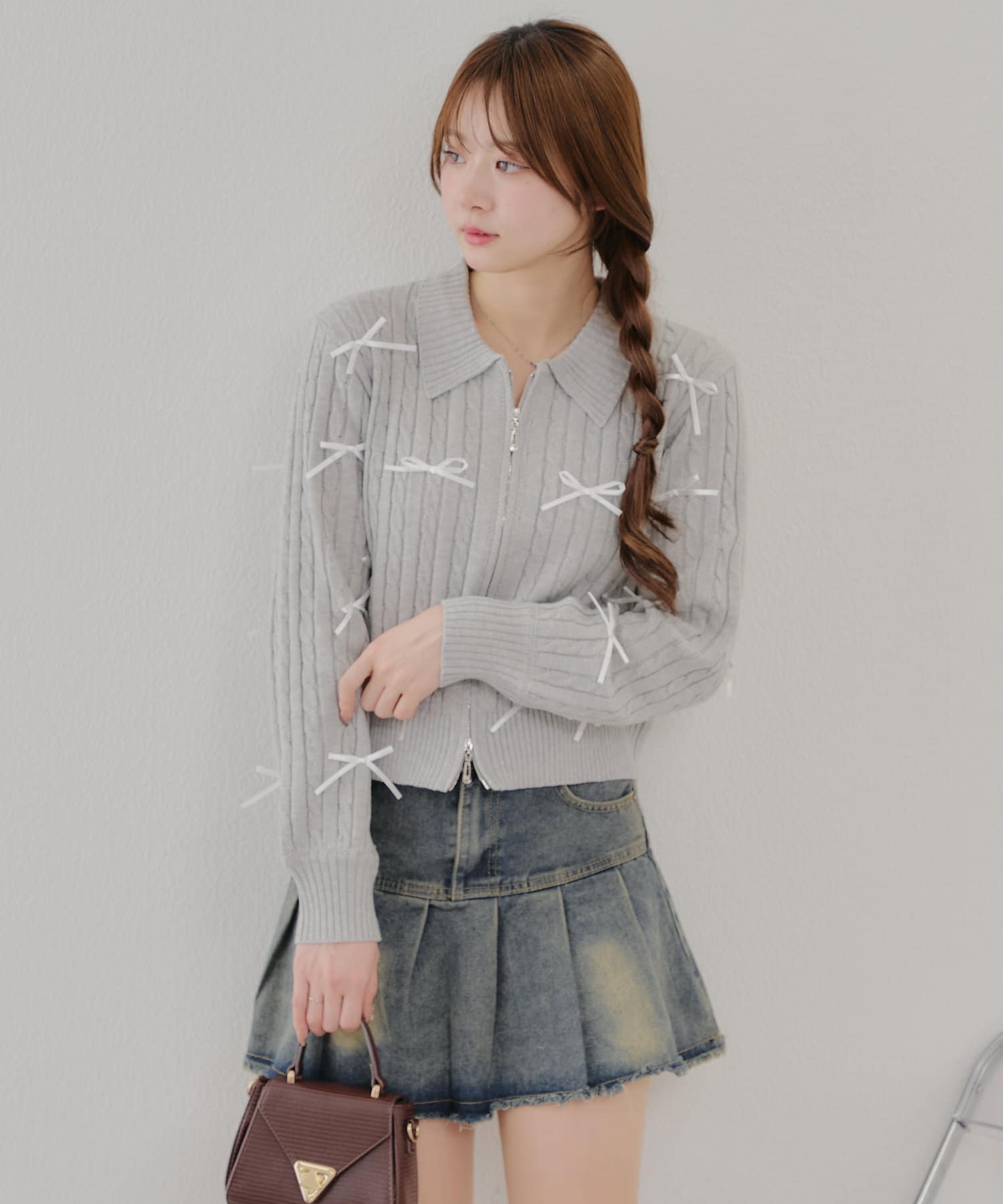 【春の新作】【MARCHES】リボン付ZIPUPニット