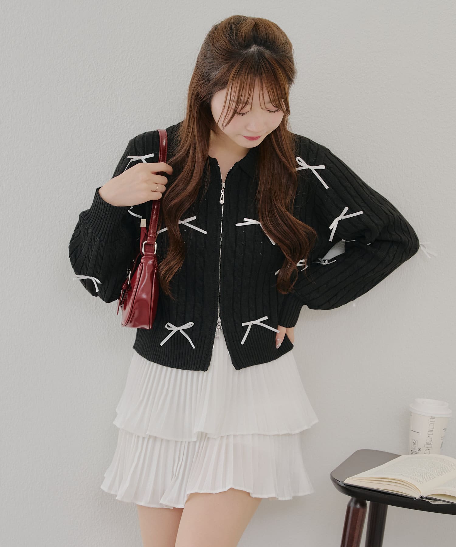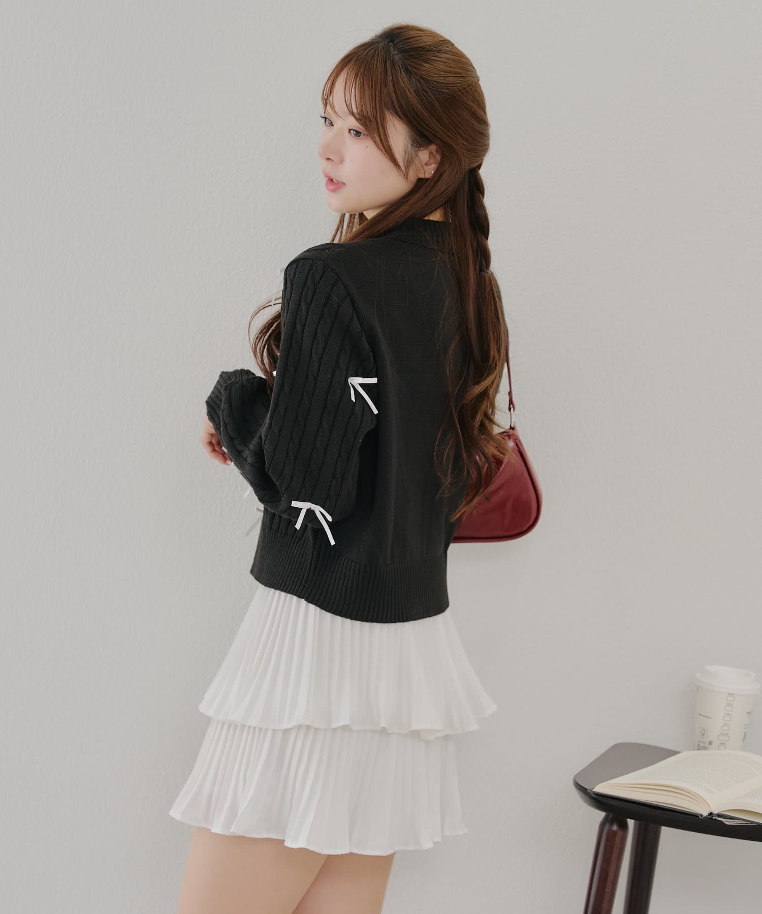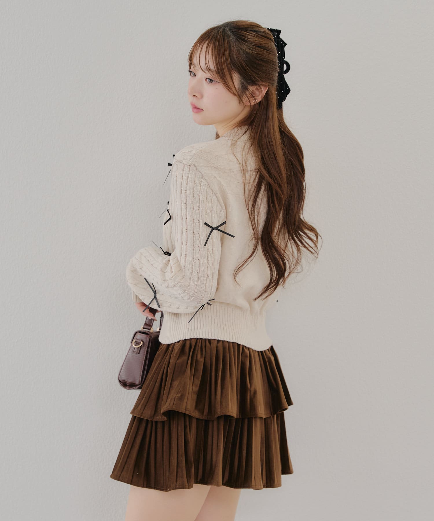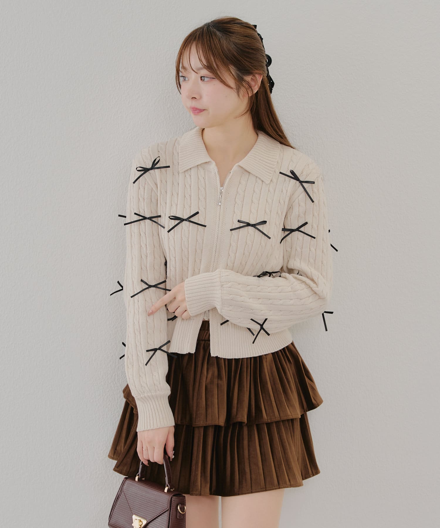 ・大人可愛いトレンドのリボン付きカーディガン