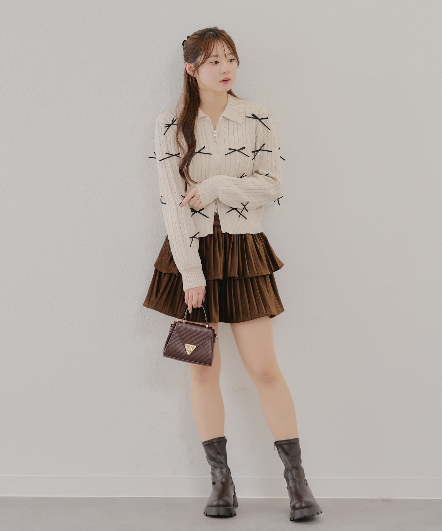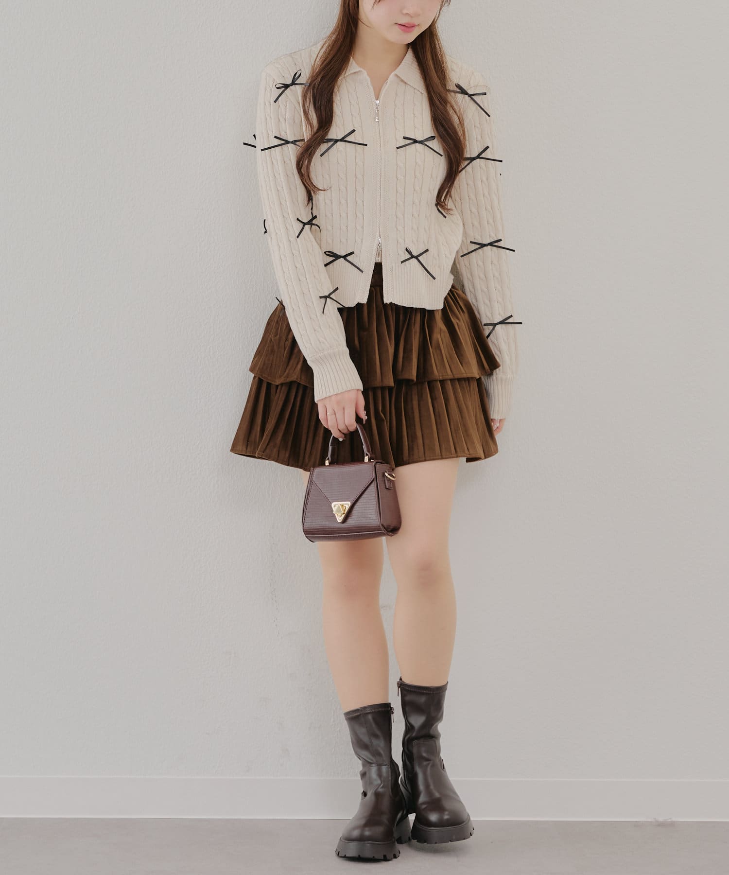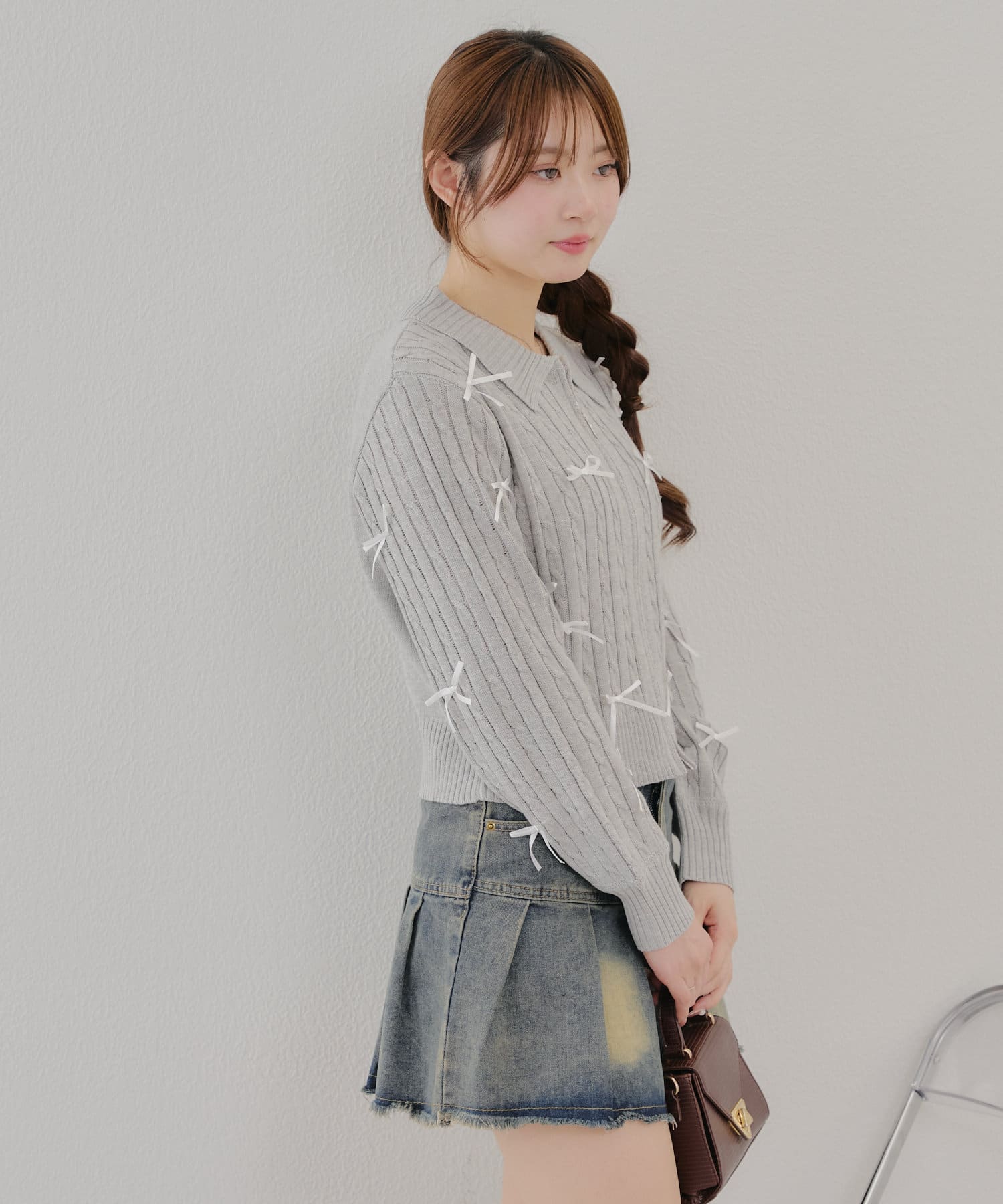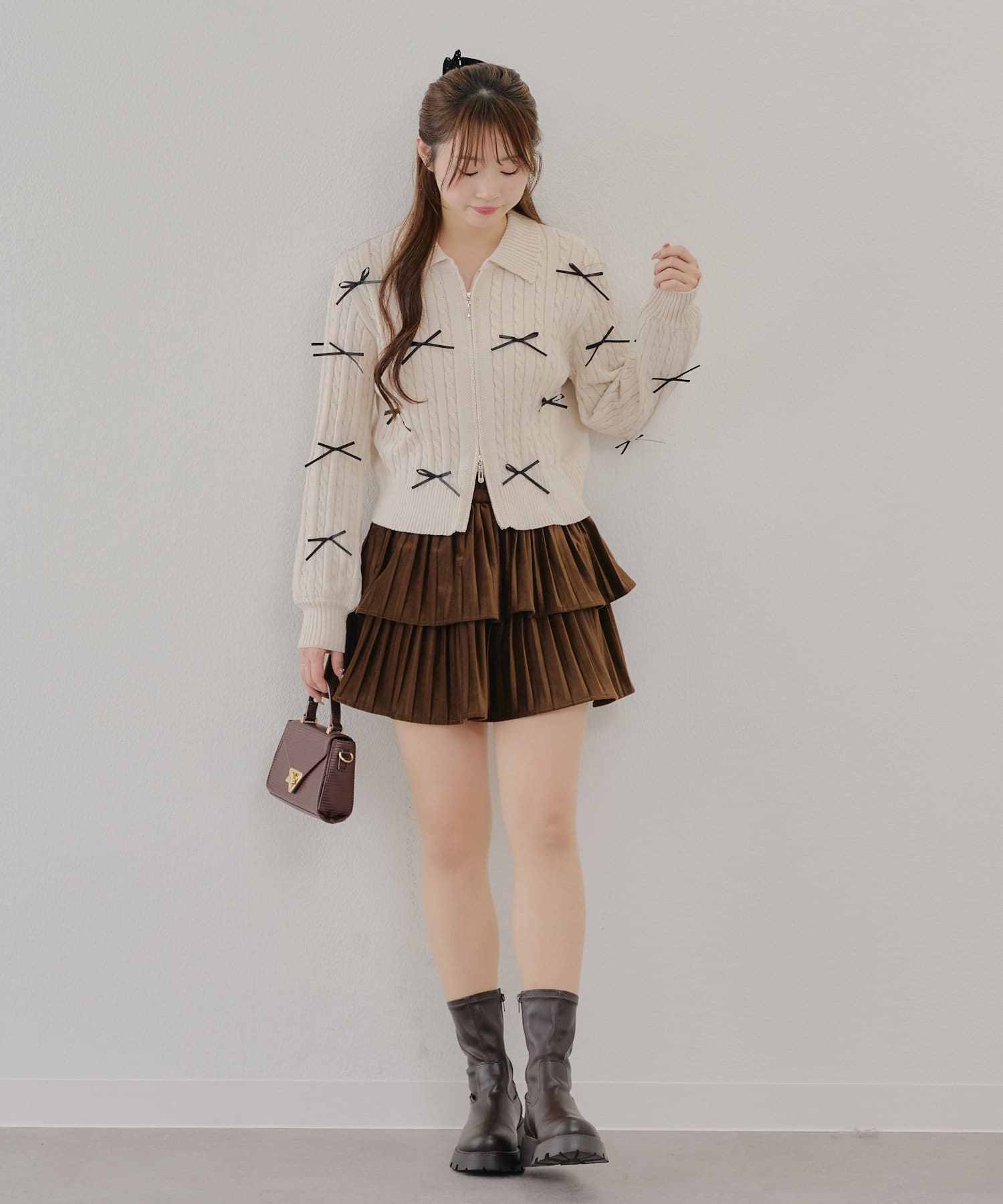 ・大人可愛いトレンドのリボン付きカーディガン