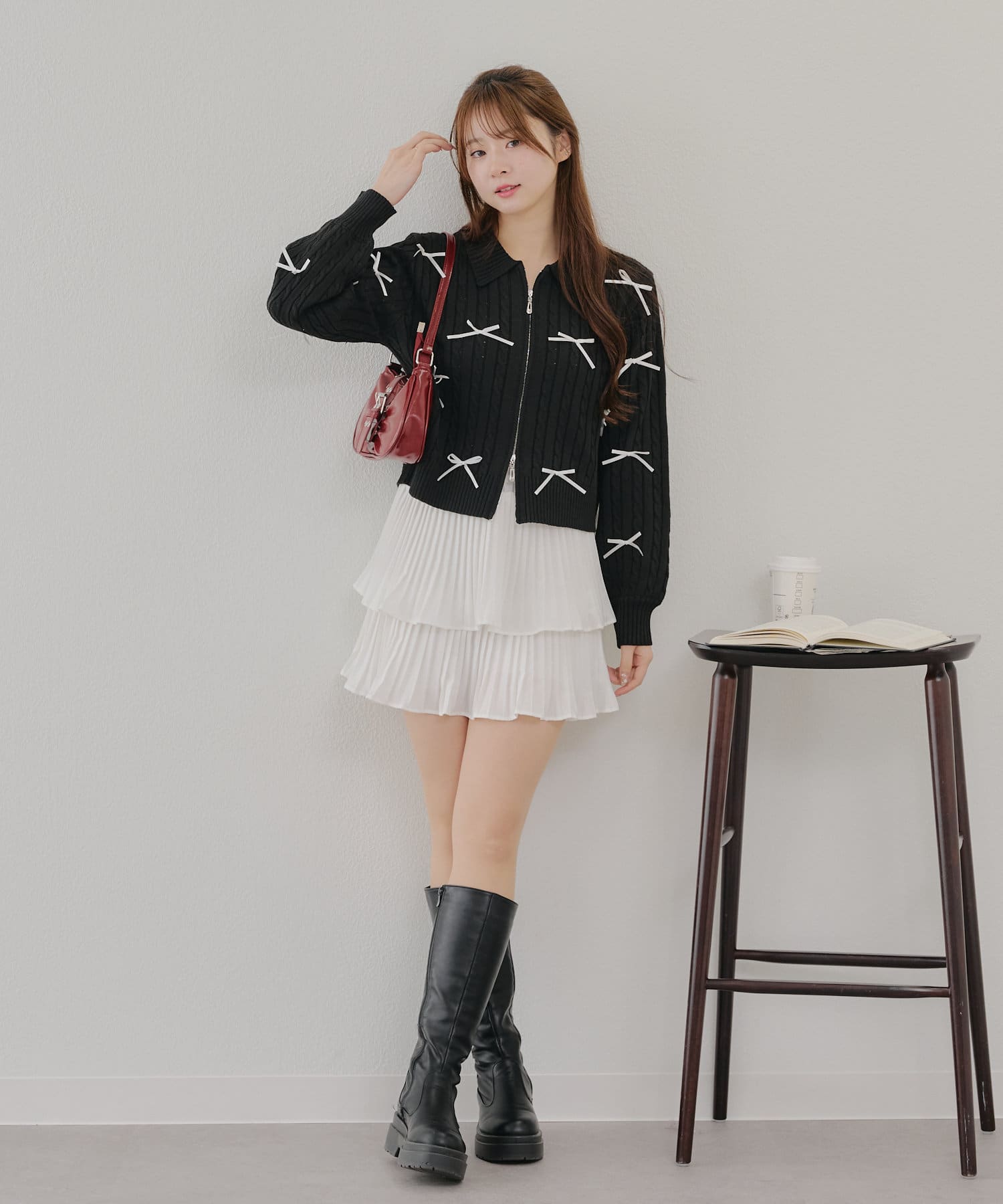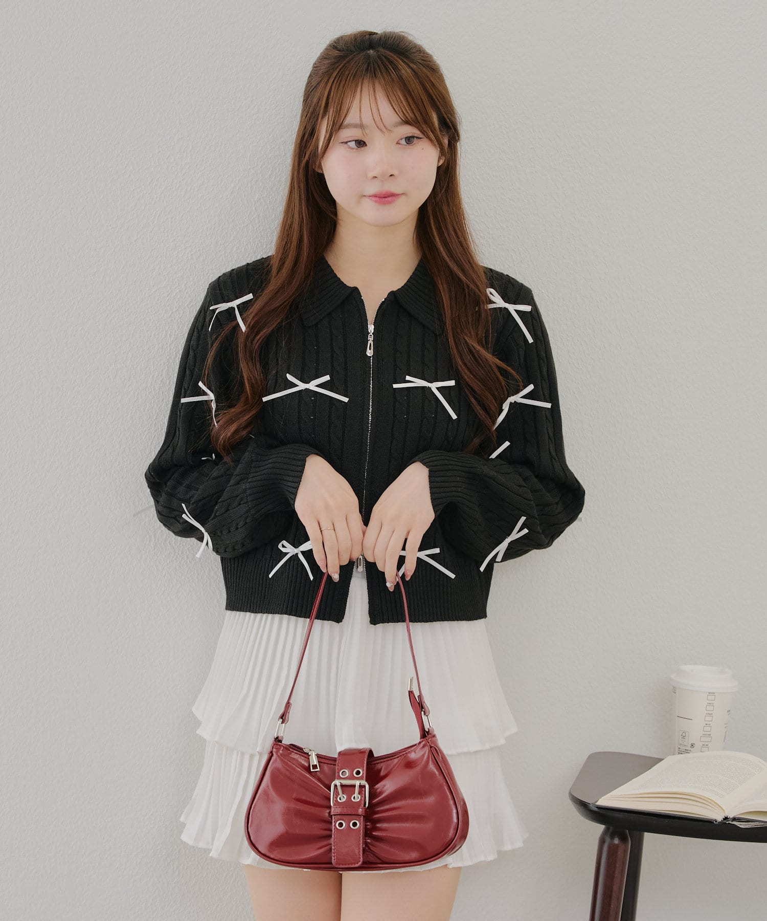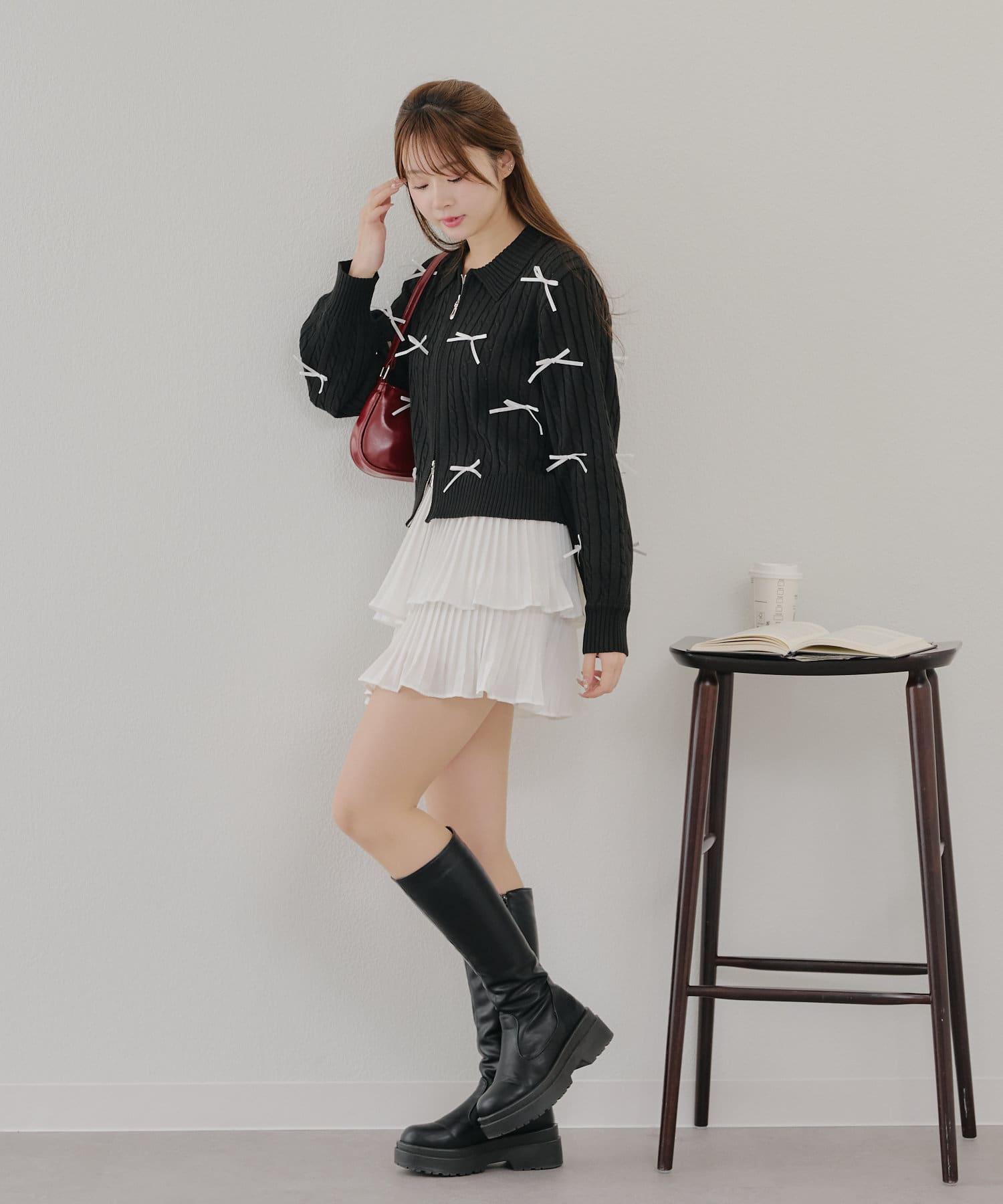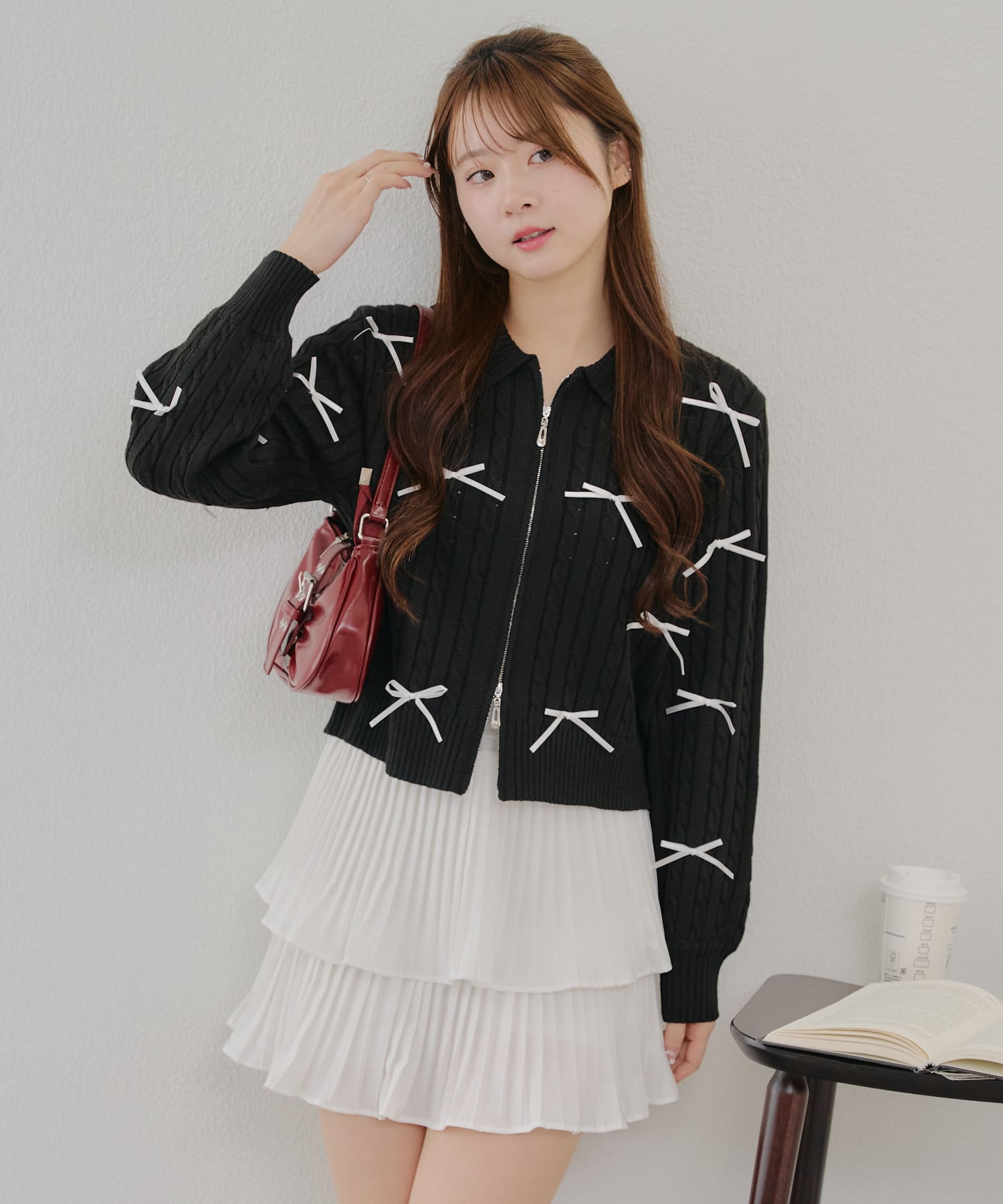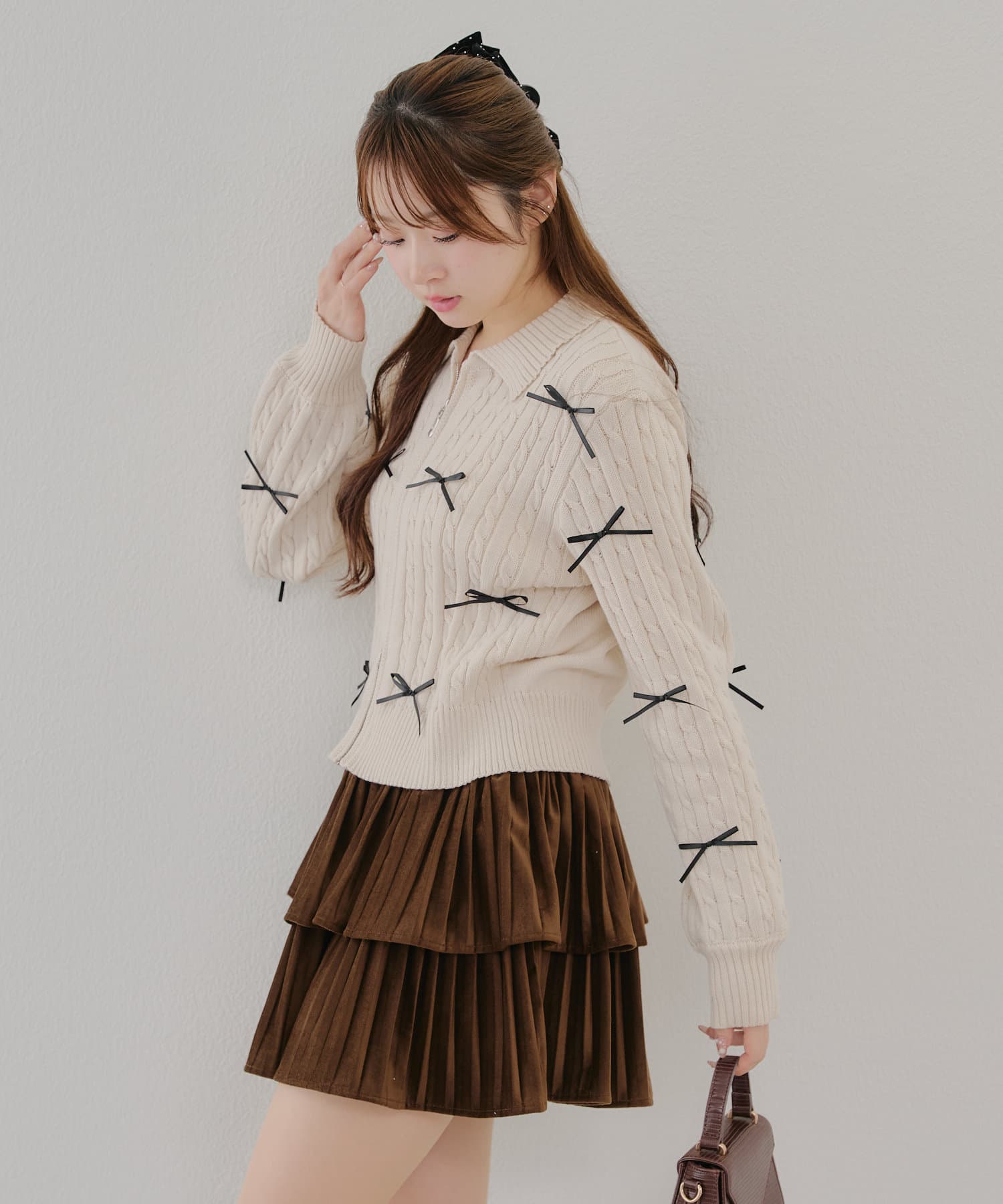 ・大人可愛いトレンドのリボン付きカーディガン