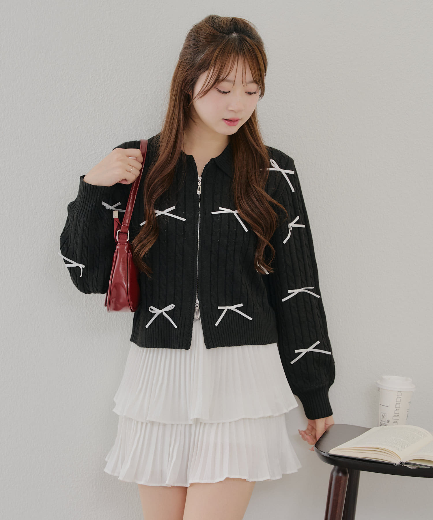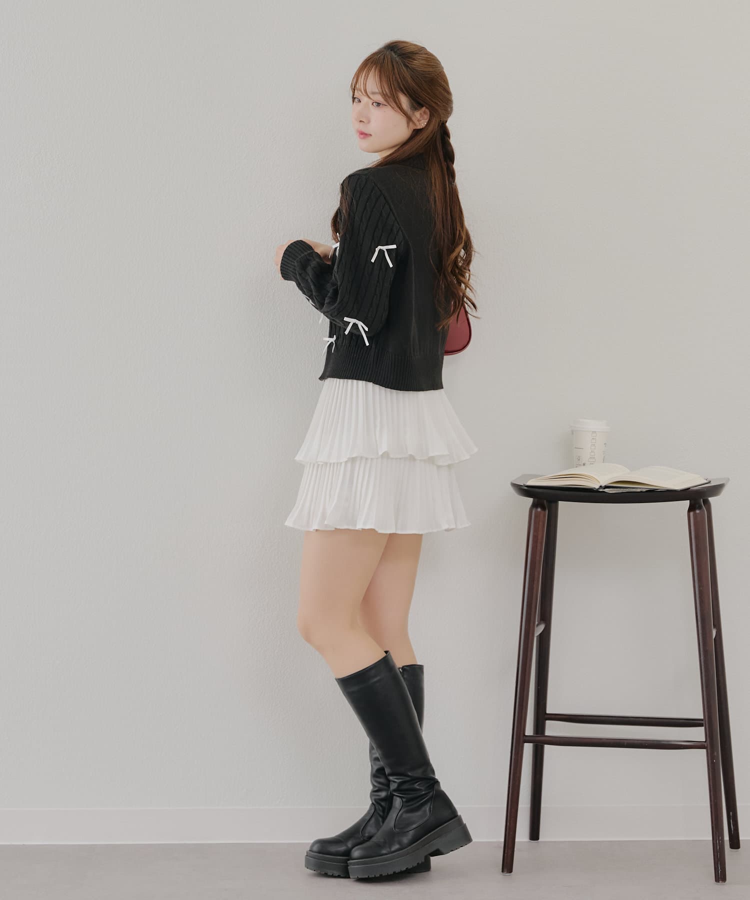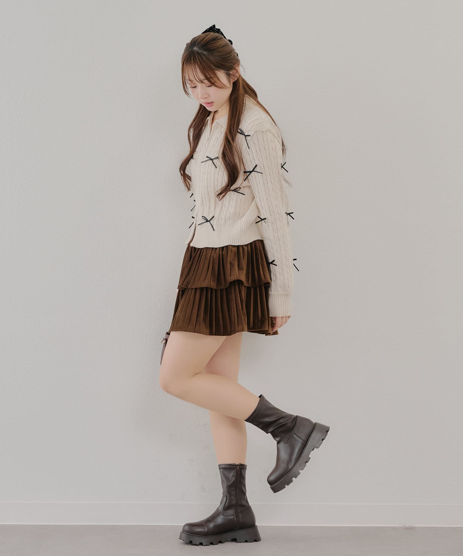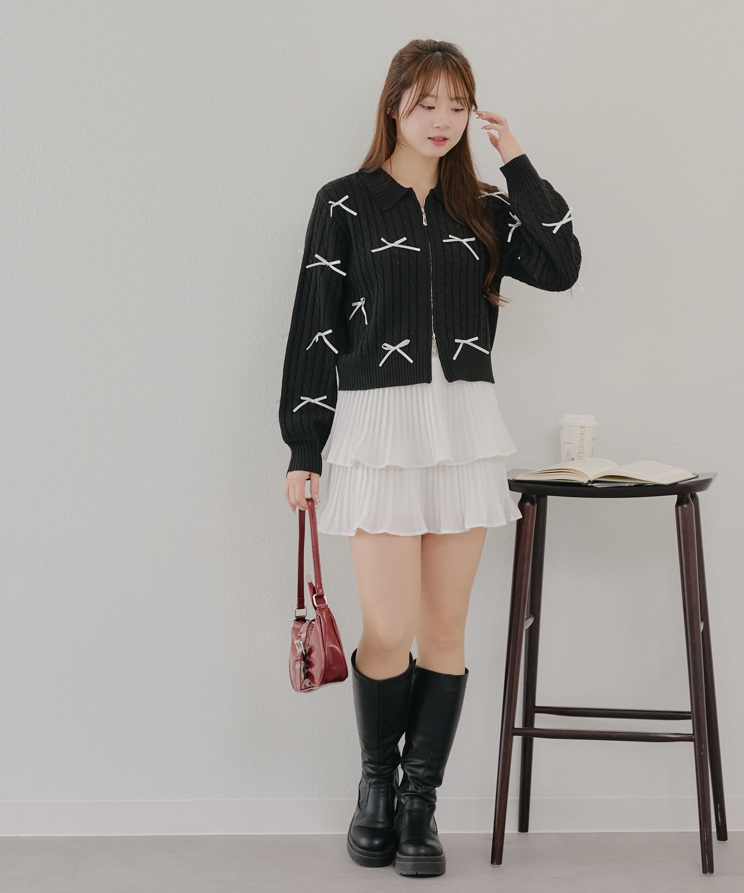 ・大人可愛いトレンドのリボン付きカーディガン