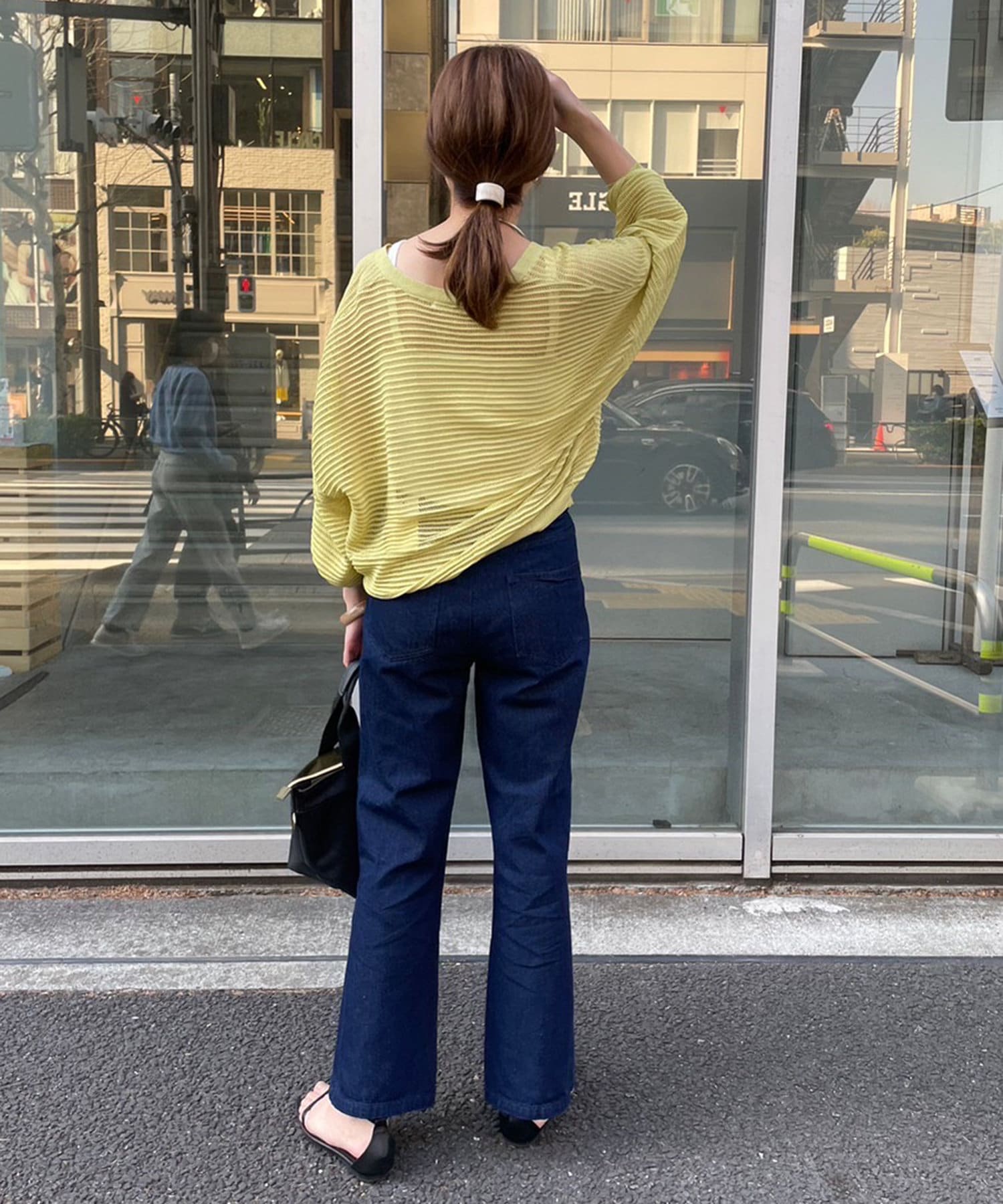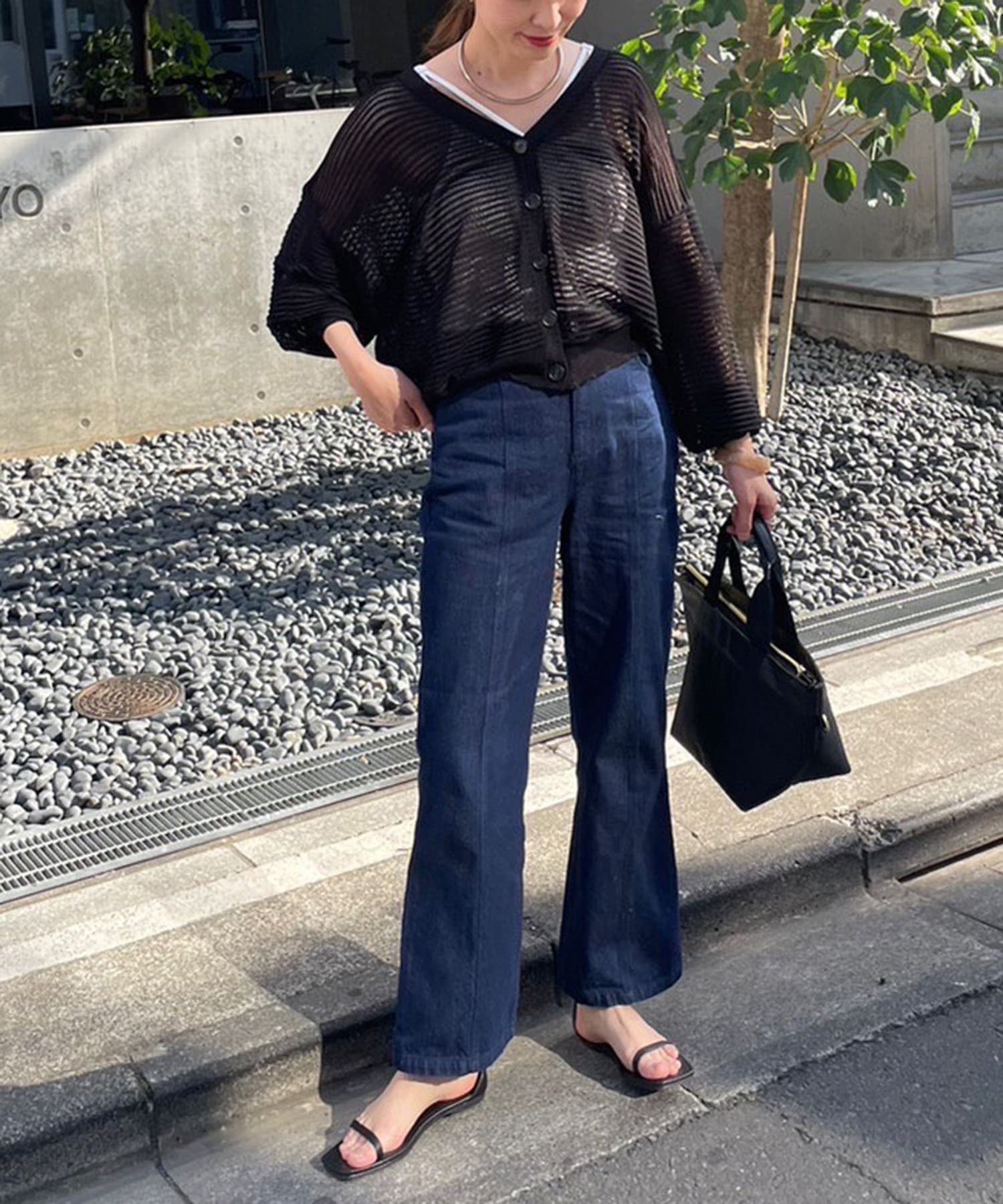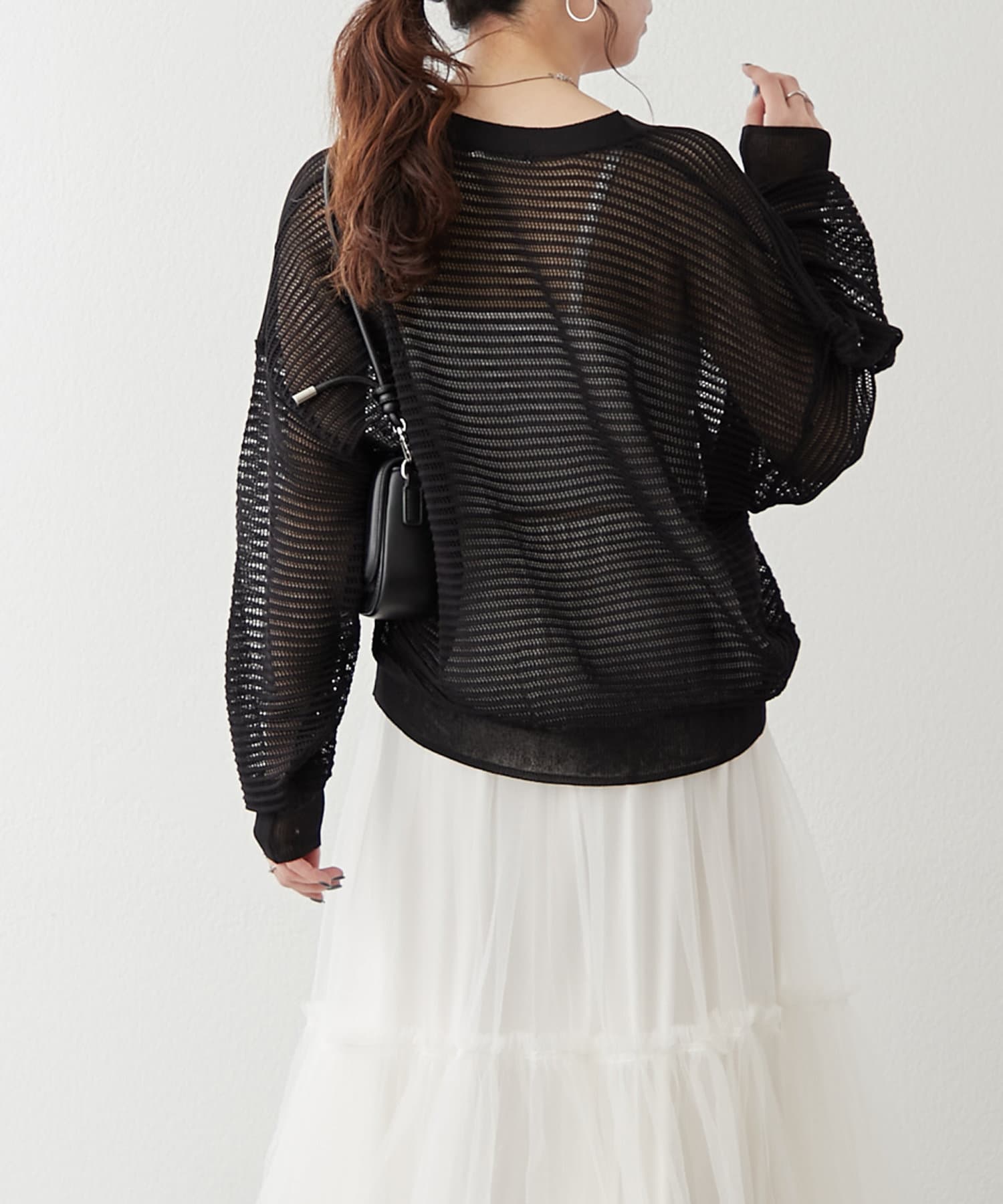 ・カジュアルにロゴTを合わせ、透け感を楽しむコーデもしていただけます。