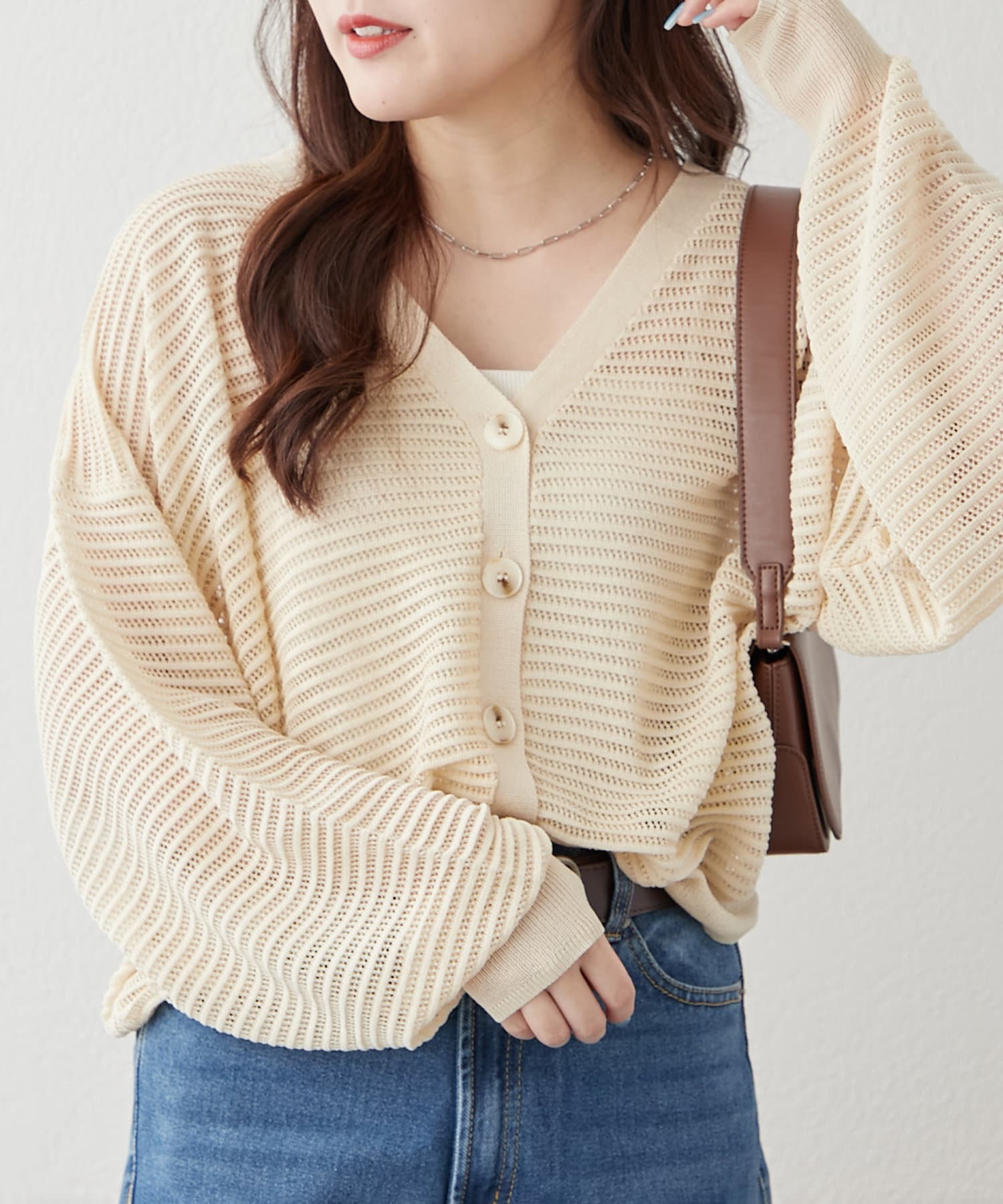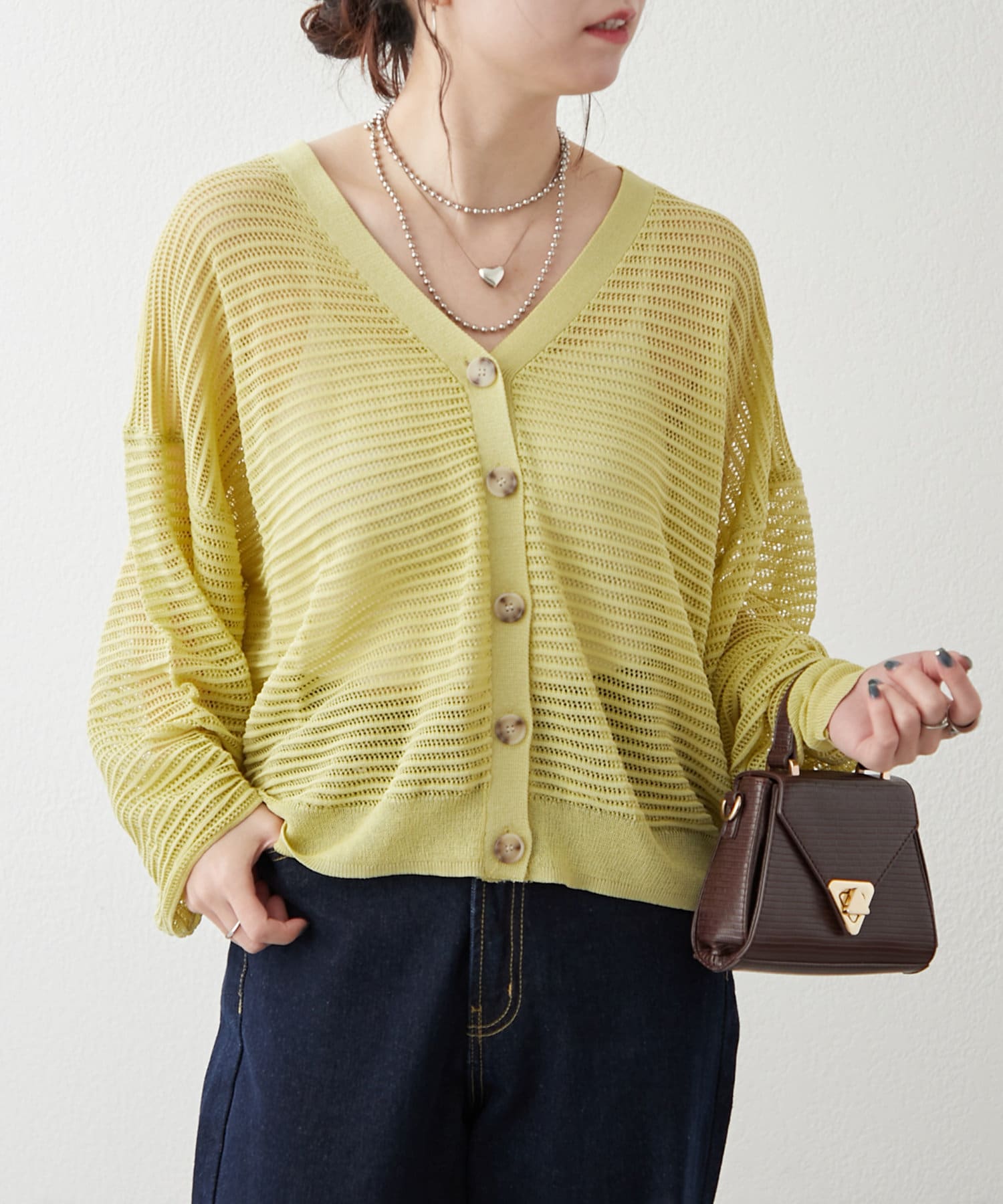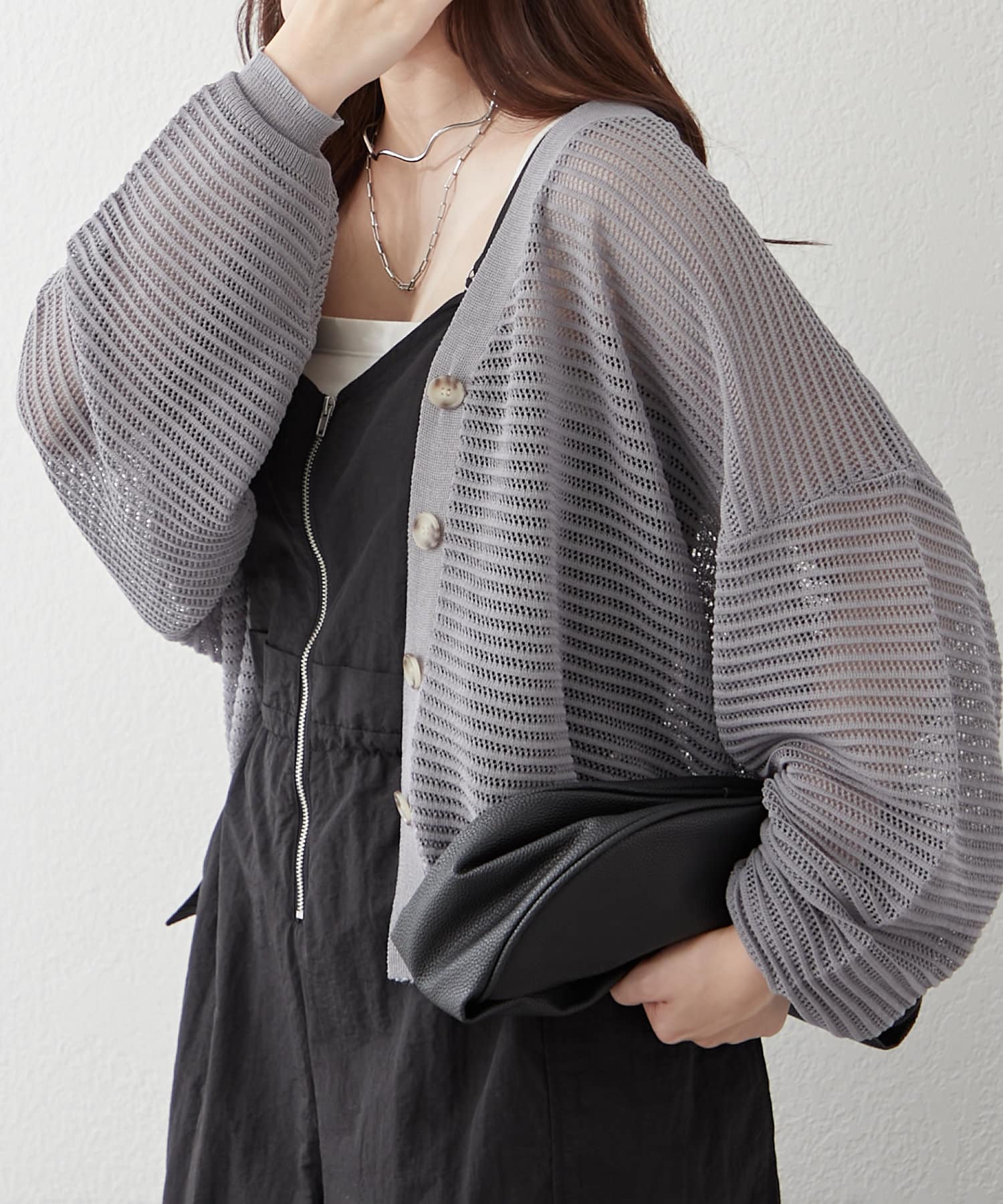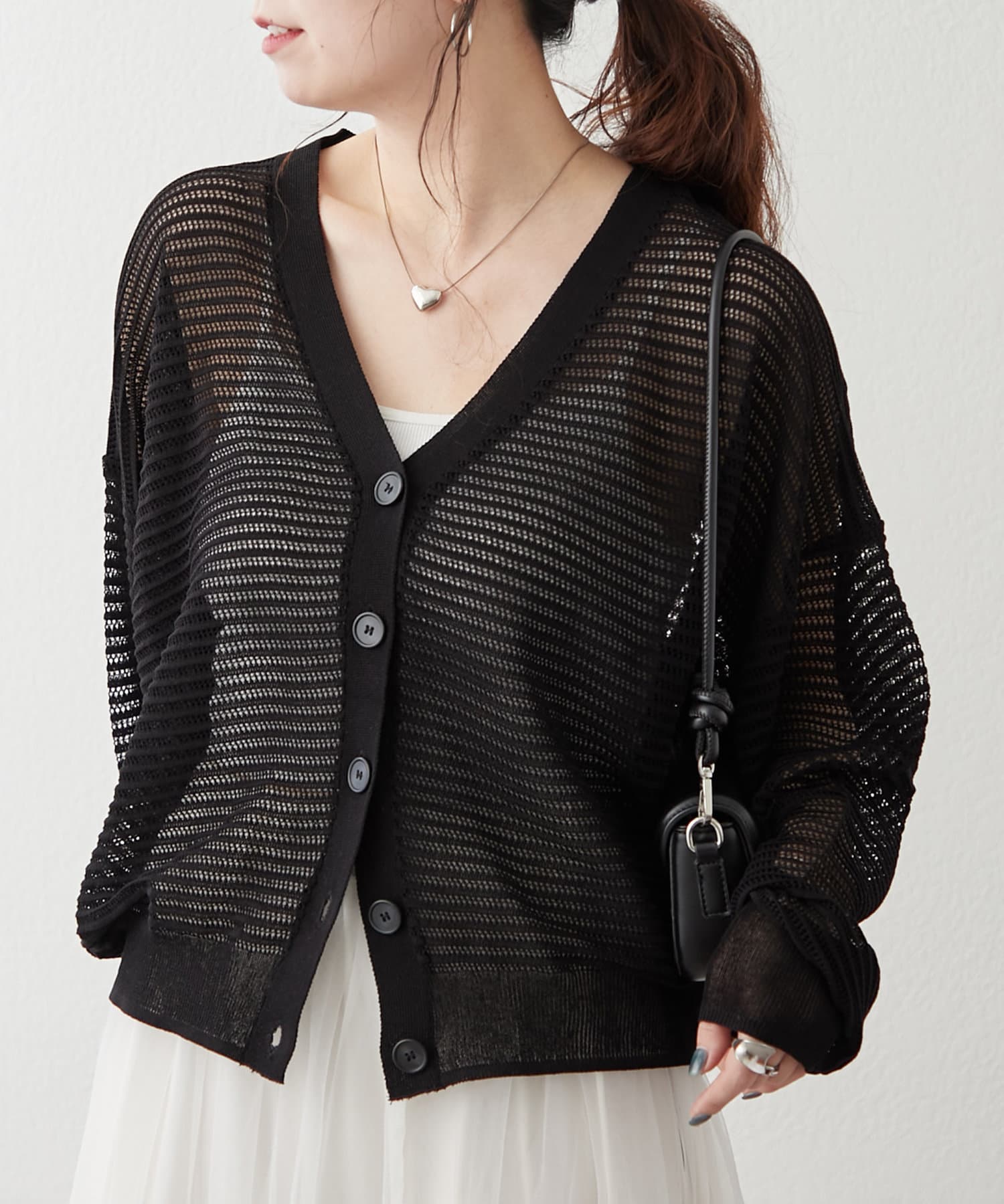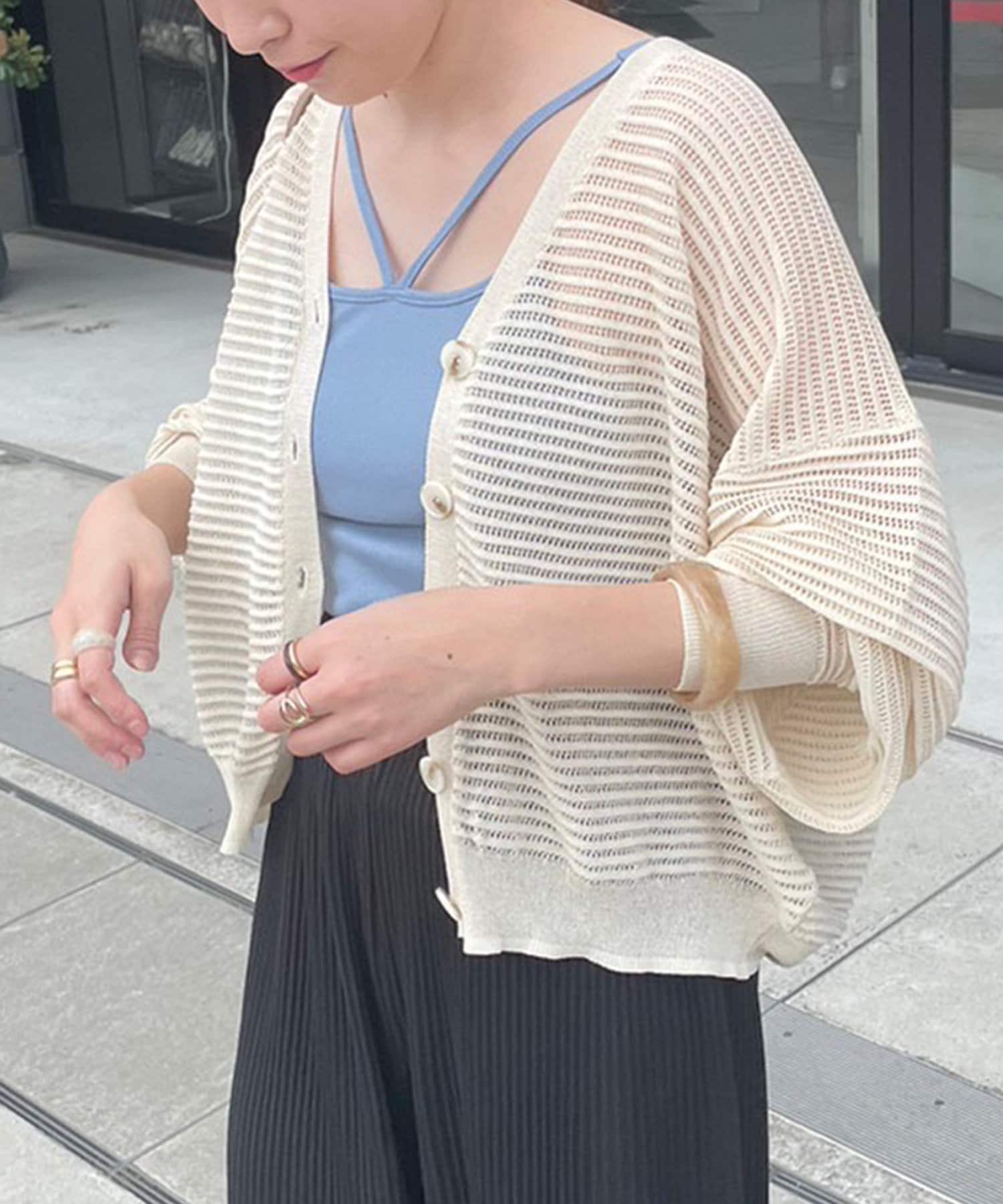 ・ほどよい透け感のある春夏にぴったりなカーディガンです。