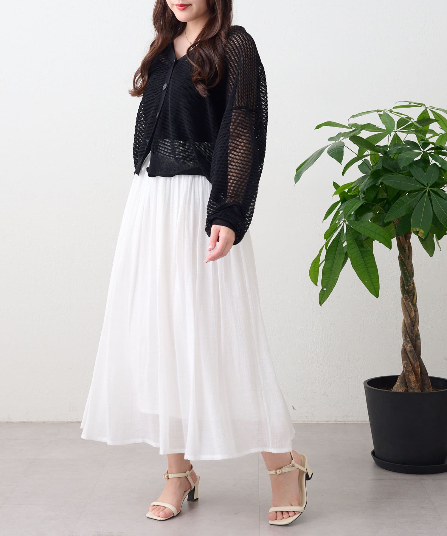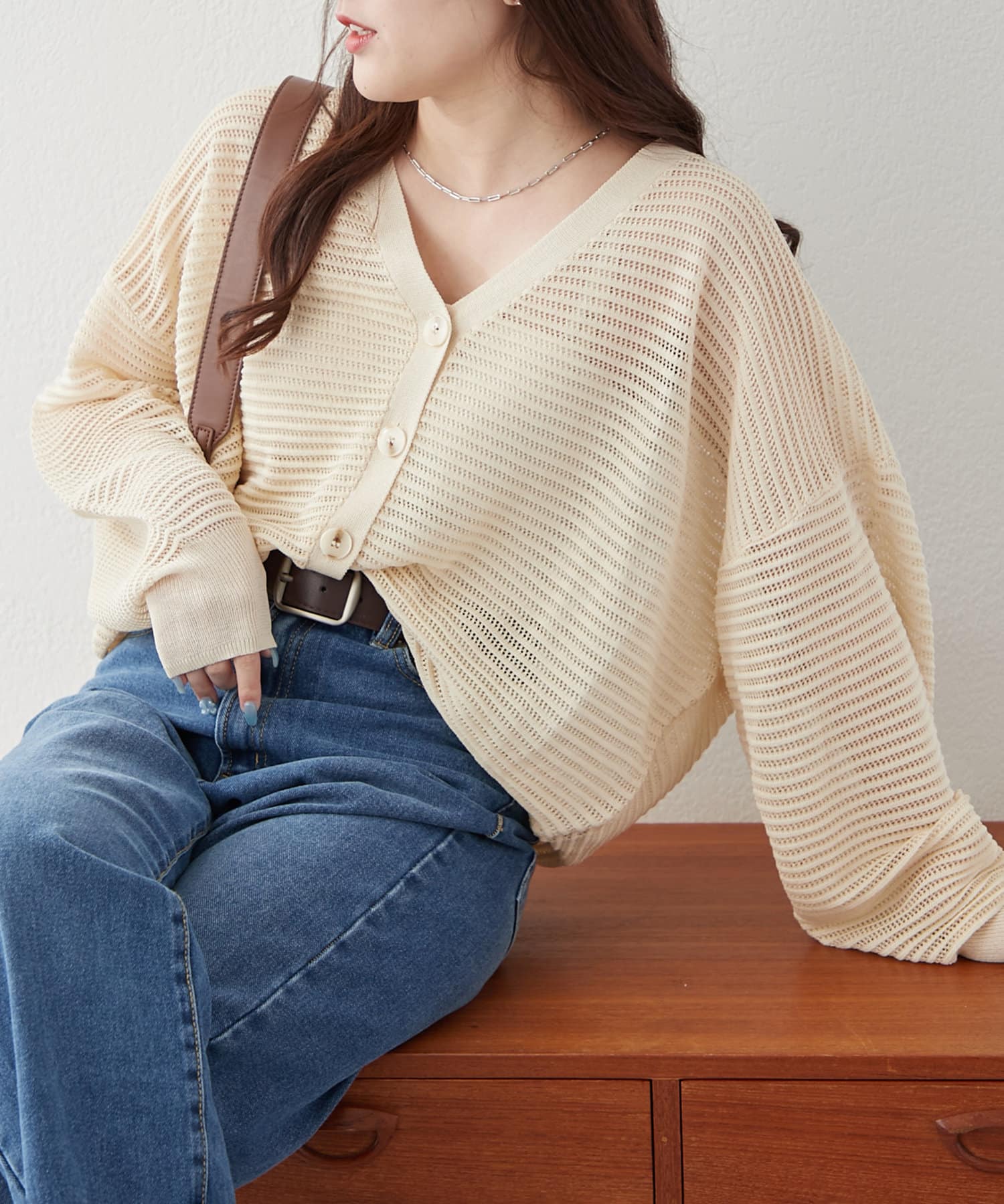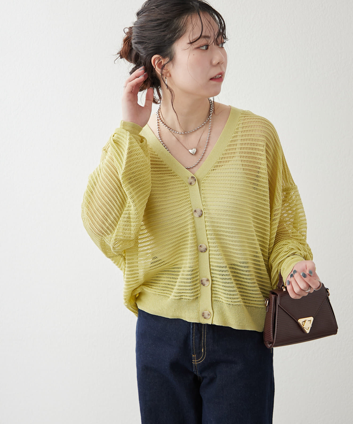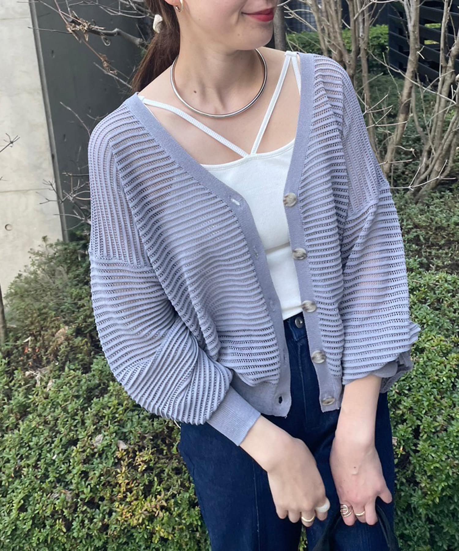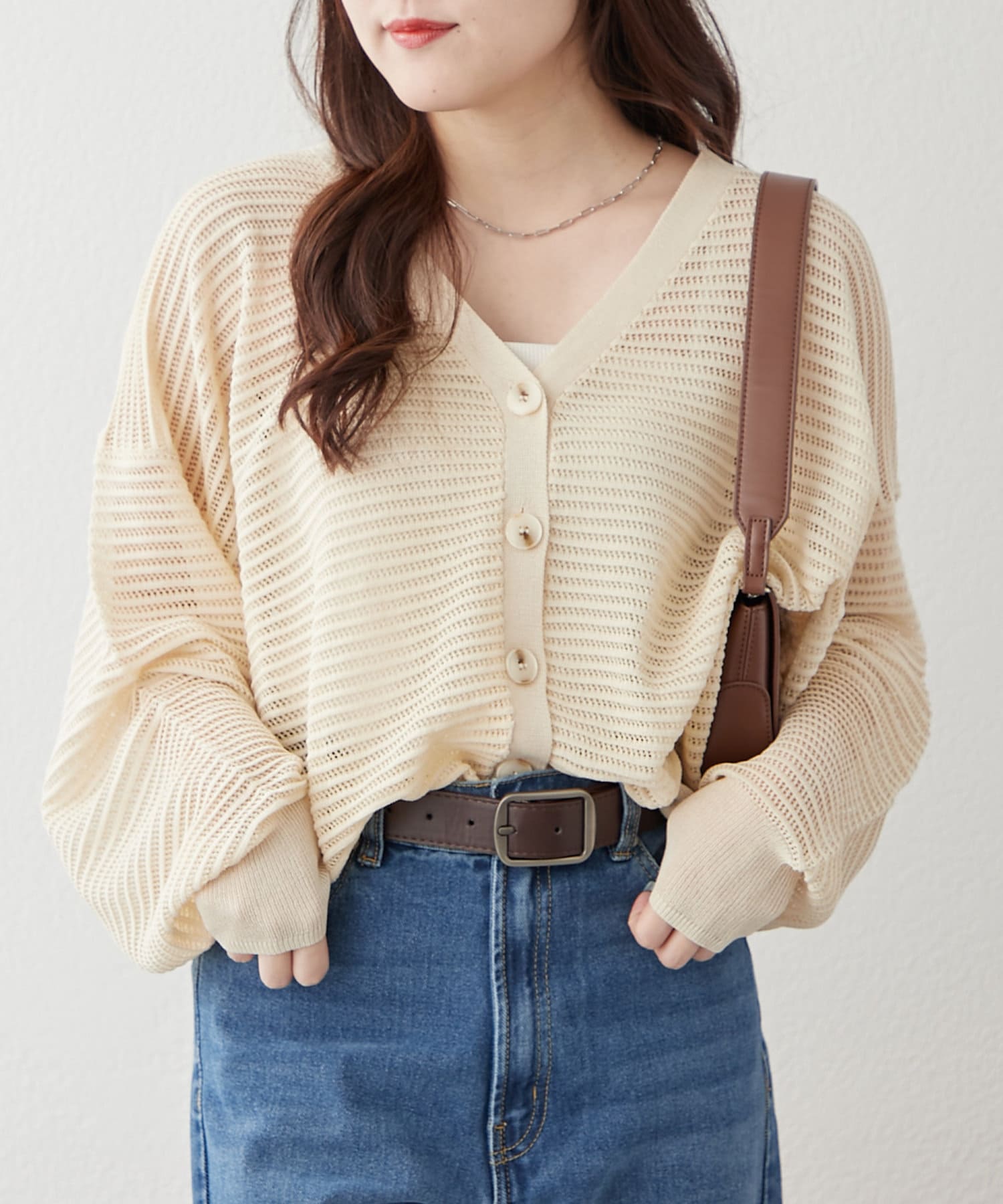 ・ほどよい透け感のある春夏にぴったりなカーディガンです。