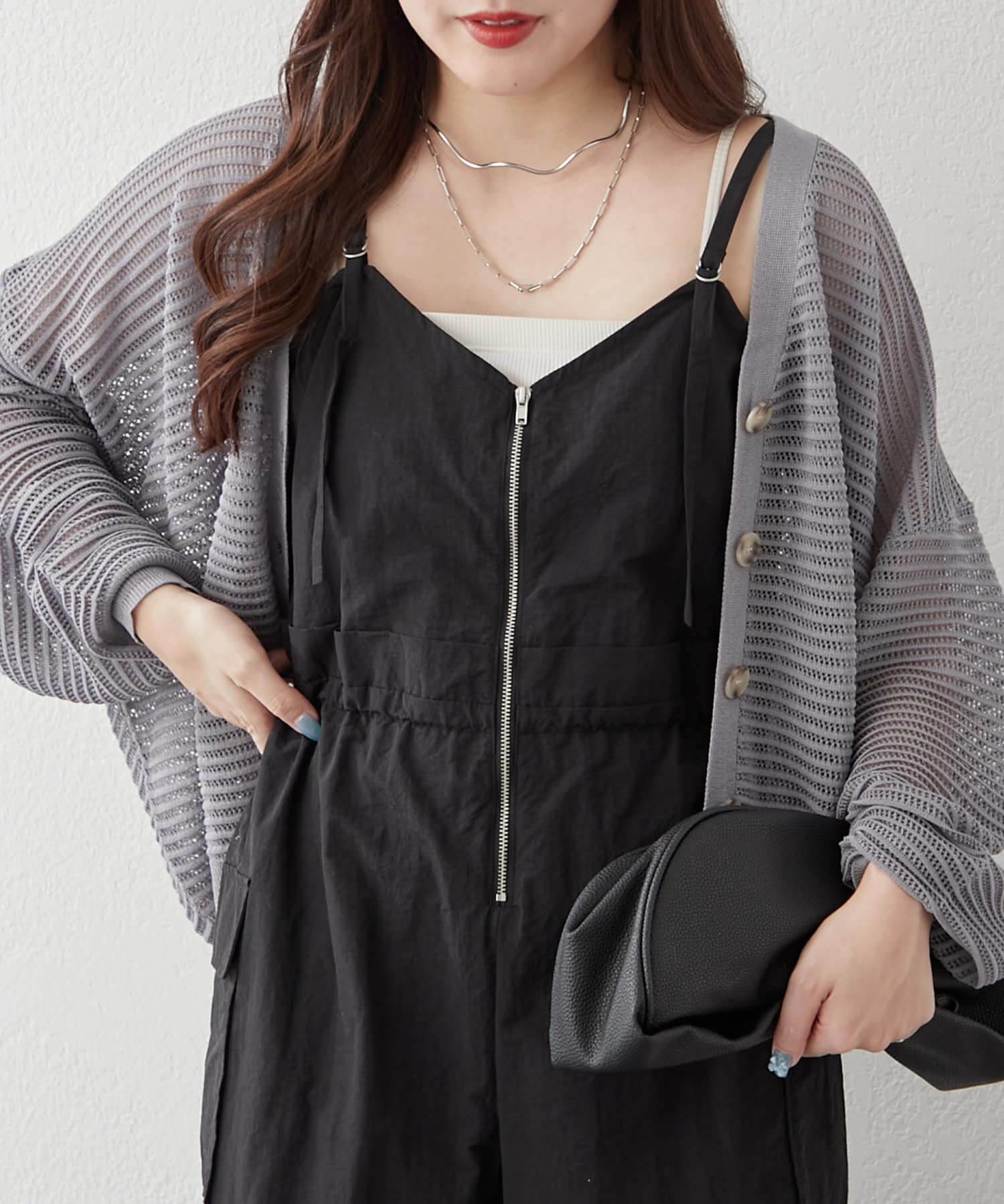 ・すっきりとキャミソールやタンクトップの上に羽織るのがおすすめ。