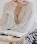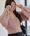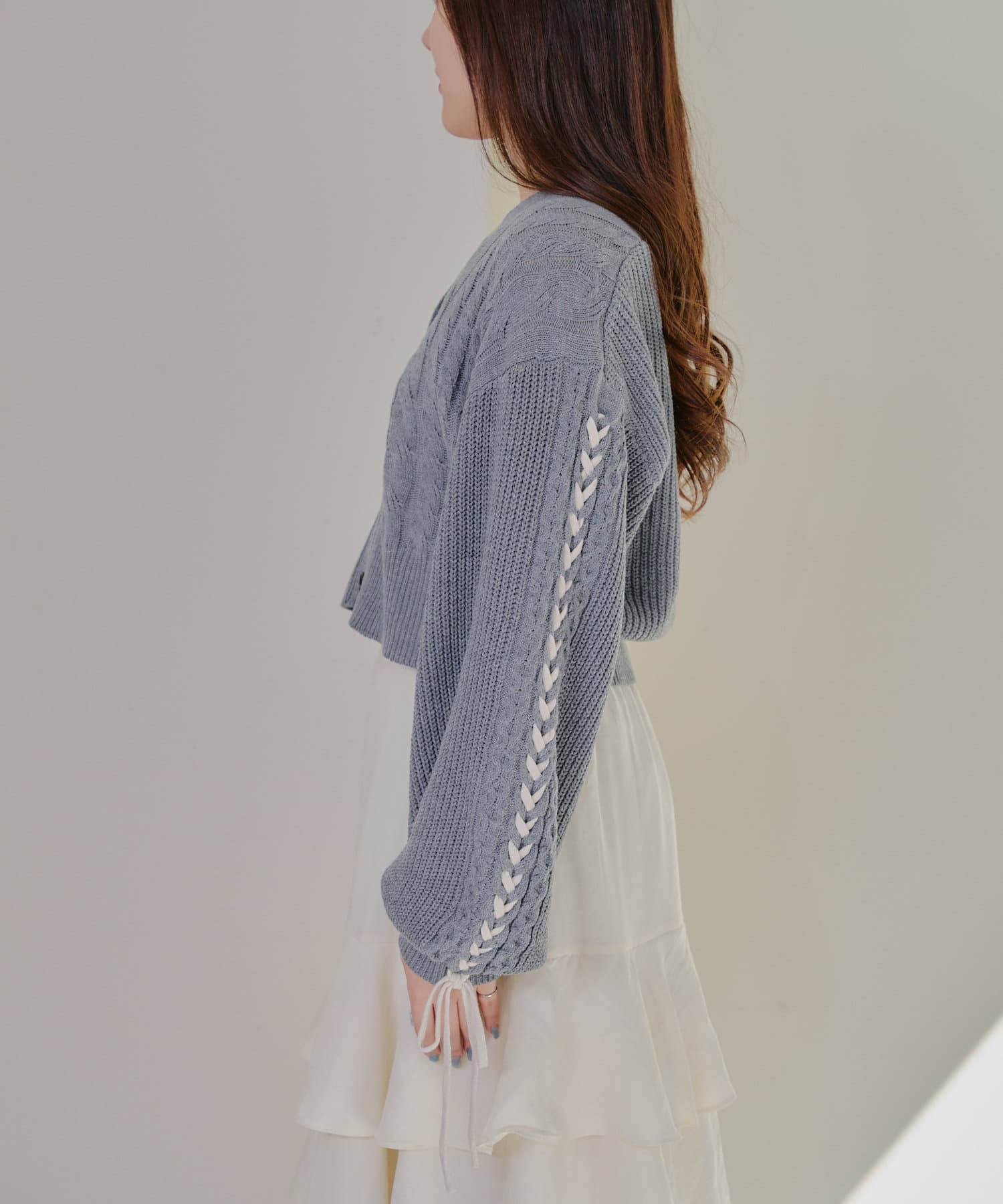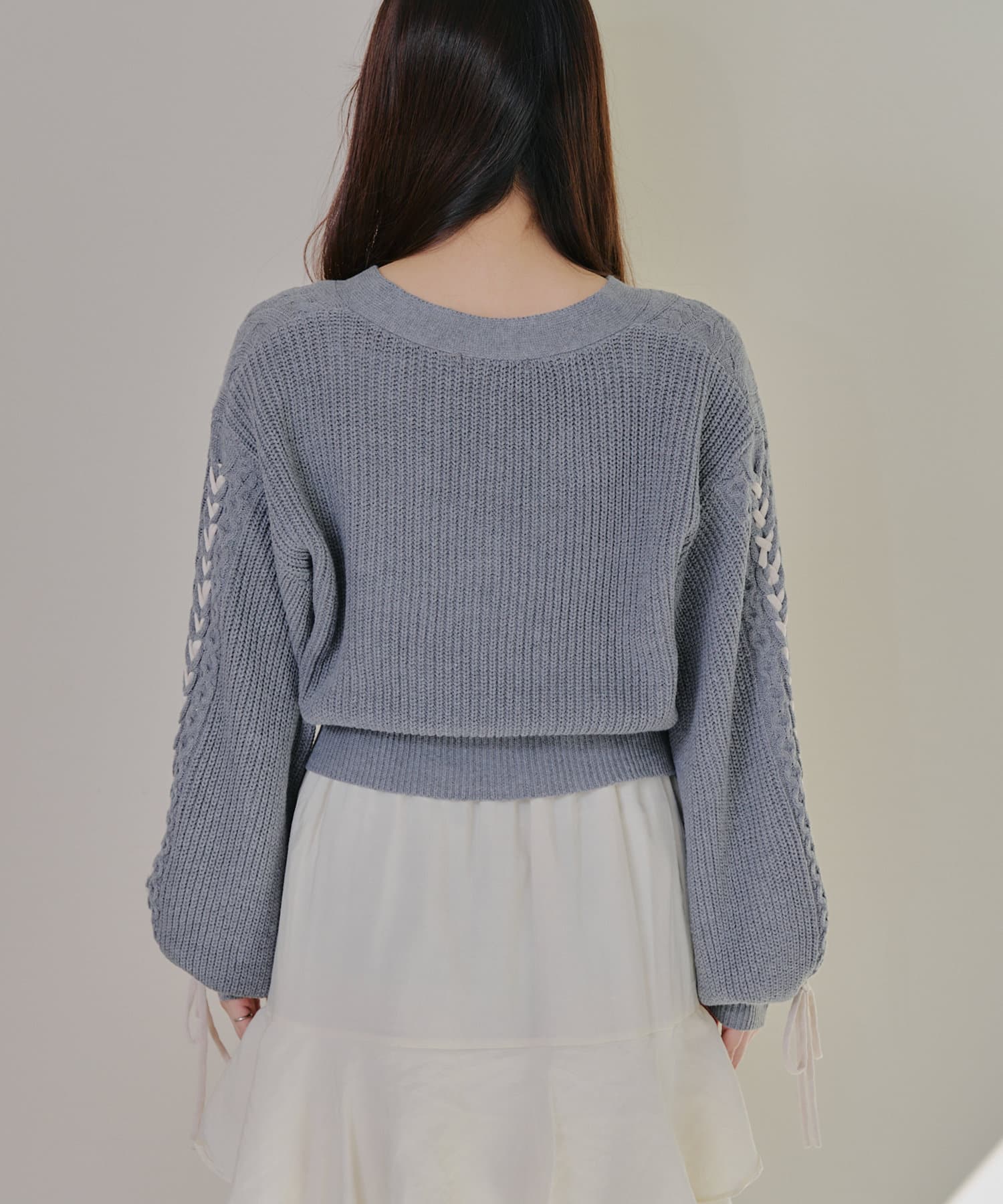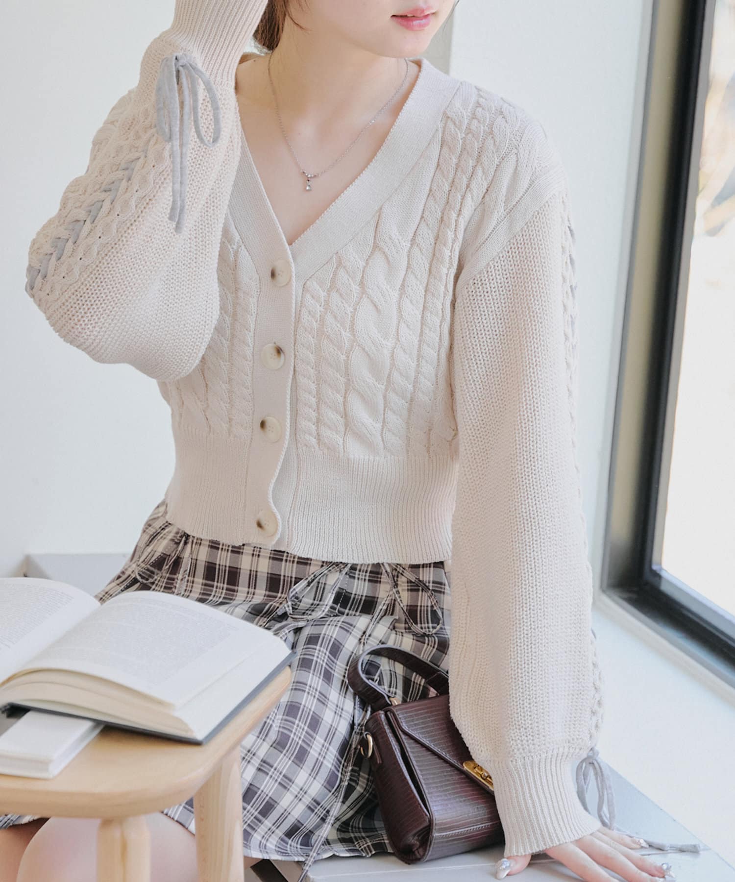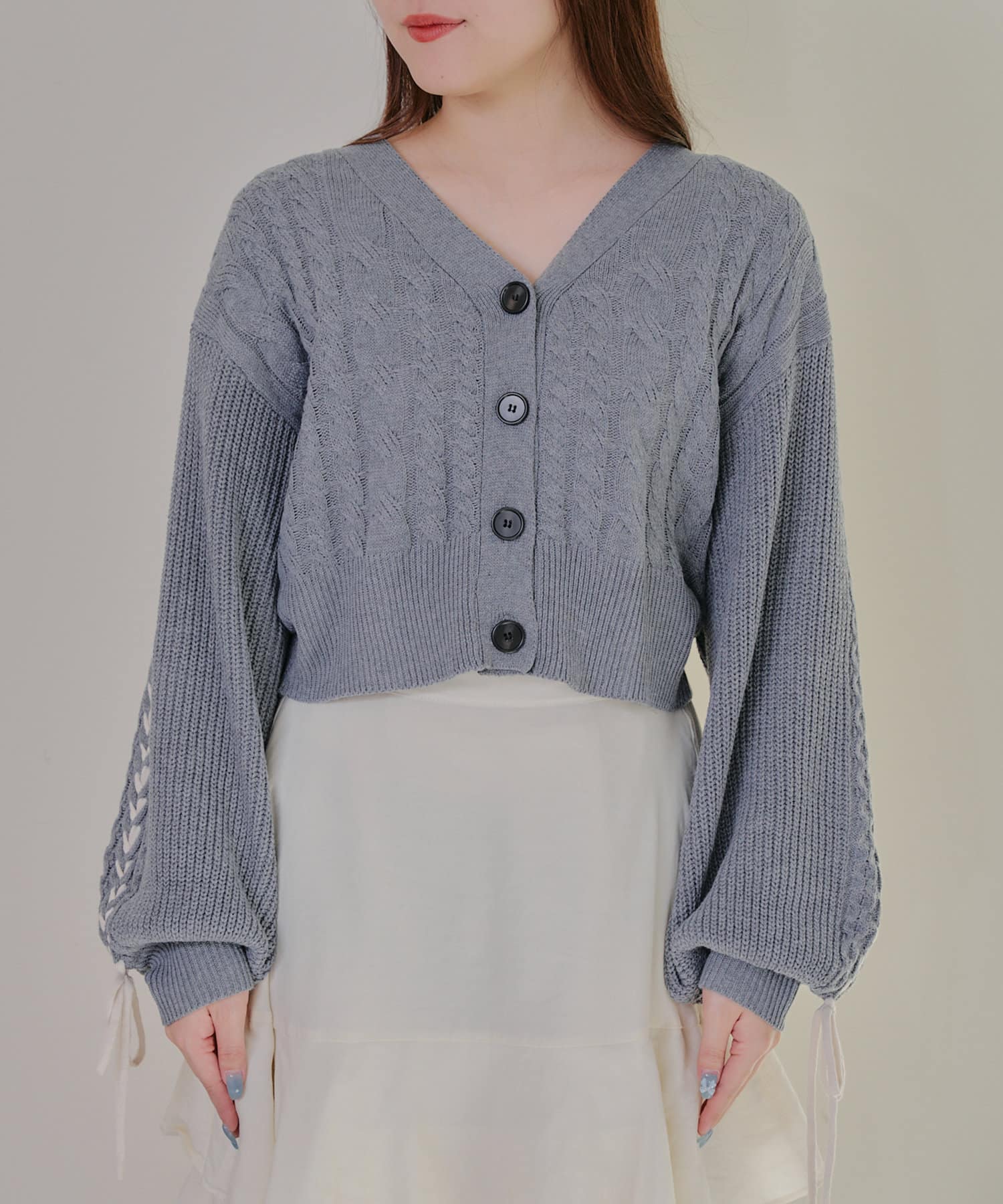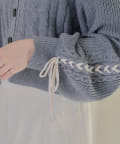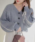 ・袖に異なるカラーの糸を編み込んだ一癖あるカーディガン
