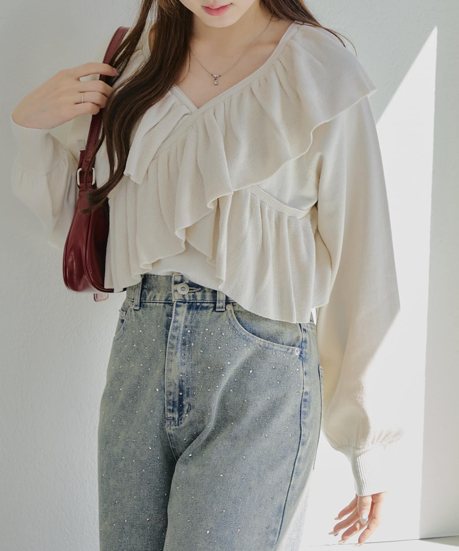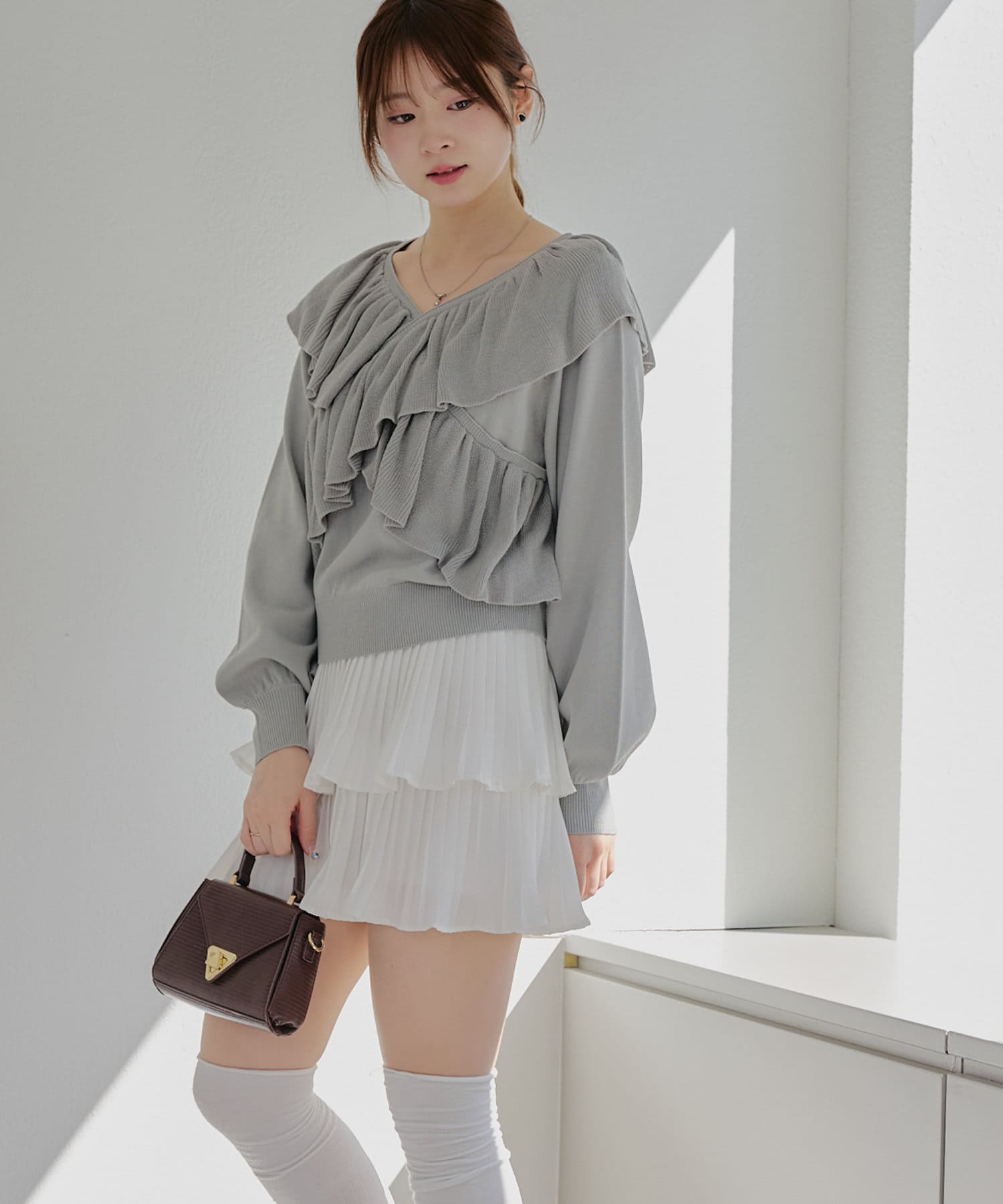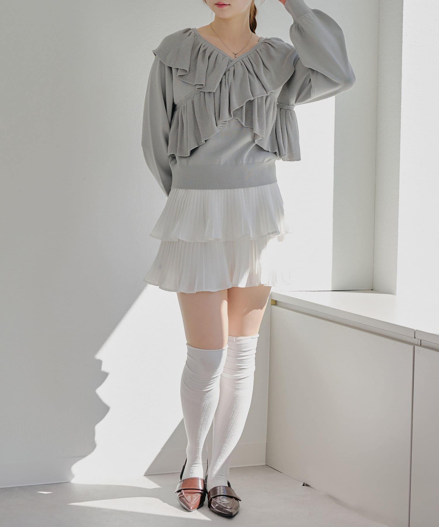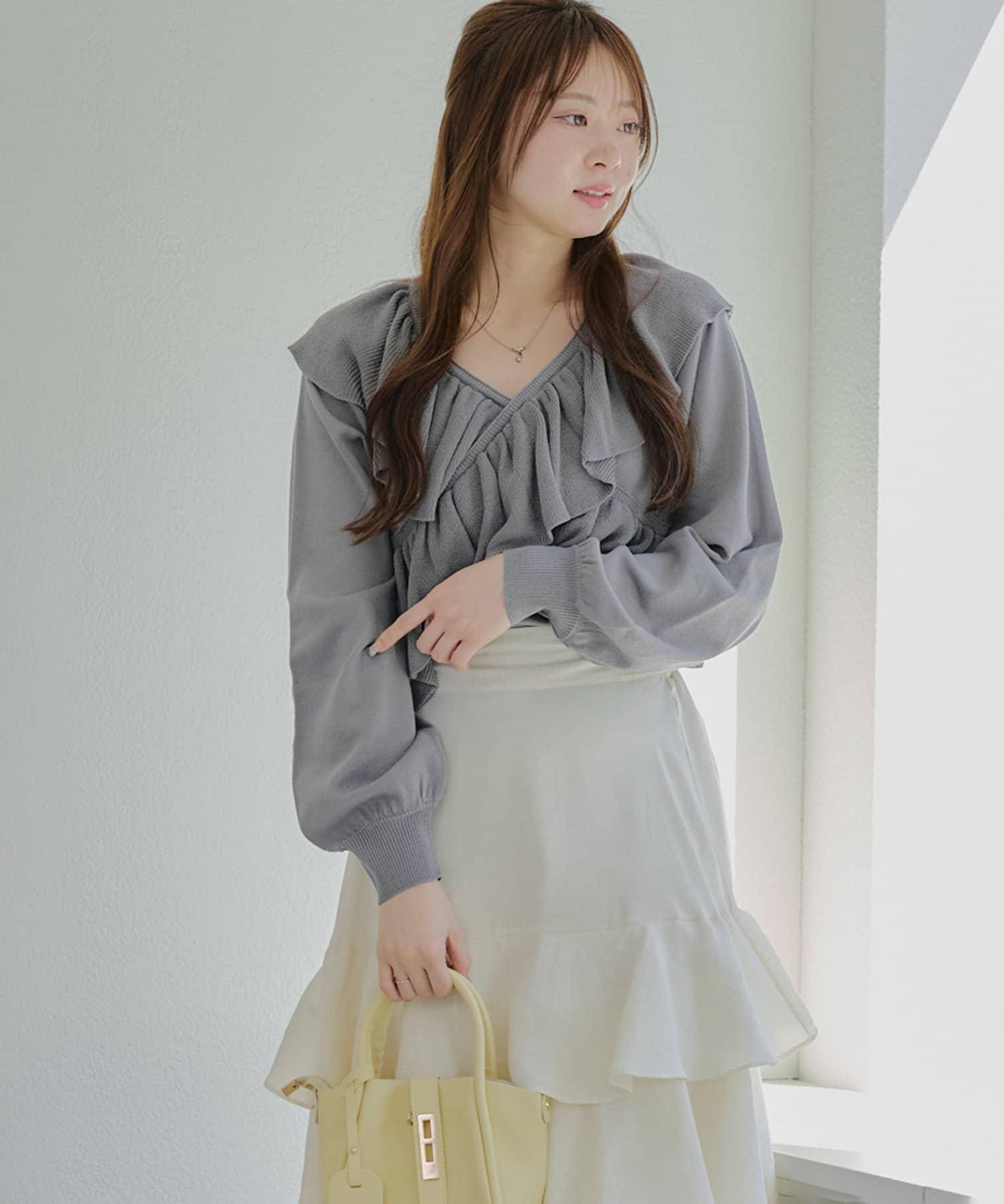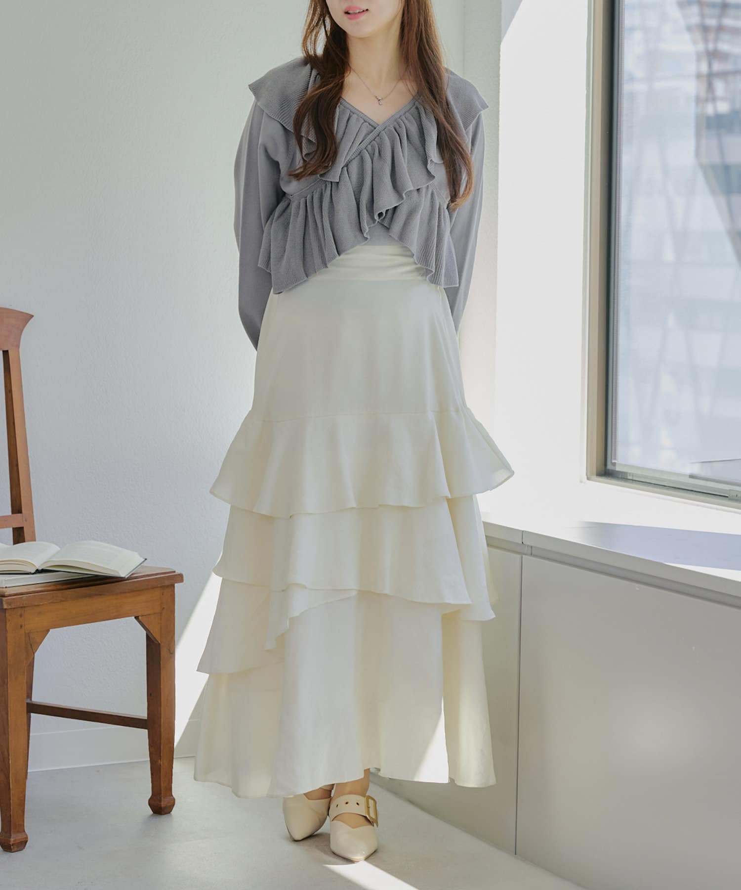 ・ティアードやフレアスカートと合わせてレディライクな着こなしがオススメ