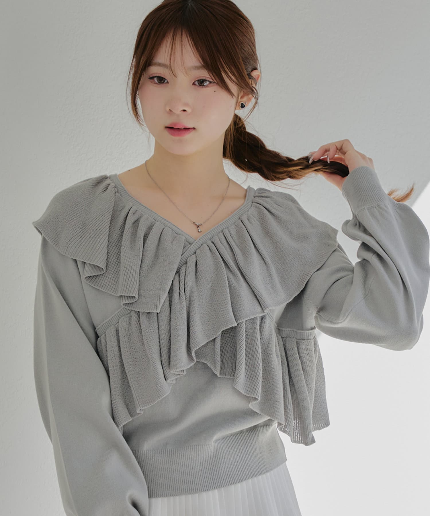 ・クロスデザインがコーデの主役になるニットプルオーバー