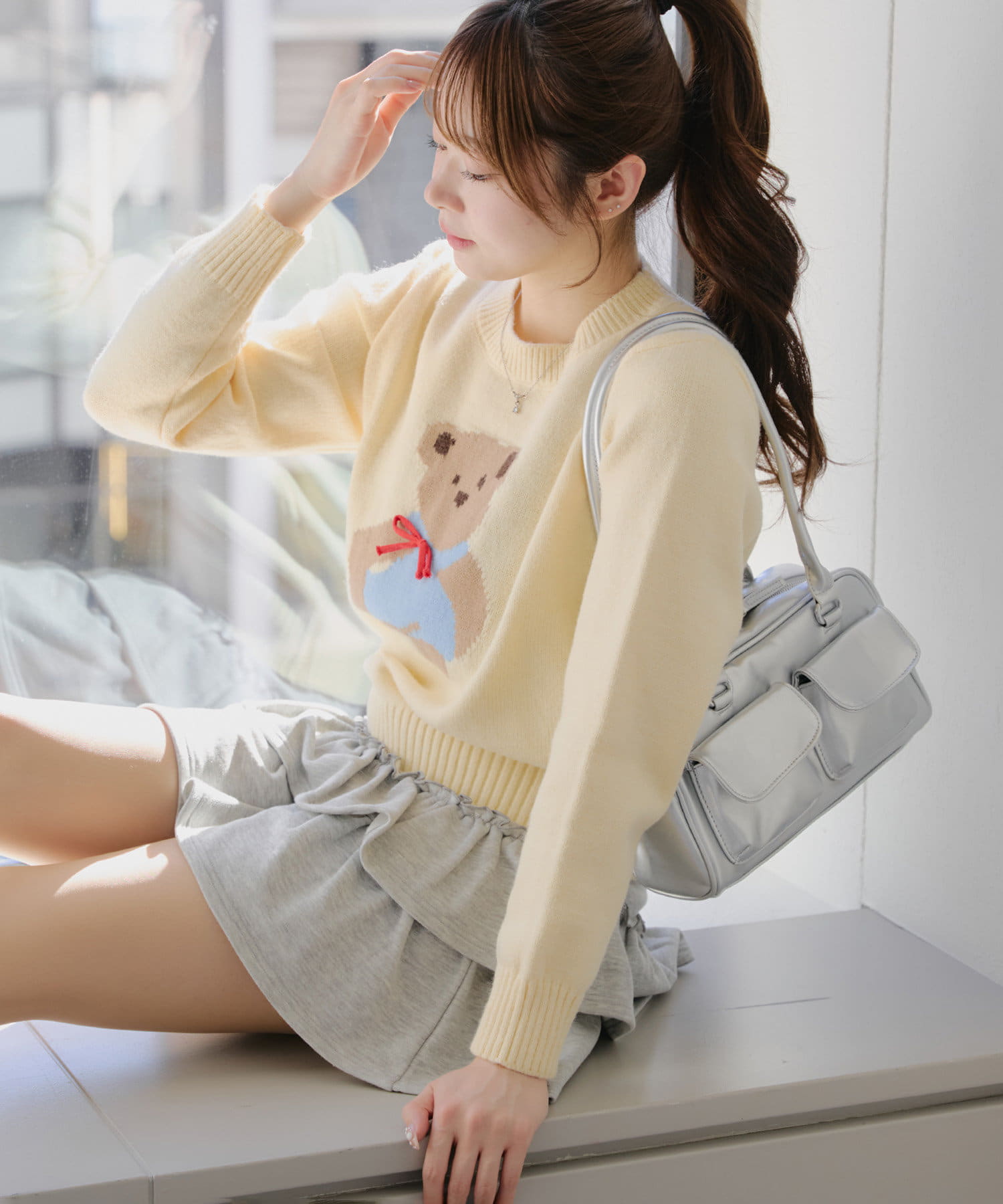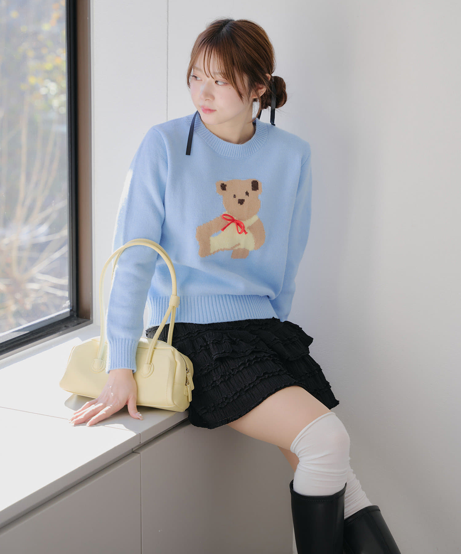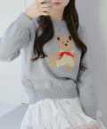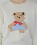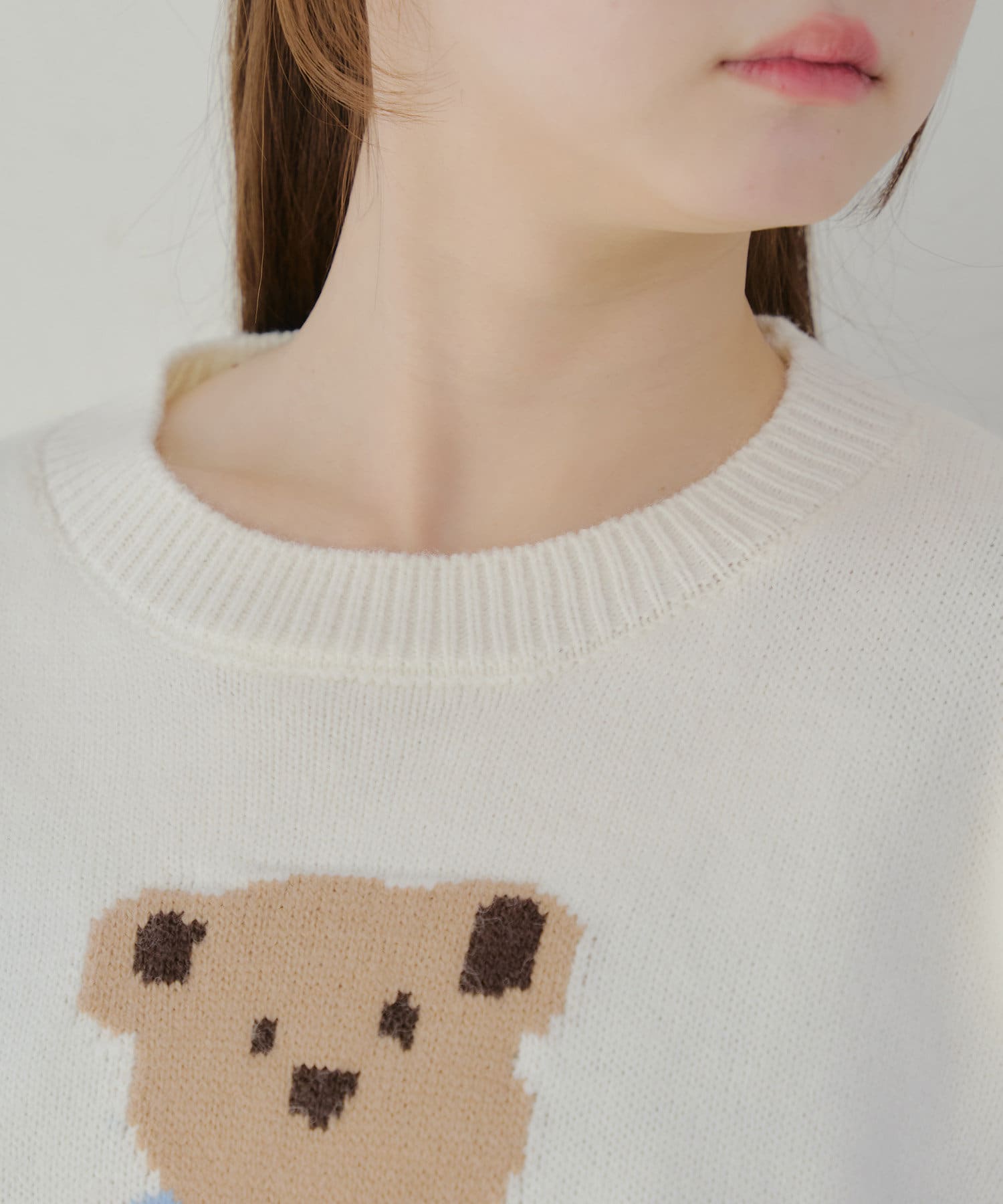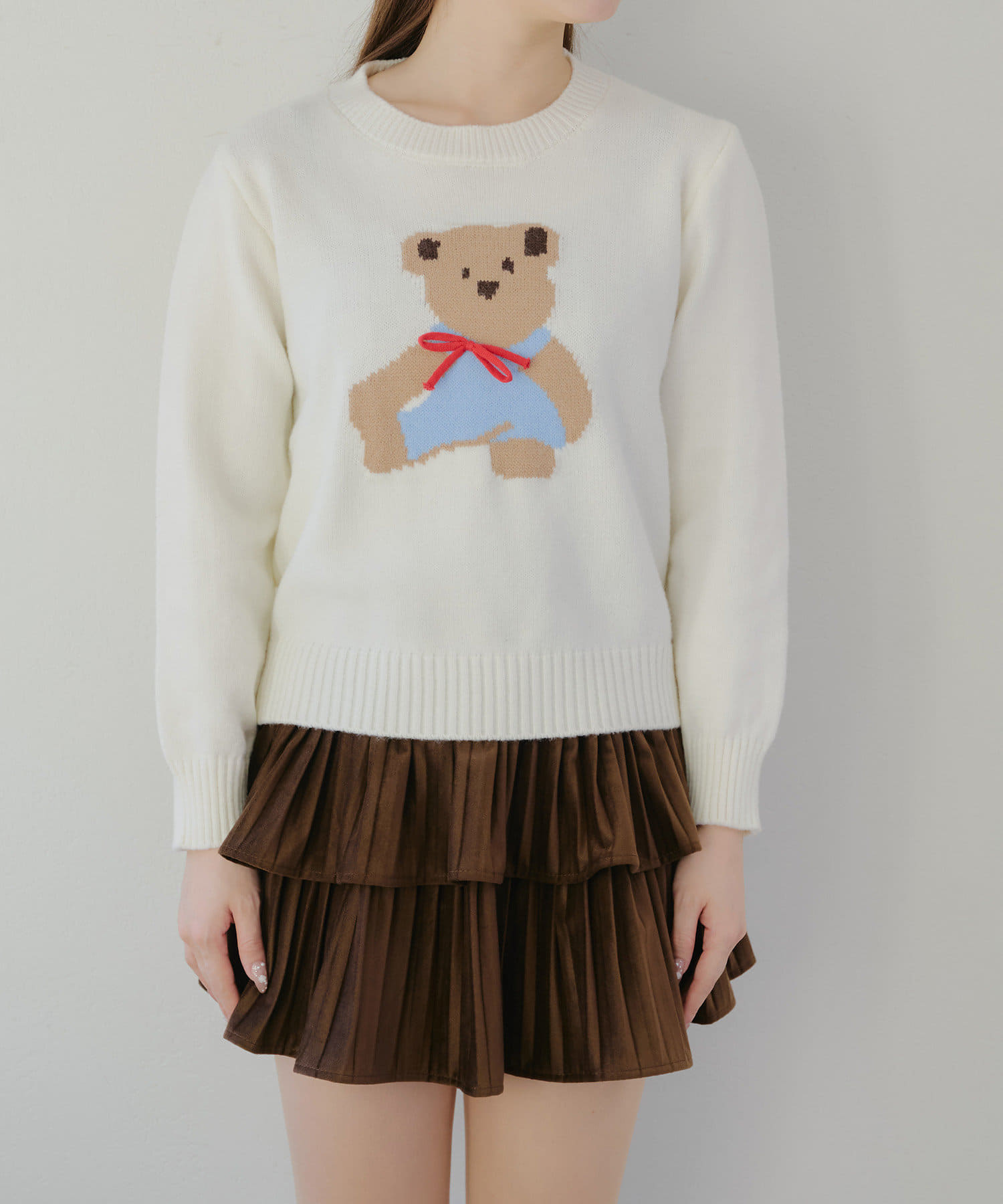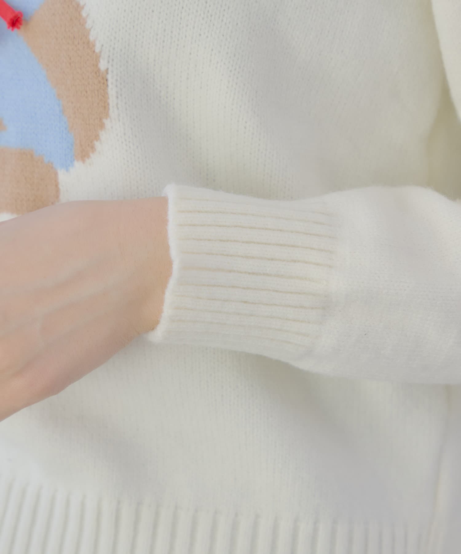 【春の新作】【OUTLET限定】くまリボンジャガードニット