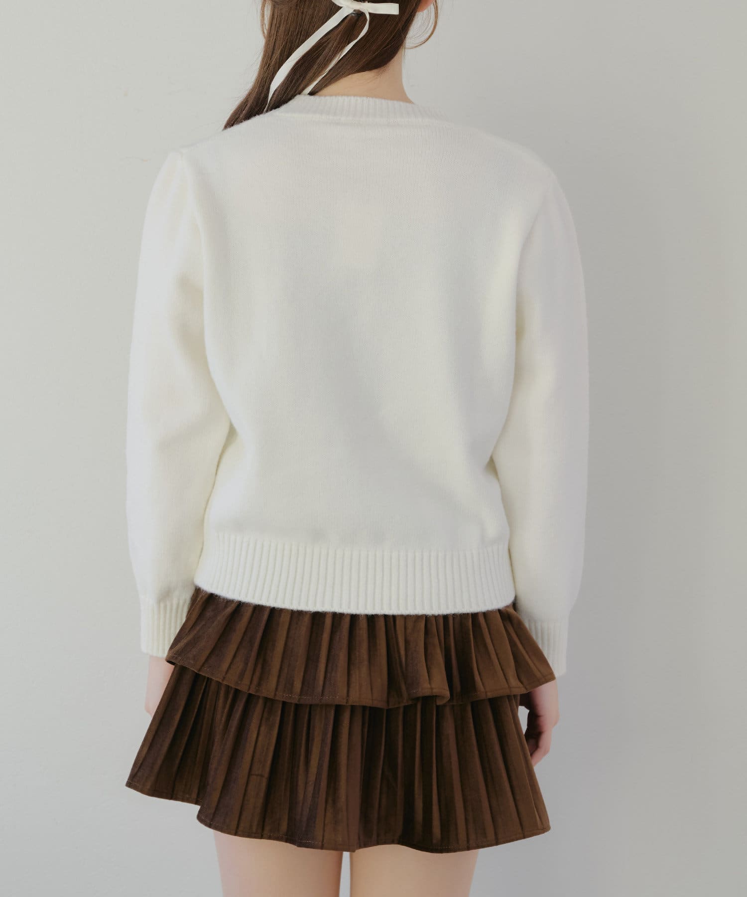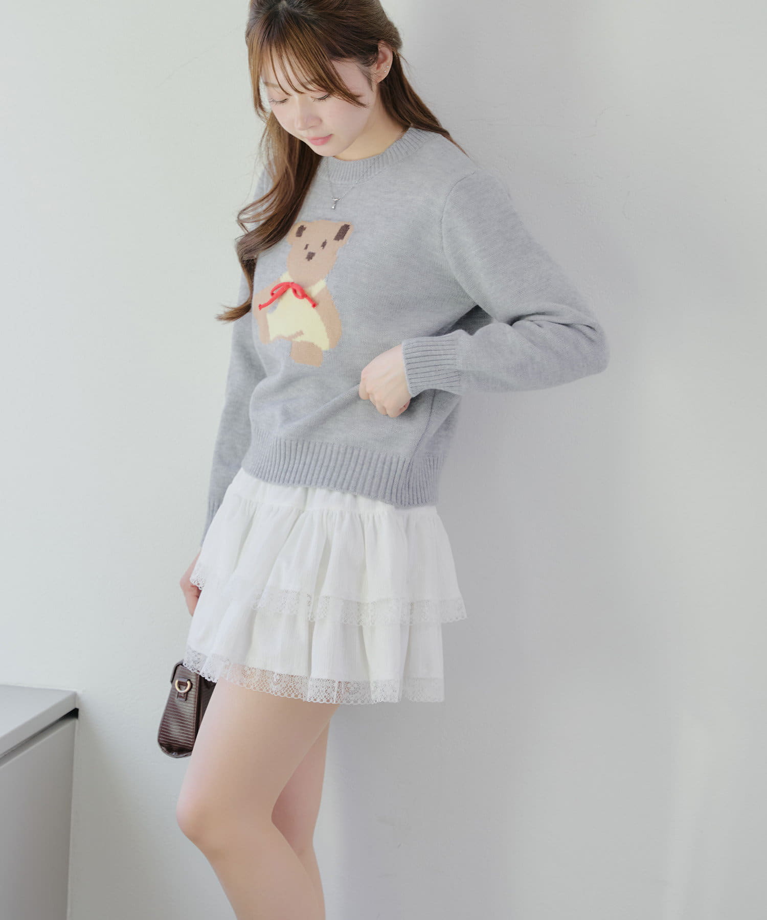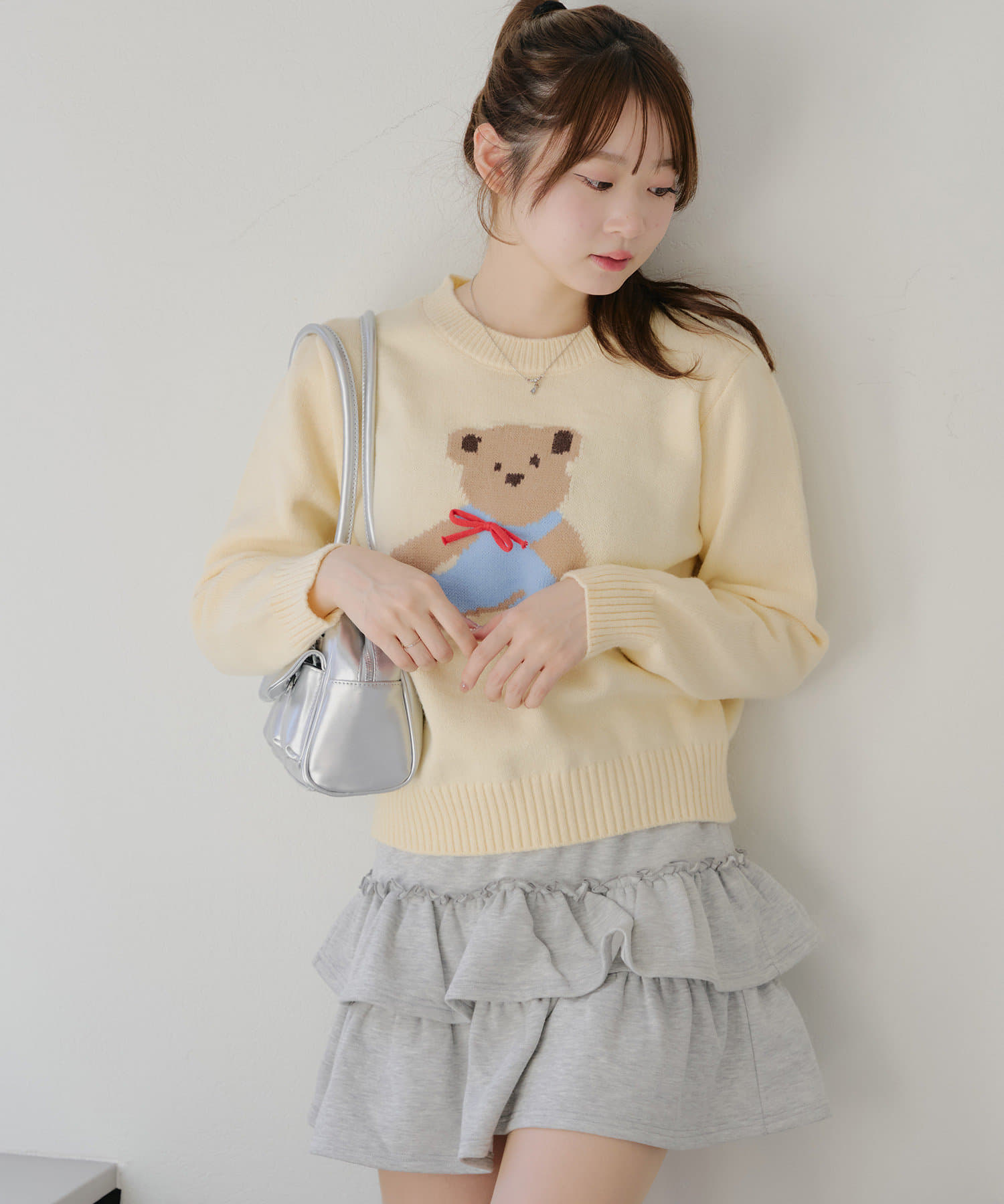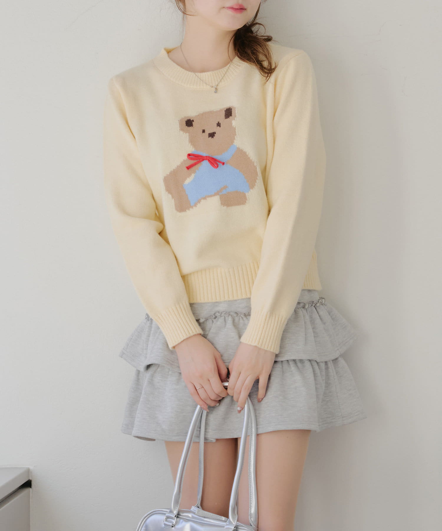 【春の新作】【OUTLET限定】くまリボンジャガードニット
