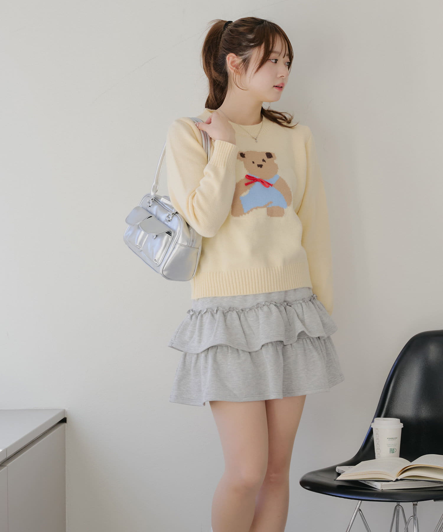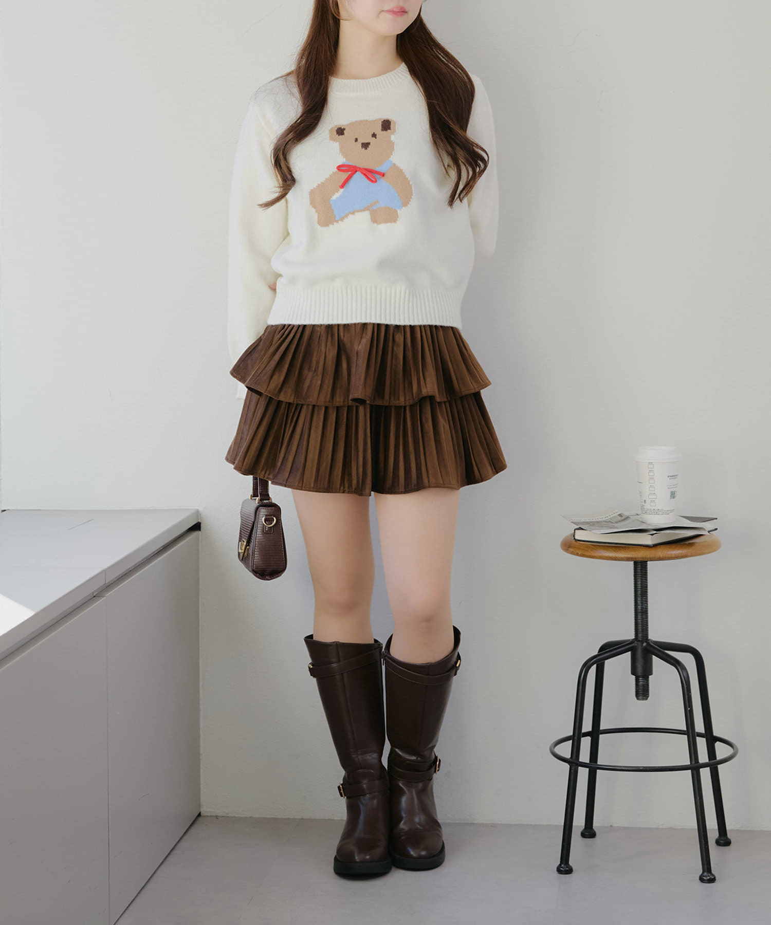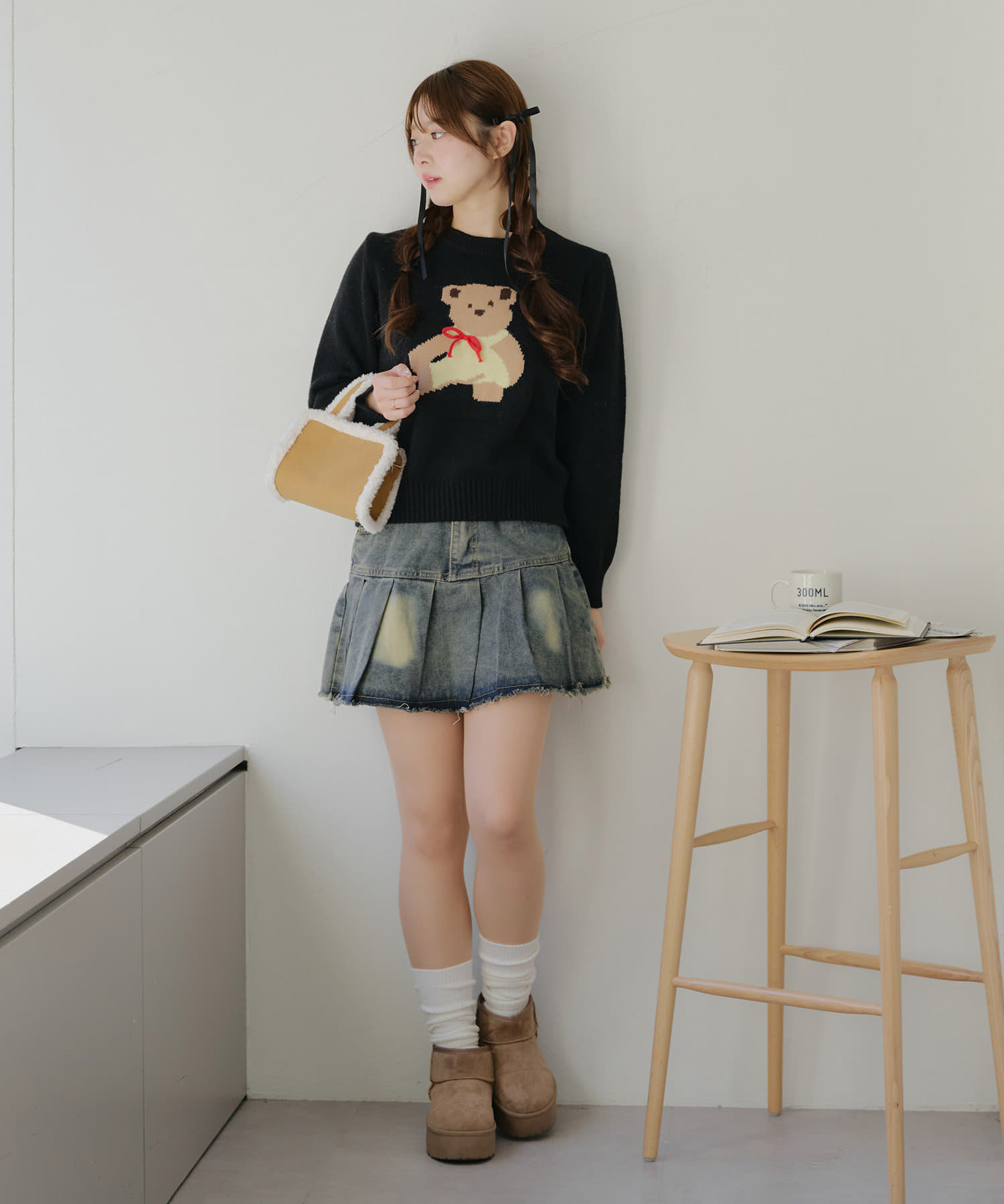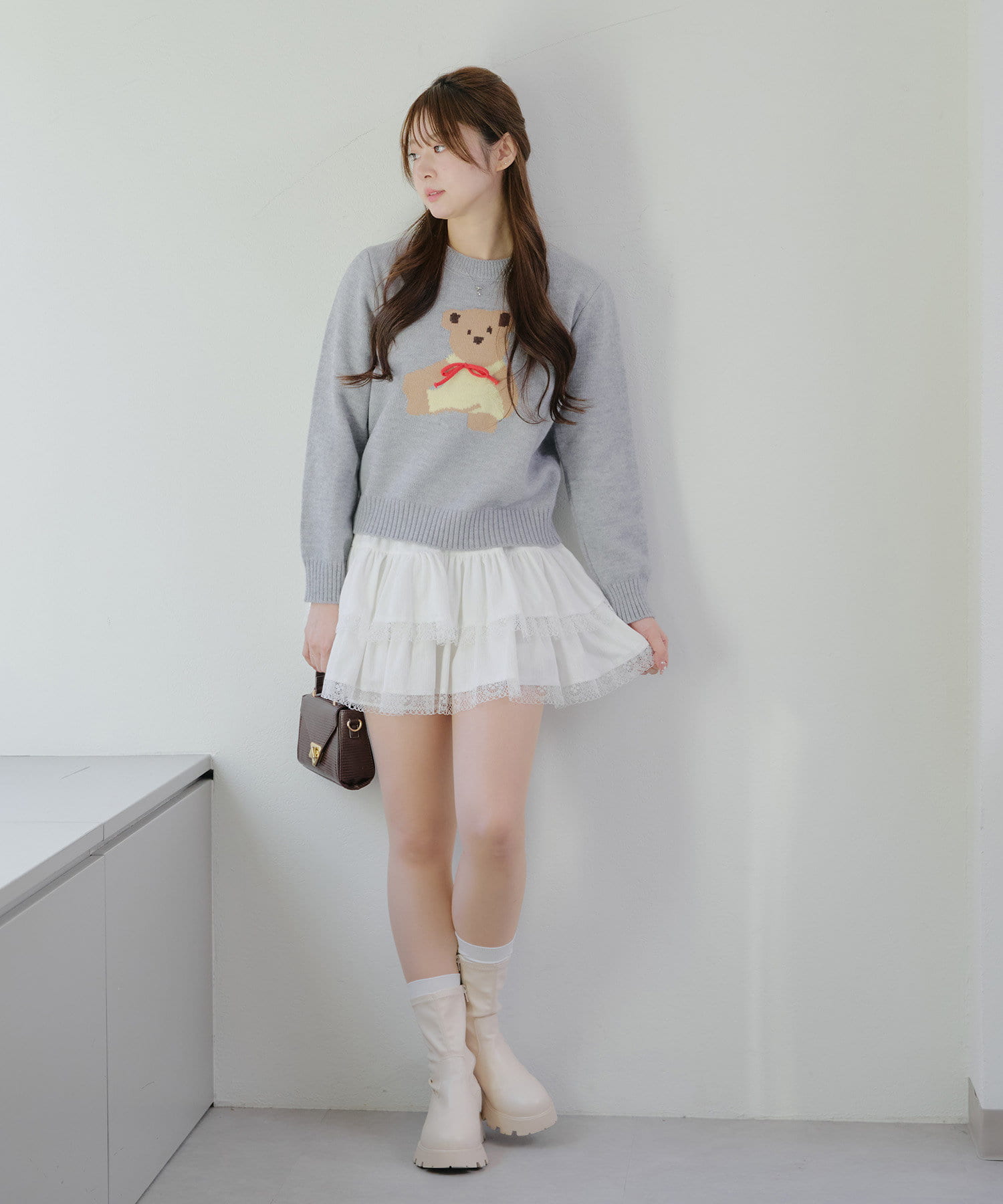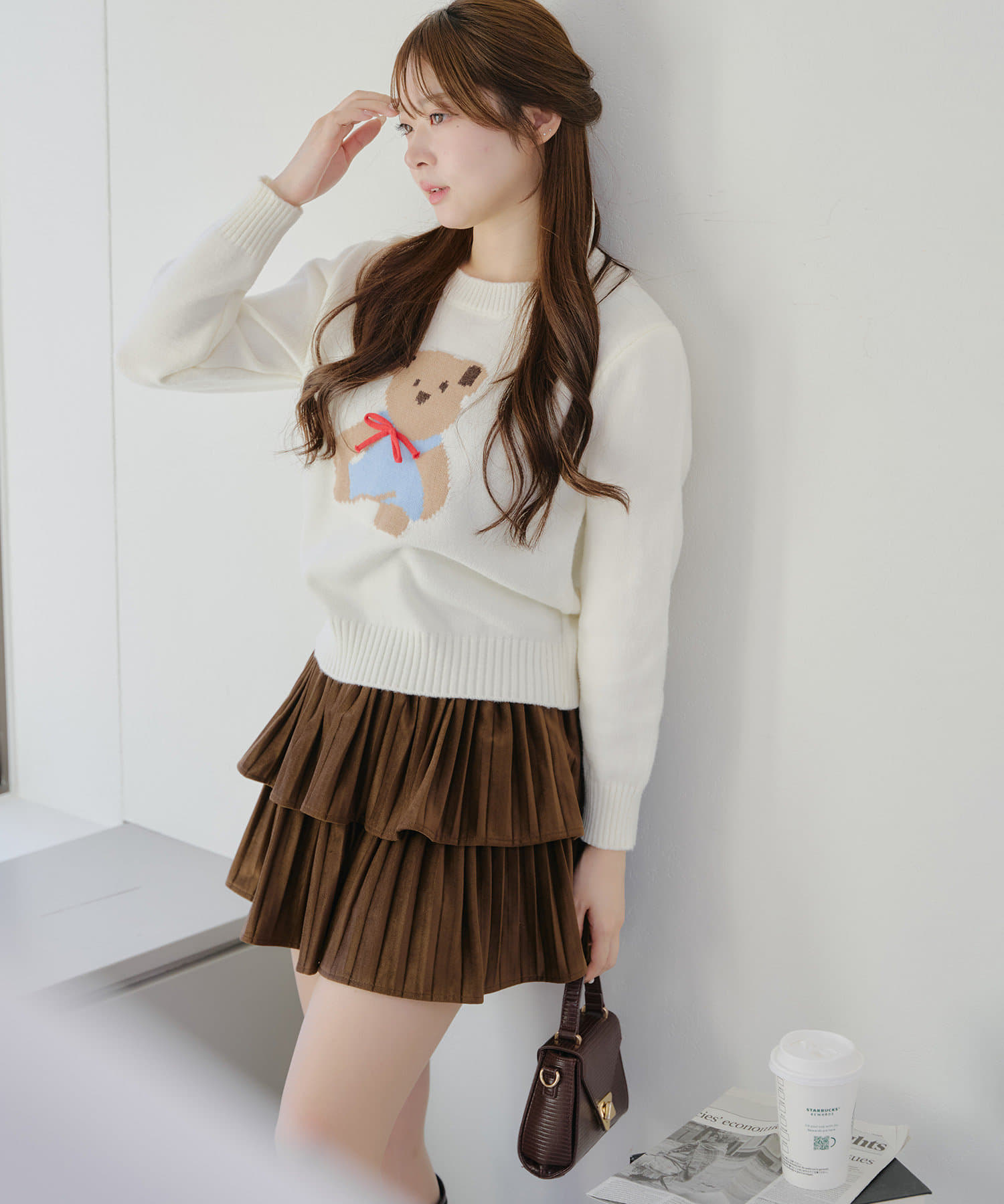 【春の新作】【OUTLET限定】くまリボンジャガードニット