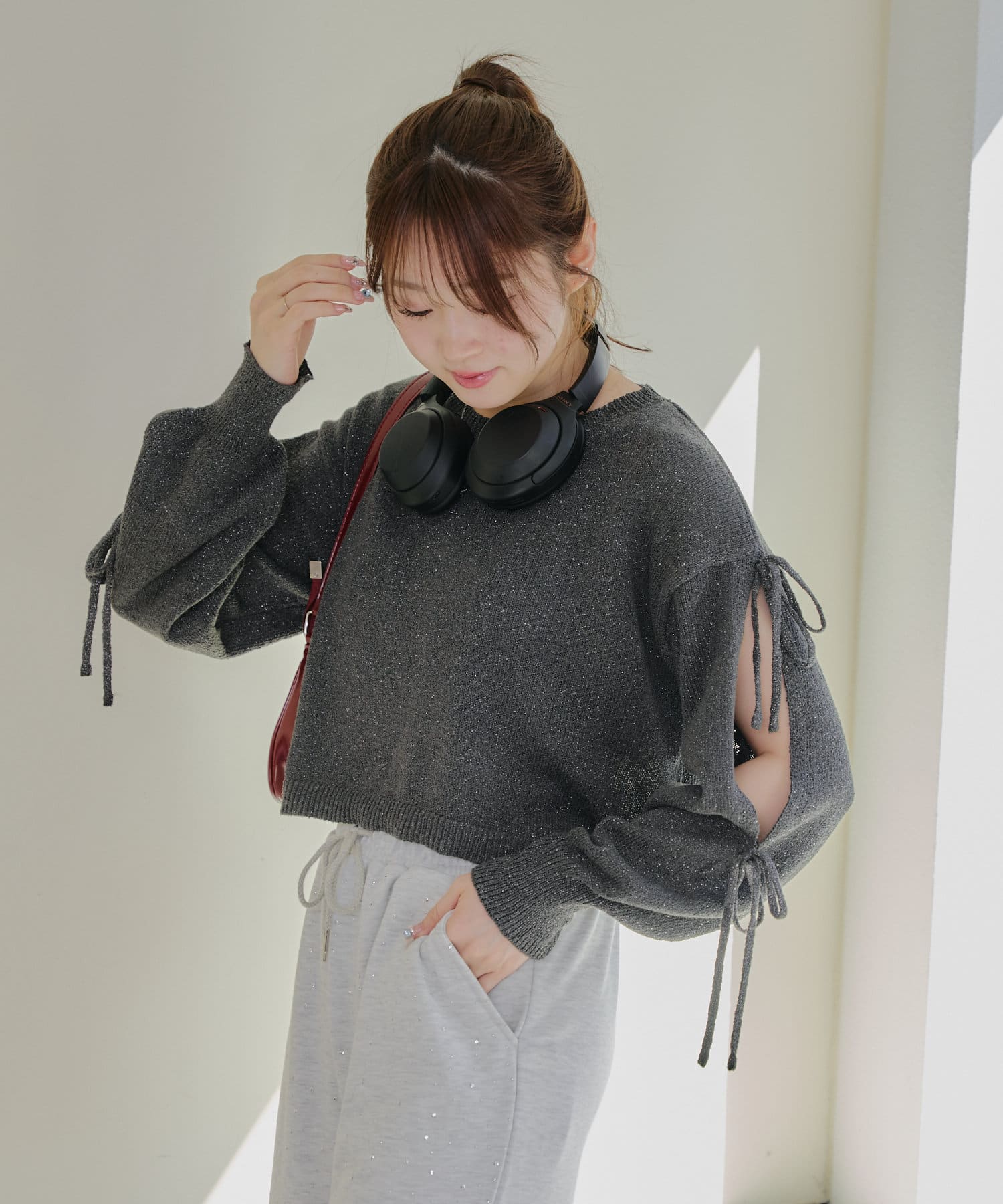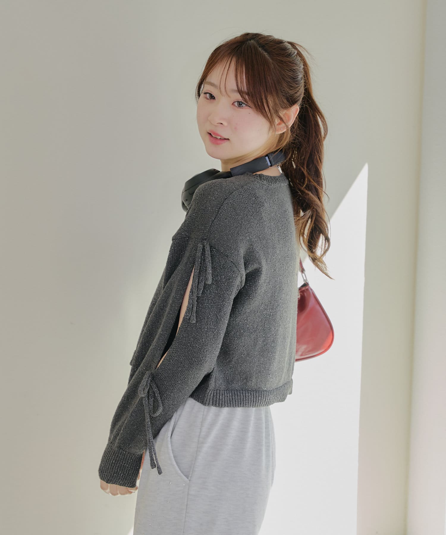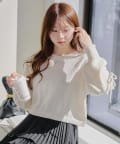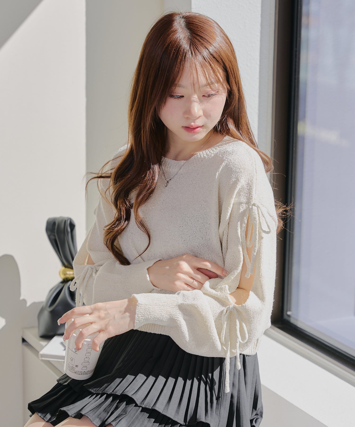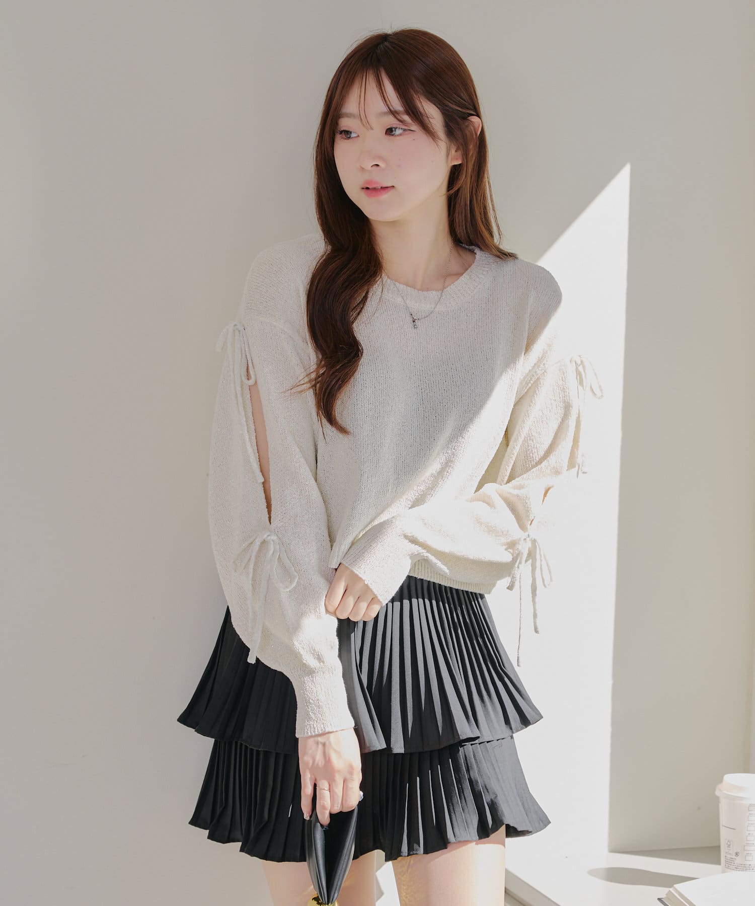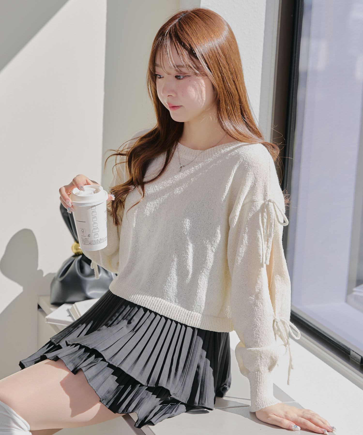 ・肩開きデザインでヘルシーな肌見せができるニットプルオーバー