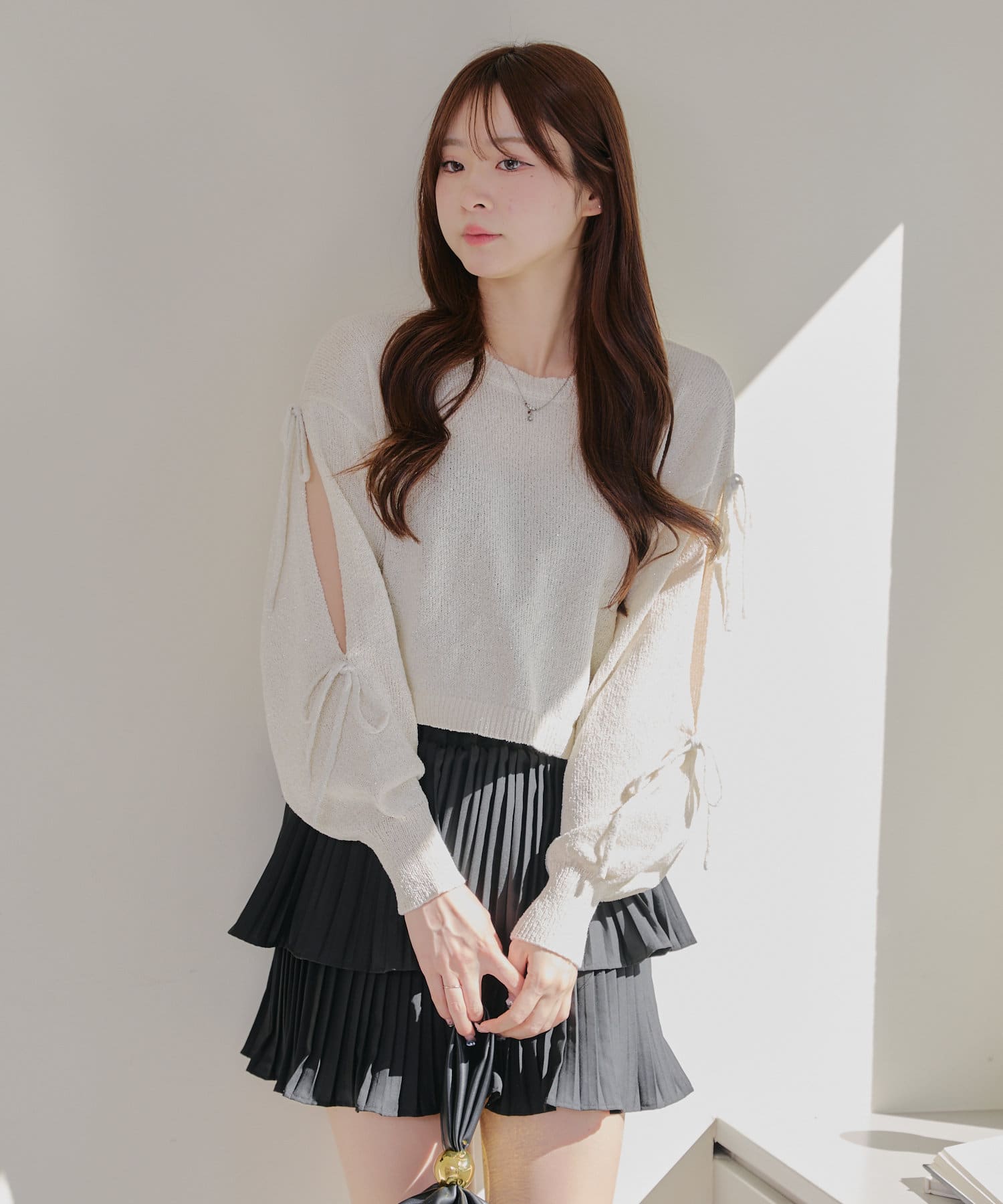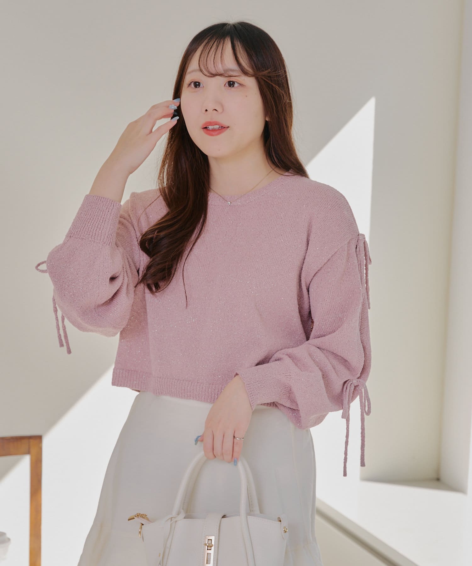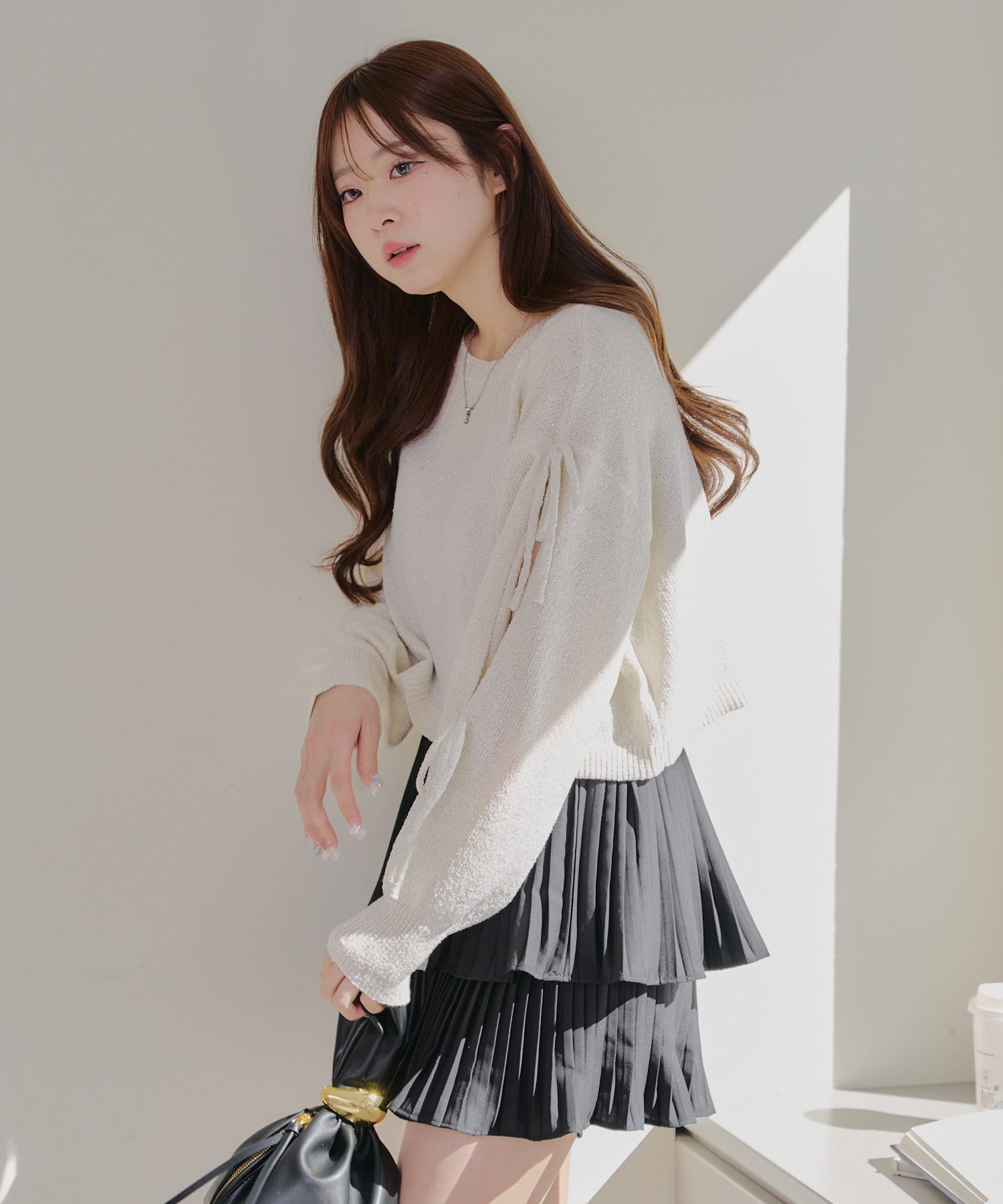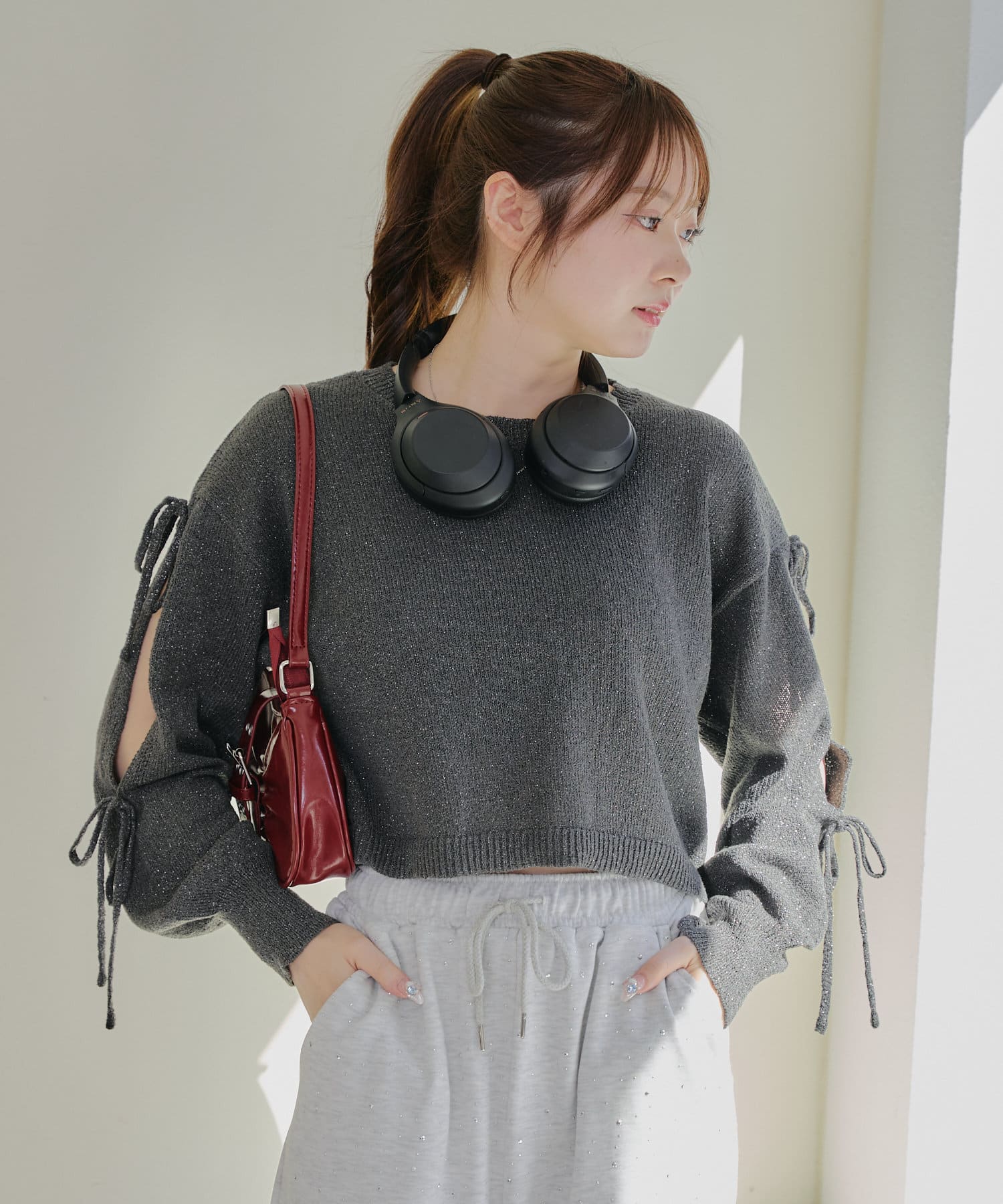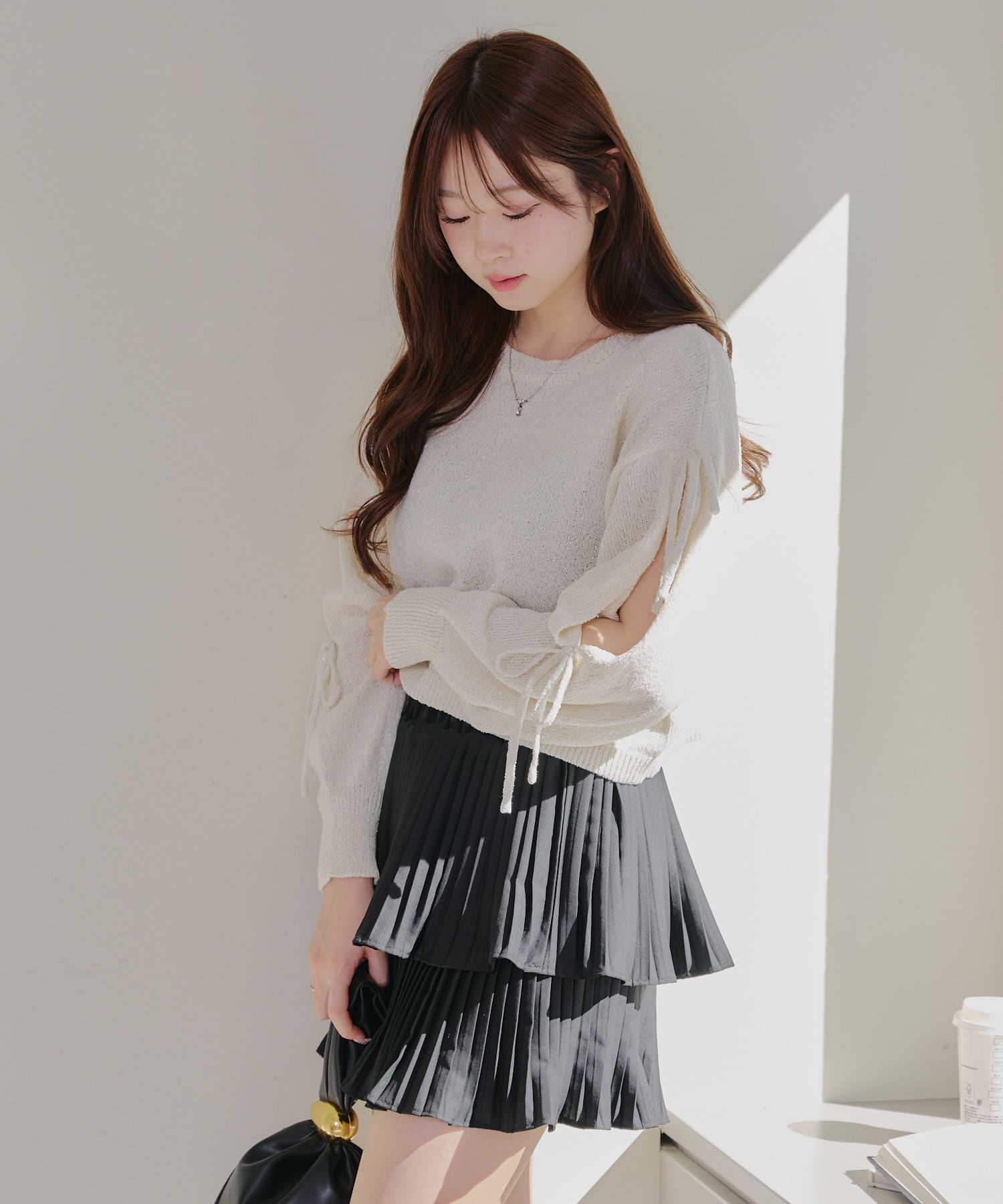 ・肩開きデザインでヘルシーな肌見せができるニットプルオーバー