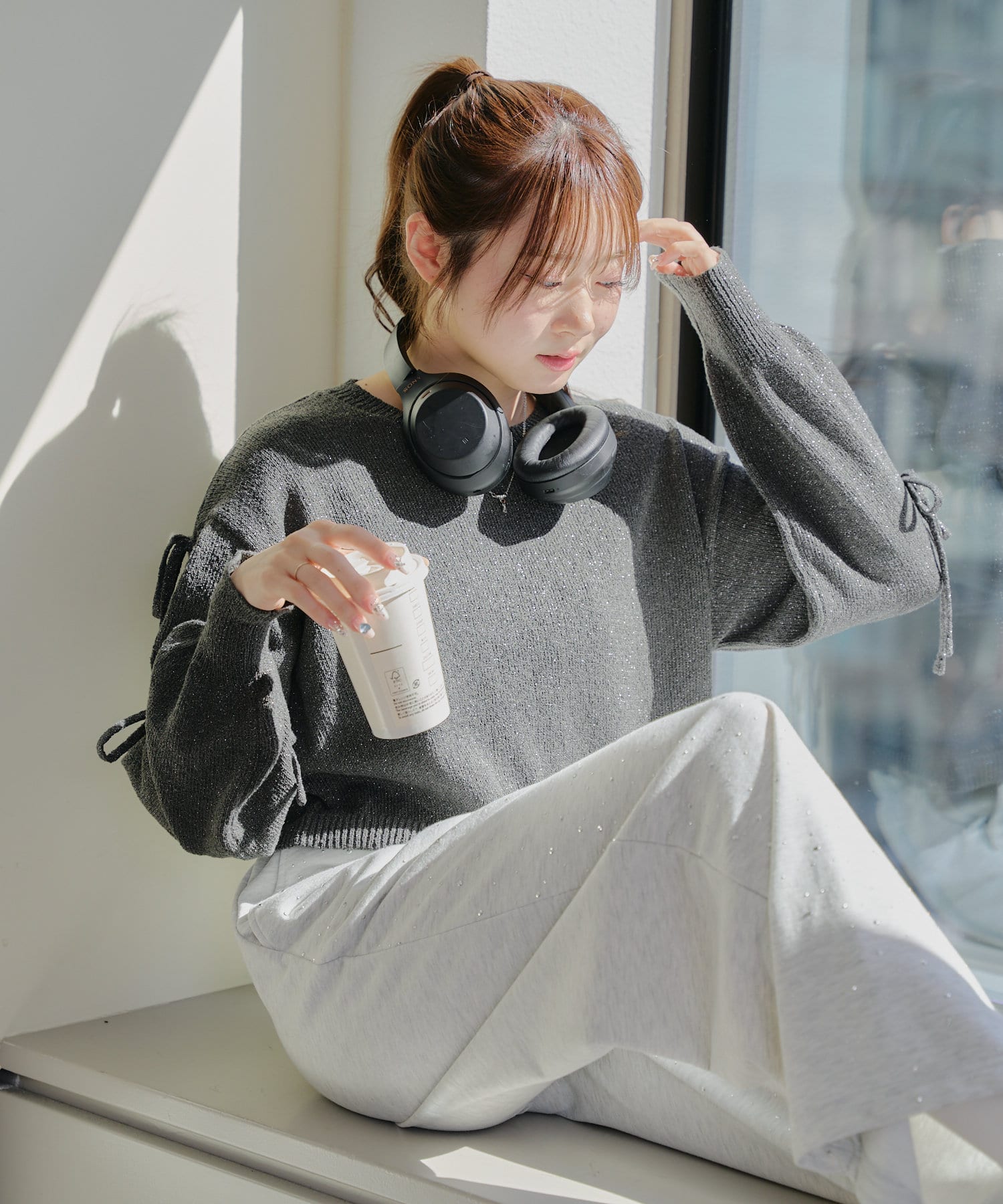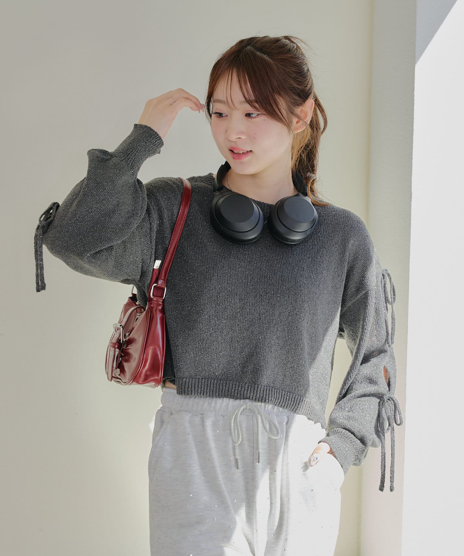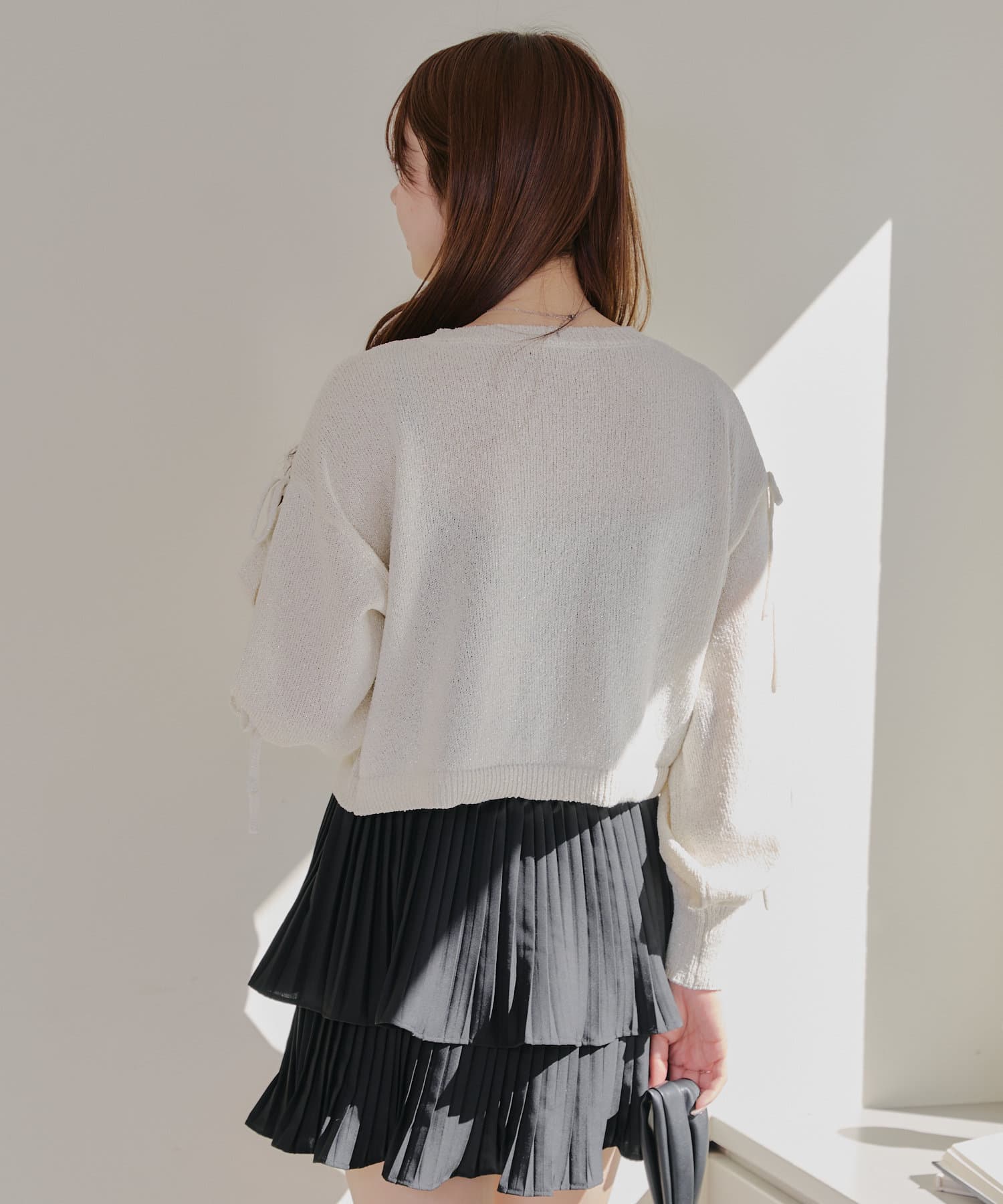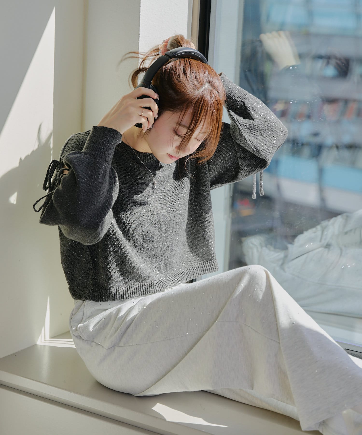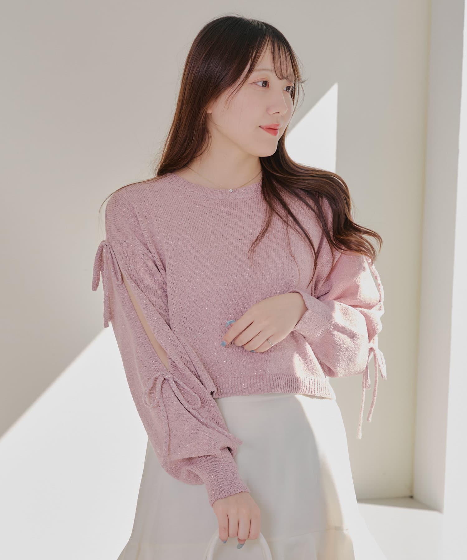・肩開きデザインでヘルシーな肌見せができるニットプルオーバー
