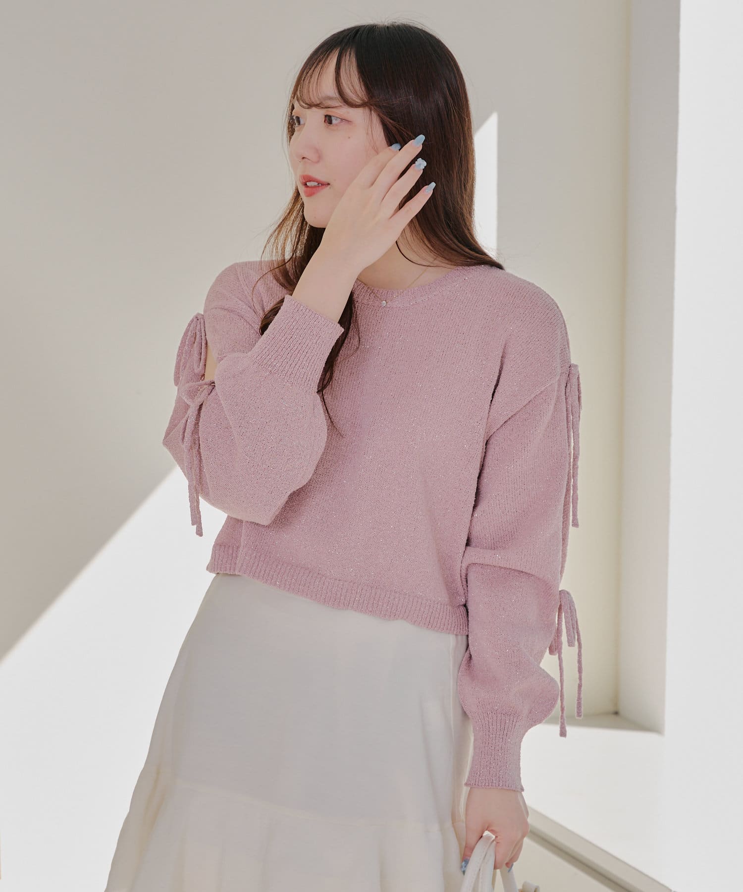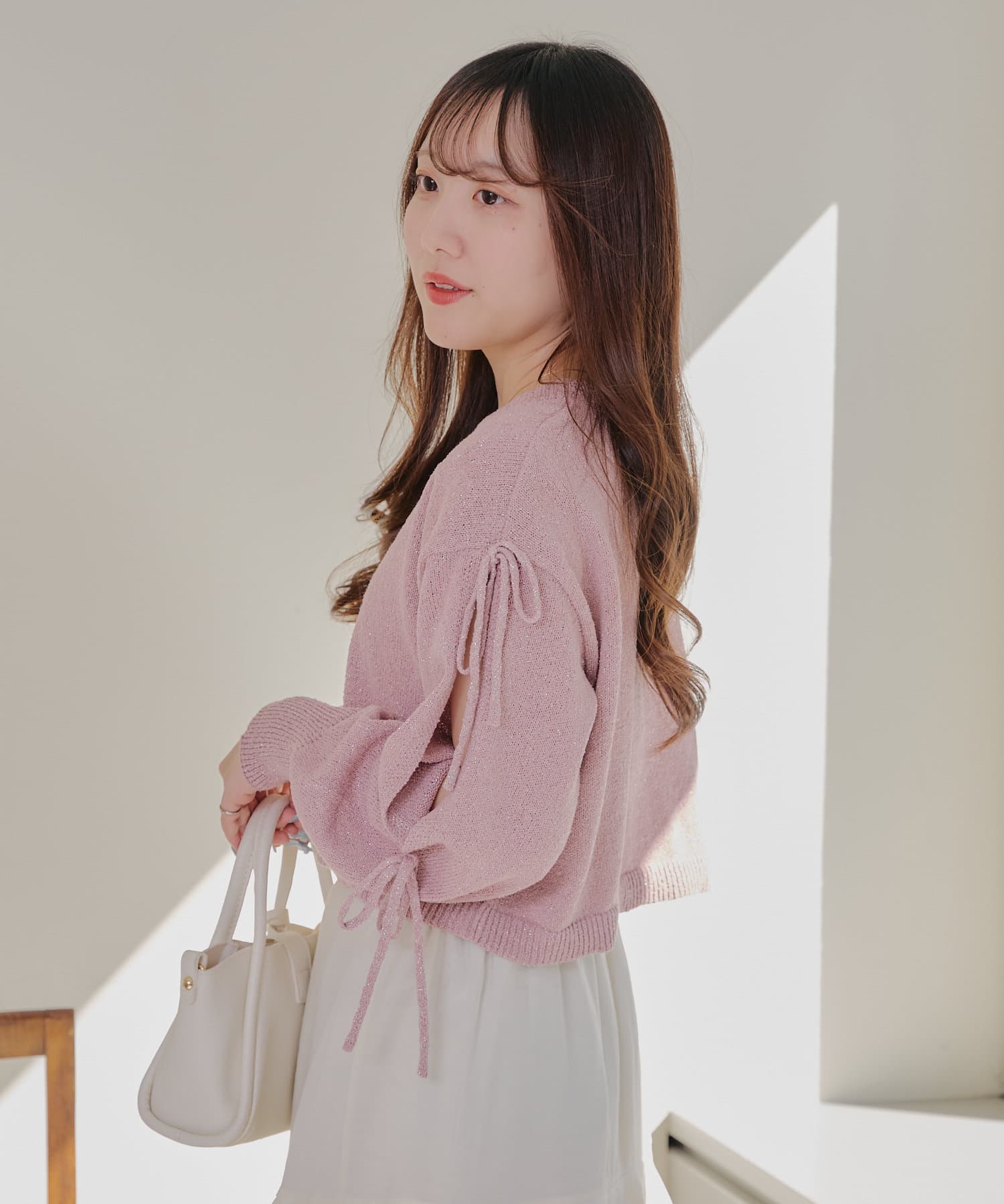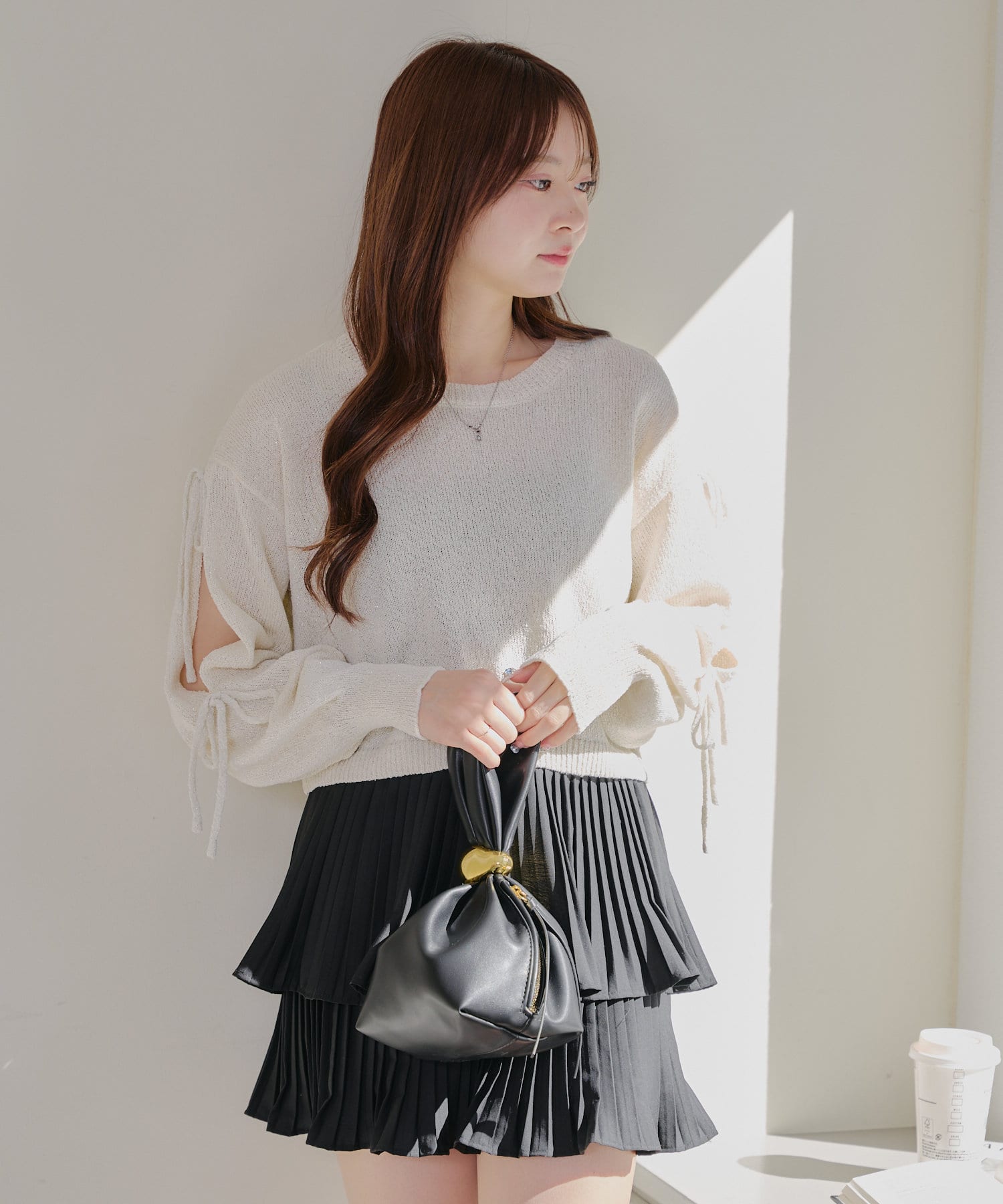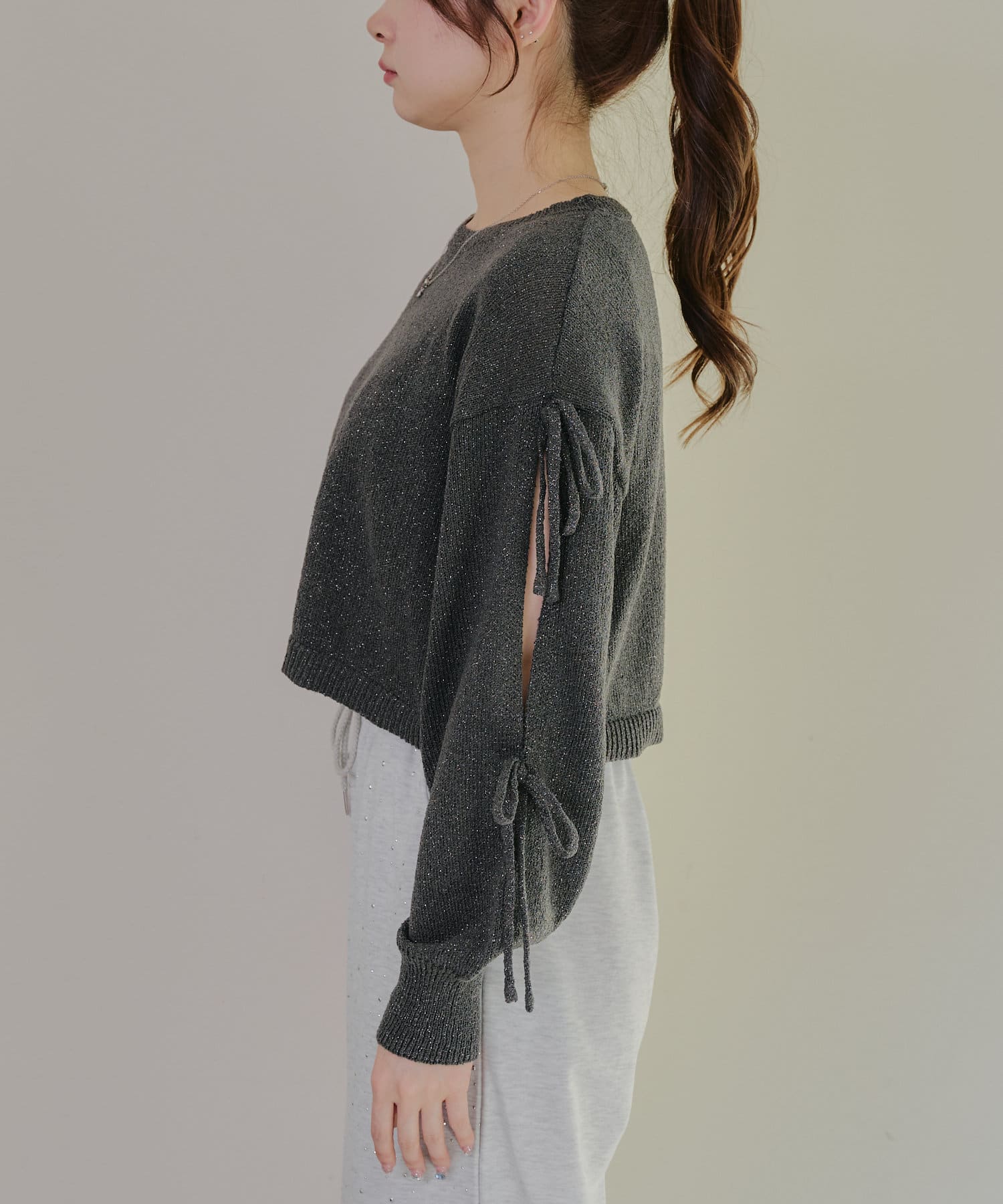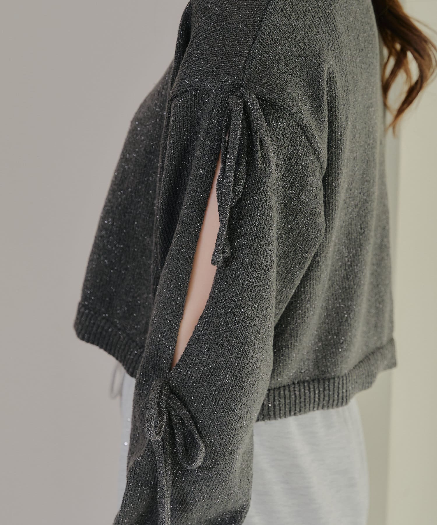 ・肩開きデザインでヘルシーな肌見せができるニットプルオーバー