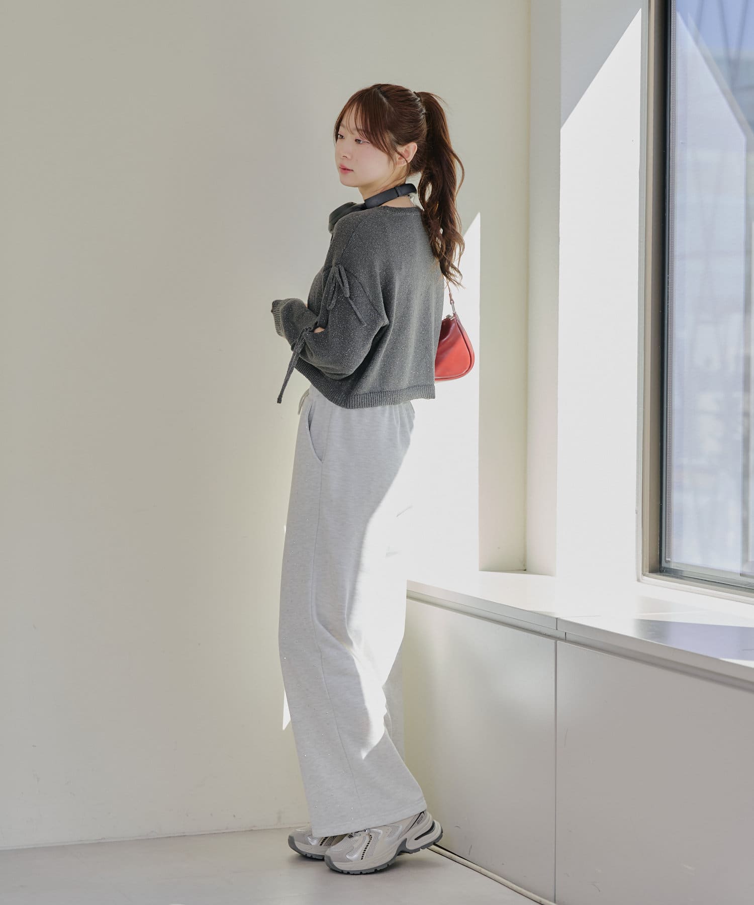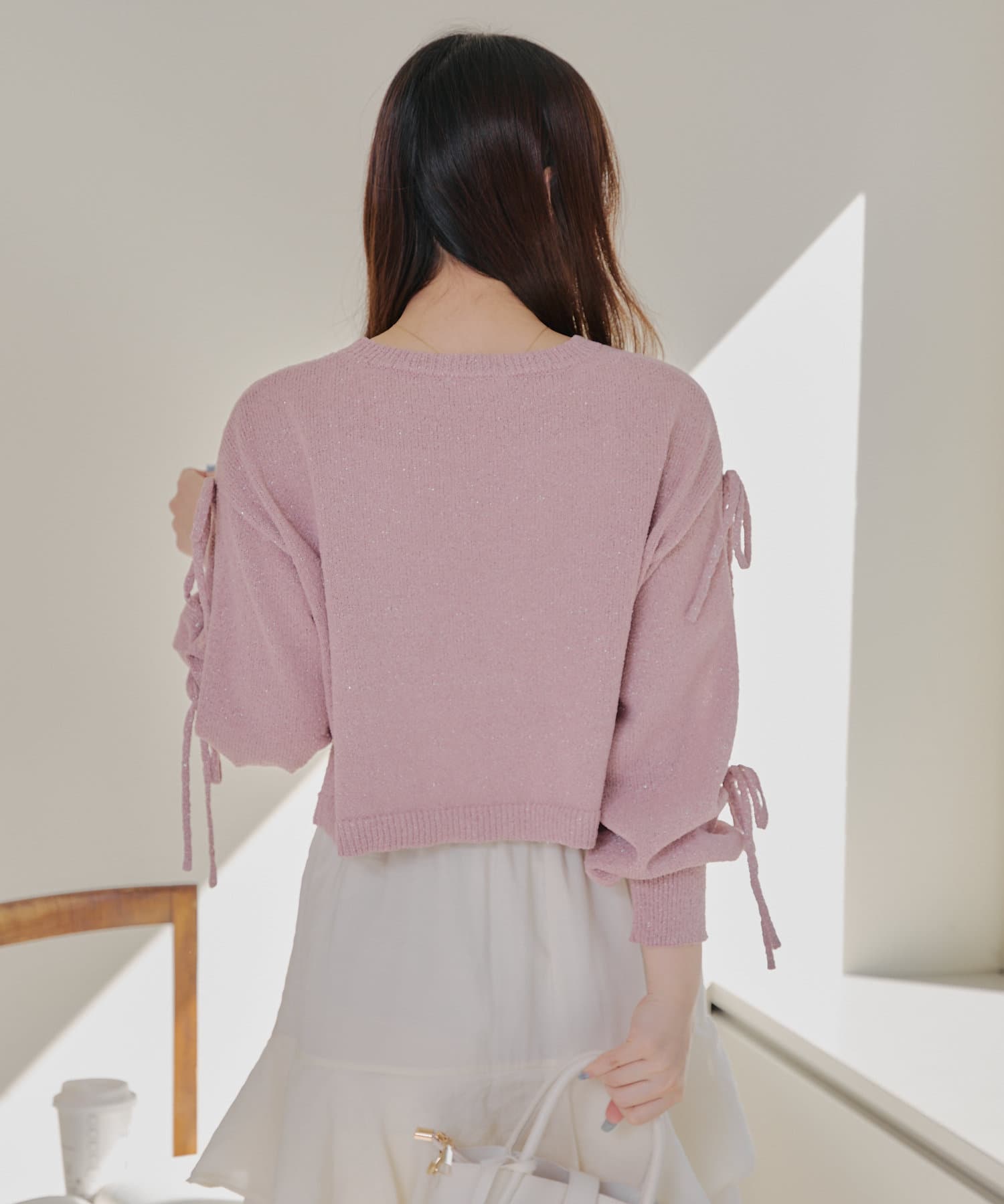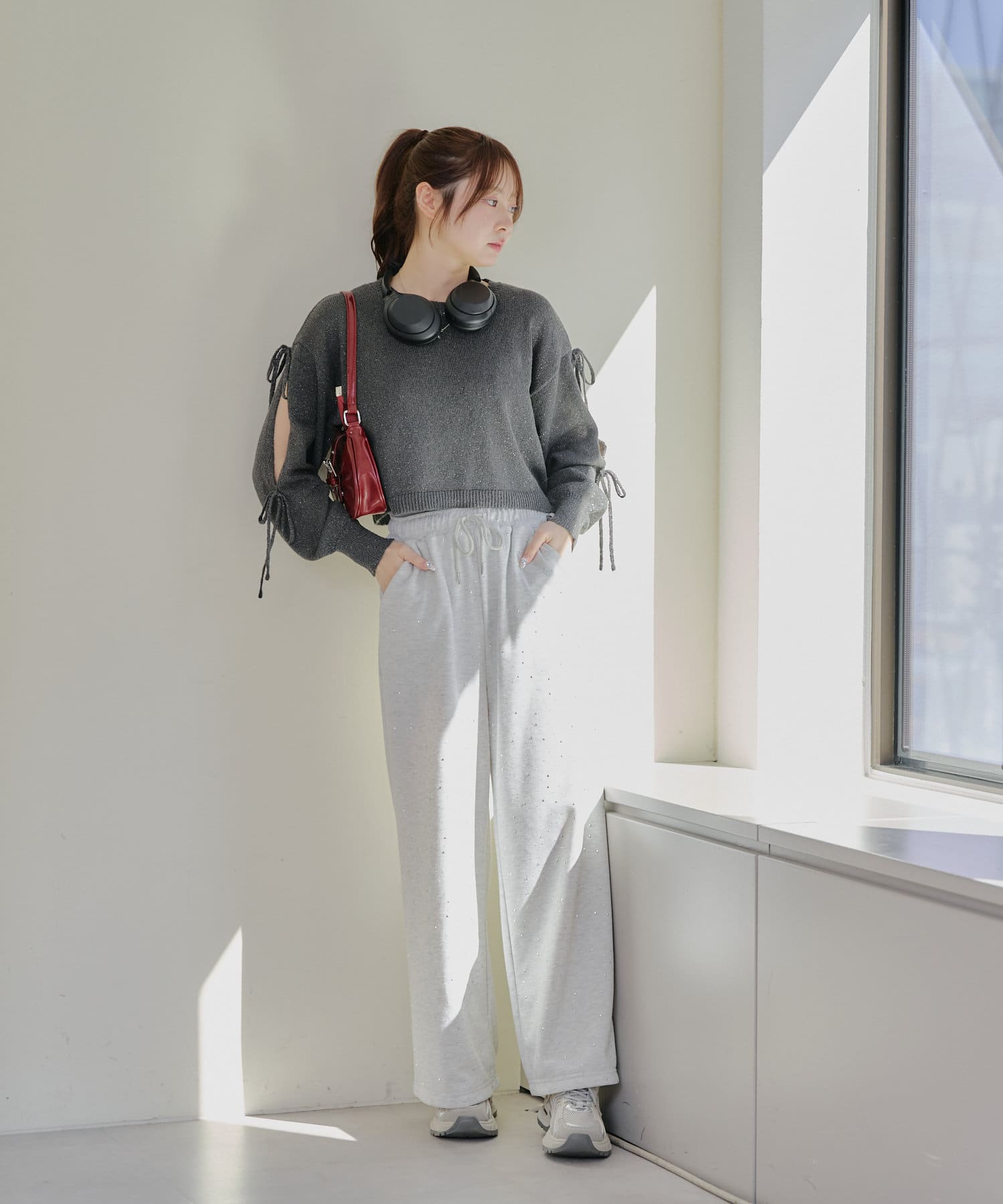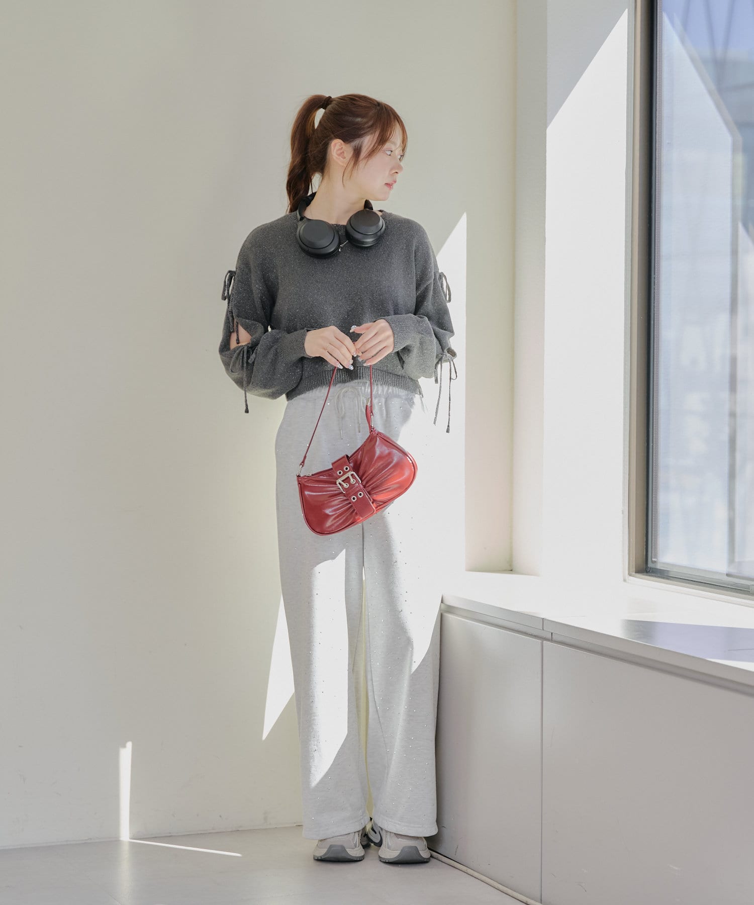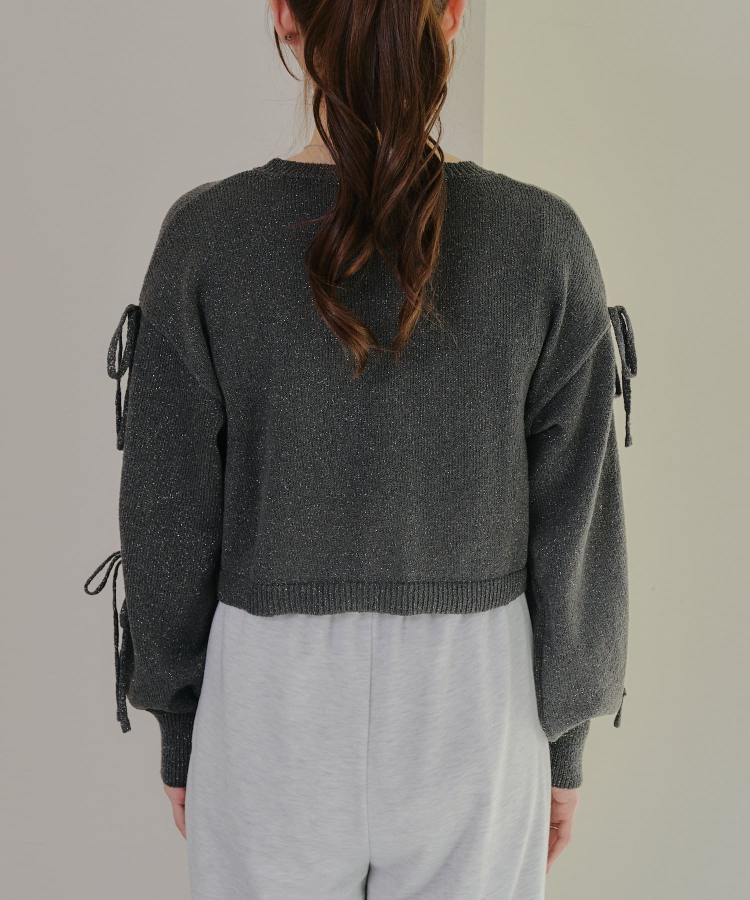 ・肩開きデザインでヘルシーな肌見せができるニットプルオーバー