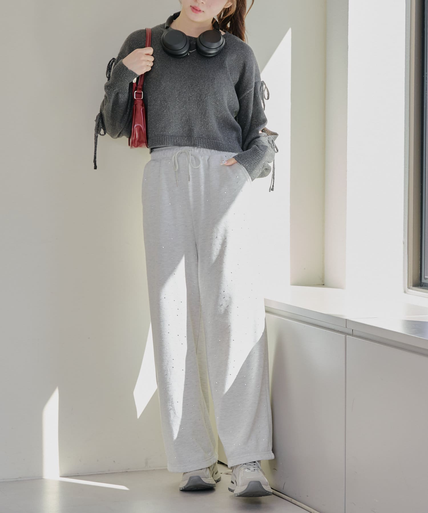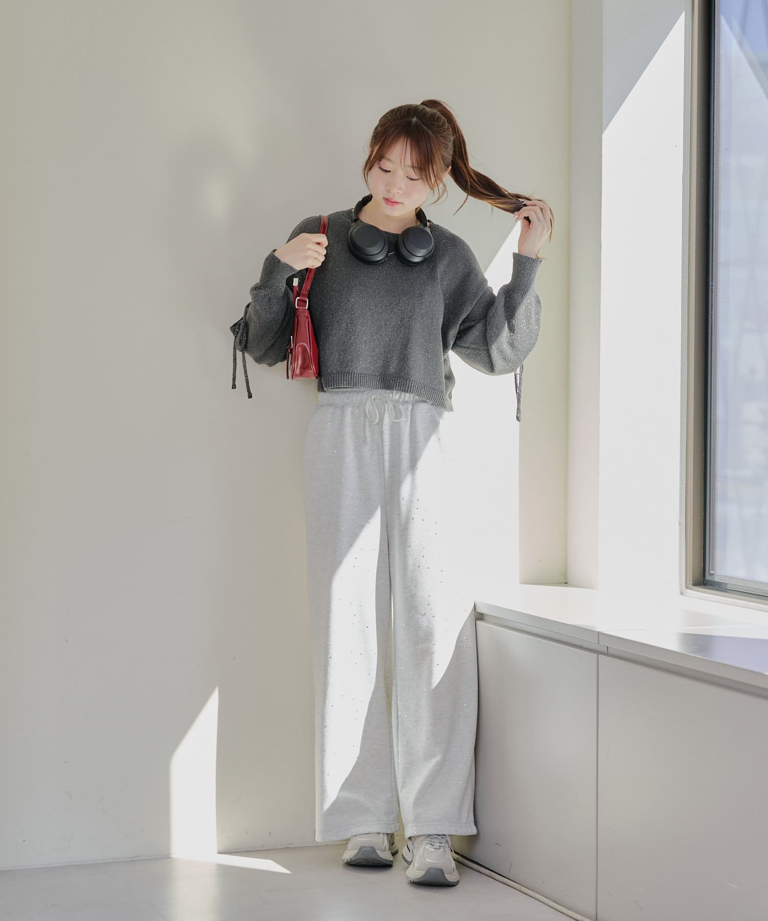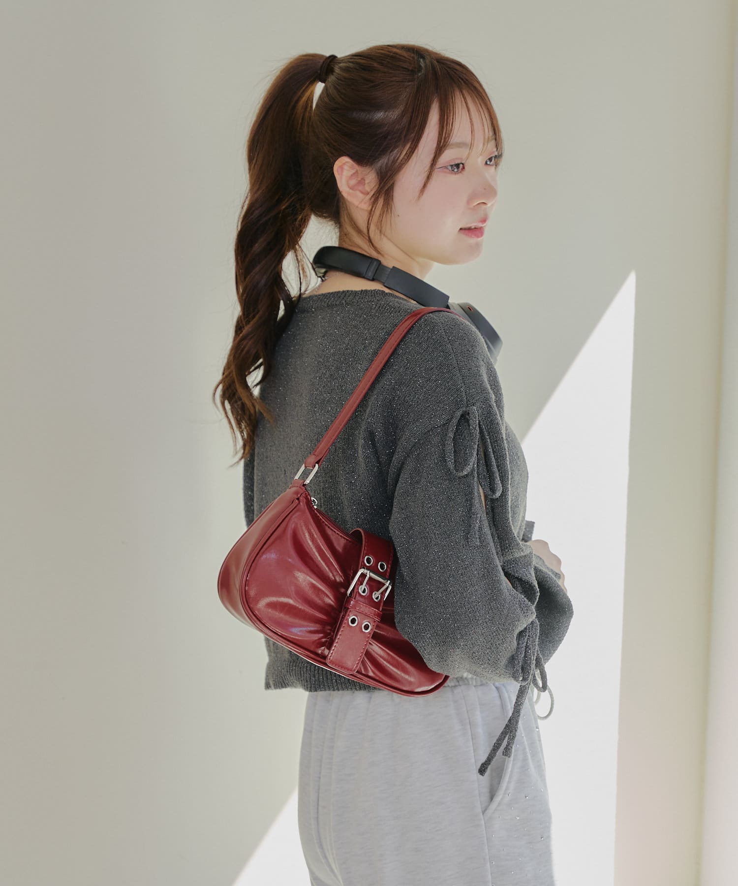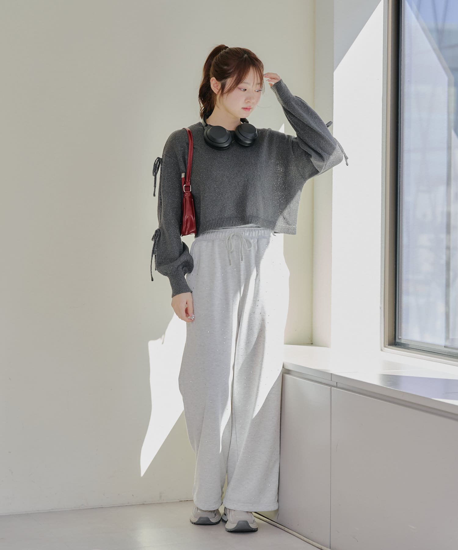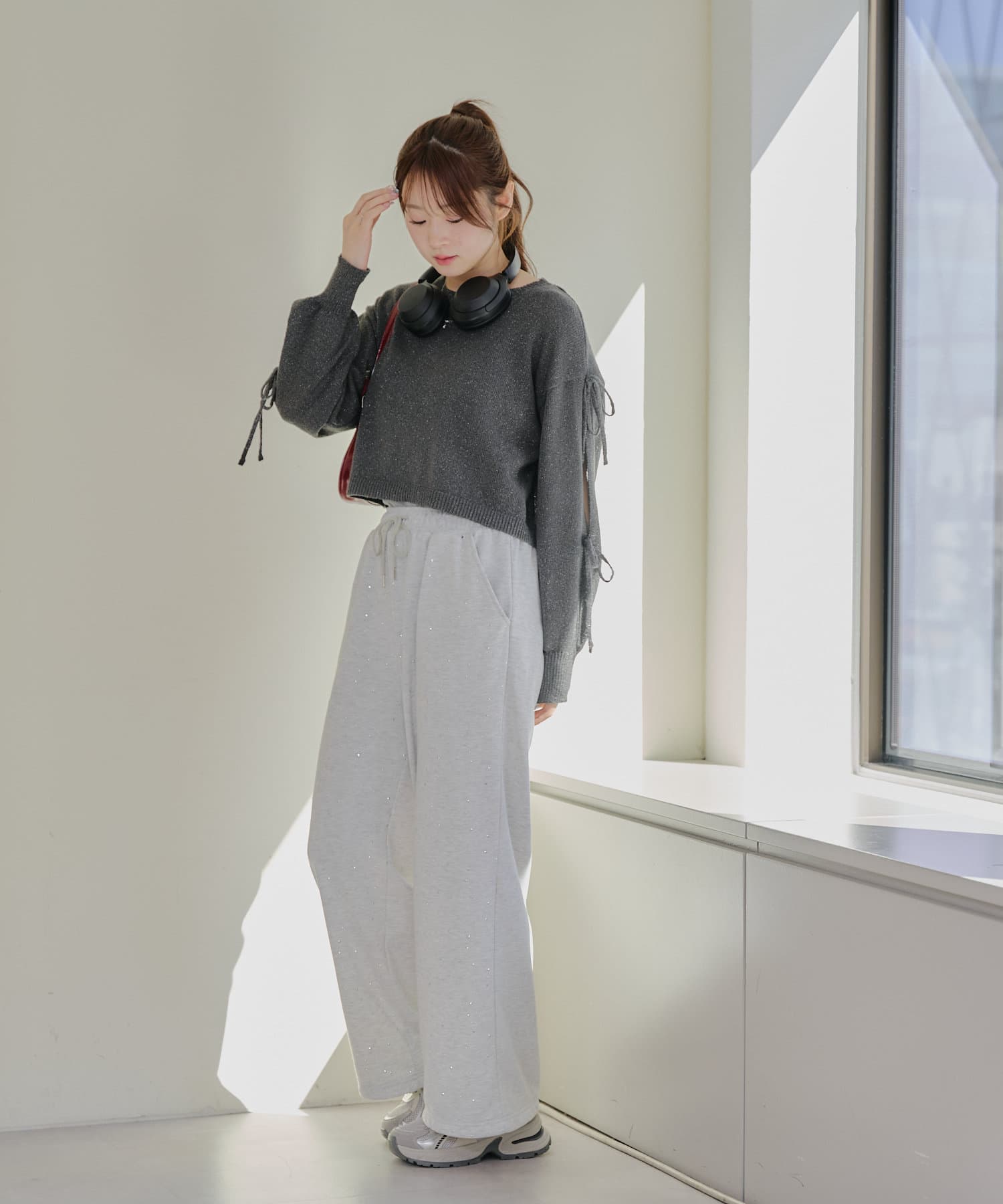 ・肩開きデザインでヘルシーな肌見せができるニットプルオーバー