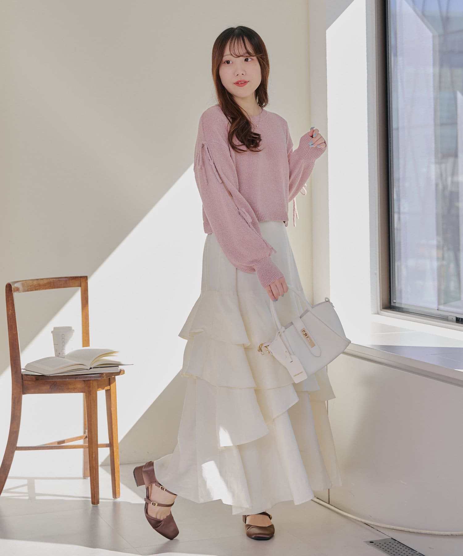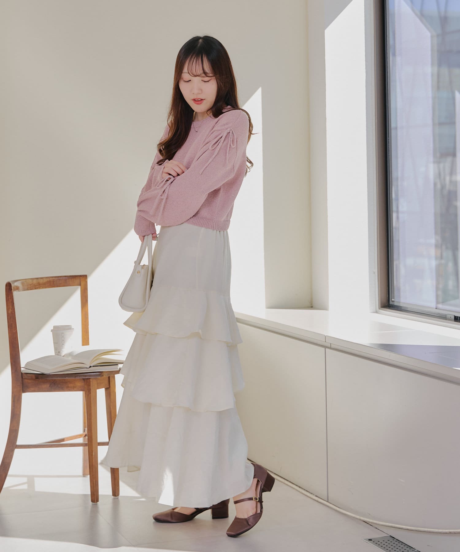 ・トレンドのバルーンスカートを合わせて旬なガーリーコーデを楽しむのも◎