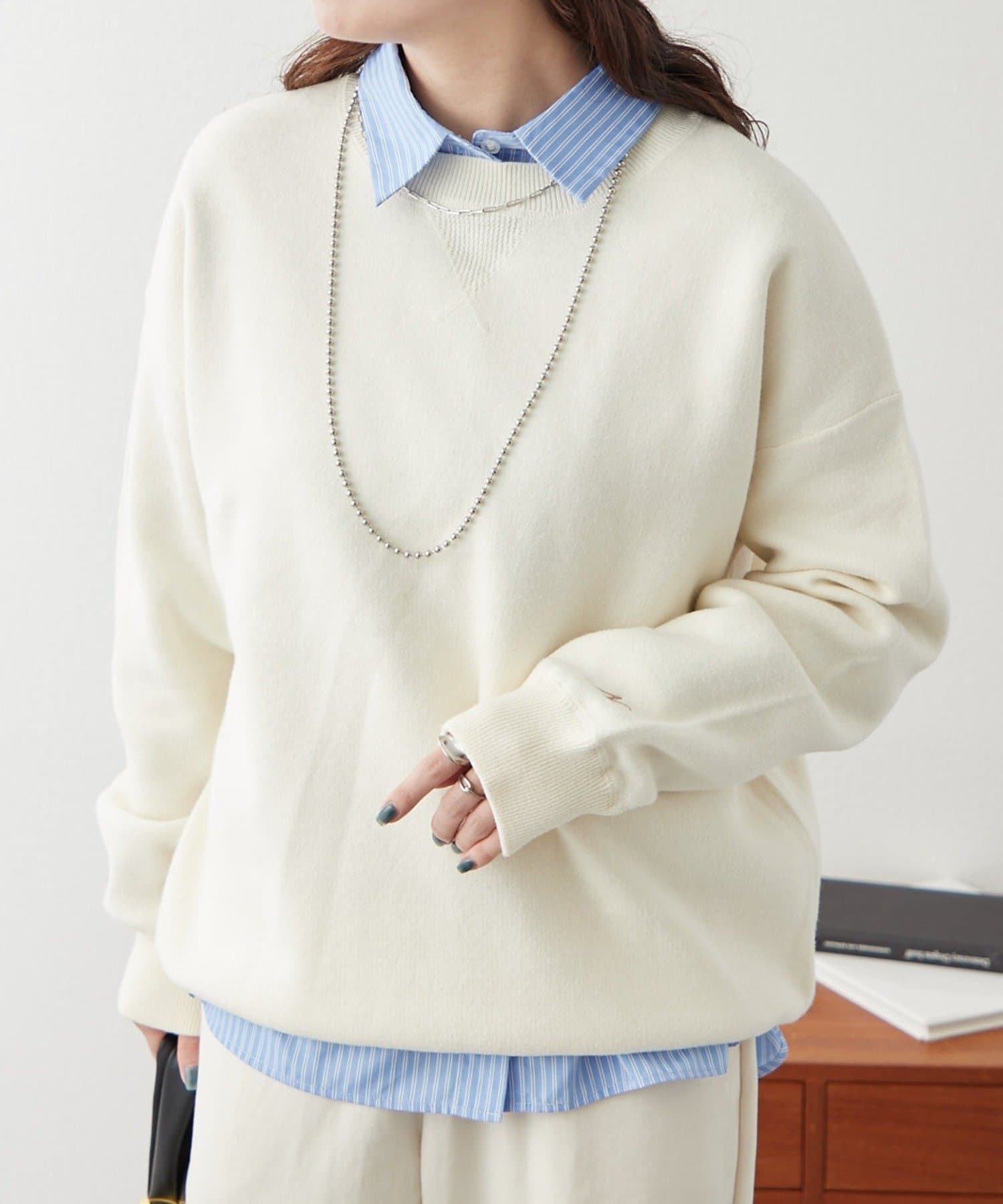・まるでスウェットのような軽い着心地のニットプルオーバー。