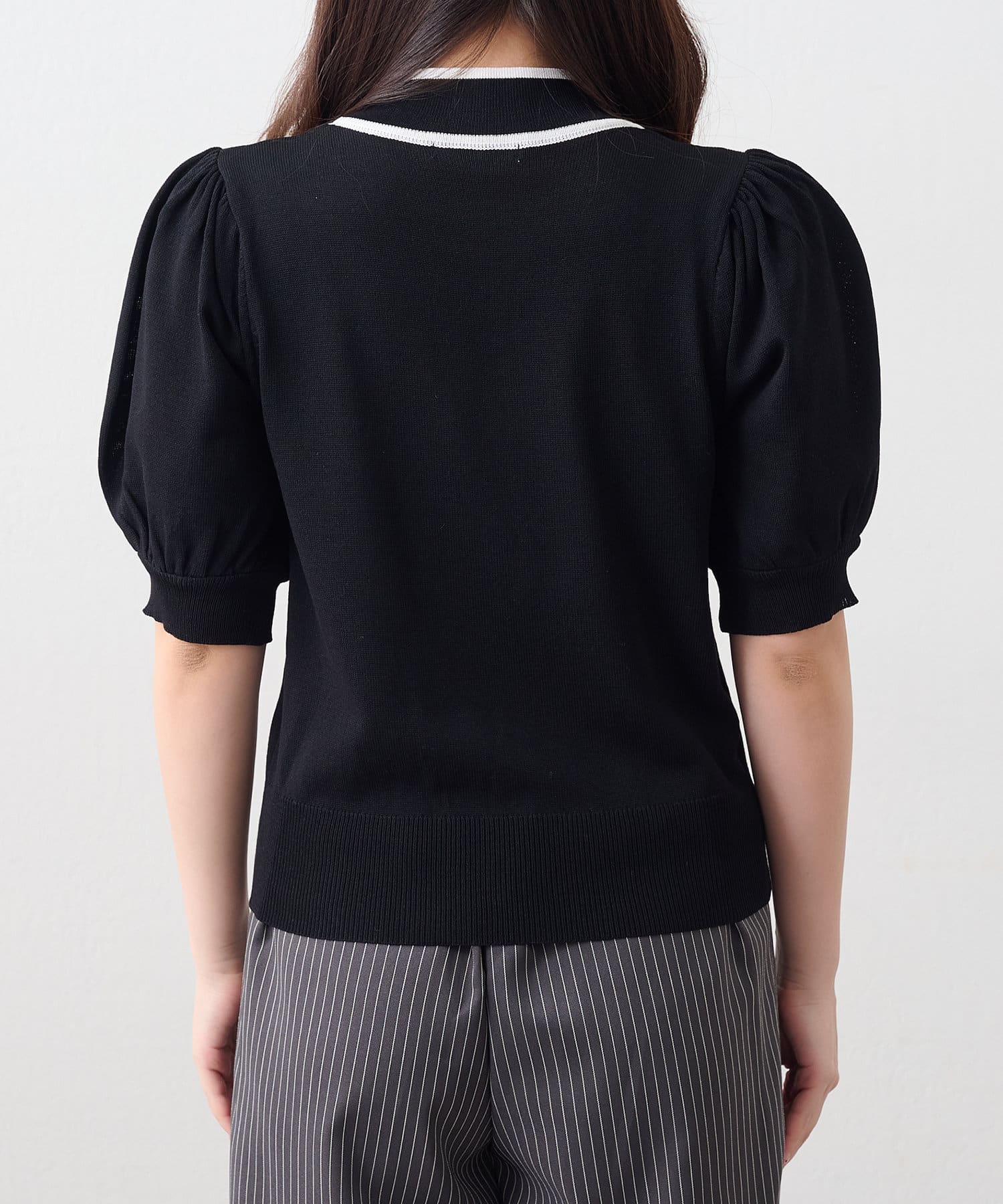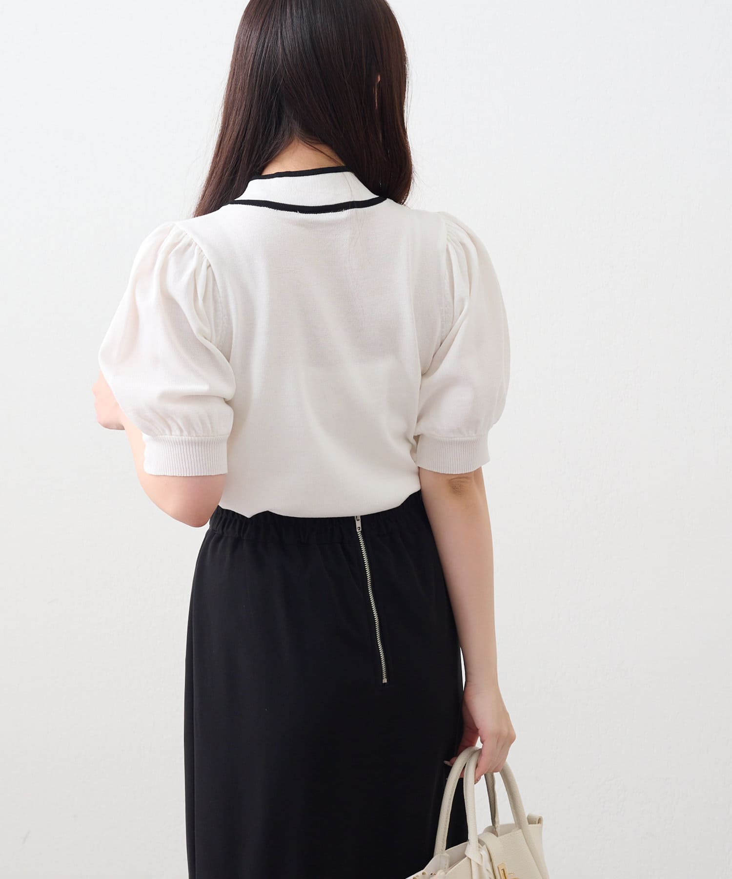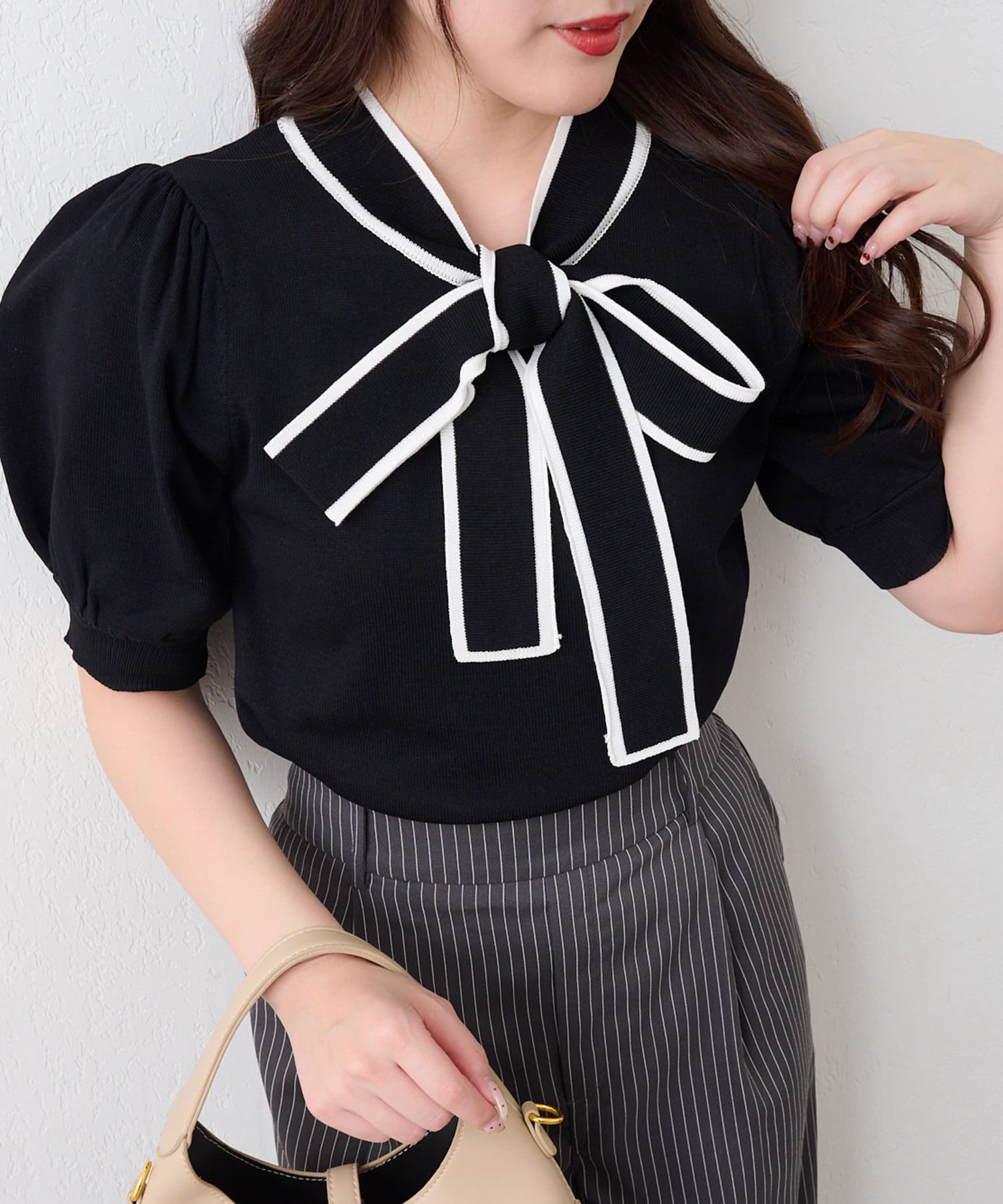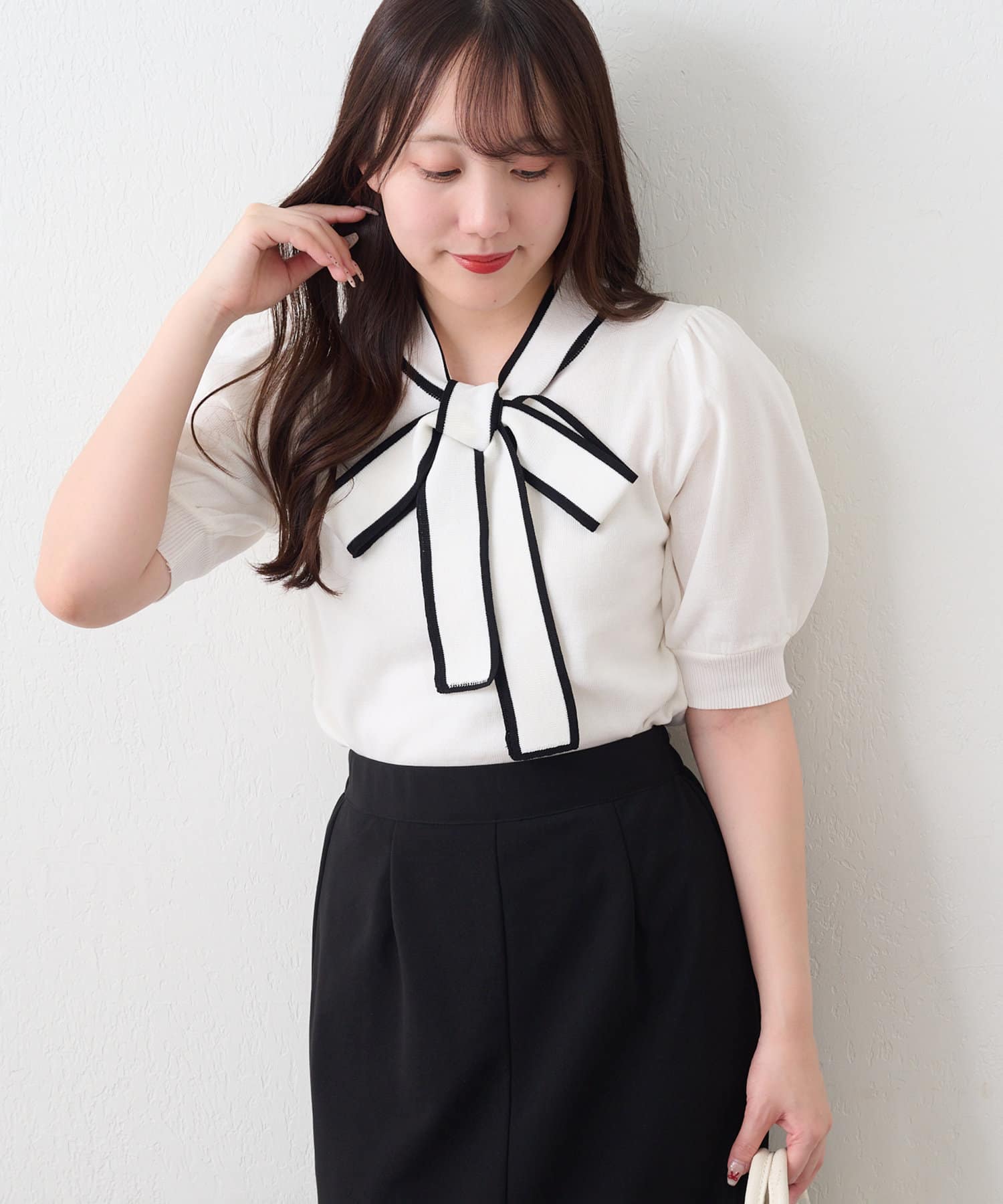ボウタイデザインがフェミニンな印象に♪半袖ニット