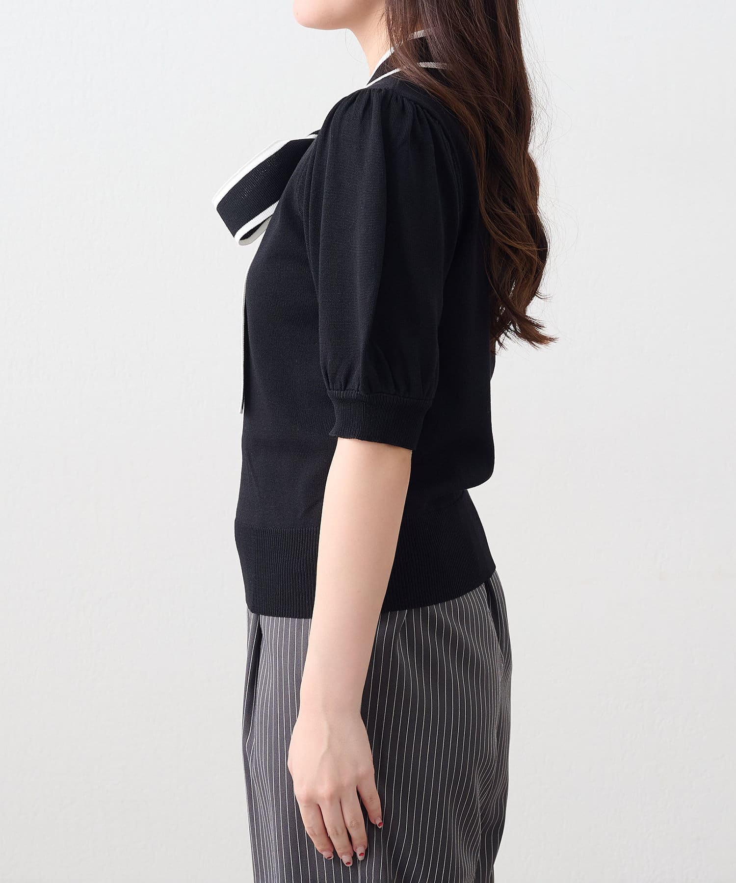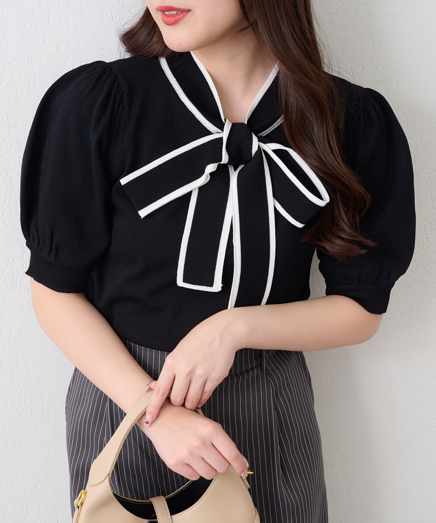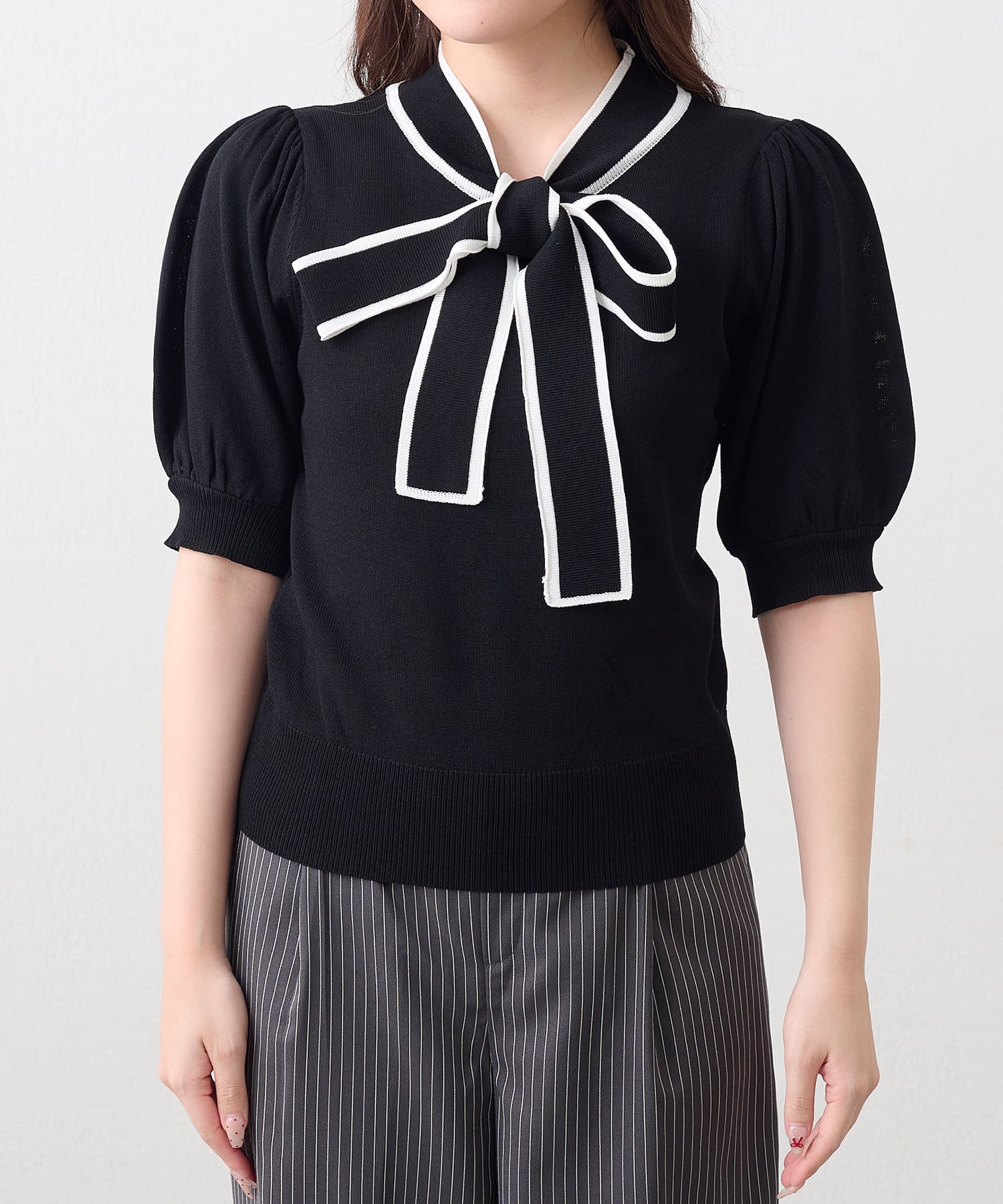 【RMAF】【フェミニンルックに】リボンタイ付半袖ニット
