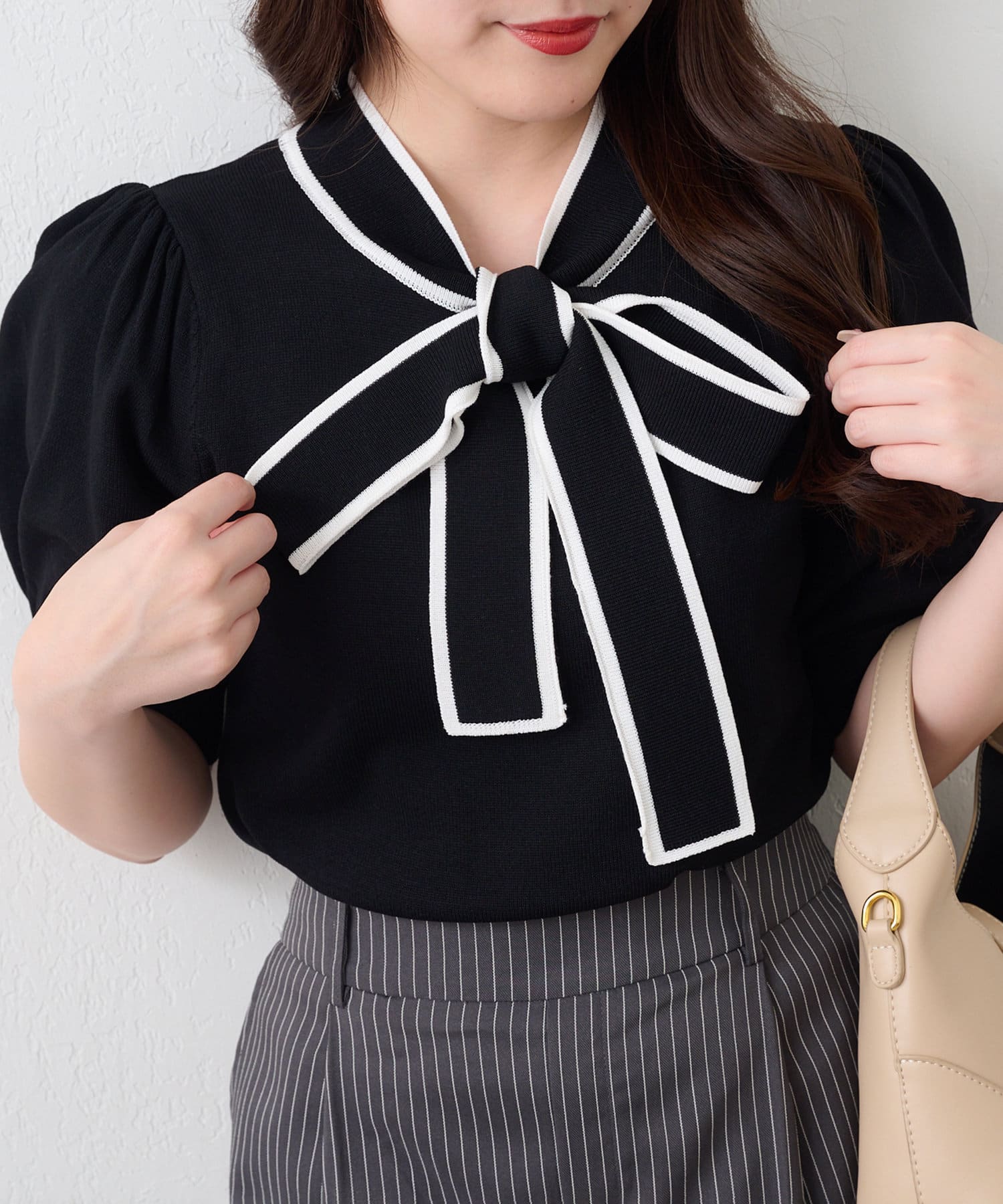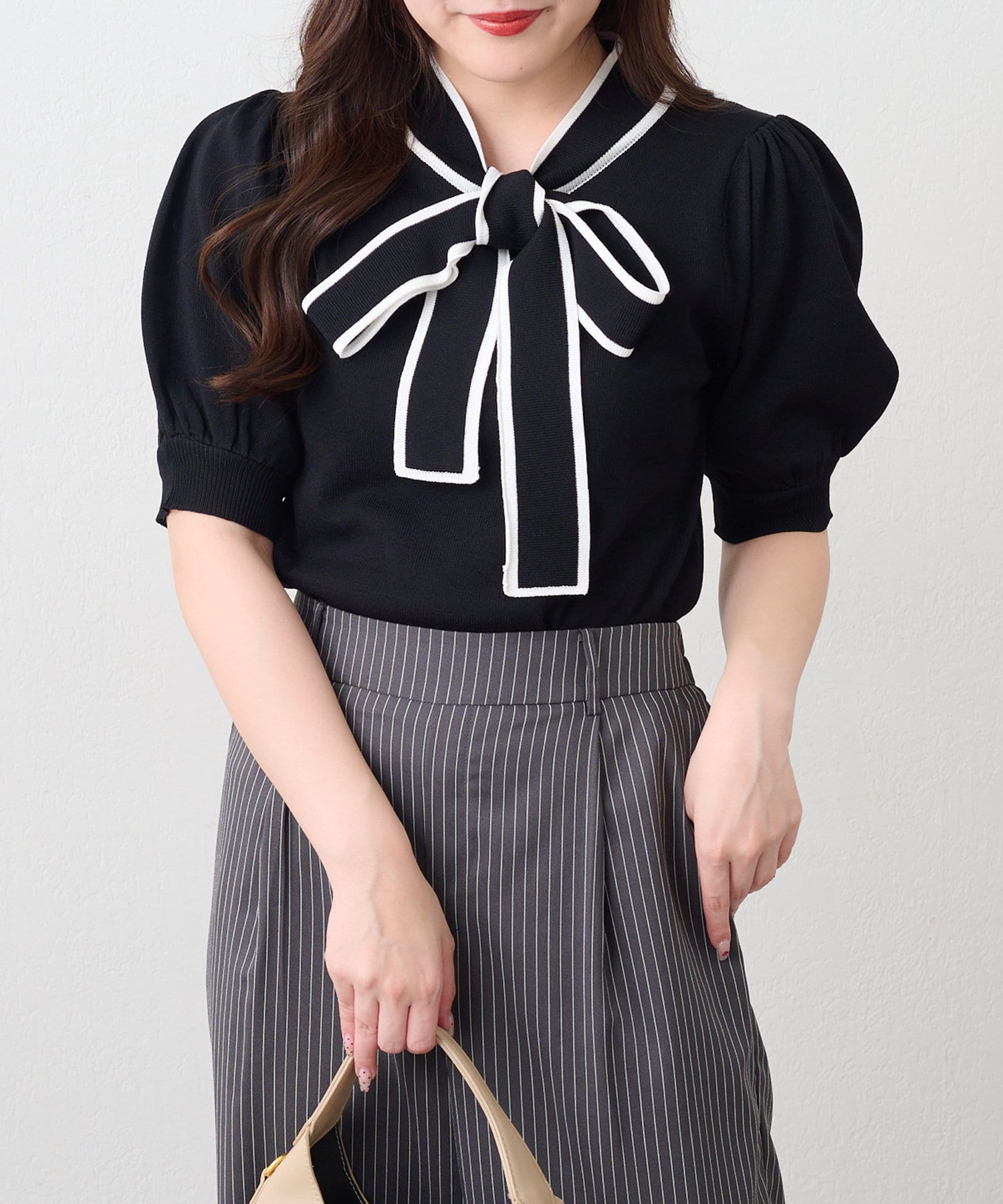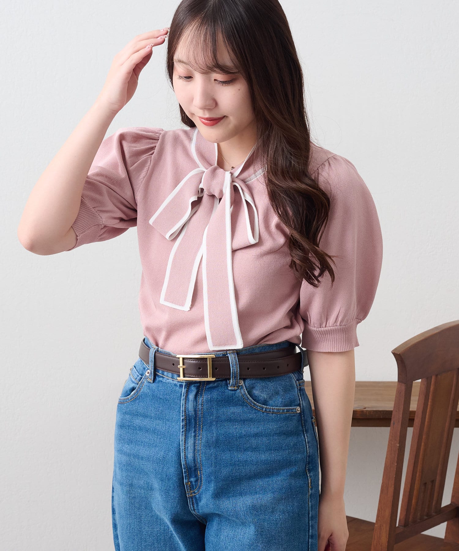 【RMAF】【フェミニンルックに】リボンタイ付半袖ニット