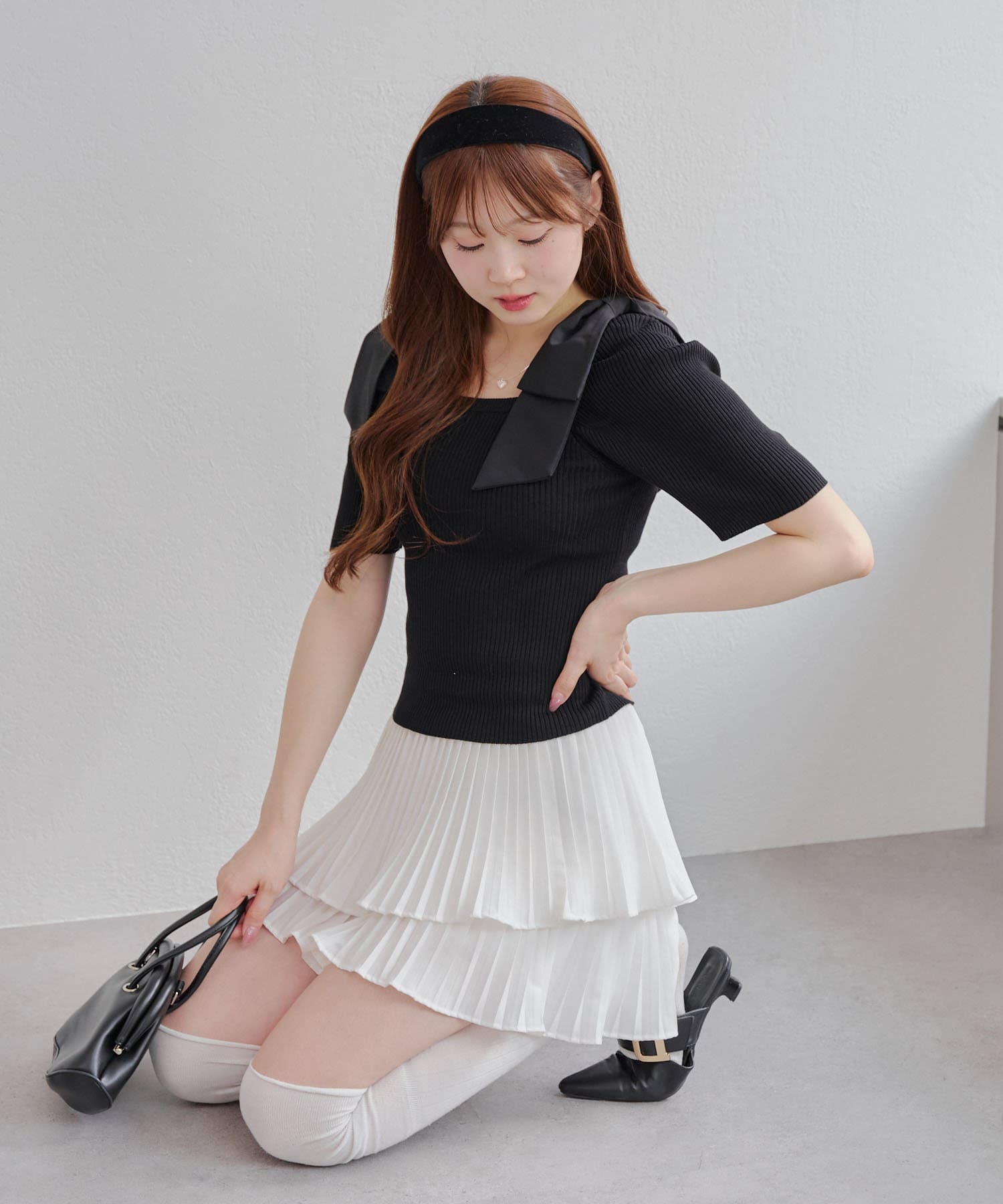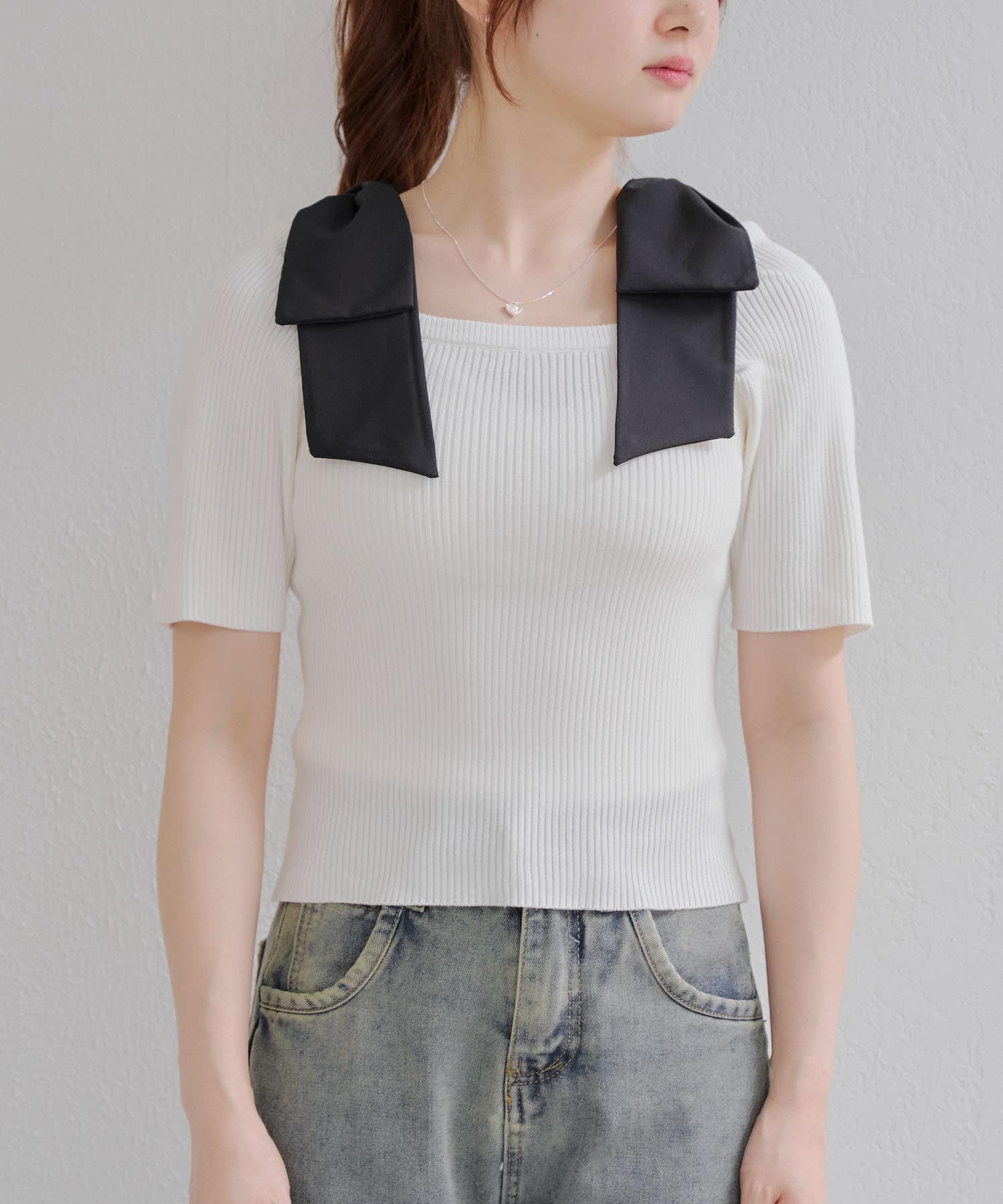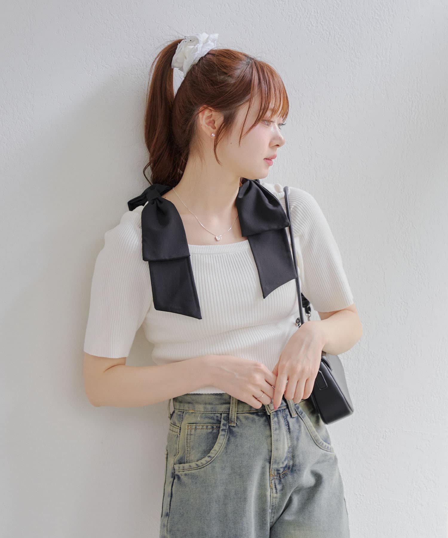 ・伸縮性のあるリブニット素材なのでストレスフリーな着心地です