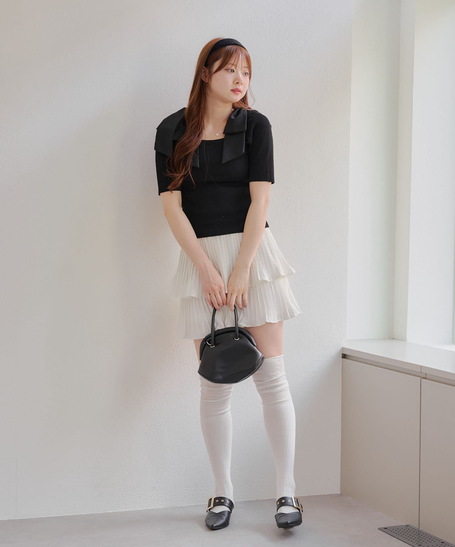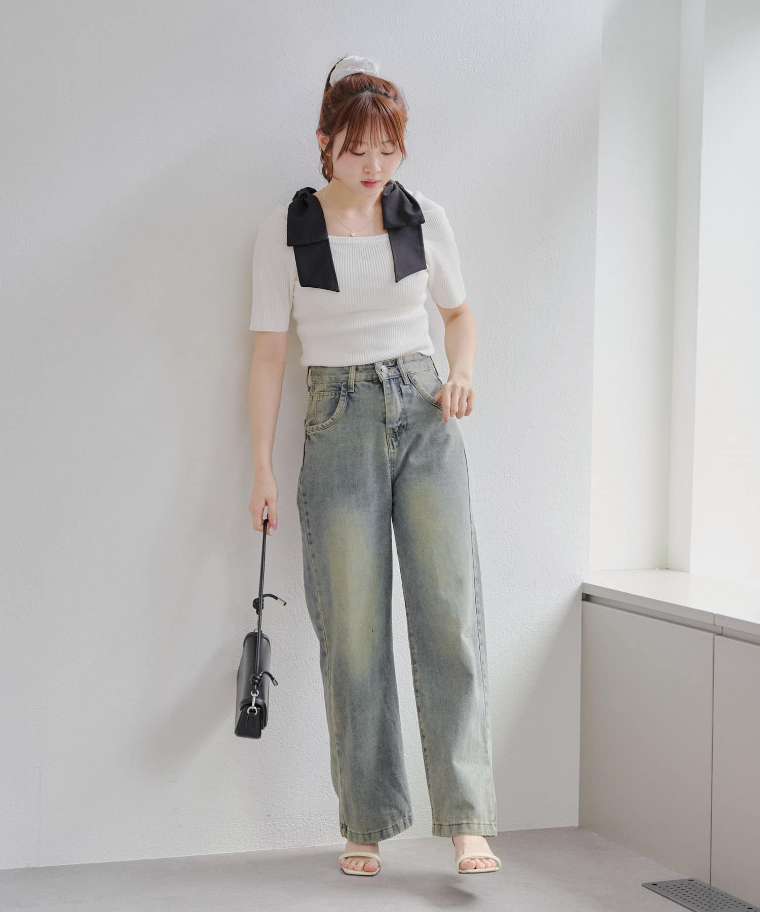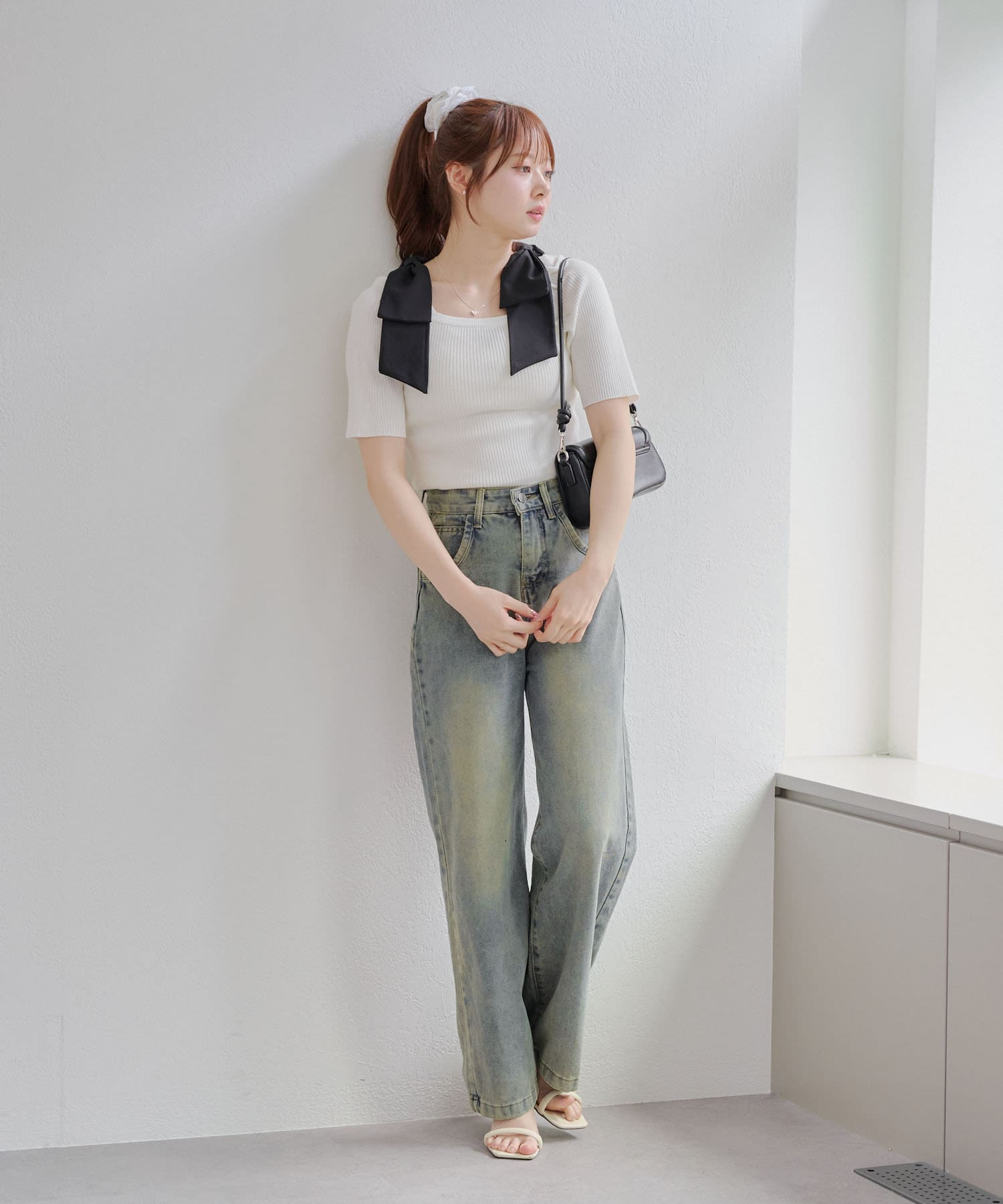 ・伸縮性のあるリブニット素材なのでストレスフリーな着心地です