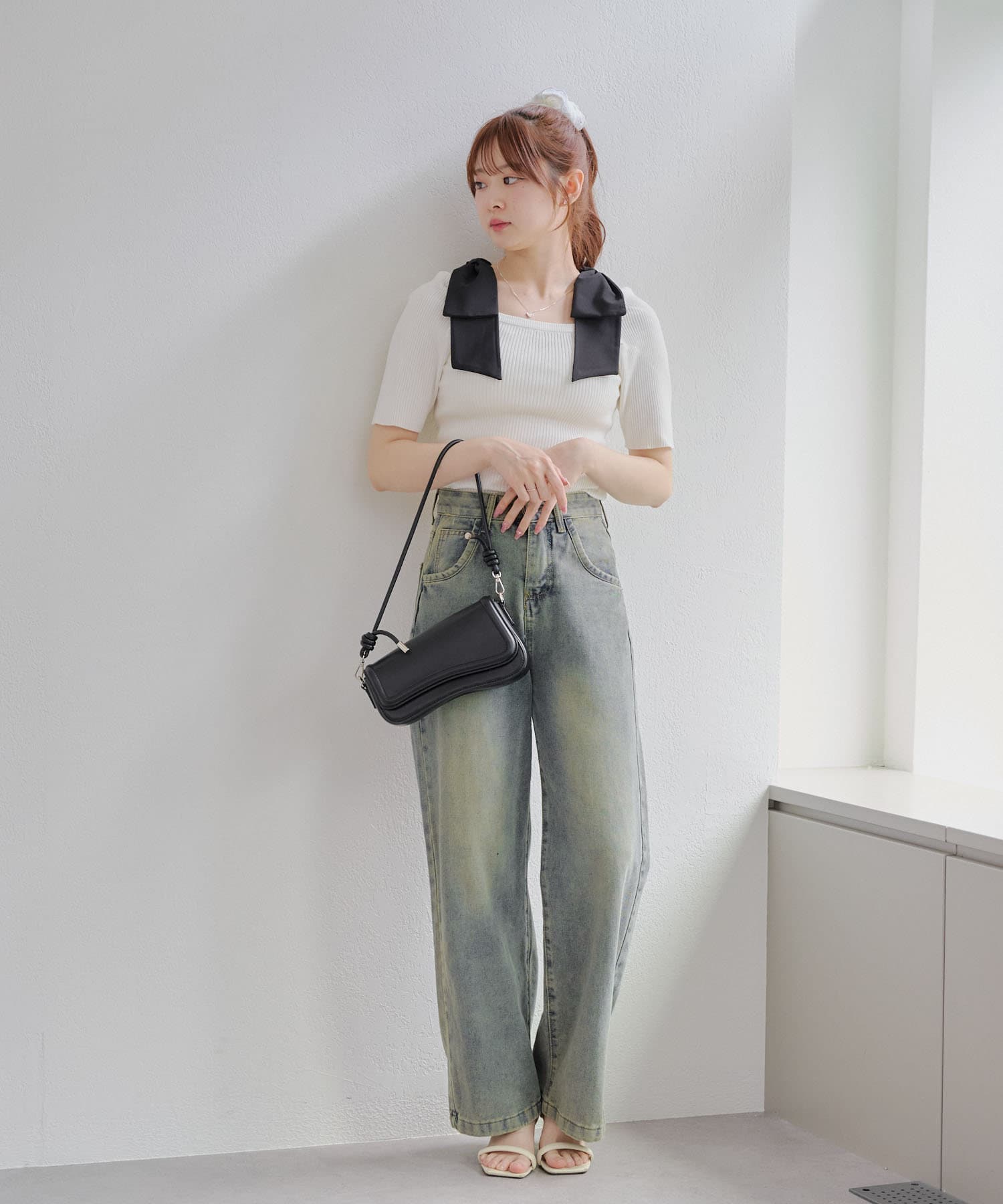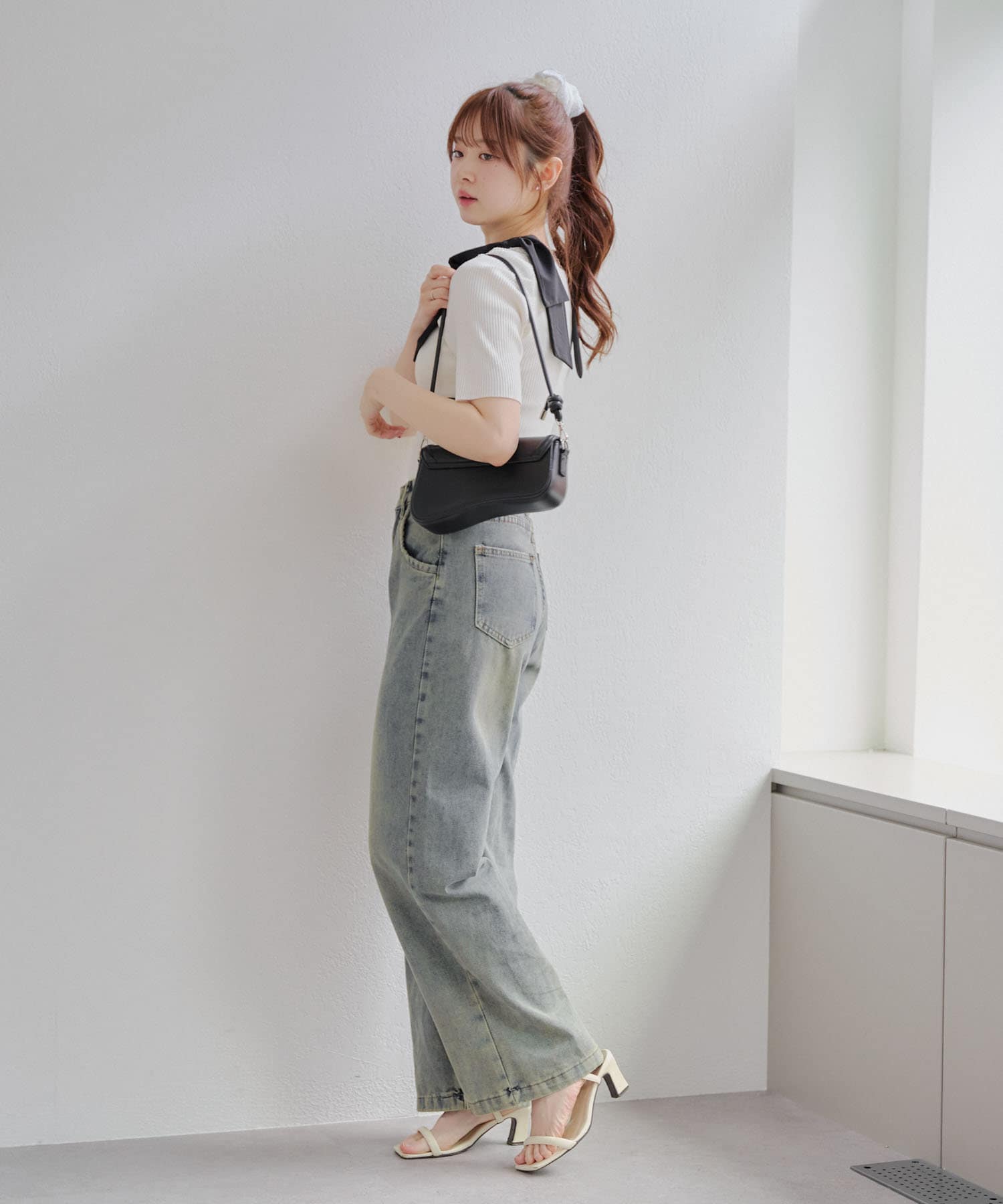 ・ハイウエストのデニムパンツでカジュアルダウンさせるのも◎
