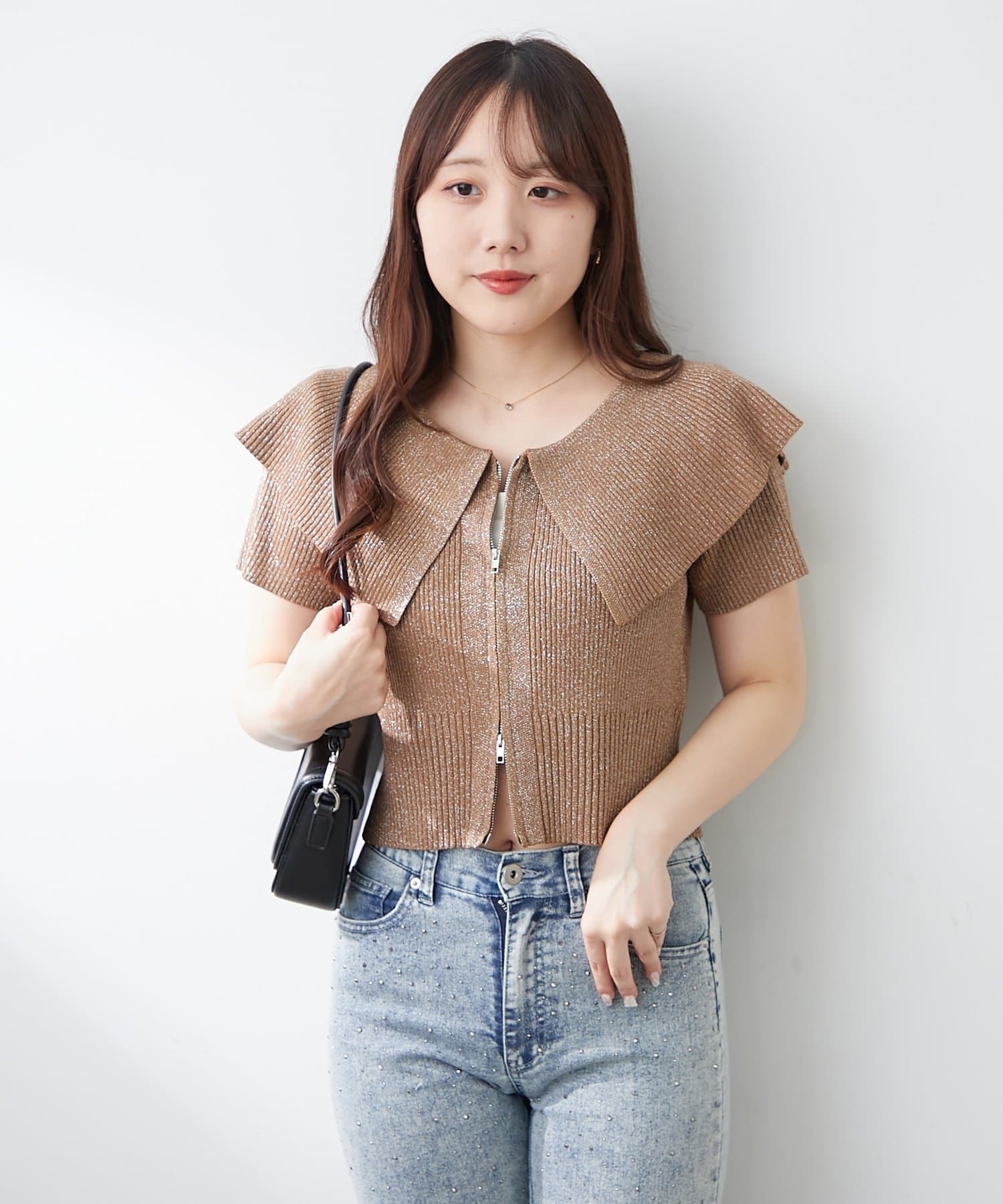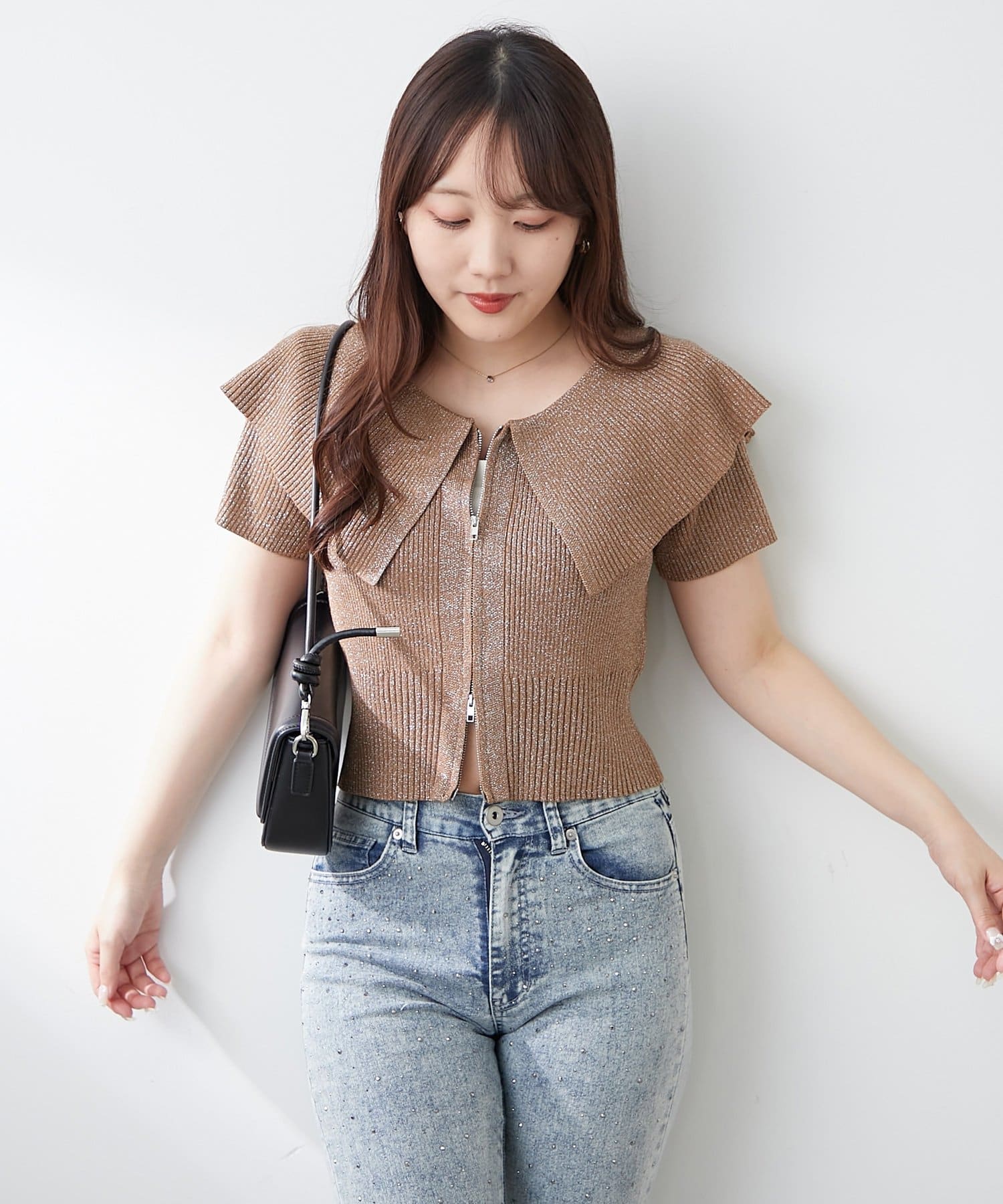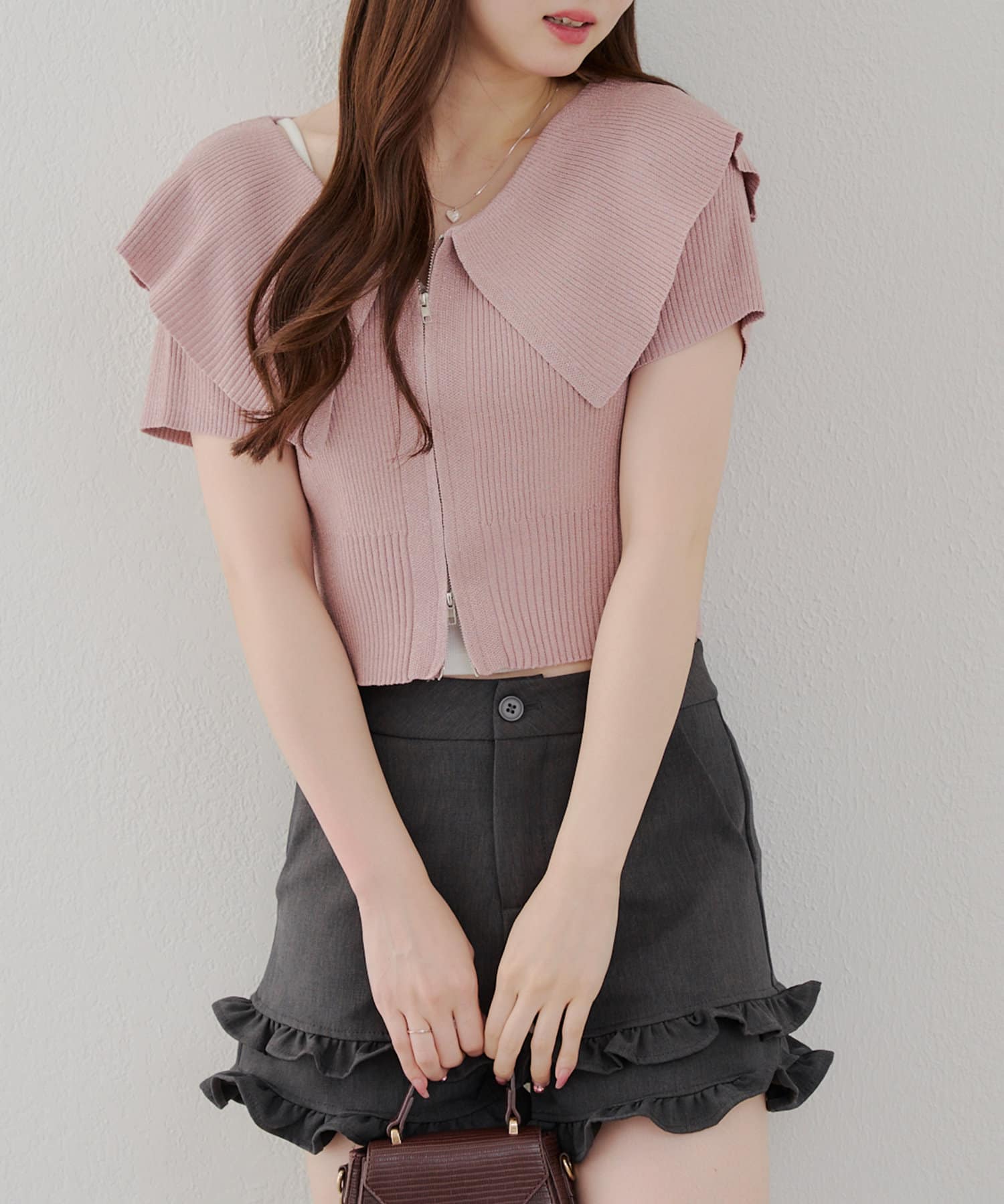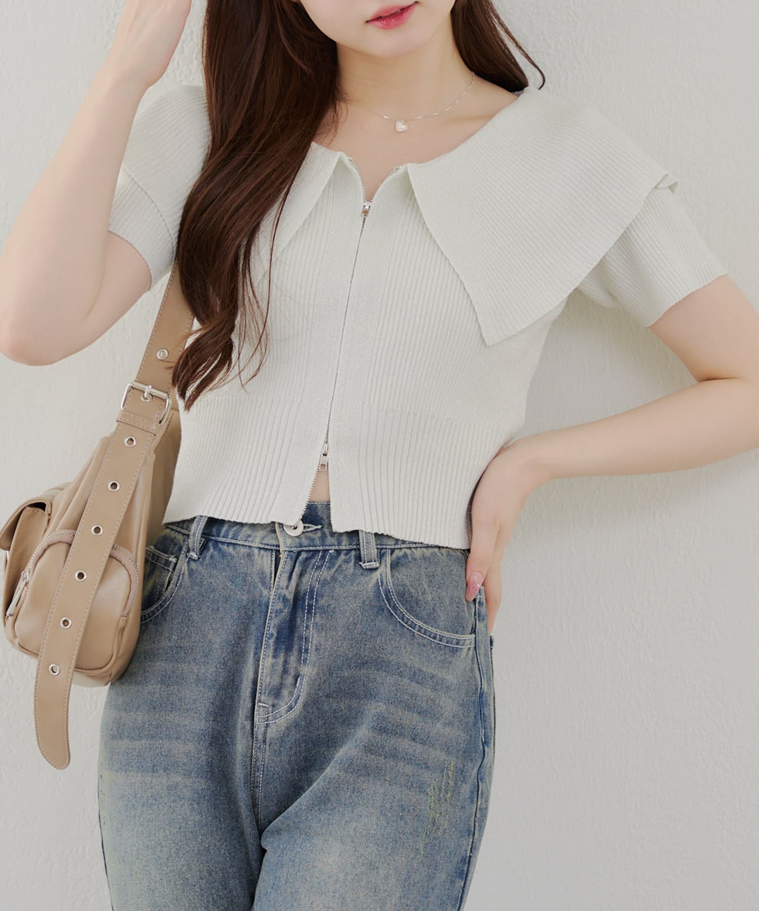 ・大きめの襟が小顔に見せてくれるカーディガン!