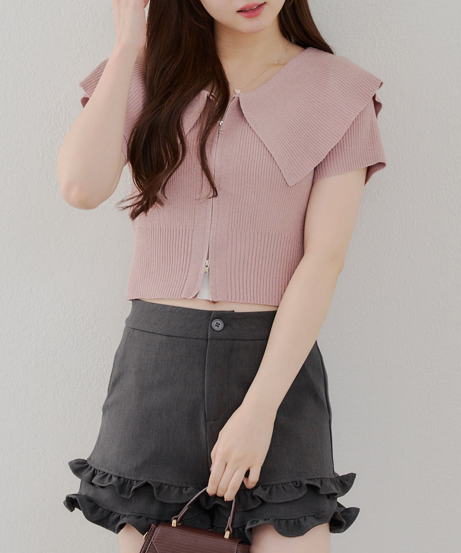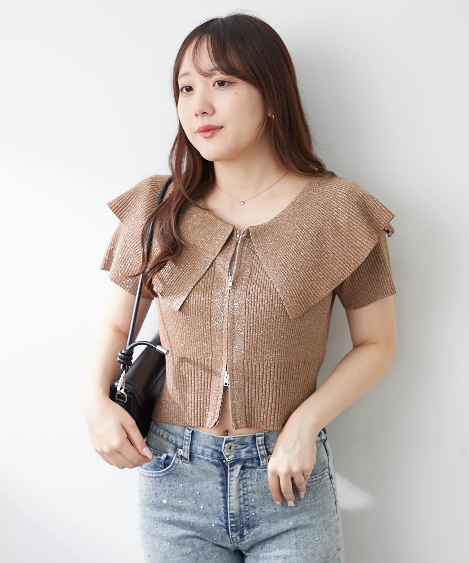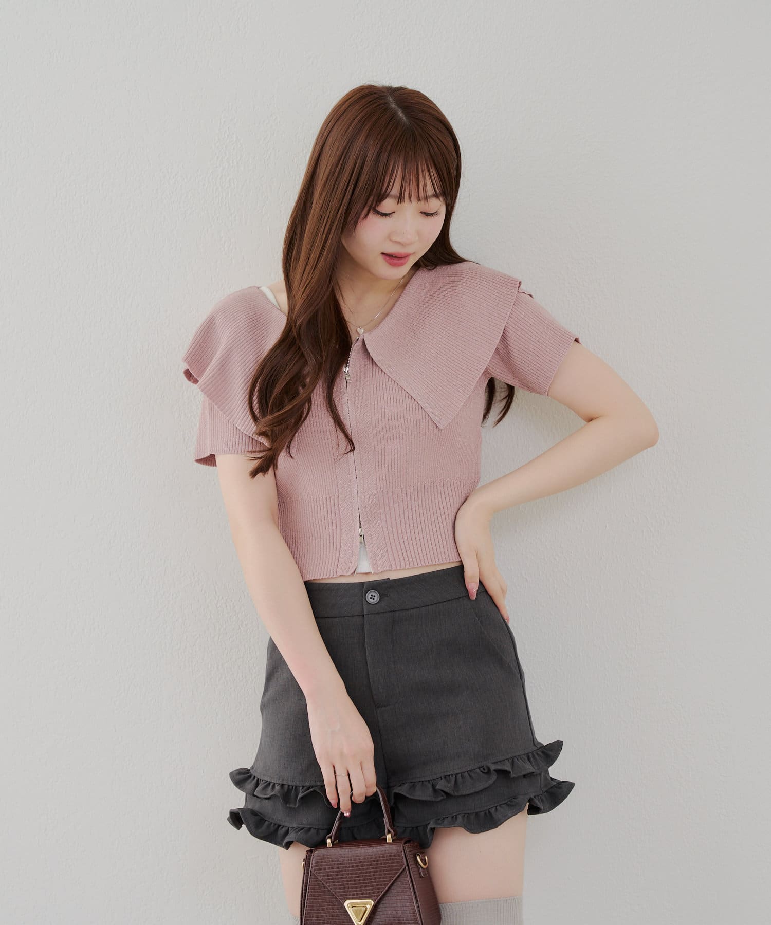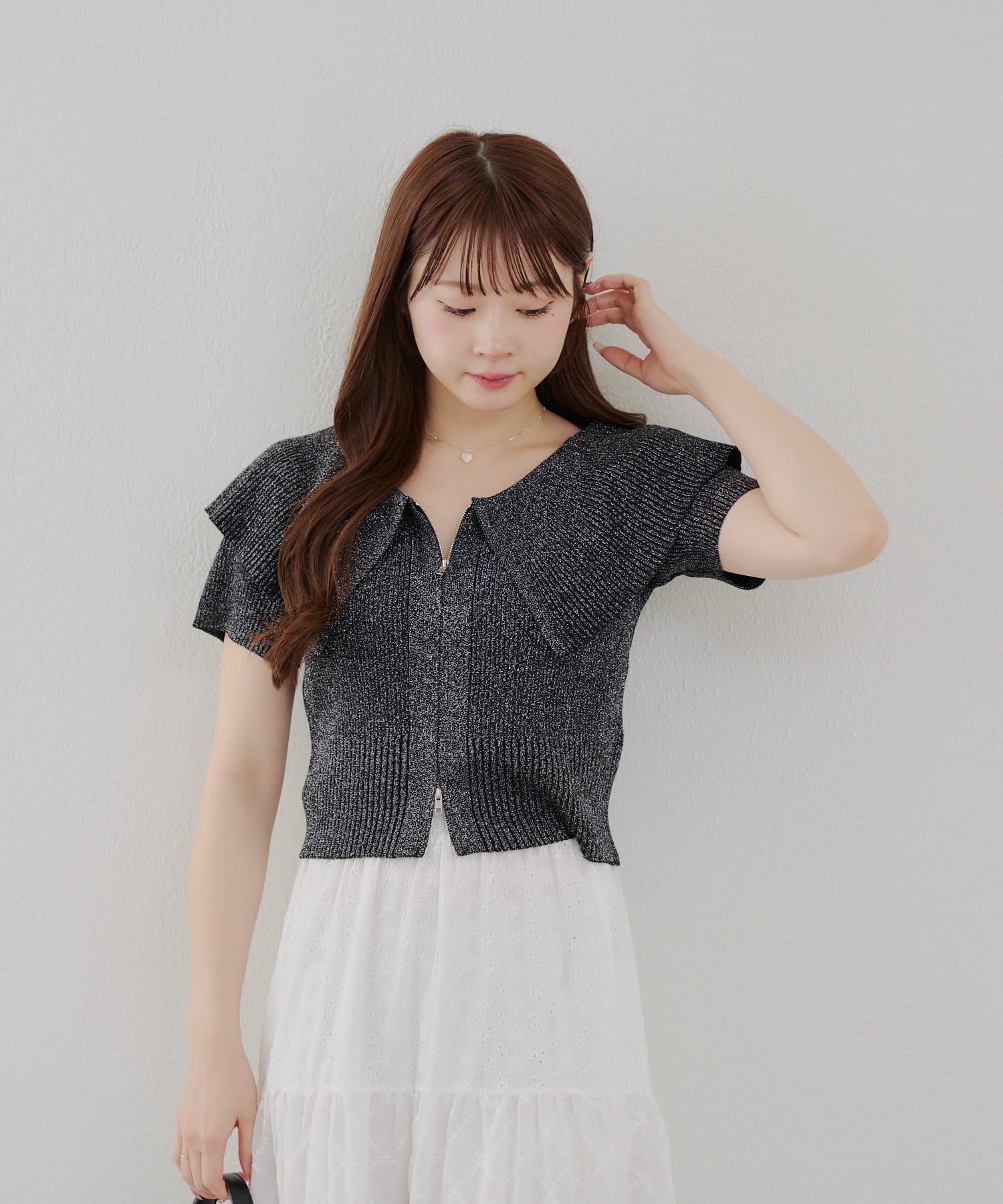 ・大きめの襟が小顔に見せてくれるカーディガン!