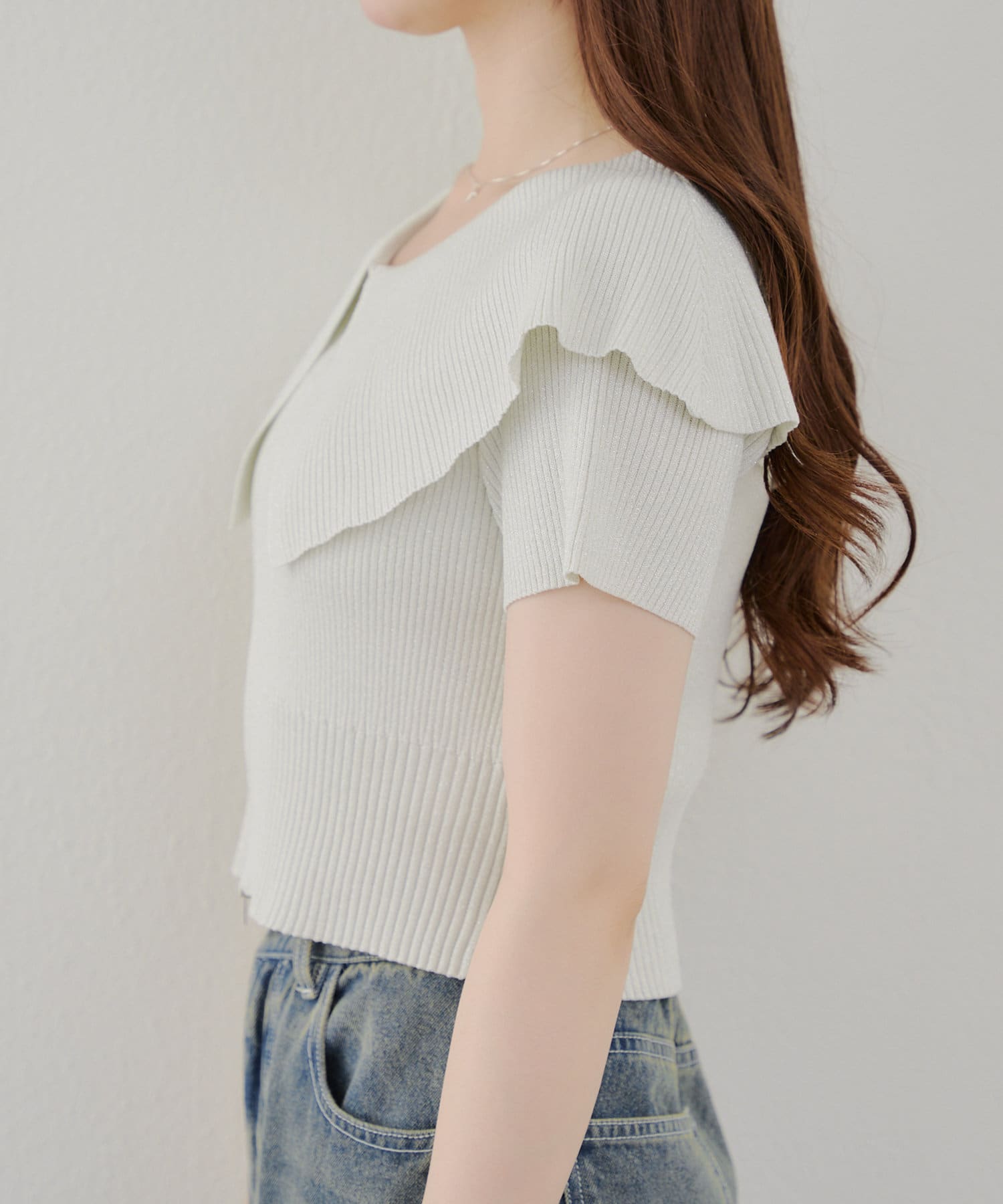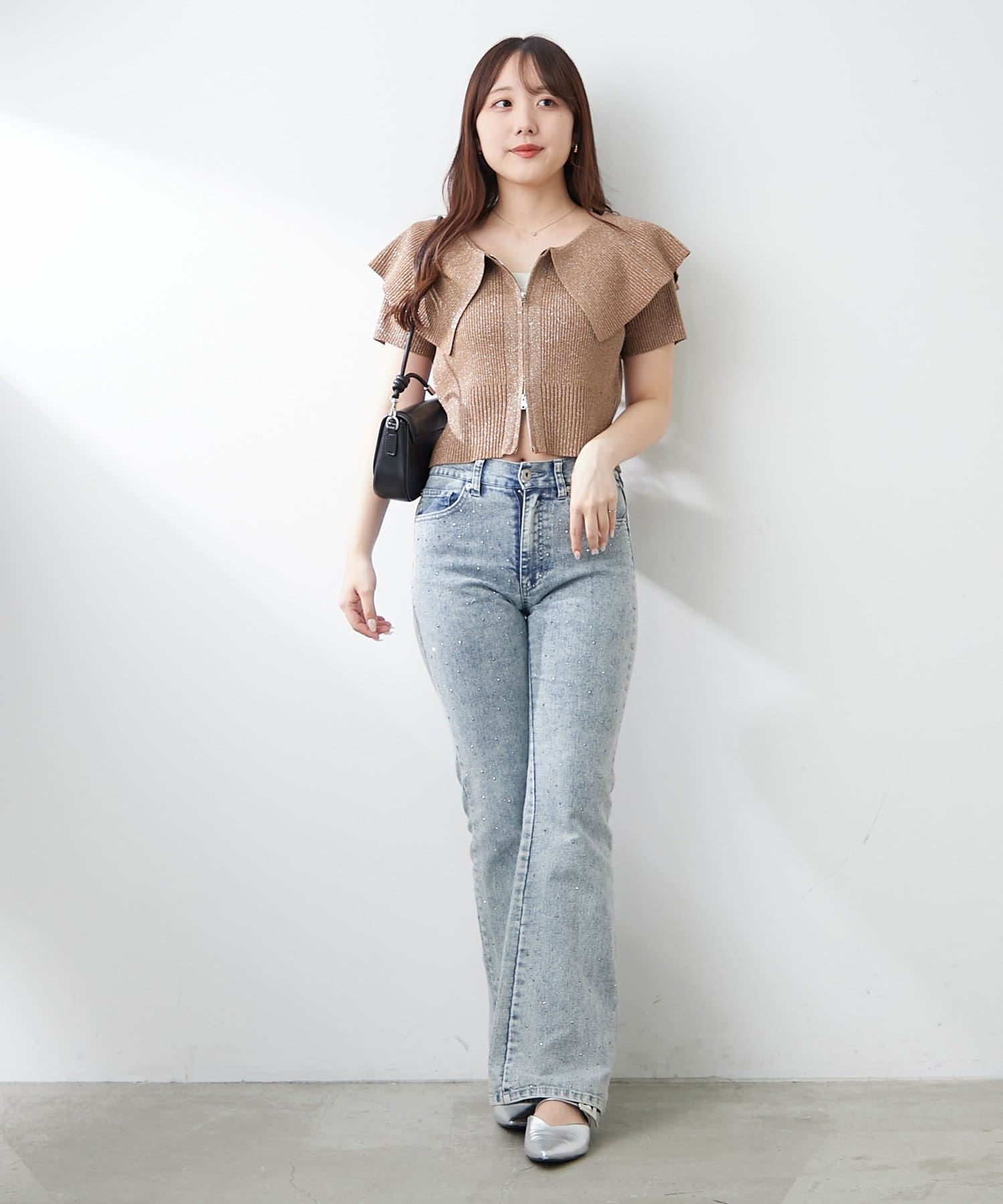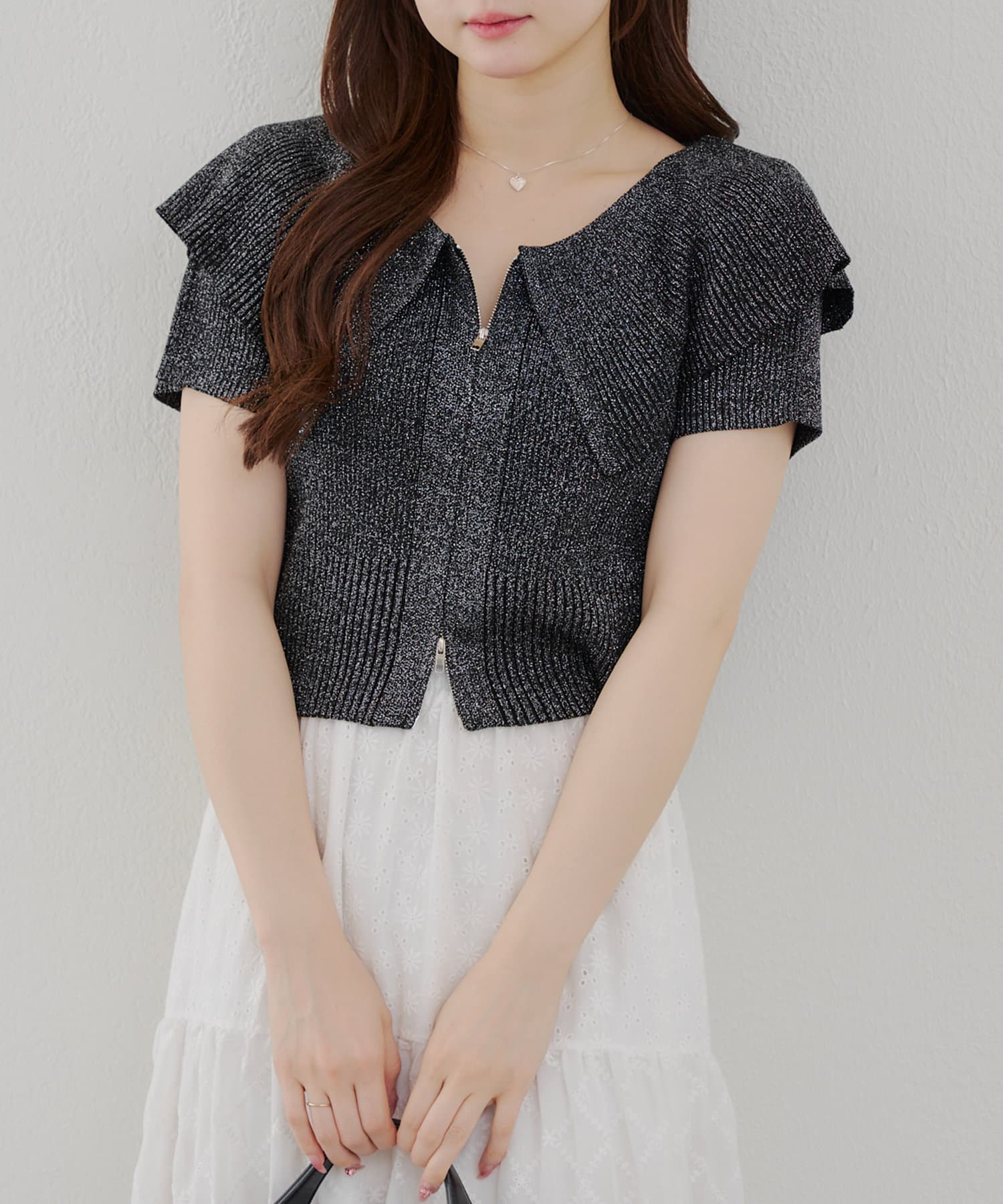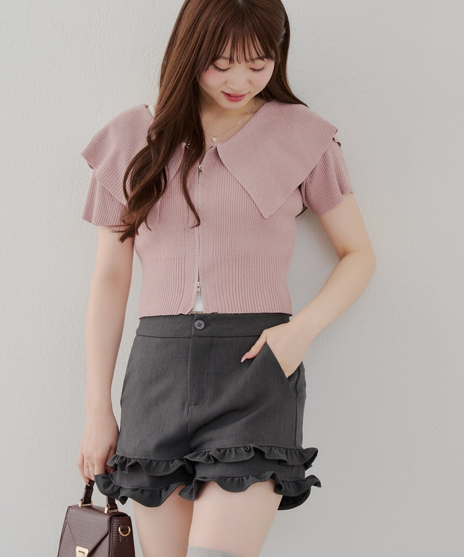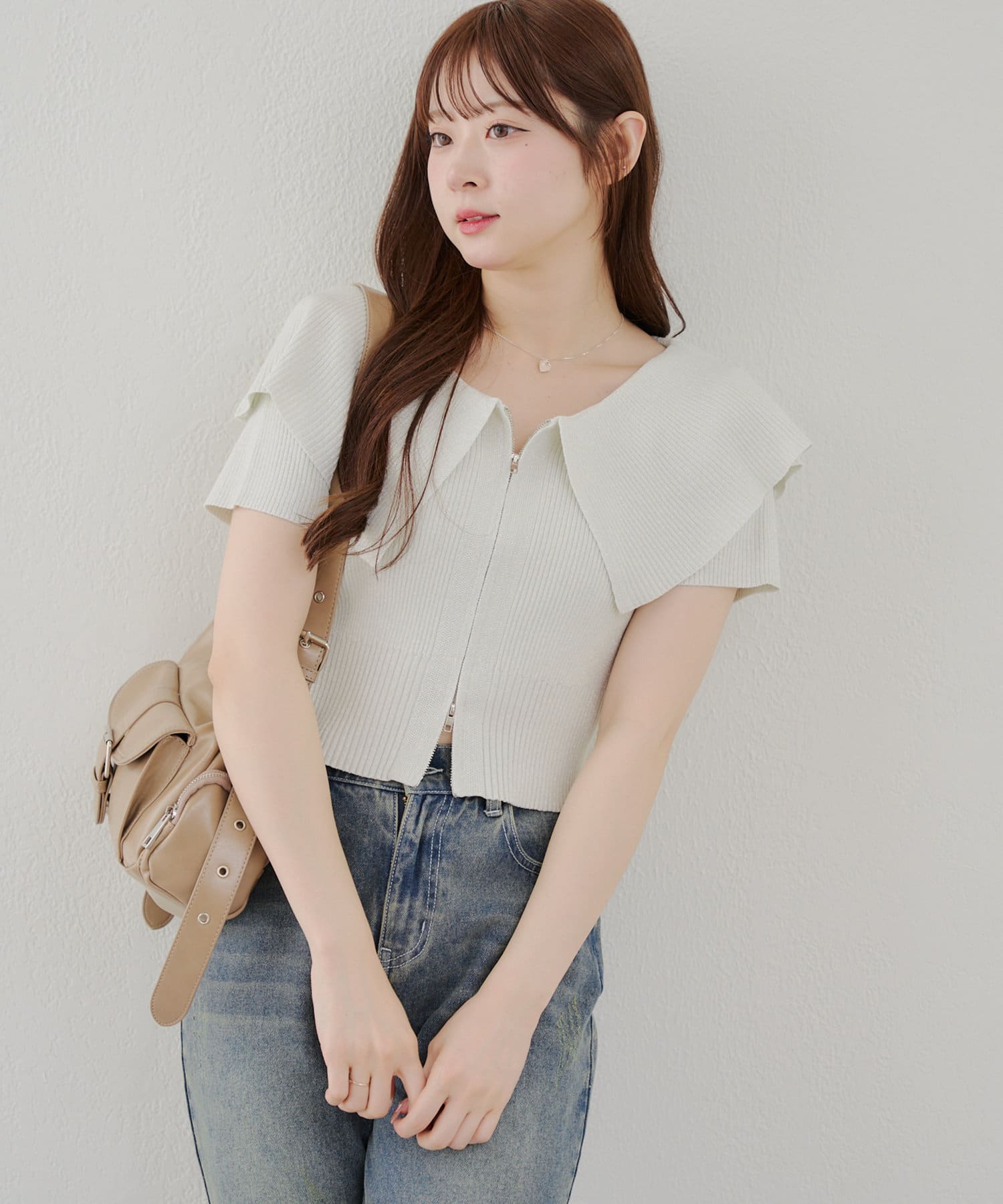 ・大きめの襟が小顔に見せてくれるカーディガン!