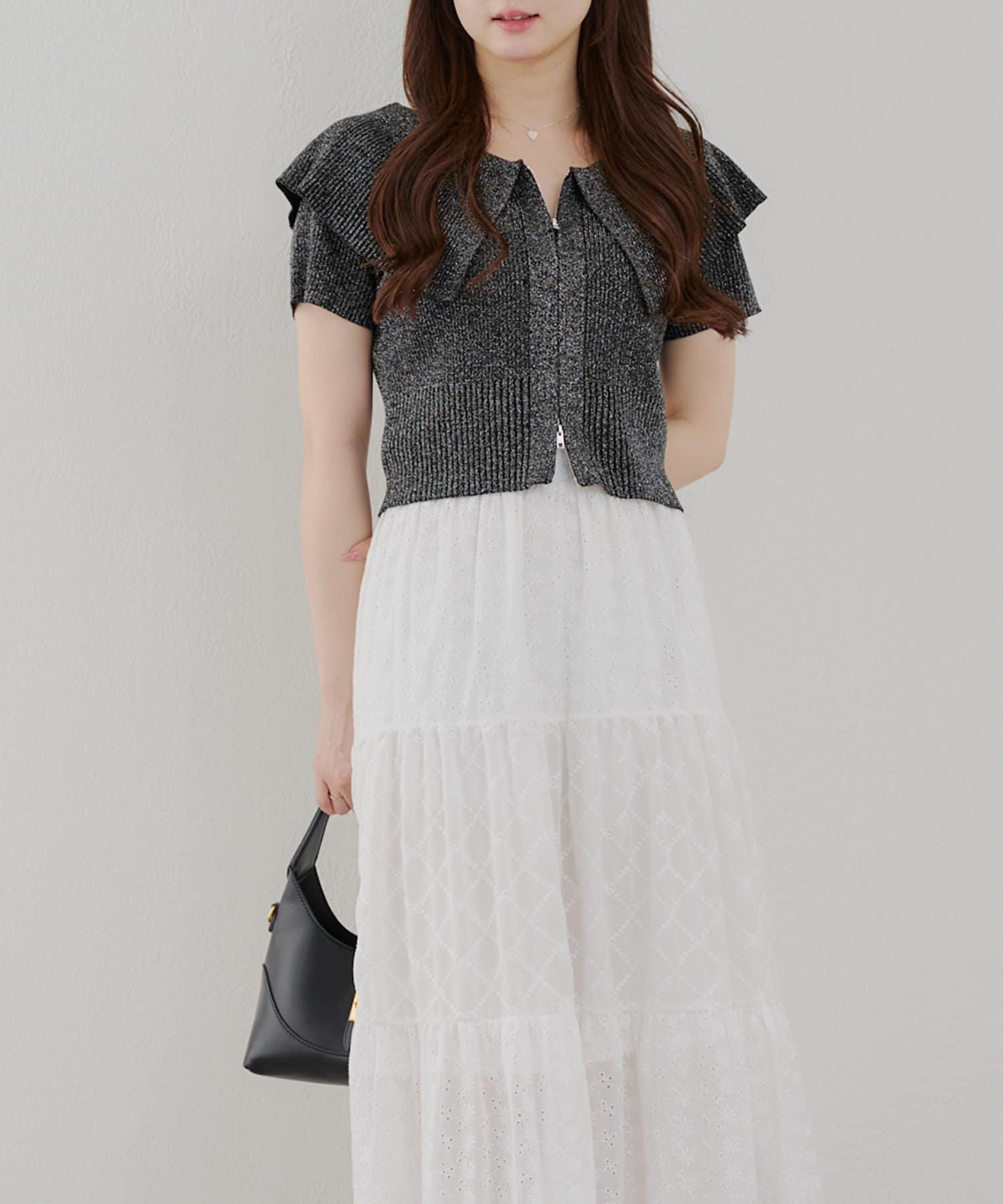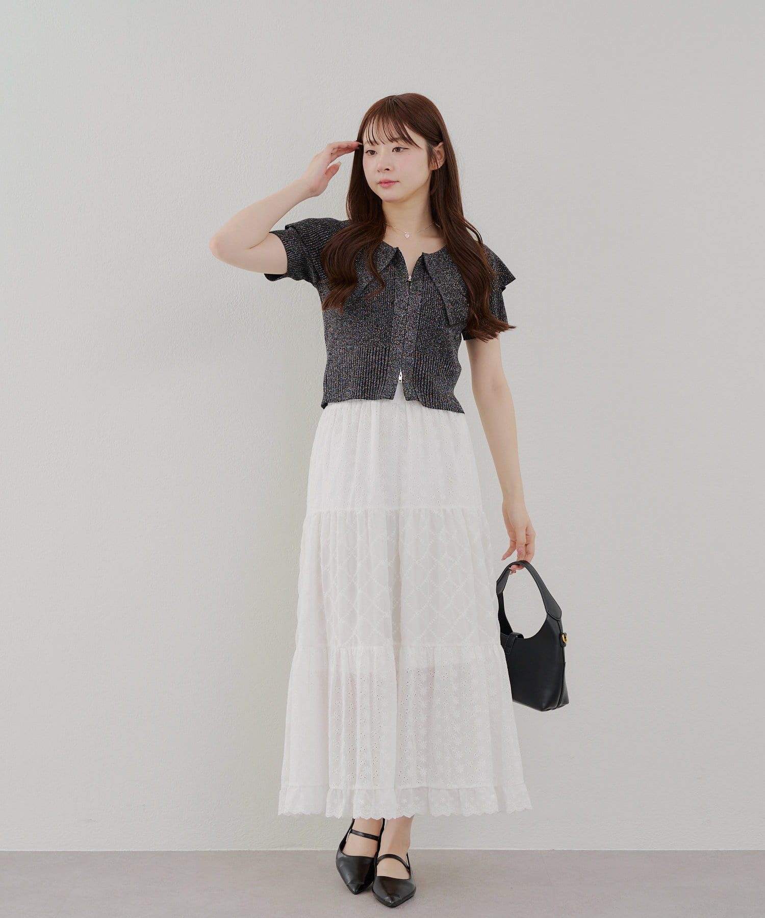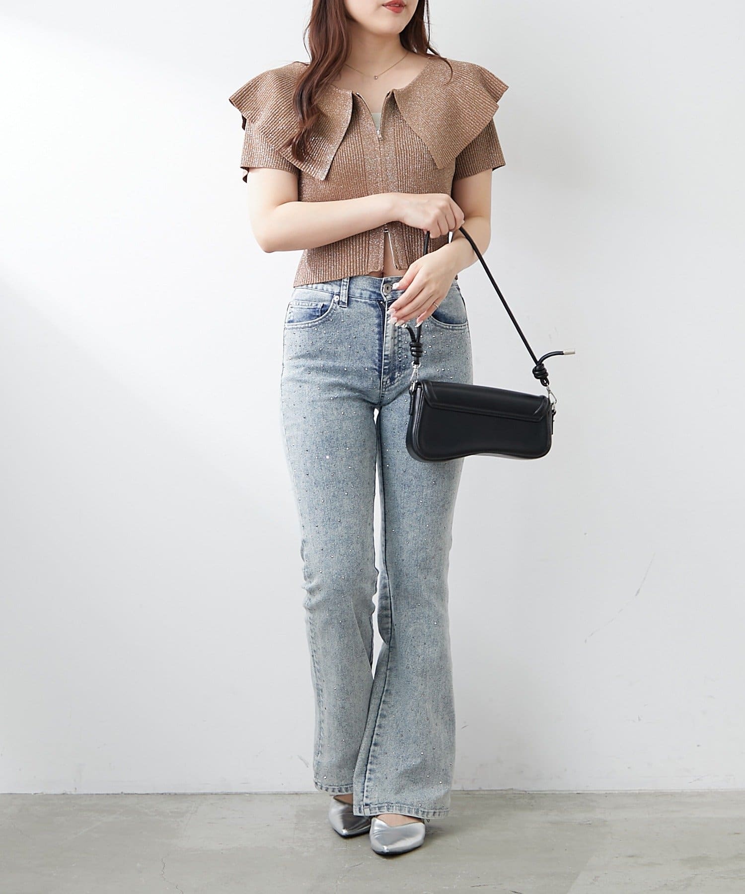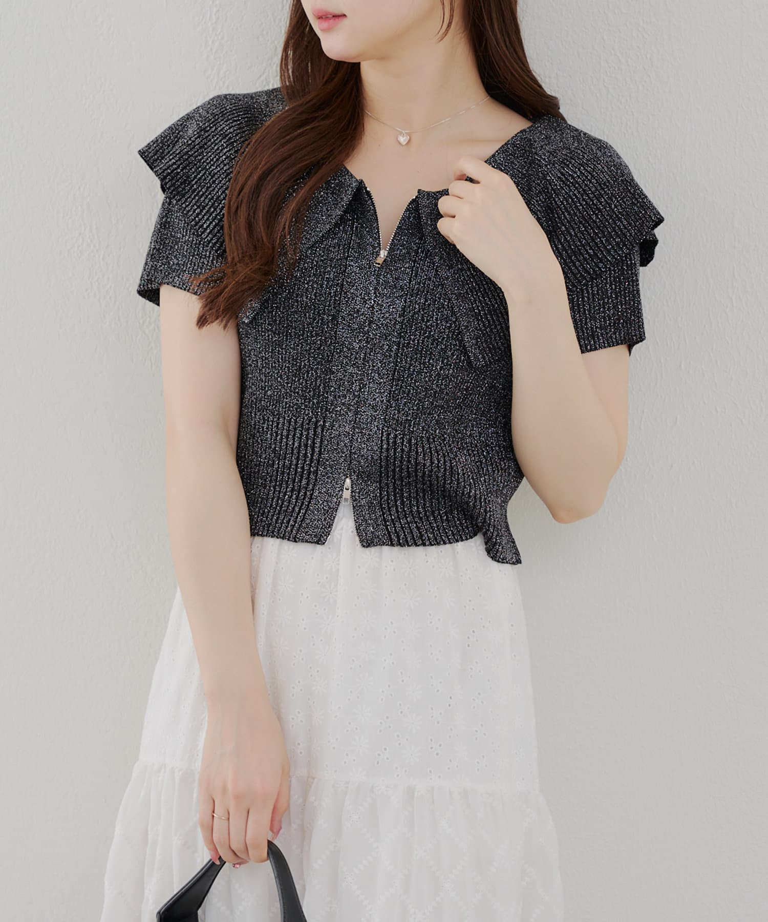 ・大きめの襟が小顔に見せてくれるカーディガン!