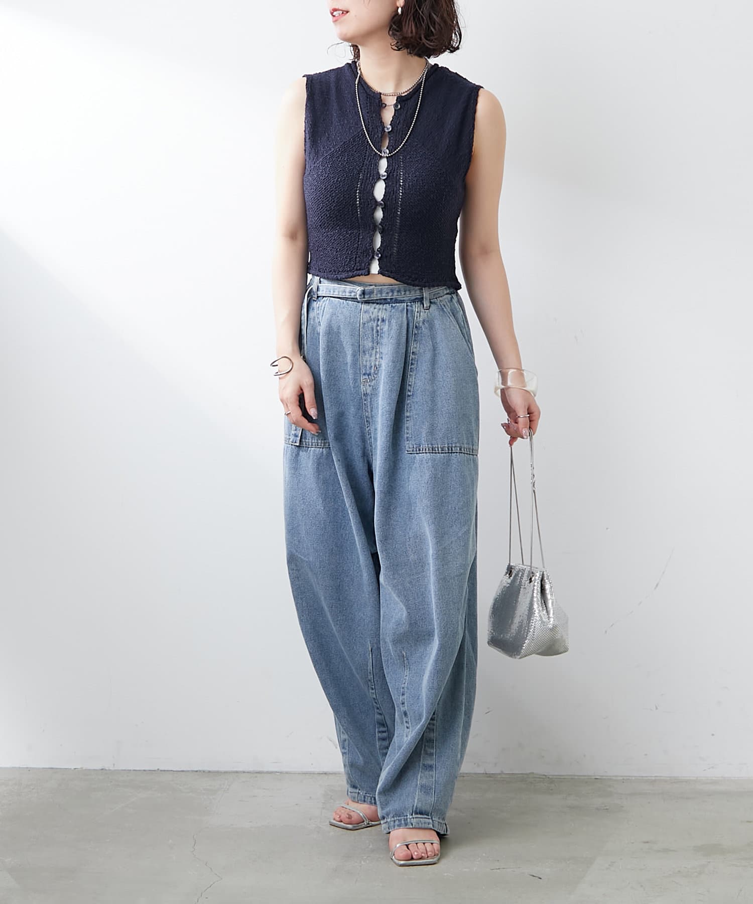 ・ヘルシーな肌見せスタイリングにも活躍する一枚