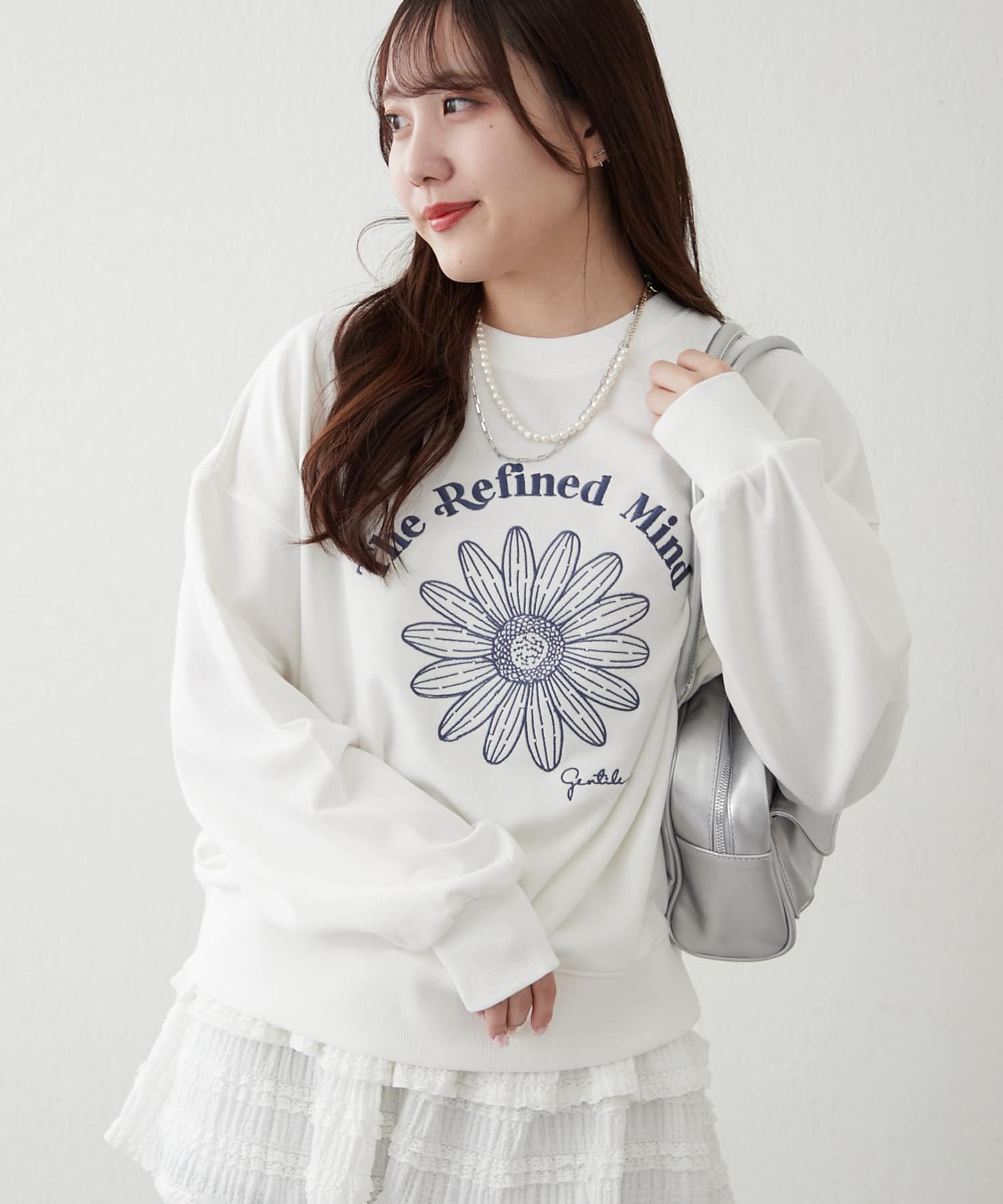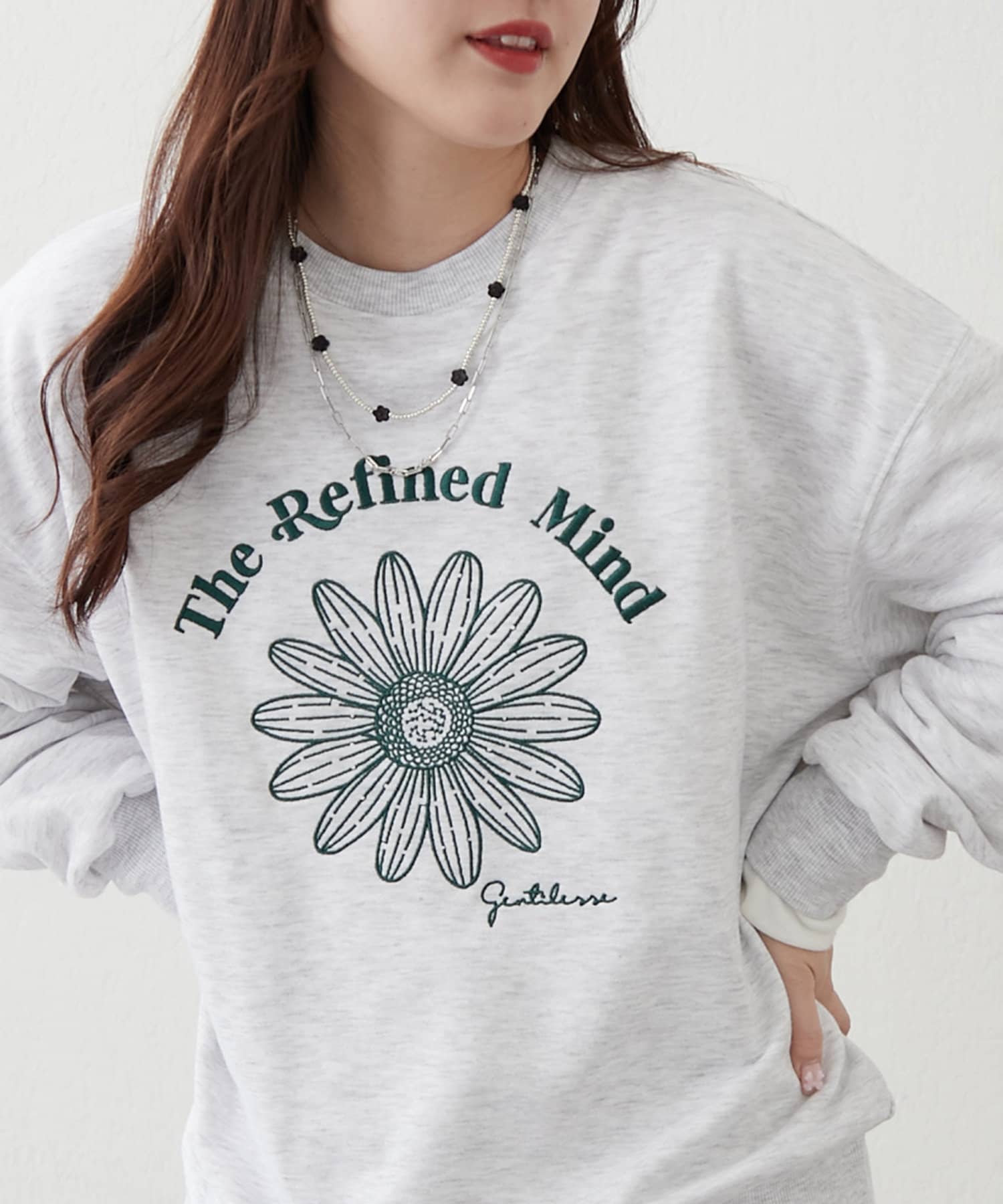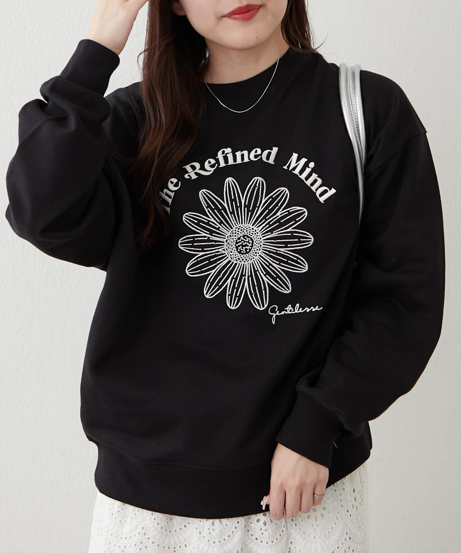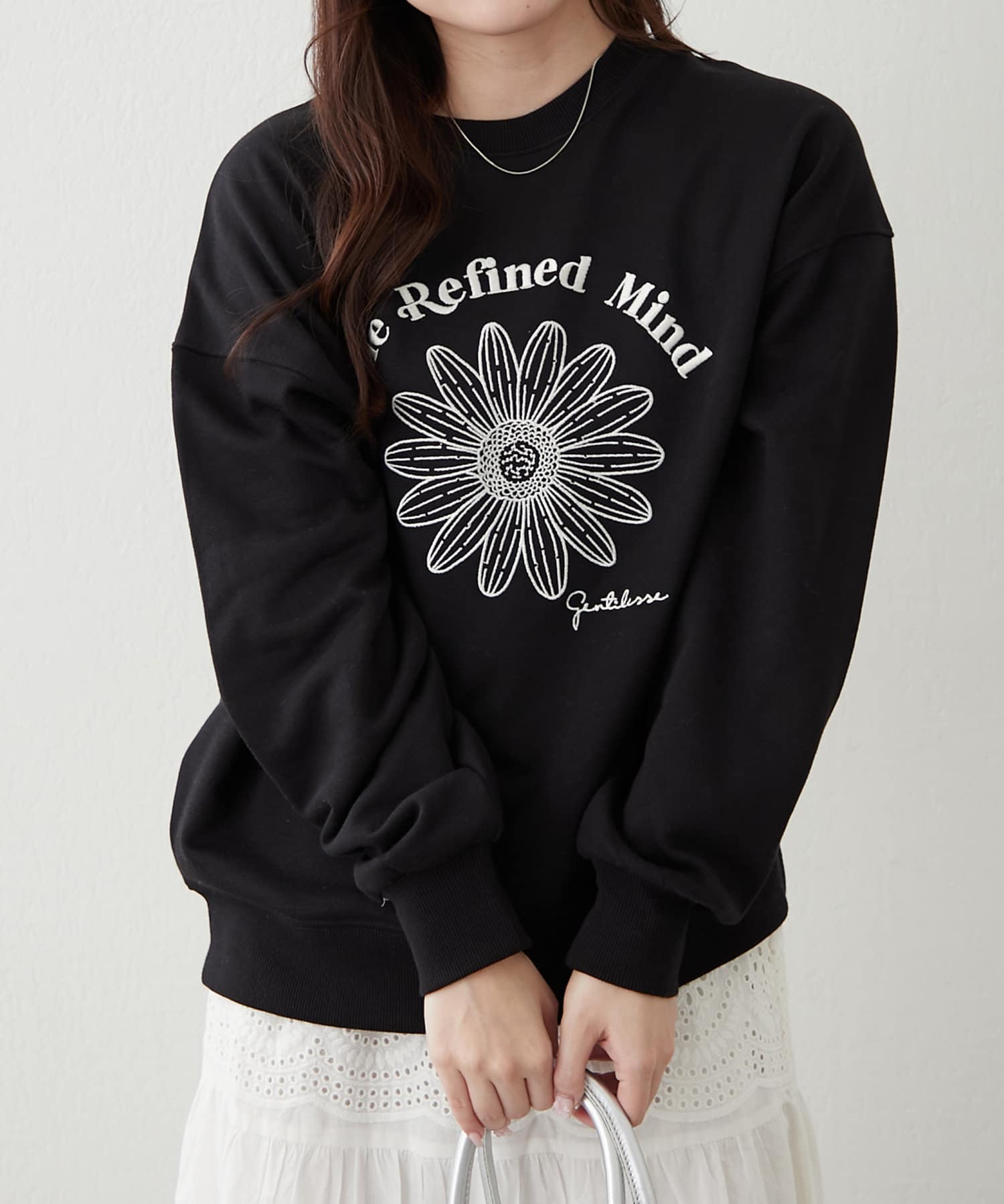 ・大人気のフロントに大きな花刺繍を施したスウェット