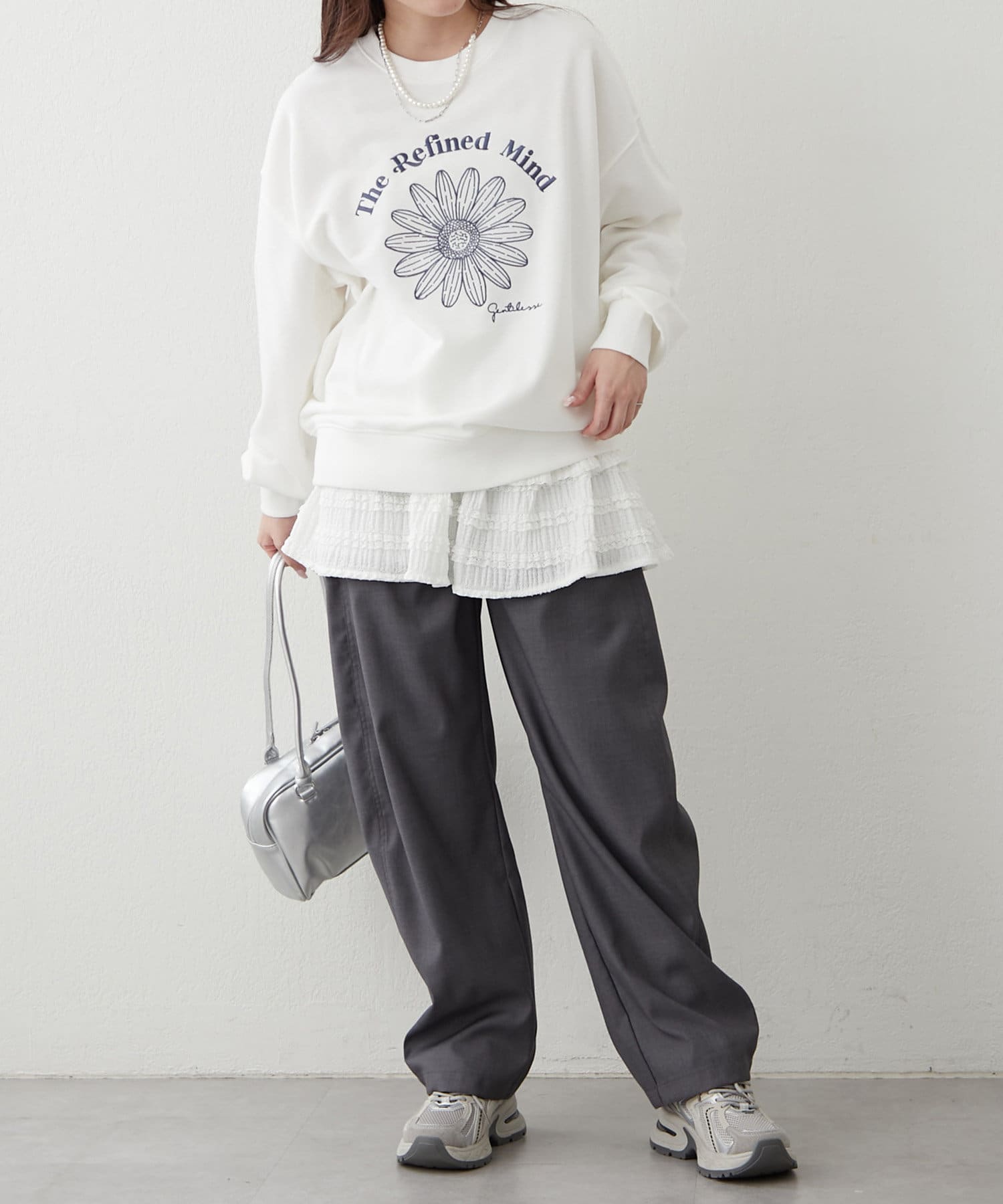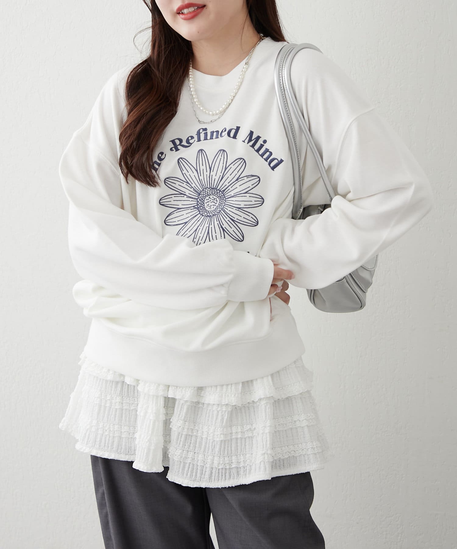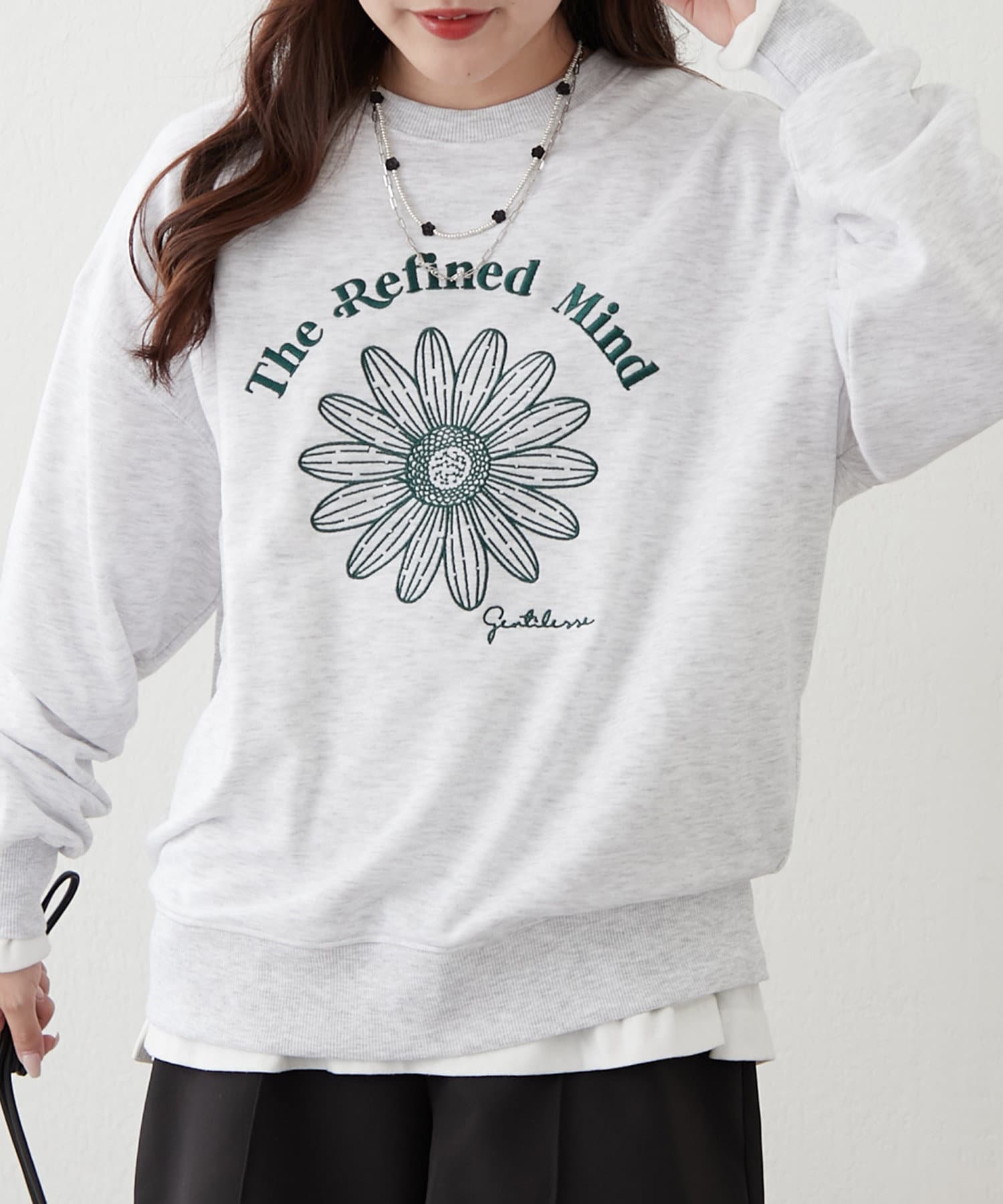 【春の新作】【OUTLET限定】花刺繍スウェットプルオーバー