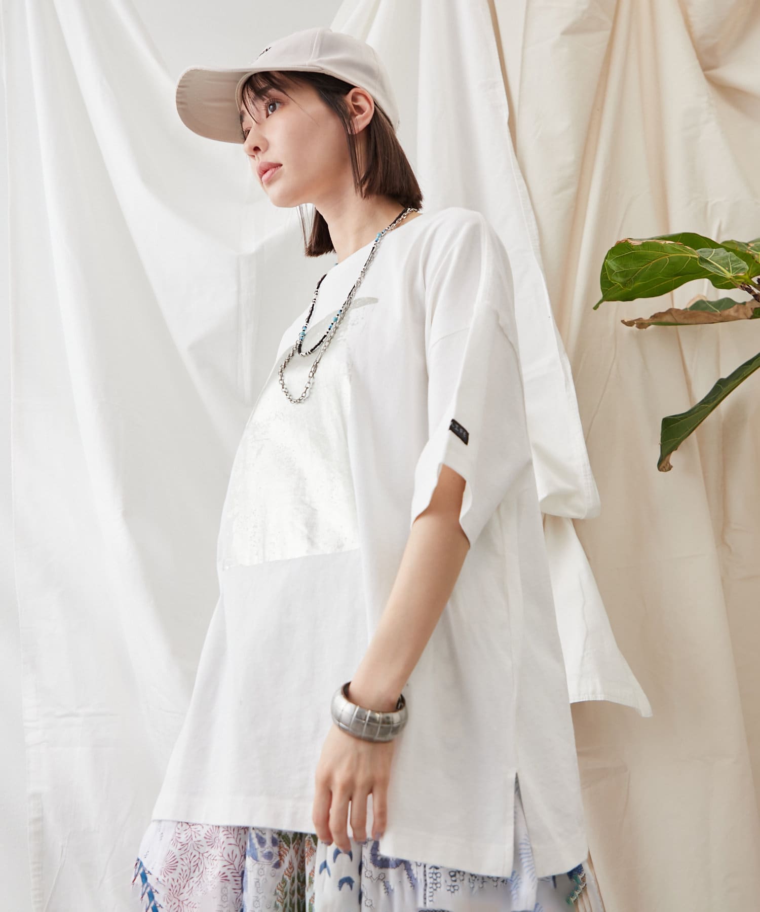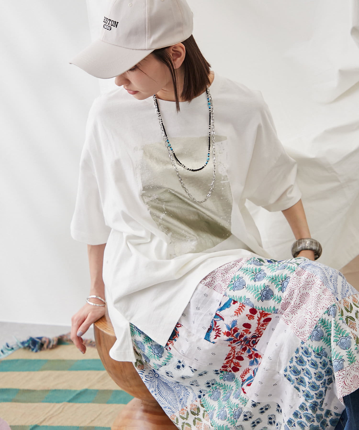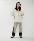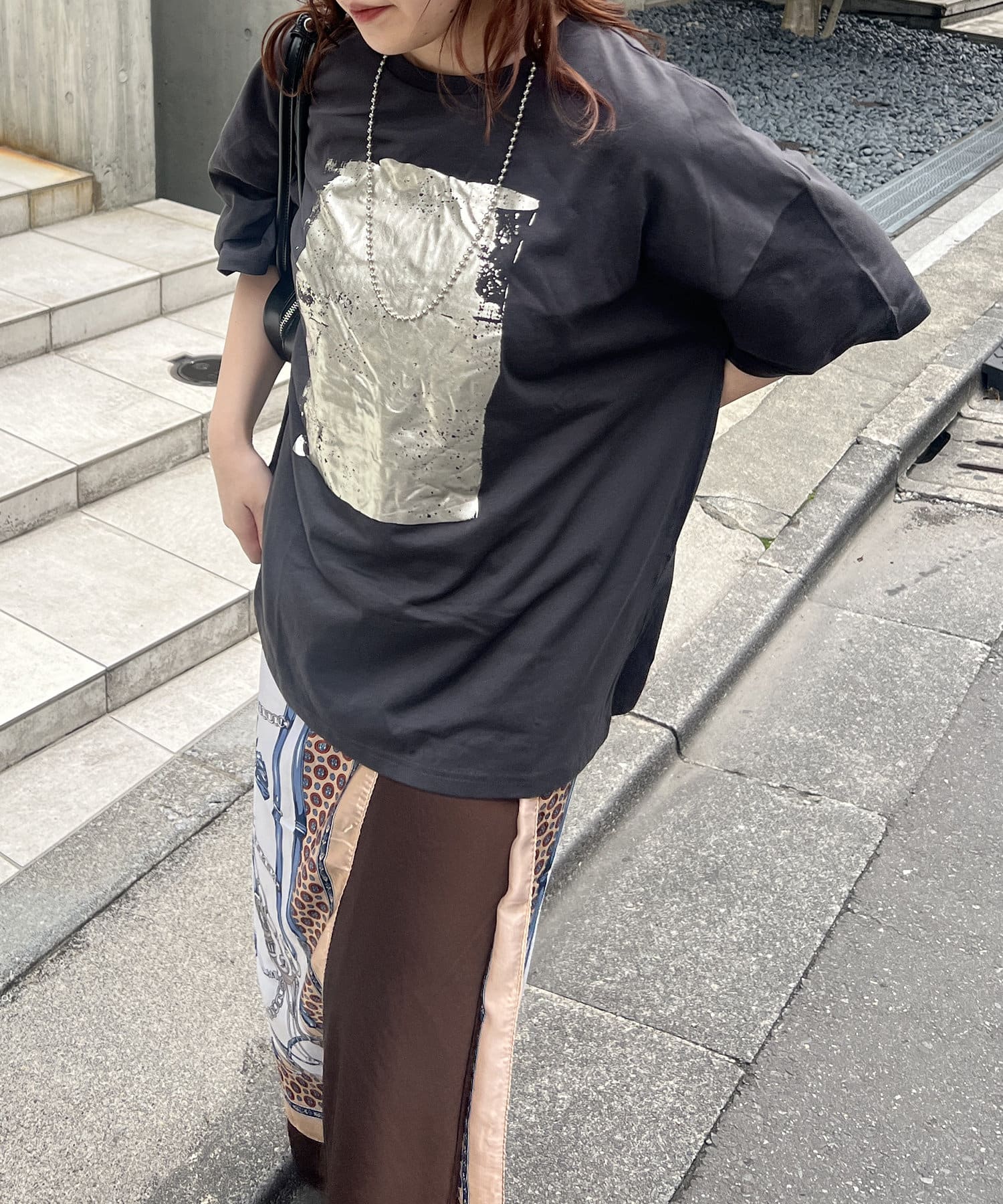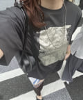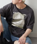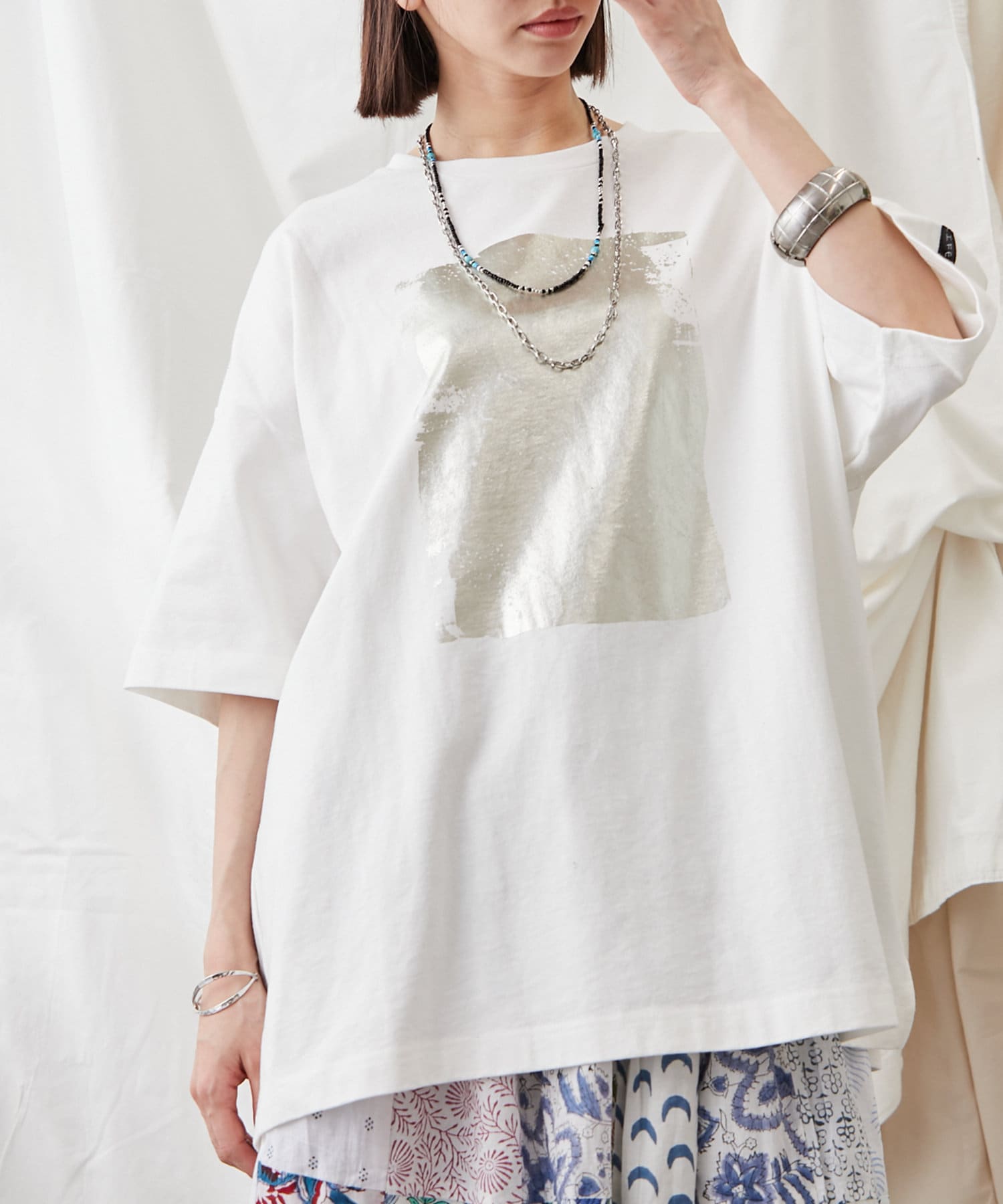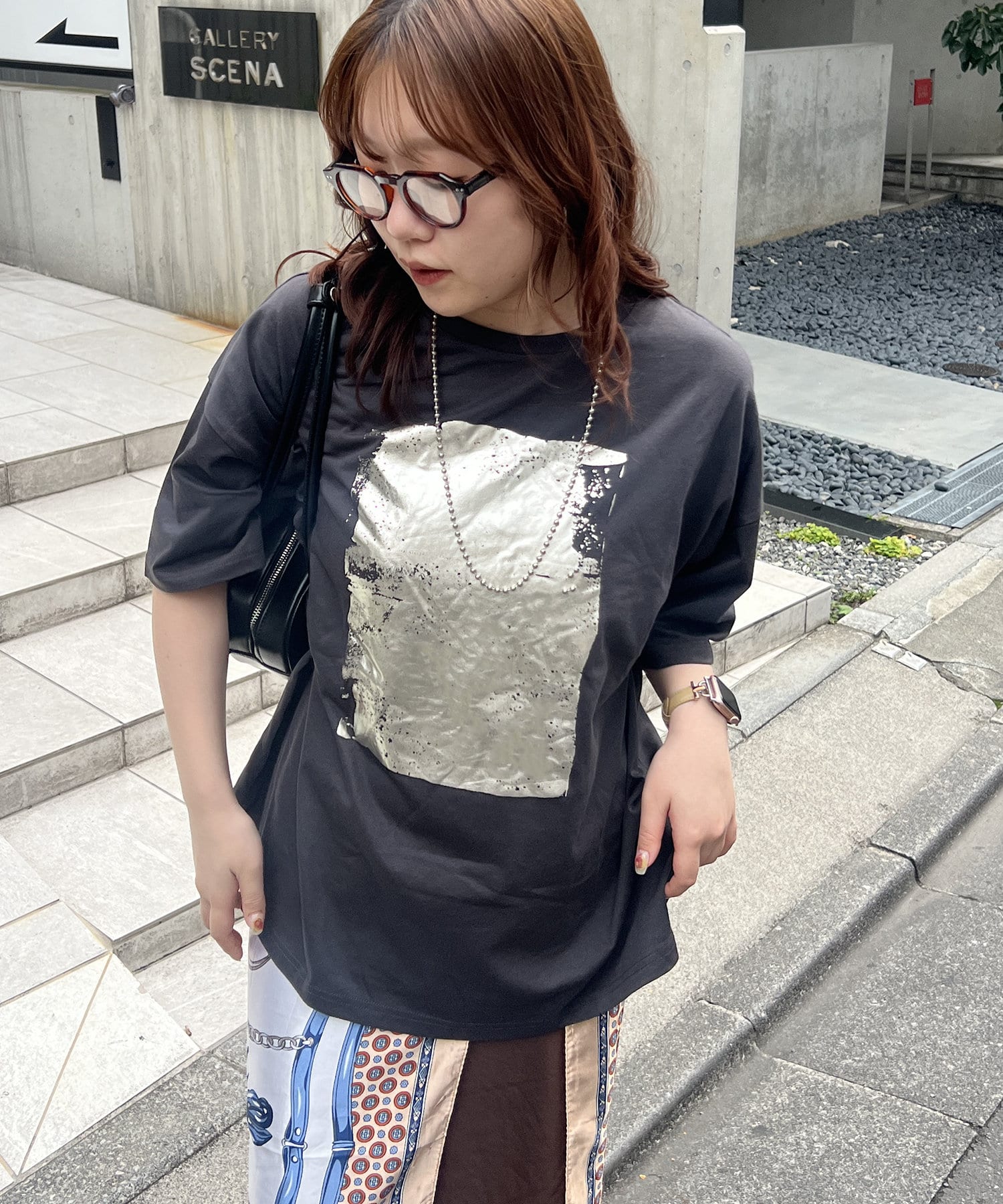目を惹く箔プリントは、ジャケットやシャツに合わせても着映えします。