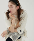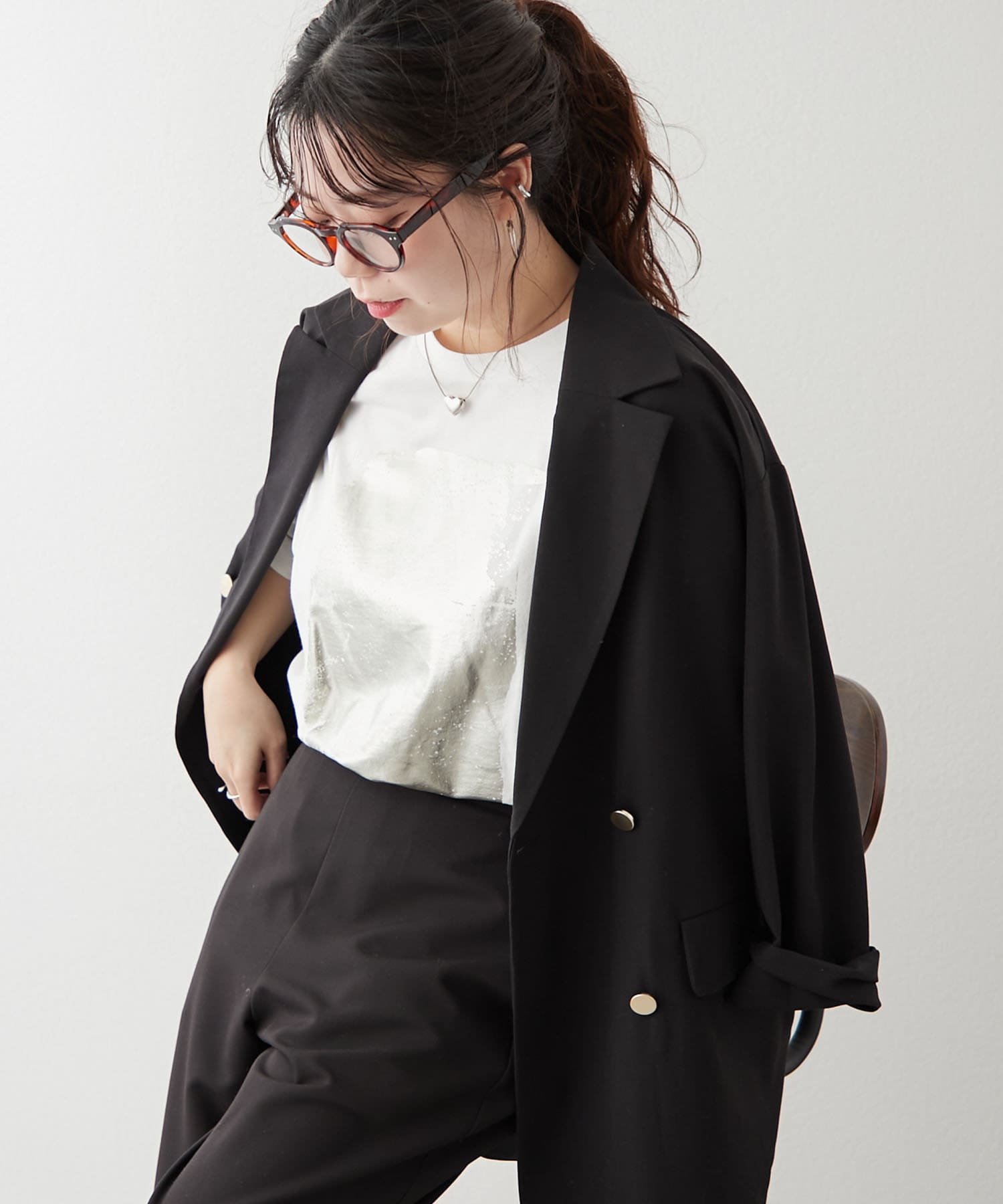 立体的なインパクトのある箔押しが着こなしのアクセントになります。